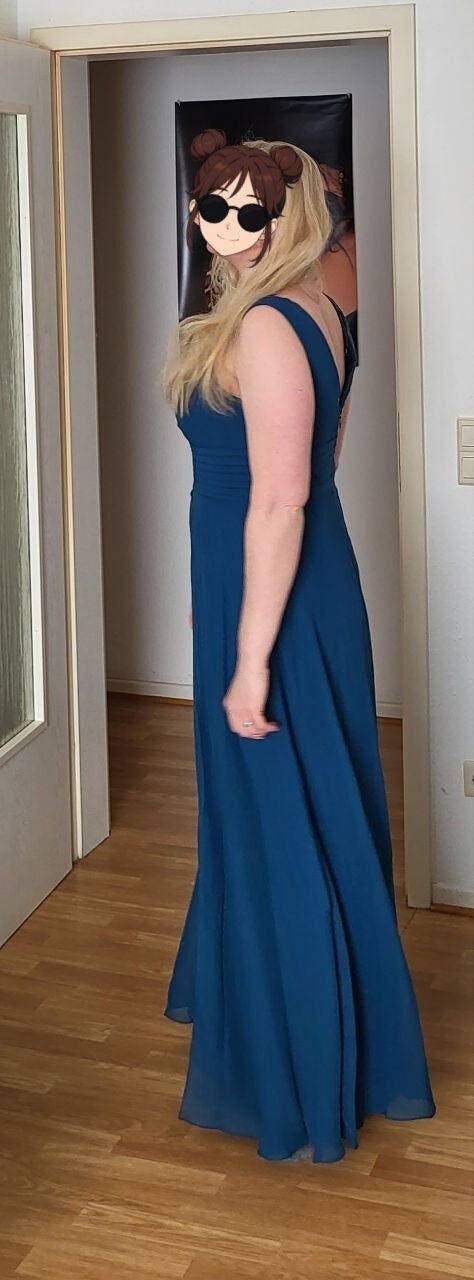 • Le mannequin mesure 5'7" (170cm), 114 lbs avec les mesures : (Poitrine 84cm, Taille 64cm, Hanches 90cm, Épaule au bord de robe 148cm). Elle porte une robe EU 34.