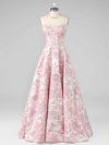 Robes De Bal En Satin À Rose A-ligne Sans Bretelles Jacquard Perlé Longue
