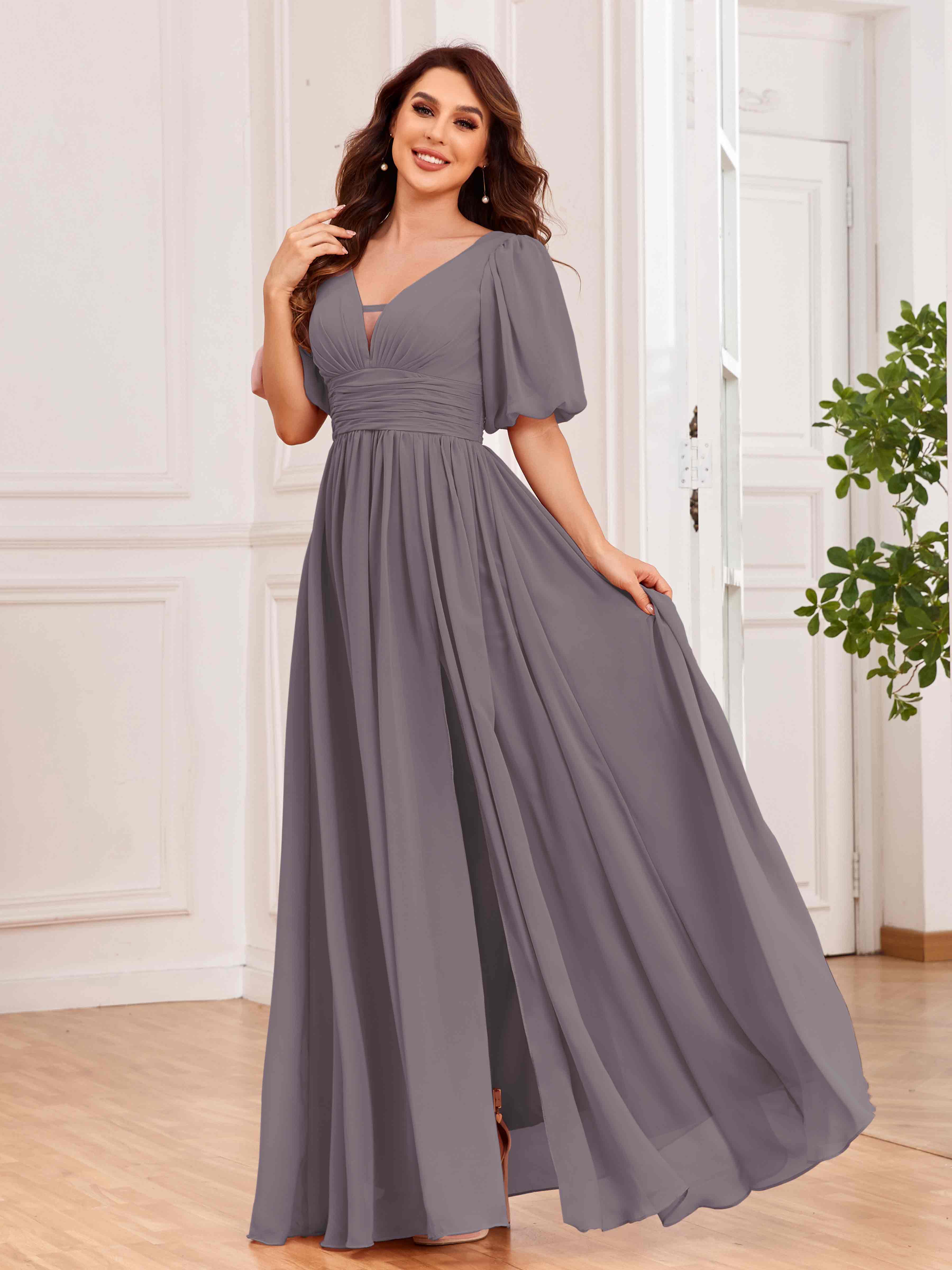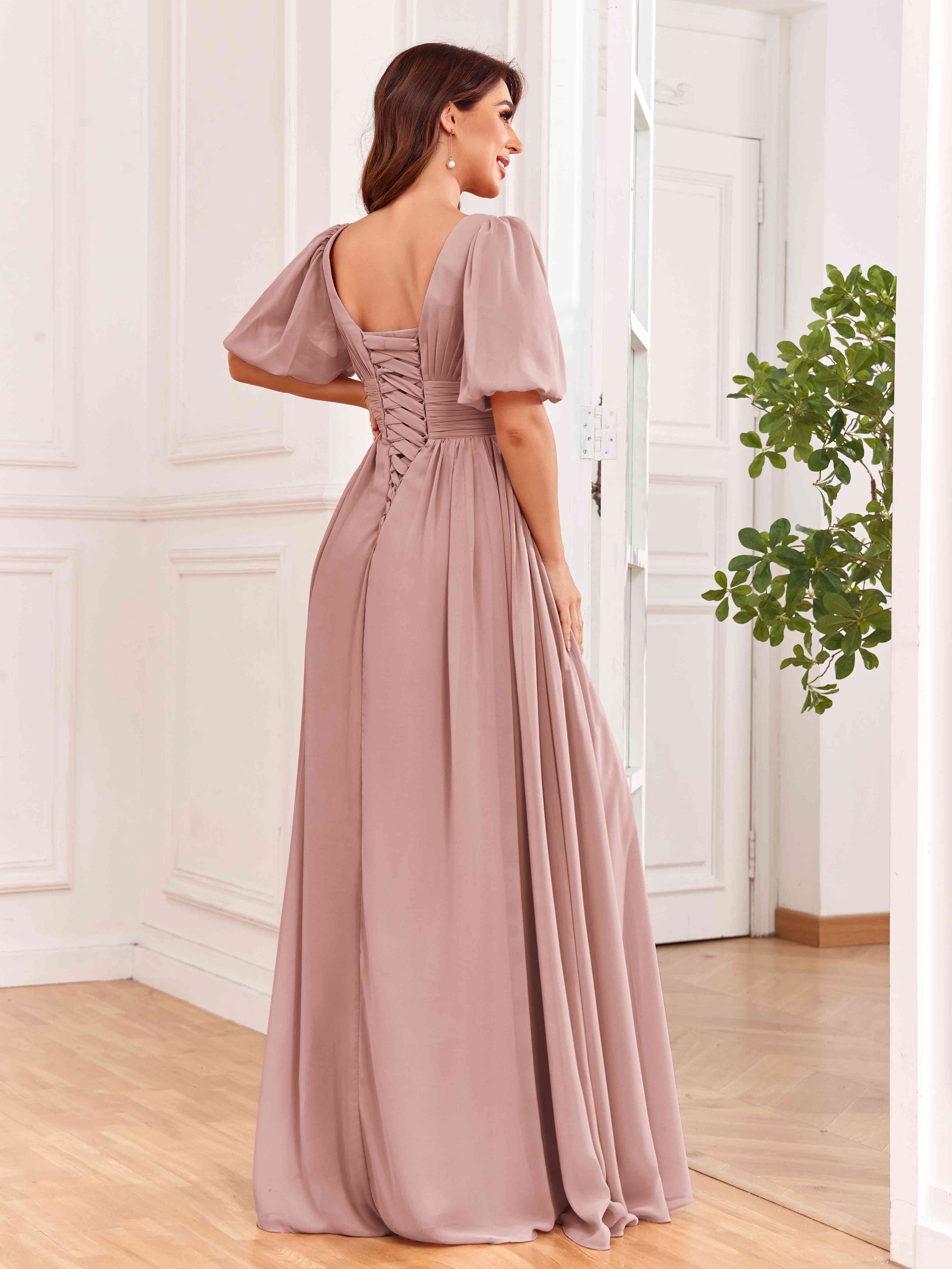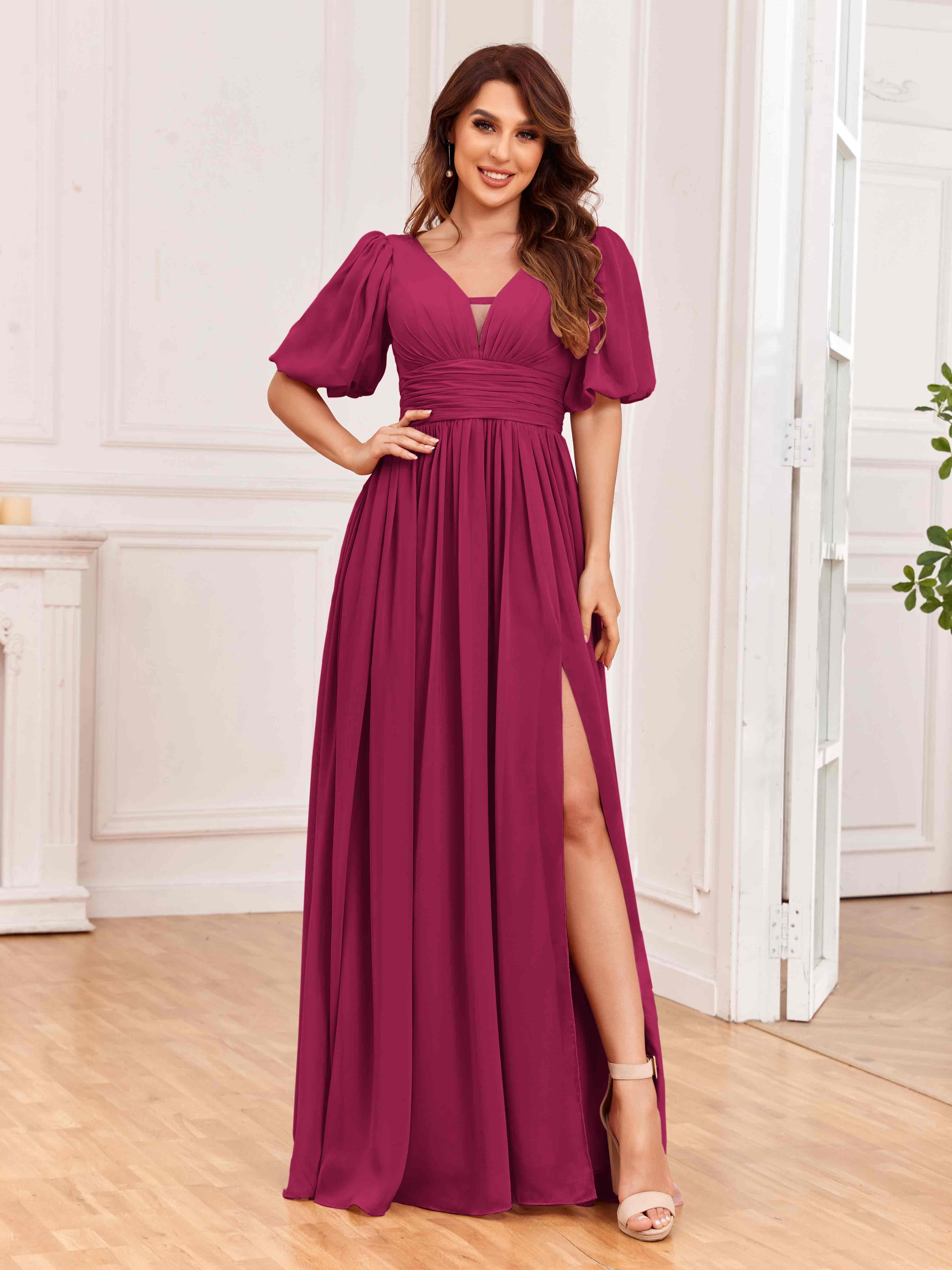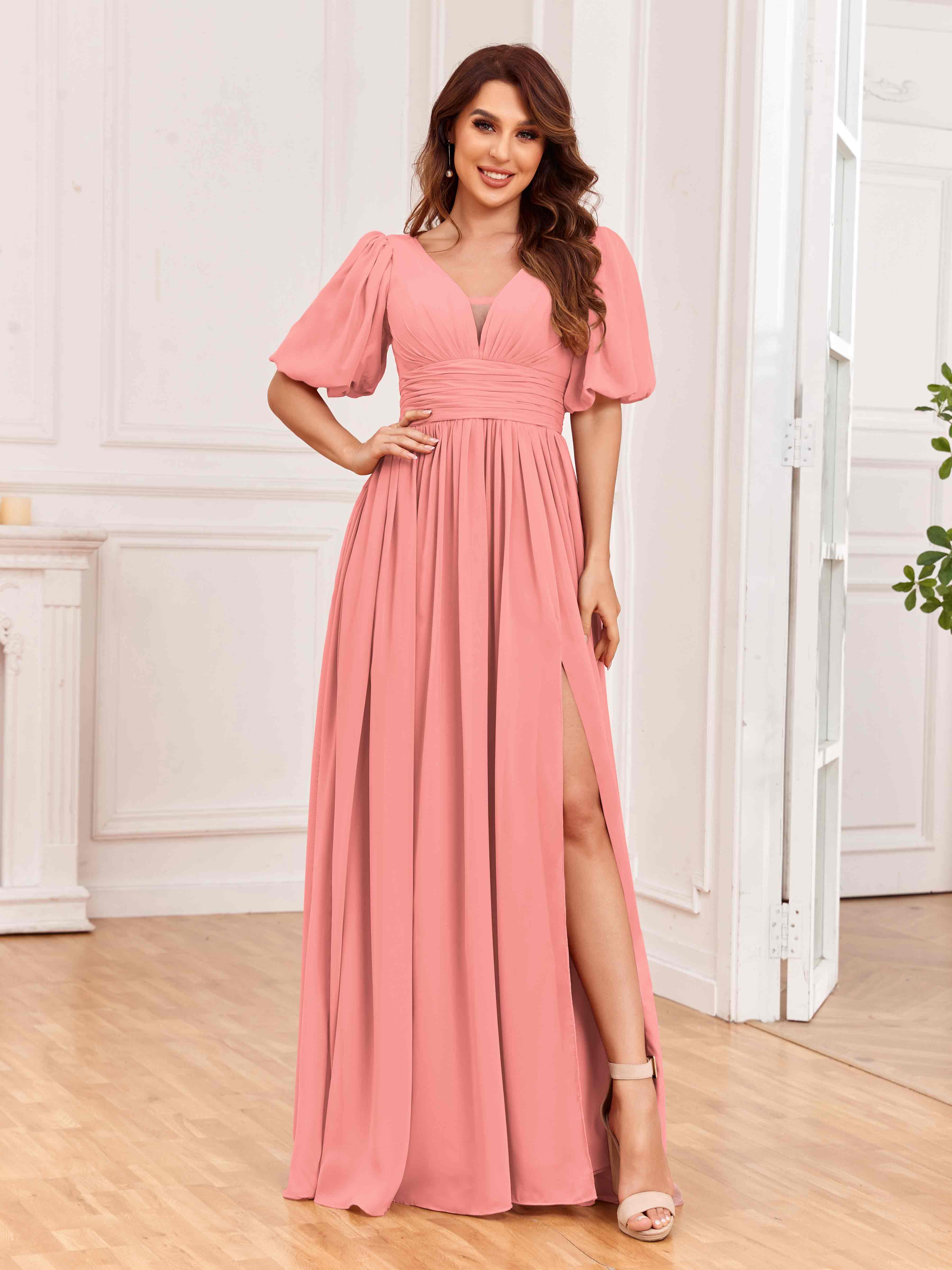 Robes De Demoiselle D'Honneur À Fente À Jambe Et Manches Lanternes Liliana