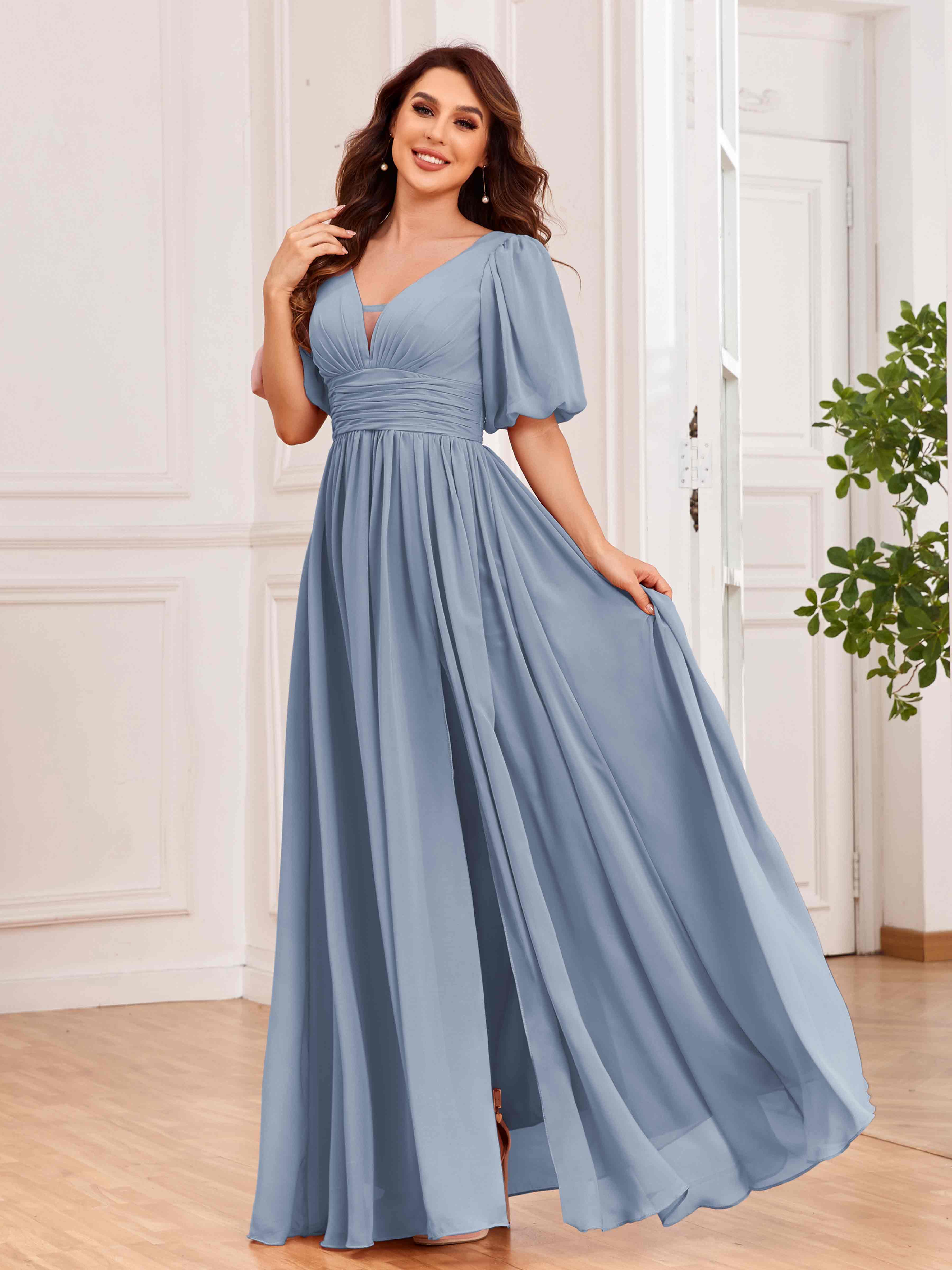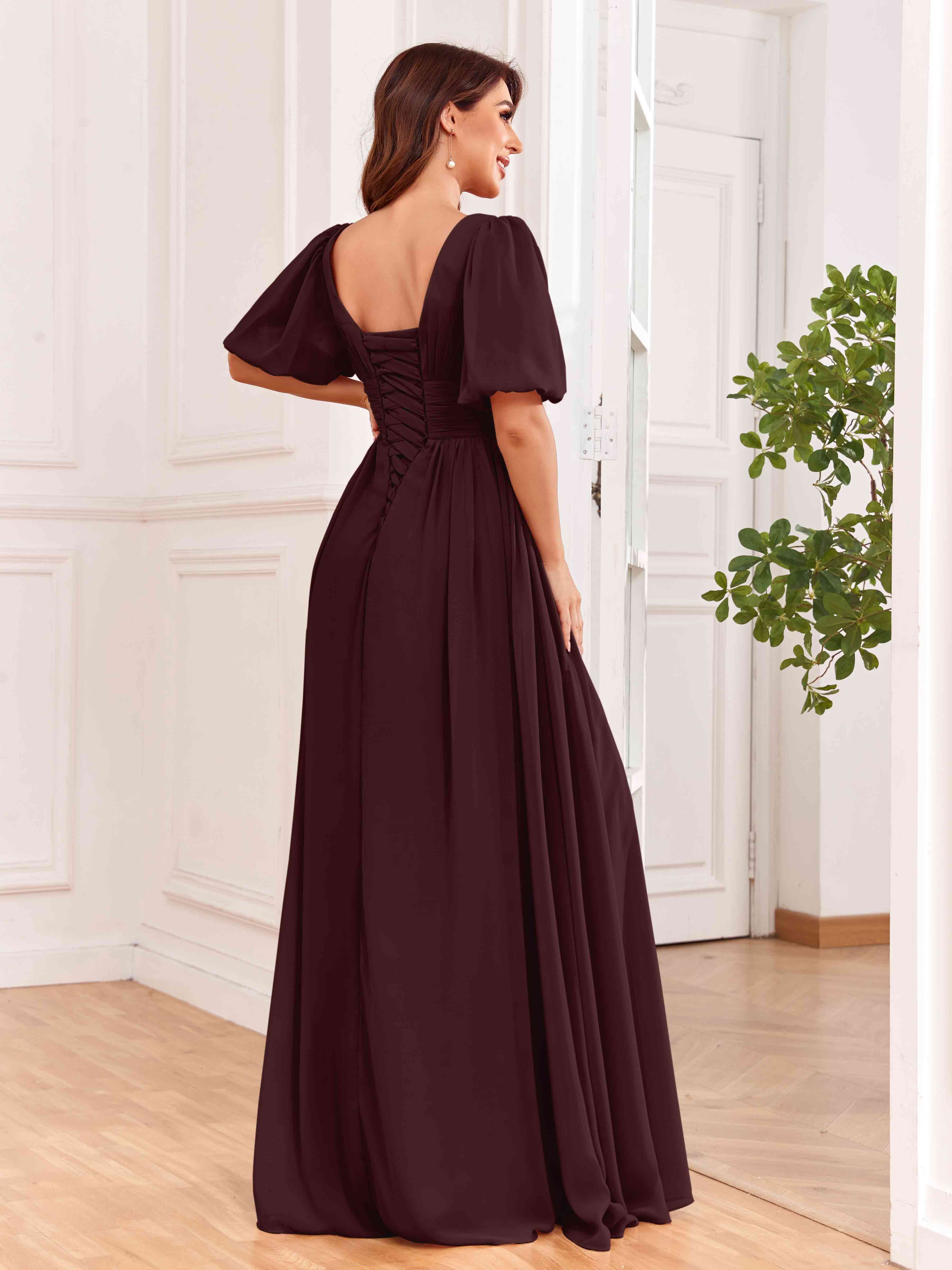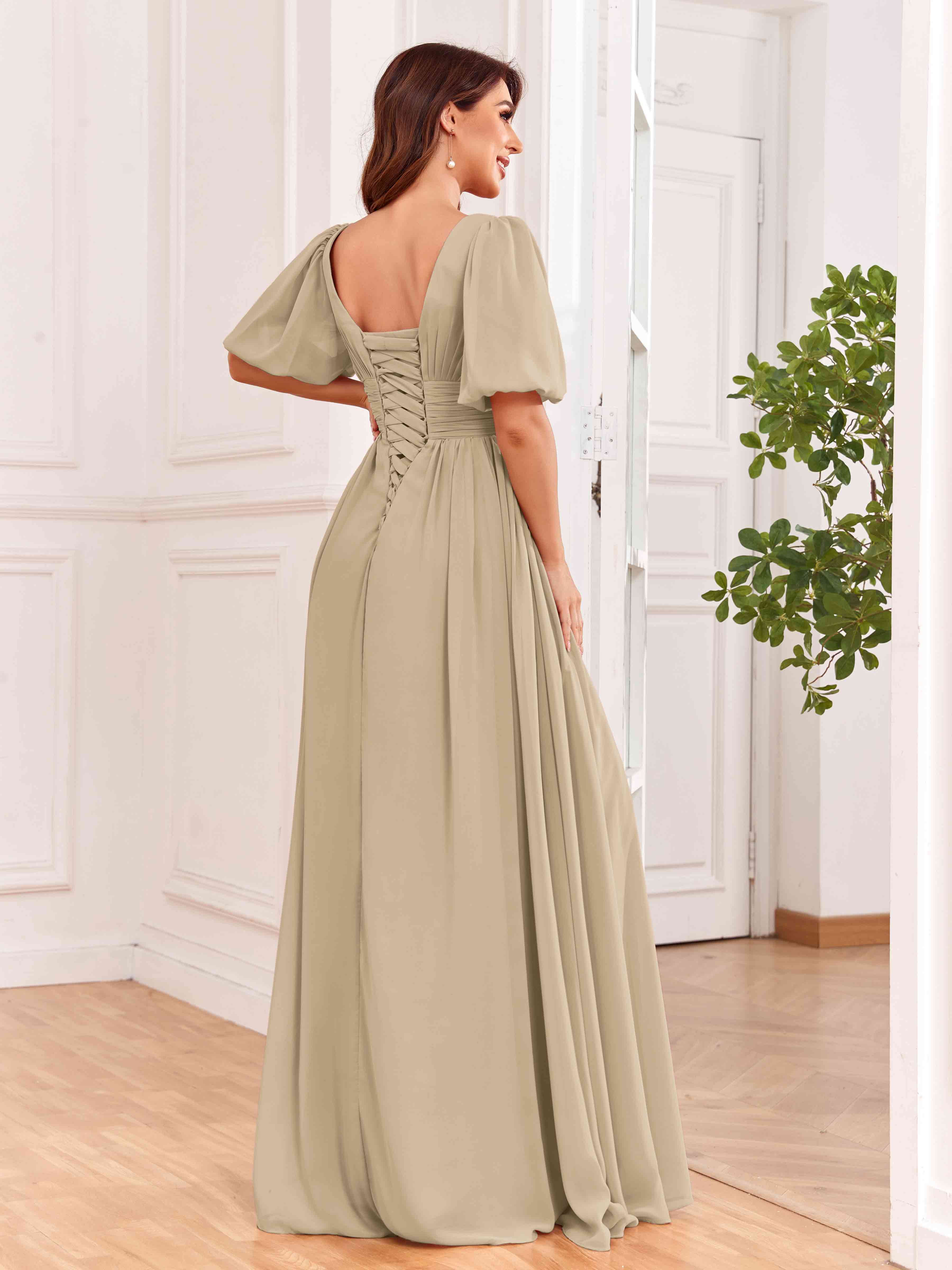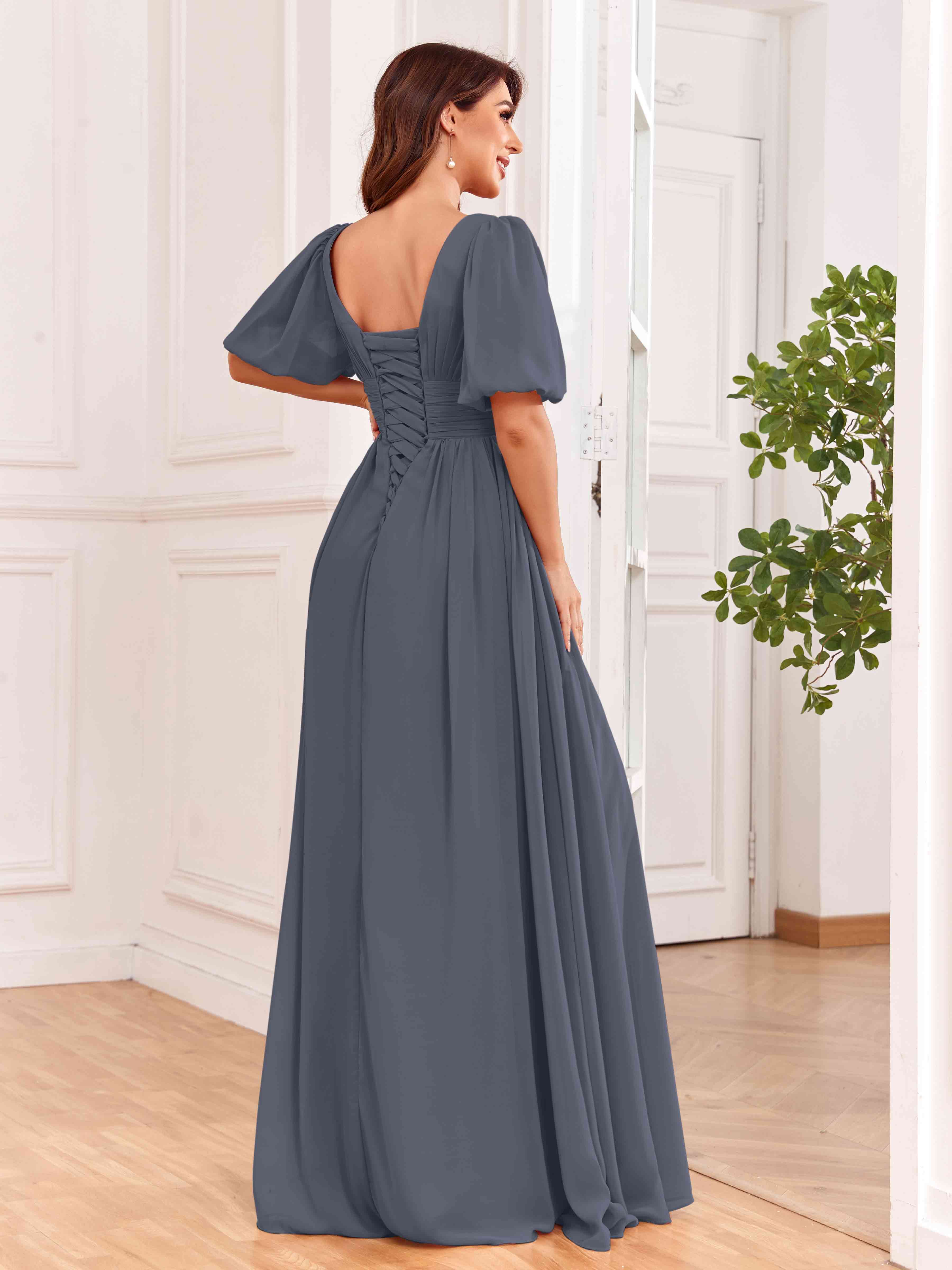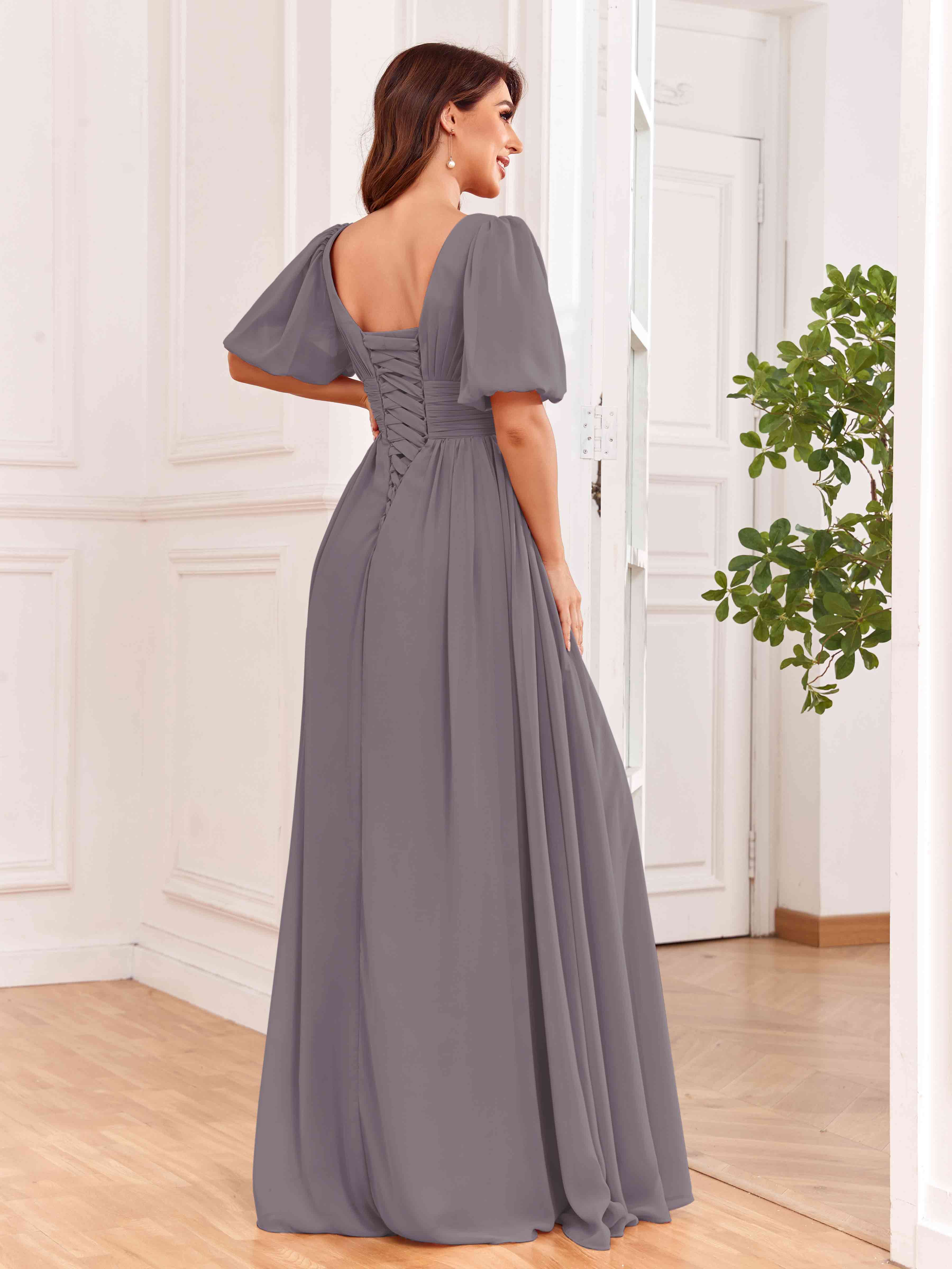 Robes De Demoiselle D'Honneur À Fente À Jambe Et Manches Lanternes Liliana