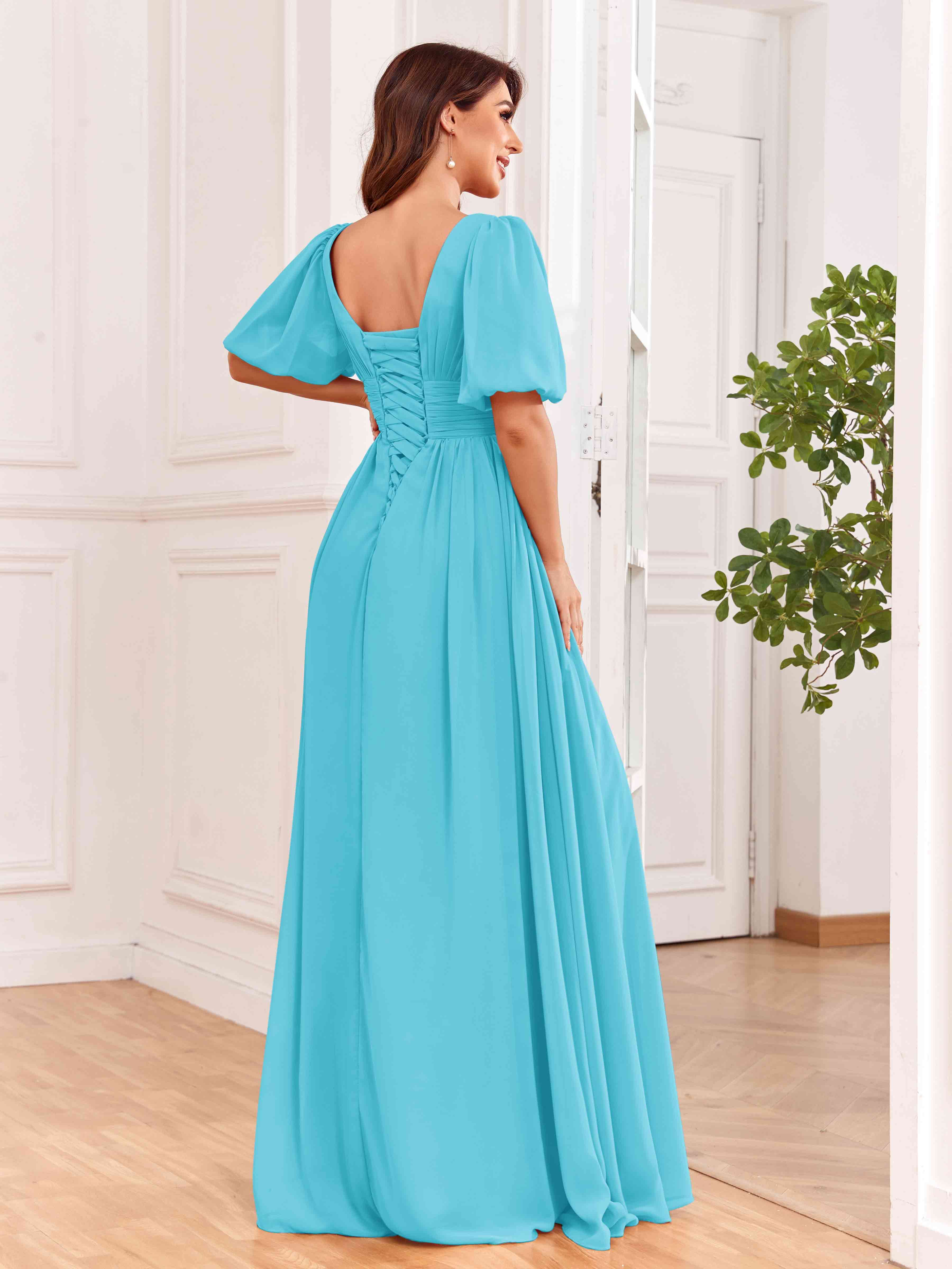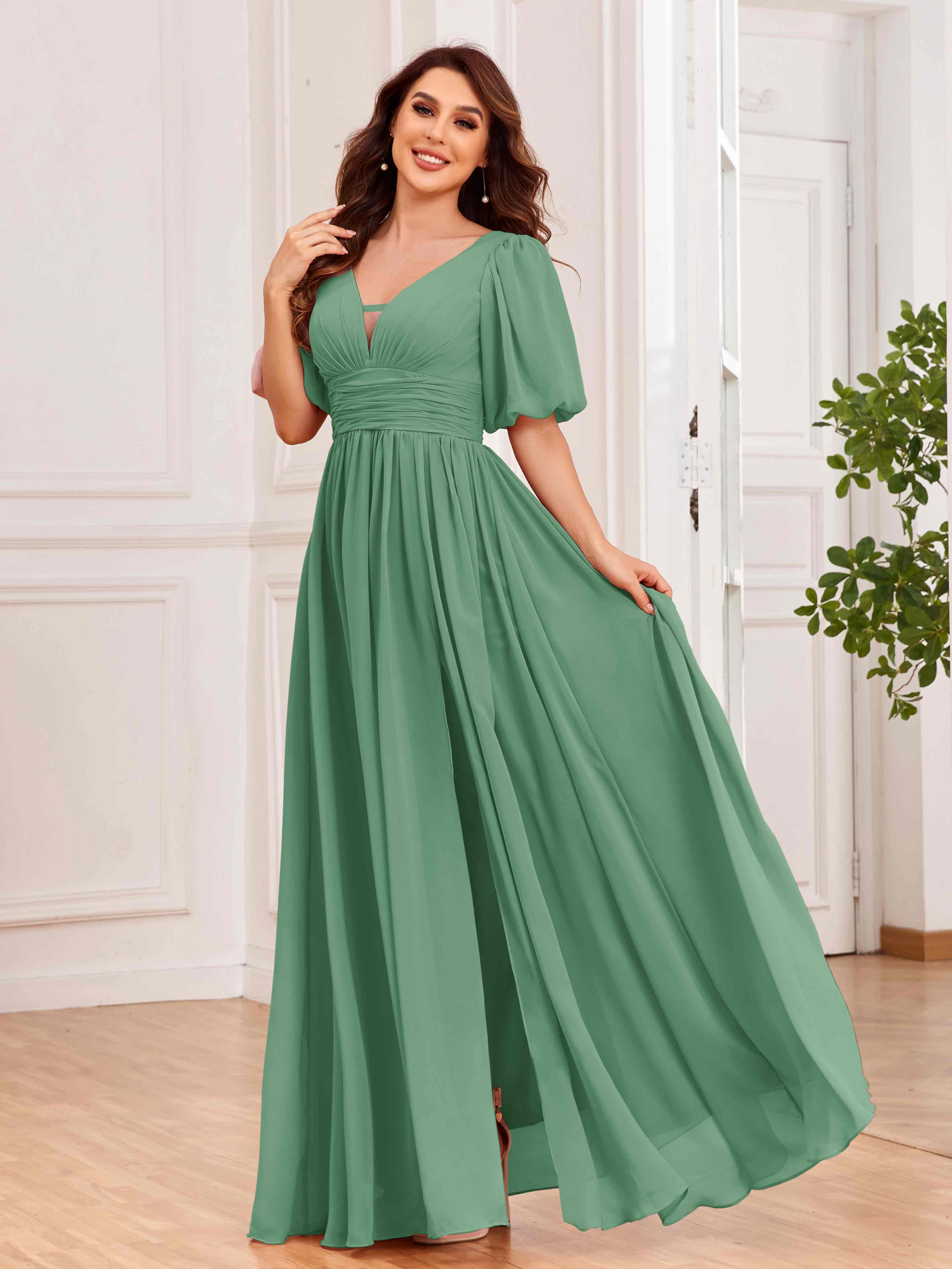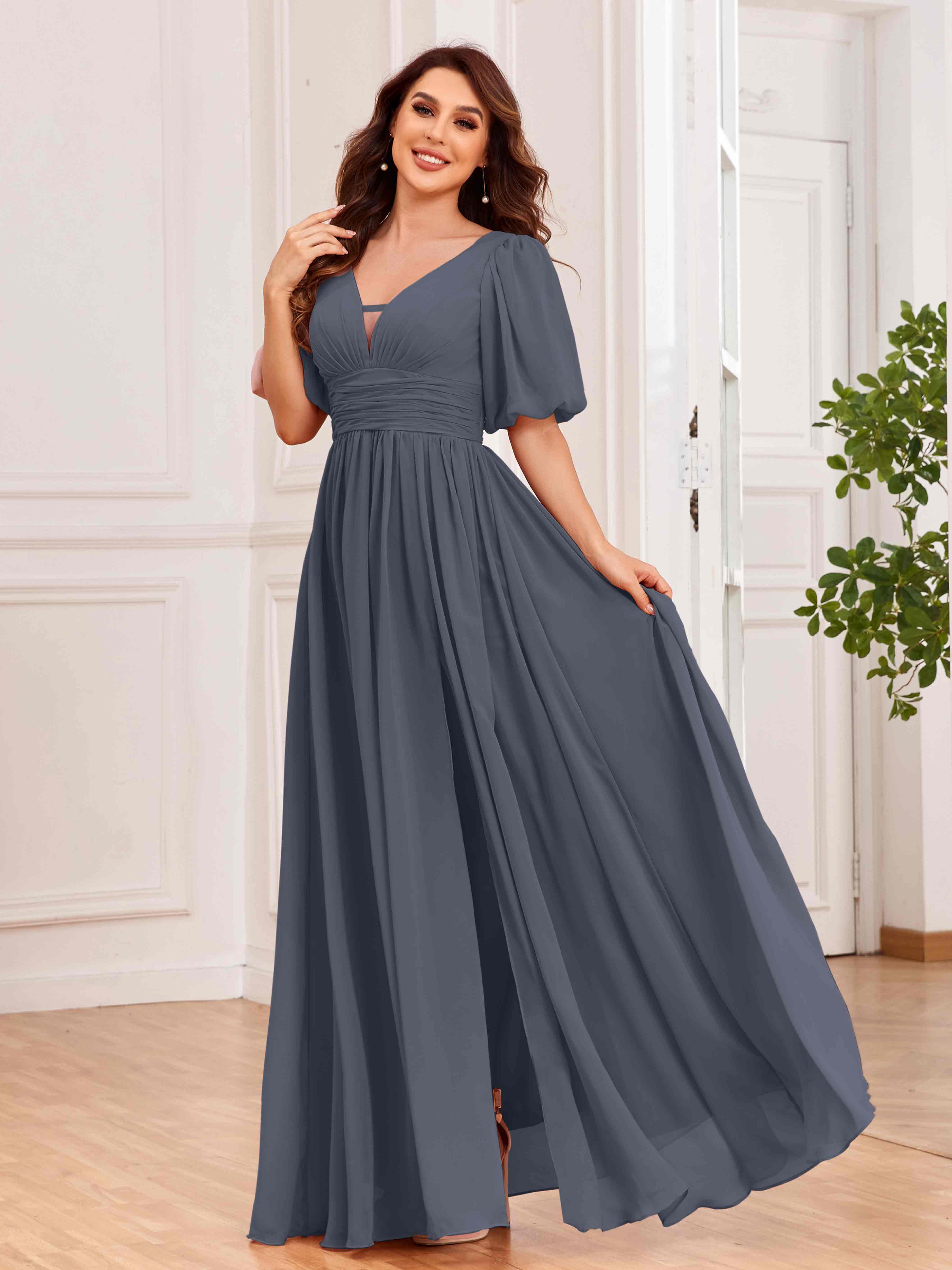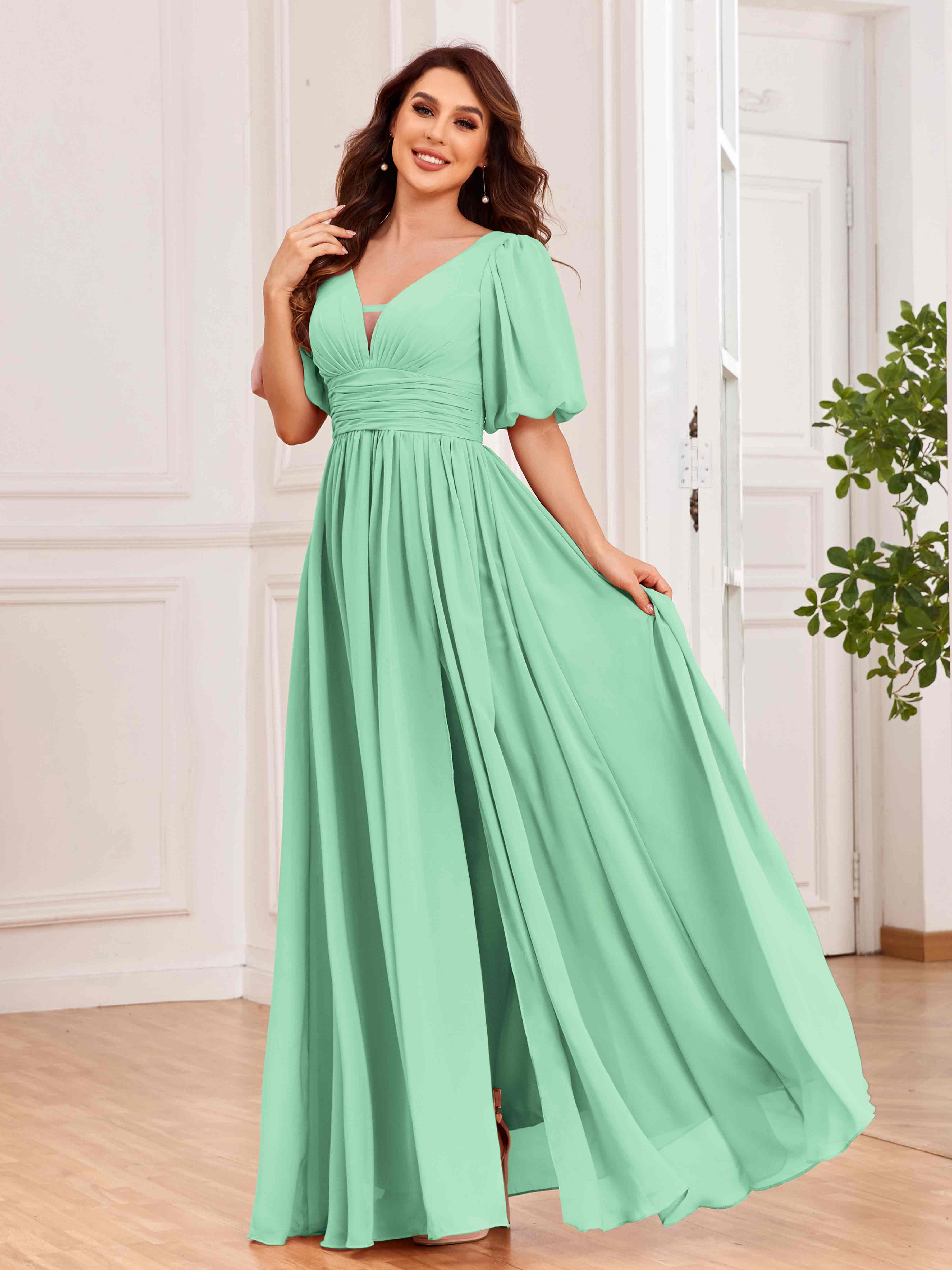 Robes De Demoiselle D'Honneur À Fente À Jambe Et Manches Lanternes Liliana
