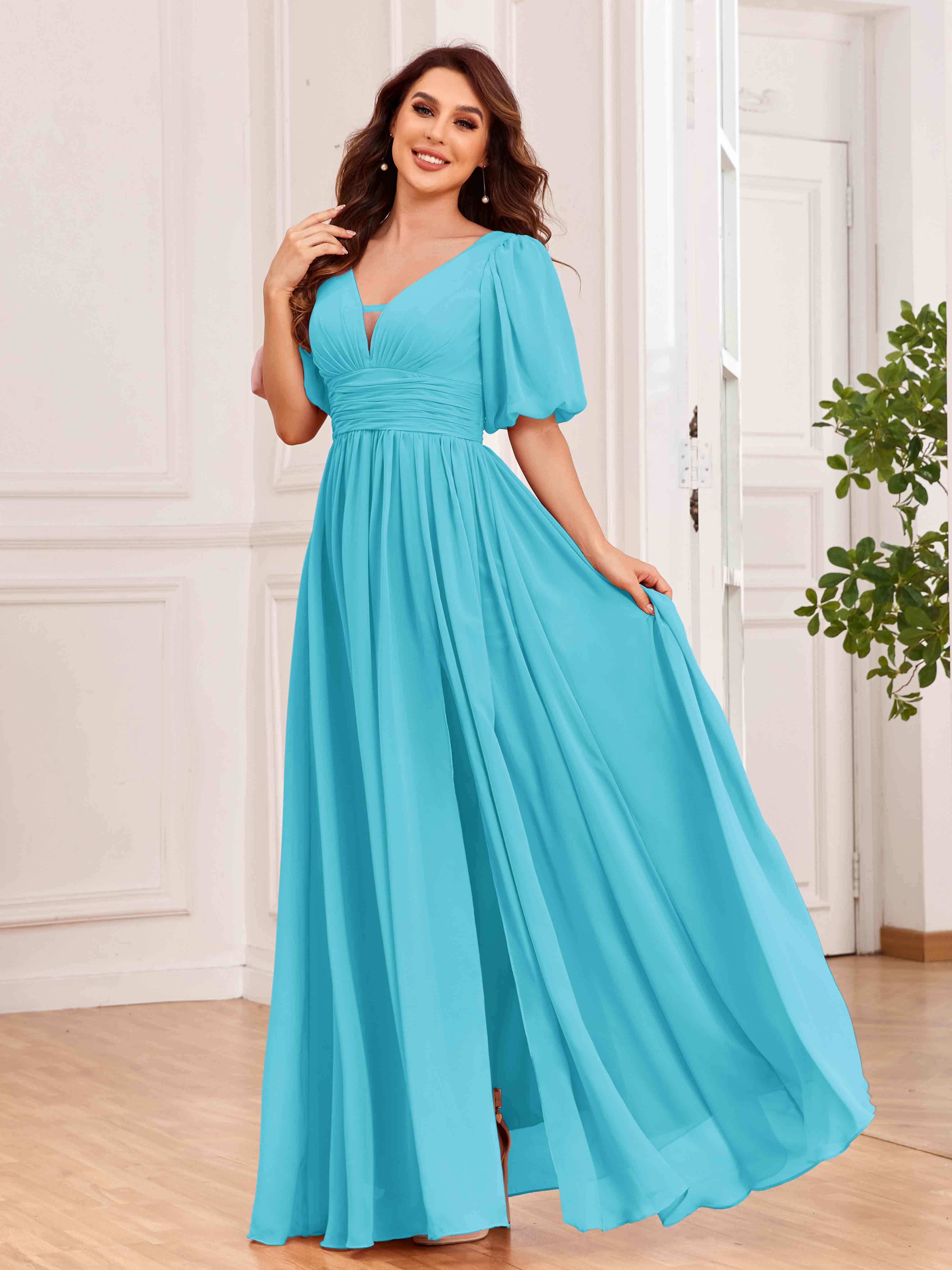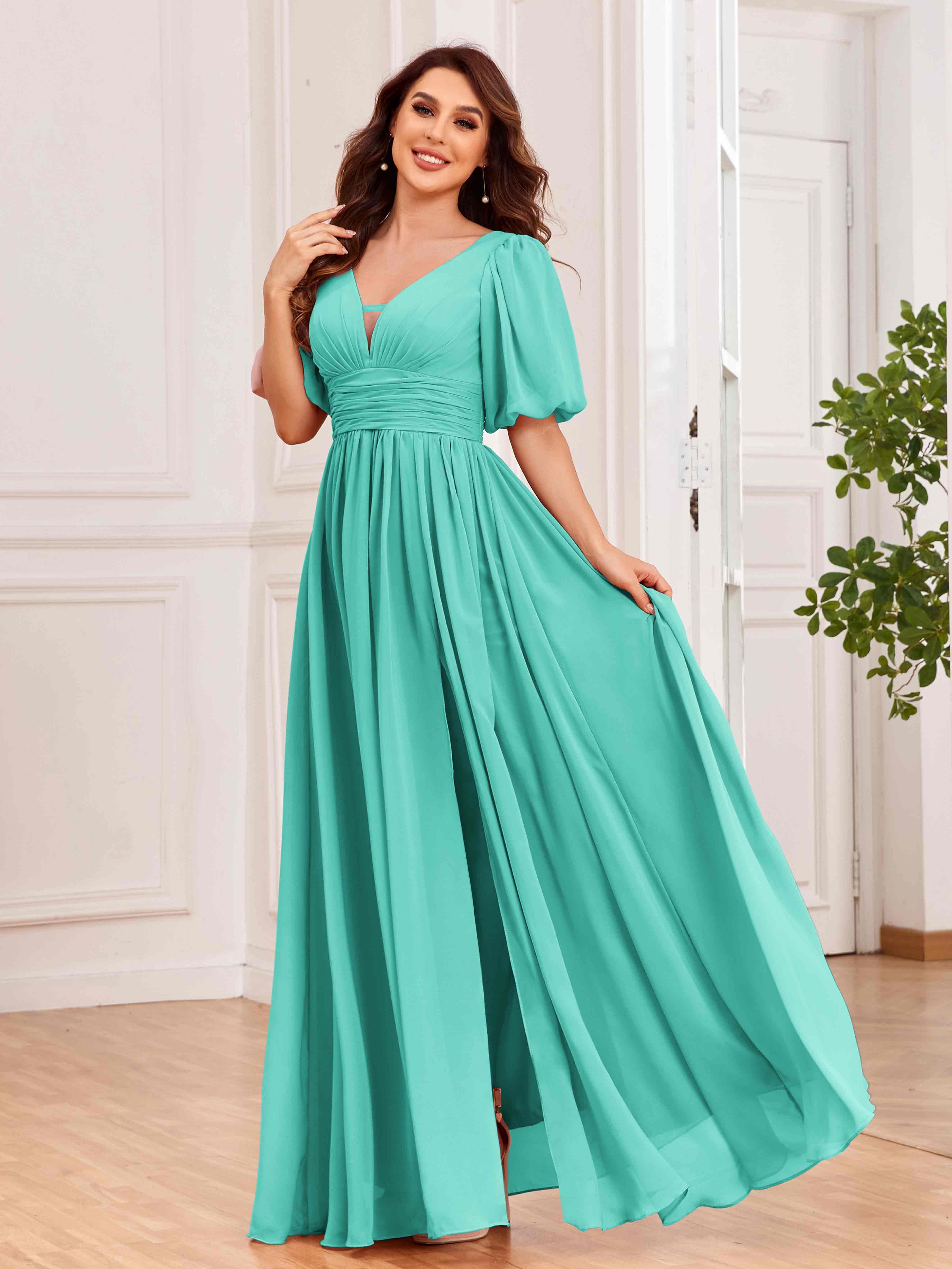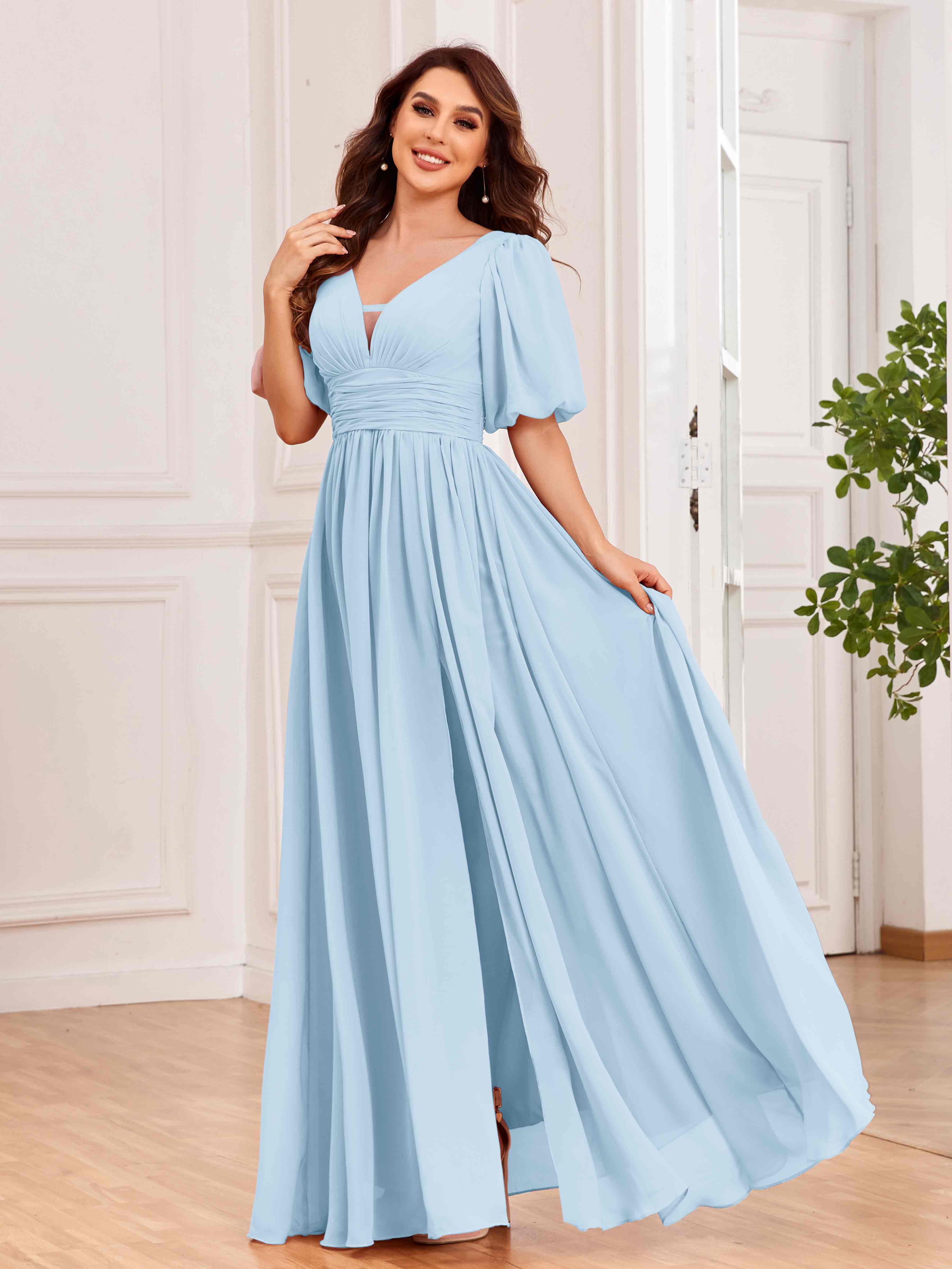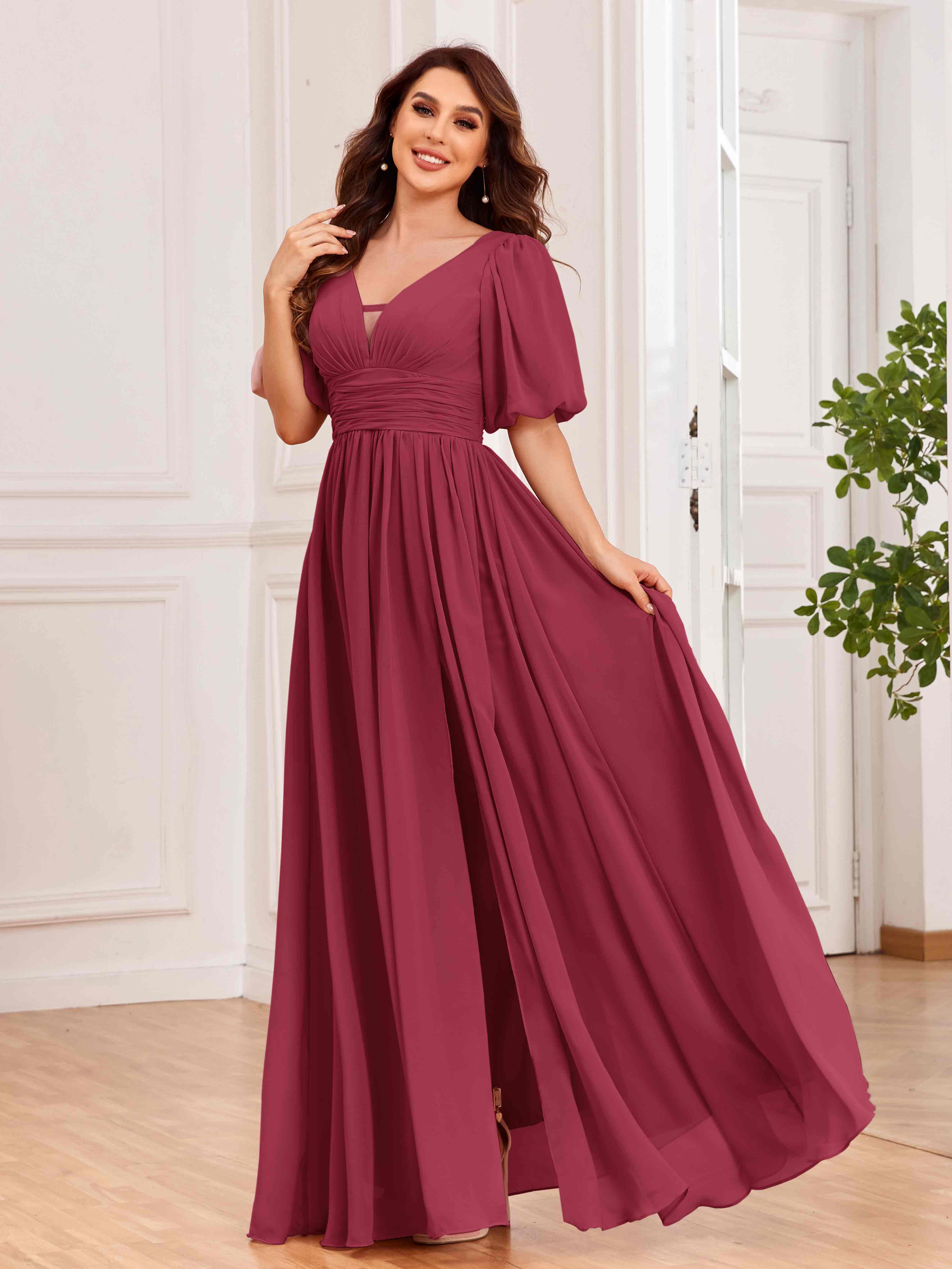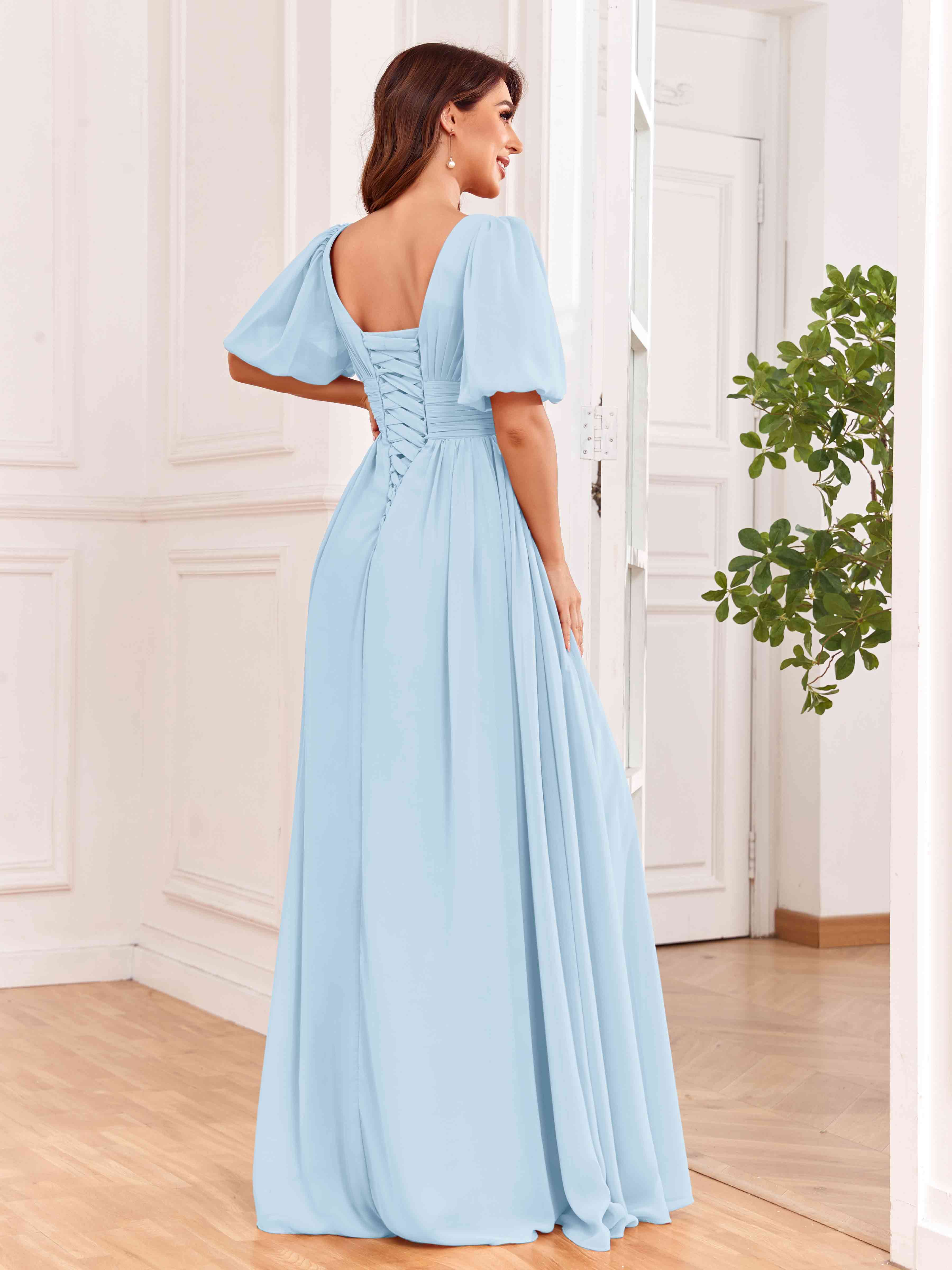 Robes De Demoiselle D'Honneur À Fente À Jambe Et Manches Lanternes Liliana