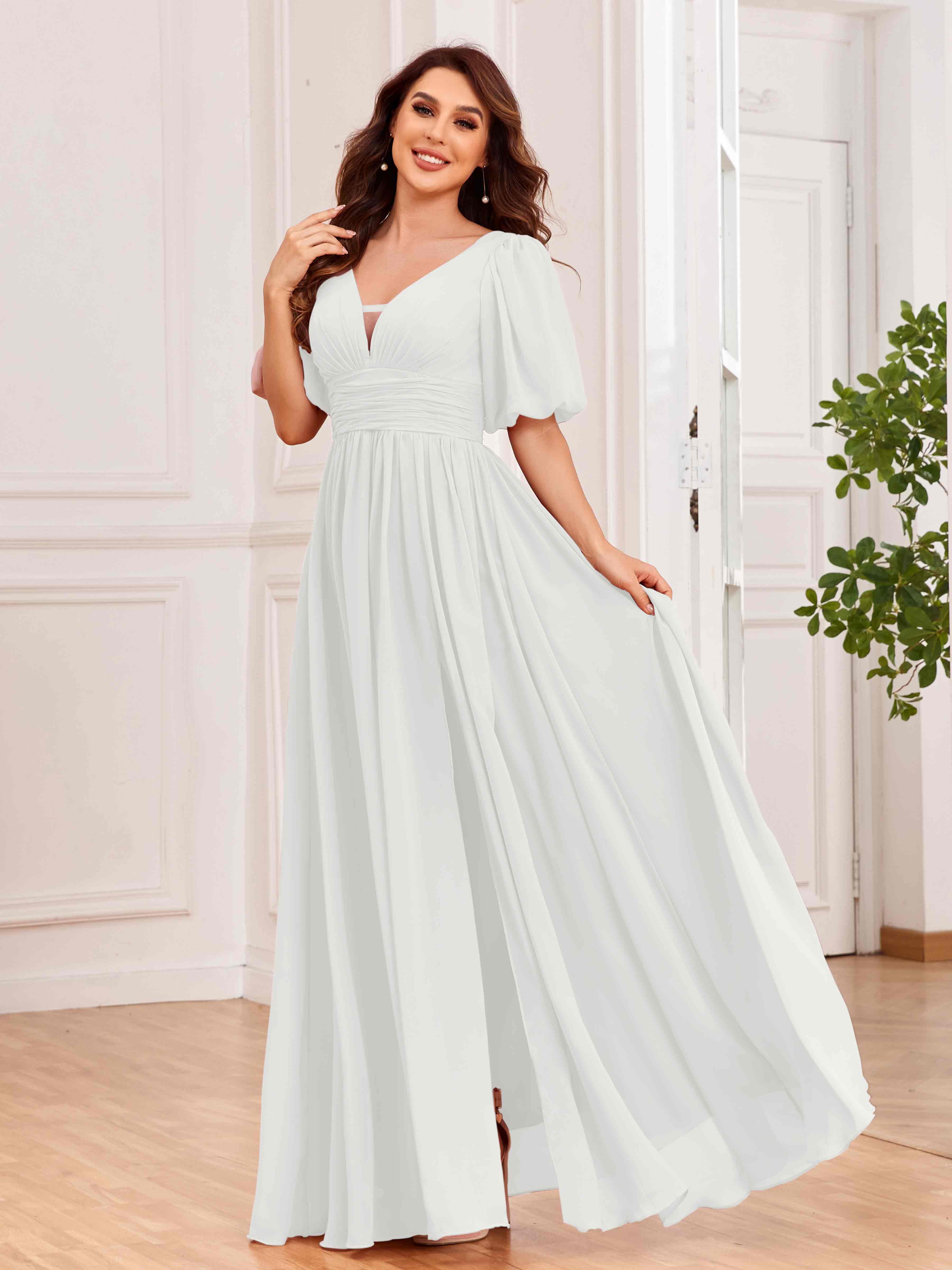 Ces robes sont l'incarnation du glamour et de la sophistication, conçues pour faire sensation lors de toute occasion spéciale. Le décolleté en V ajoute une touche d'allure, tandis que les manches lanternes créent un look romantique et fantaisiste.
