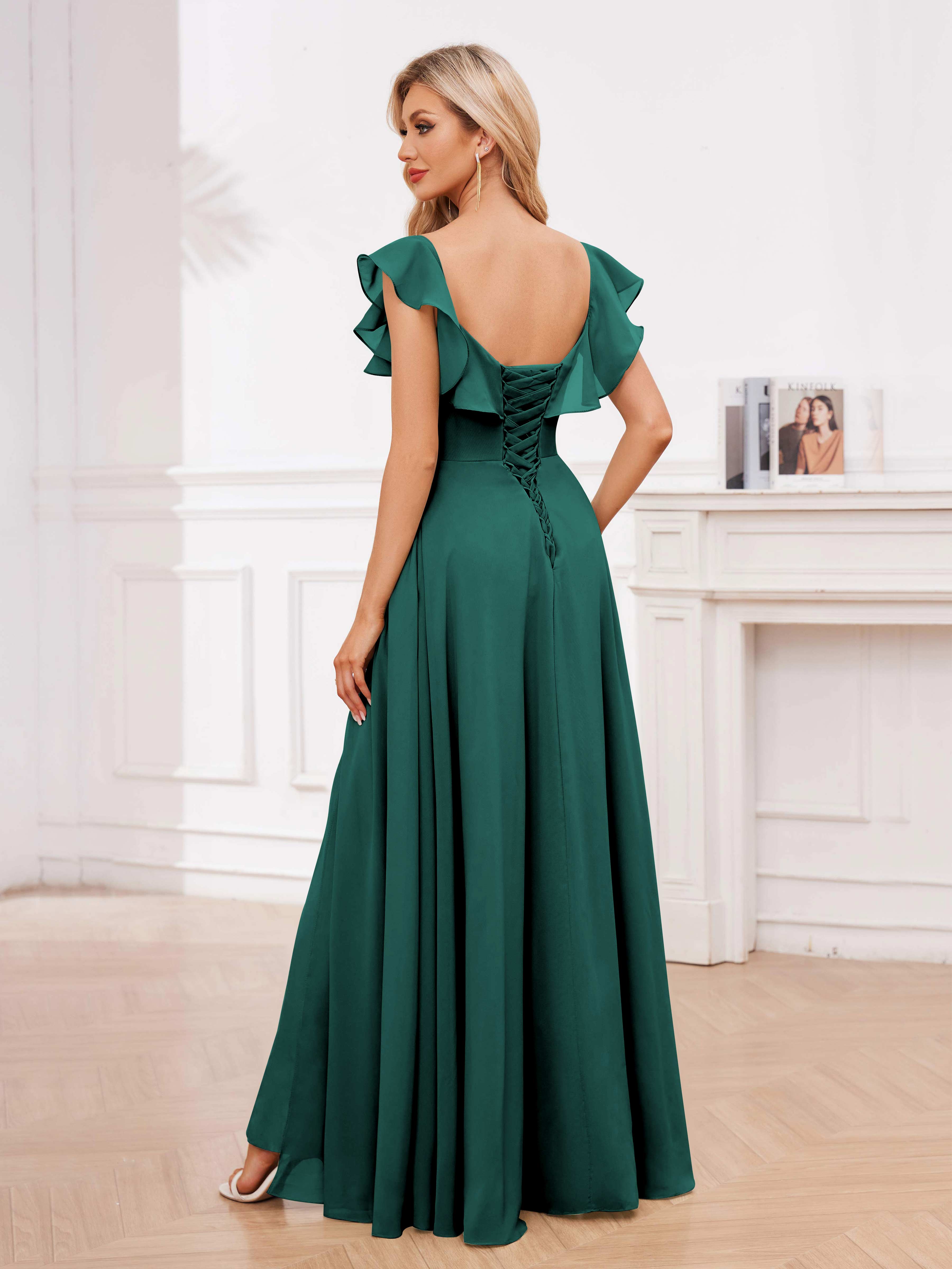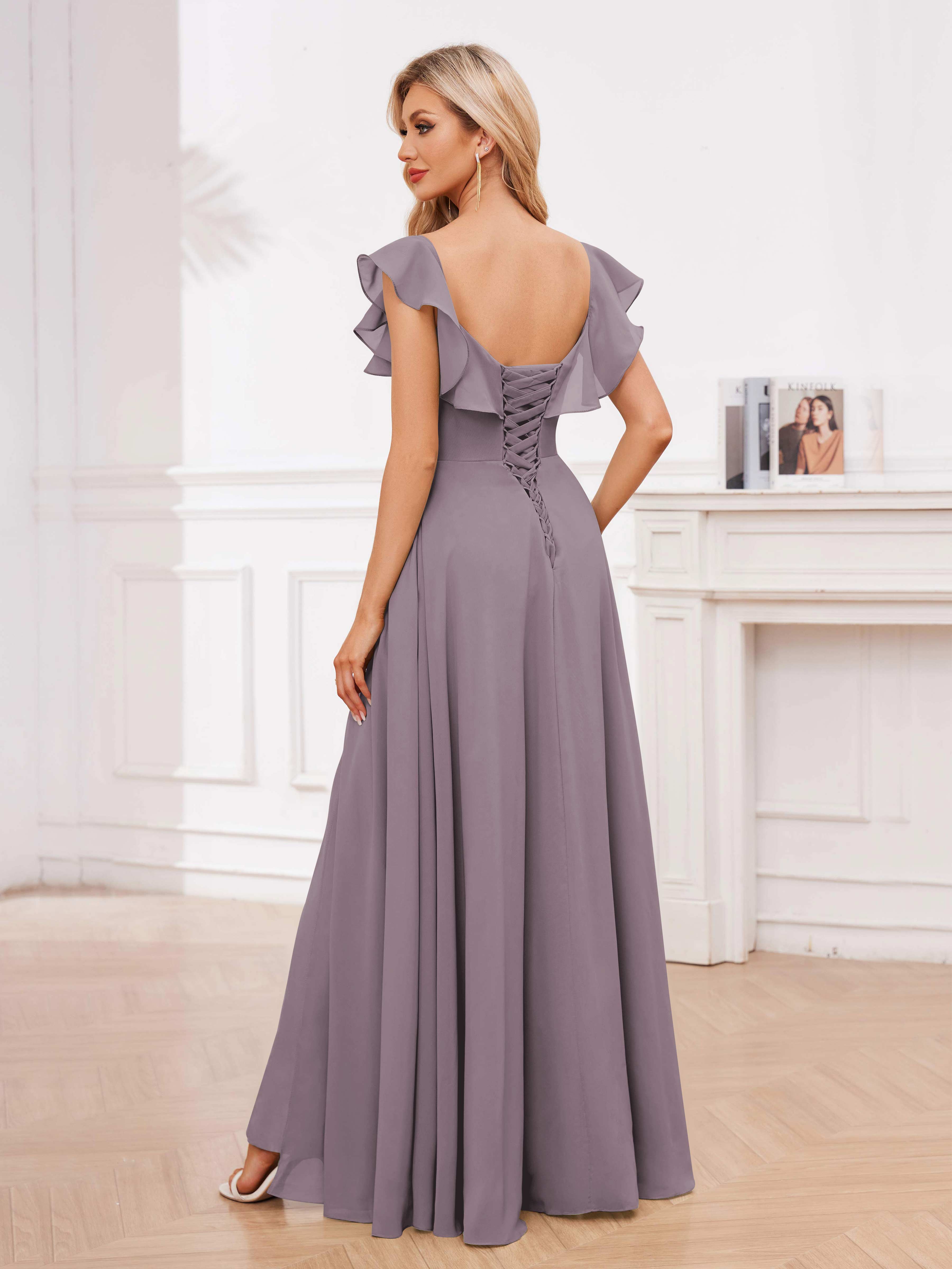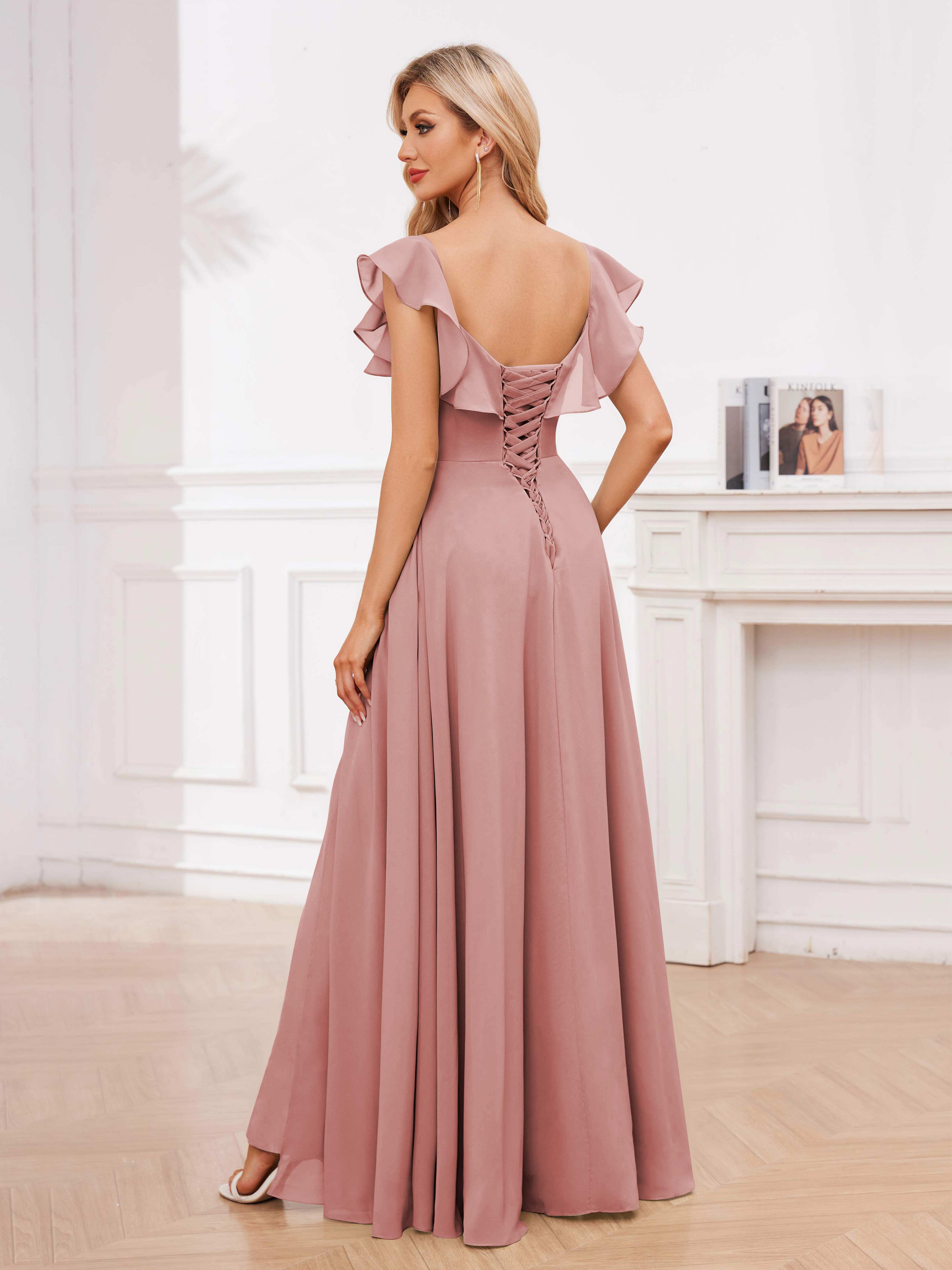 Robes De Demoiselle D'Honneur À Manches Courtes Fente À Jambe Avec Poches Zelda