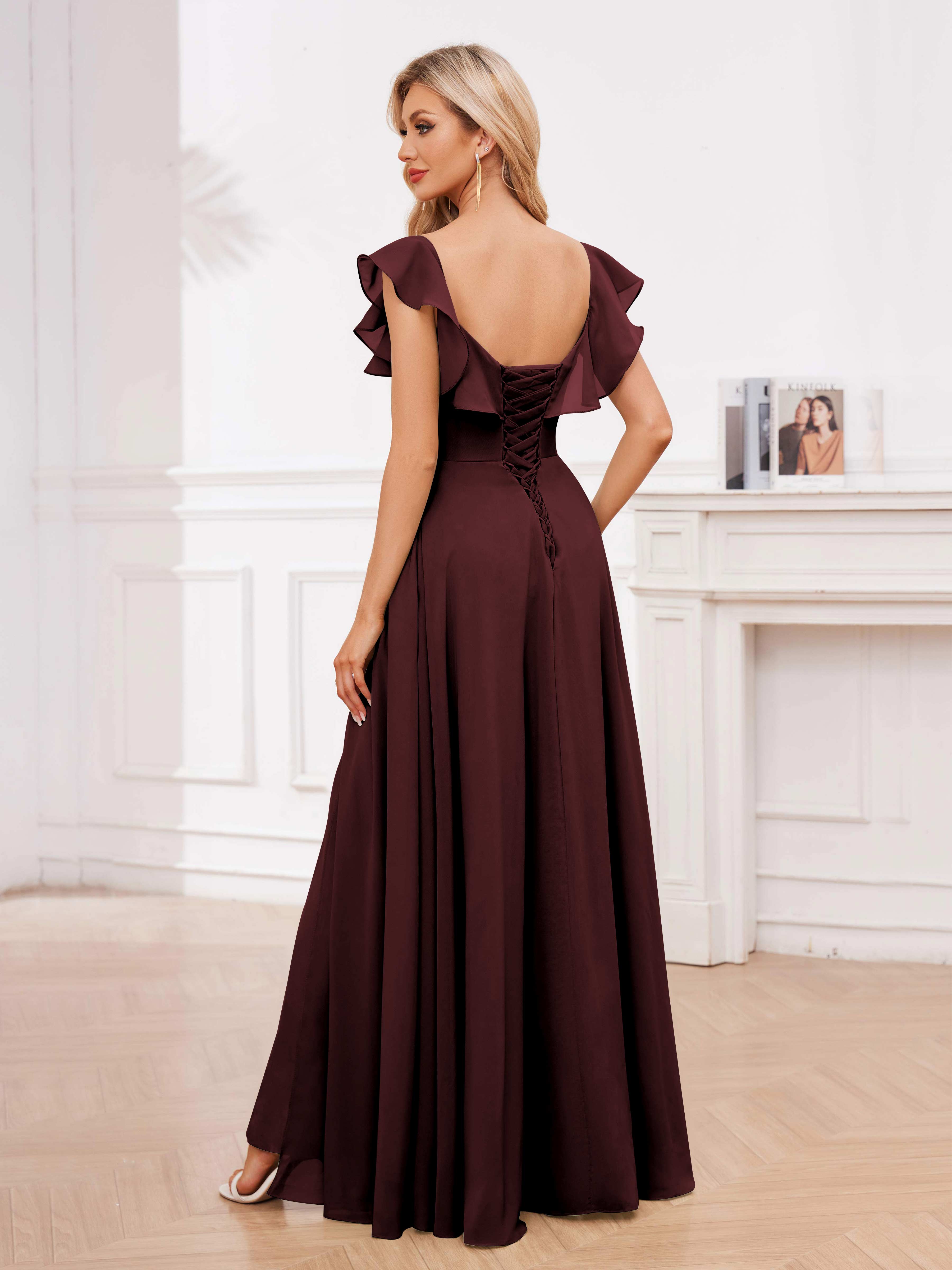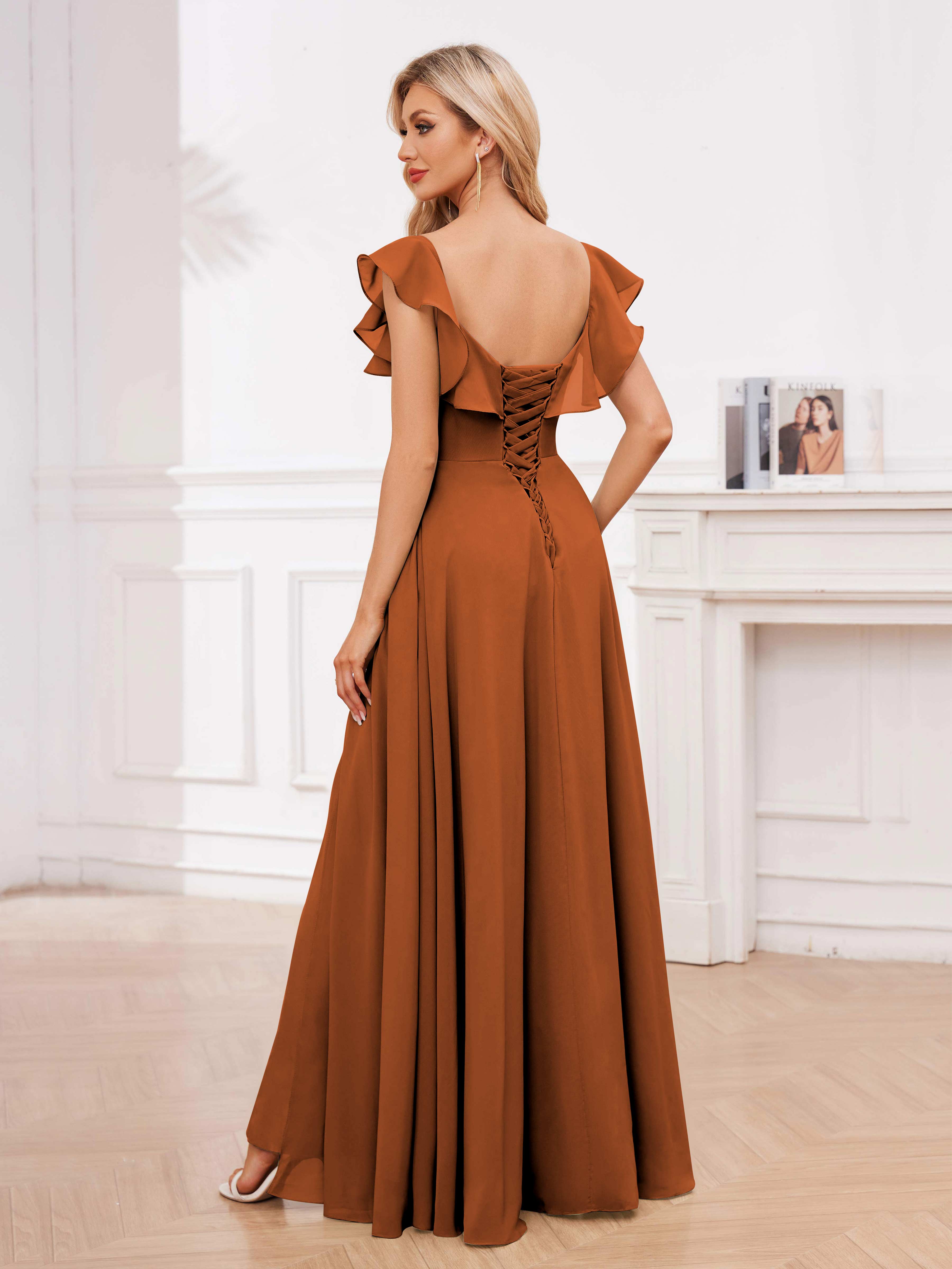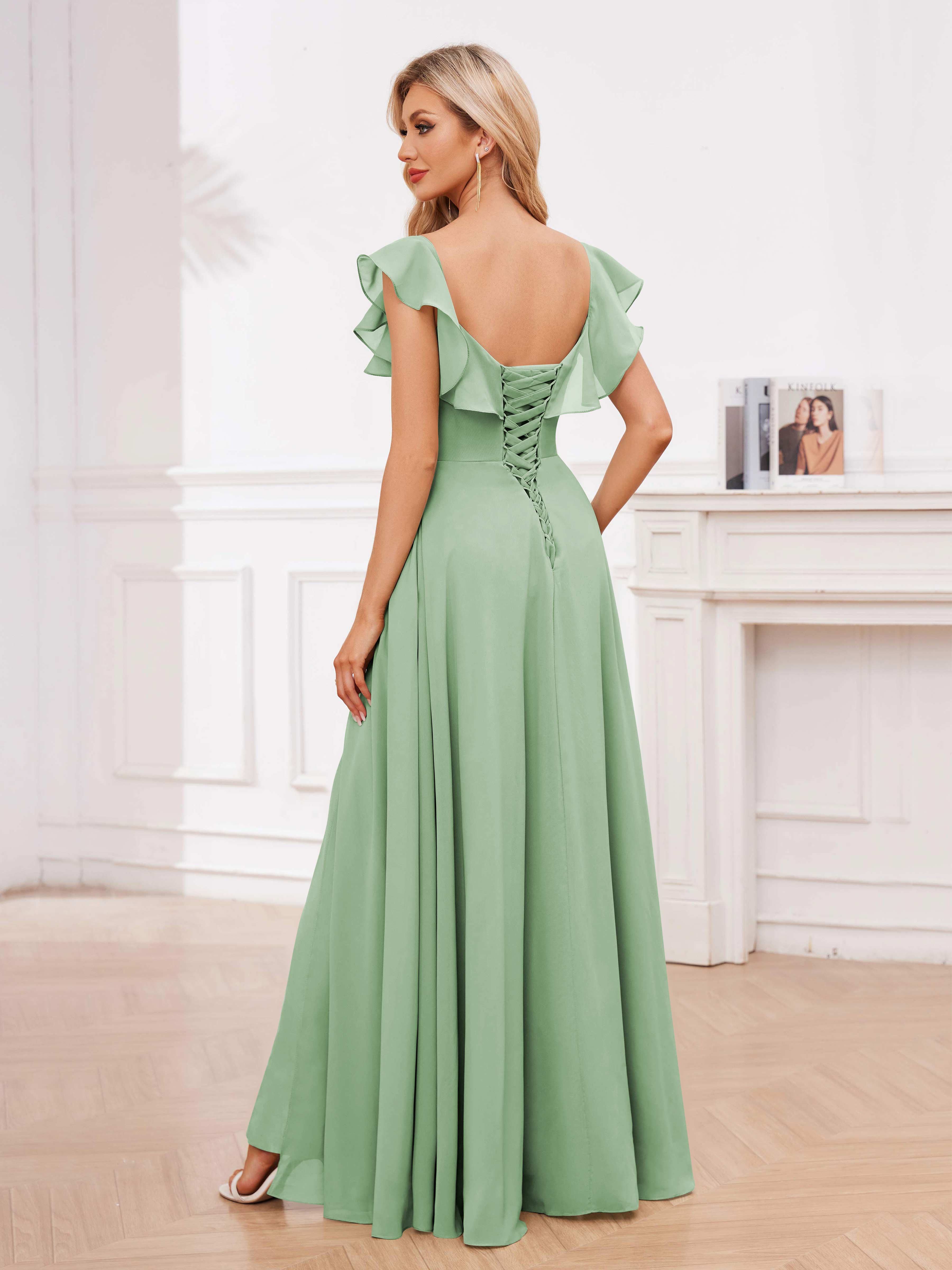 Robes De Demoiselle D'Honneur À Manches Courtes Fente À Jambe Avec Poches Zelda