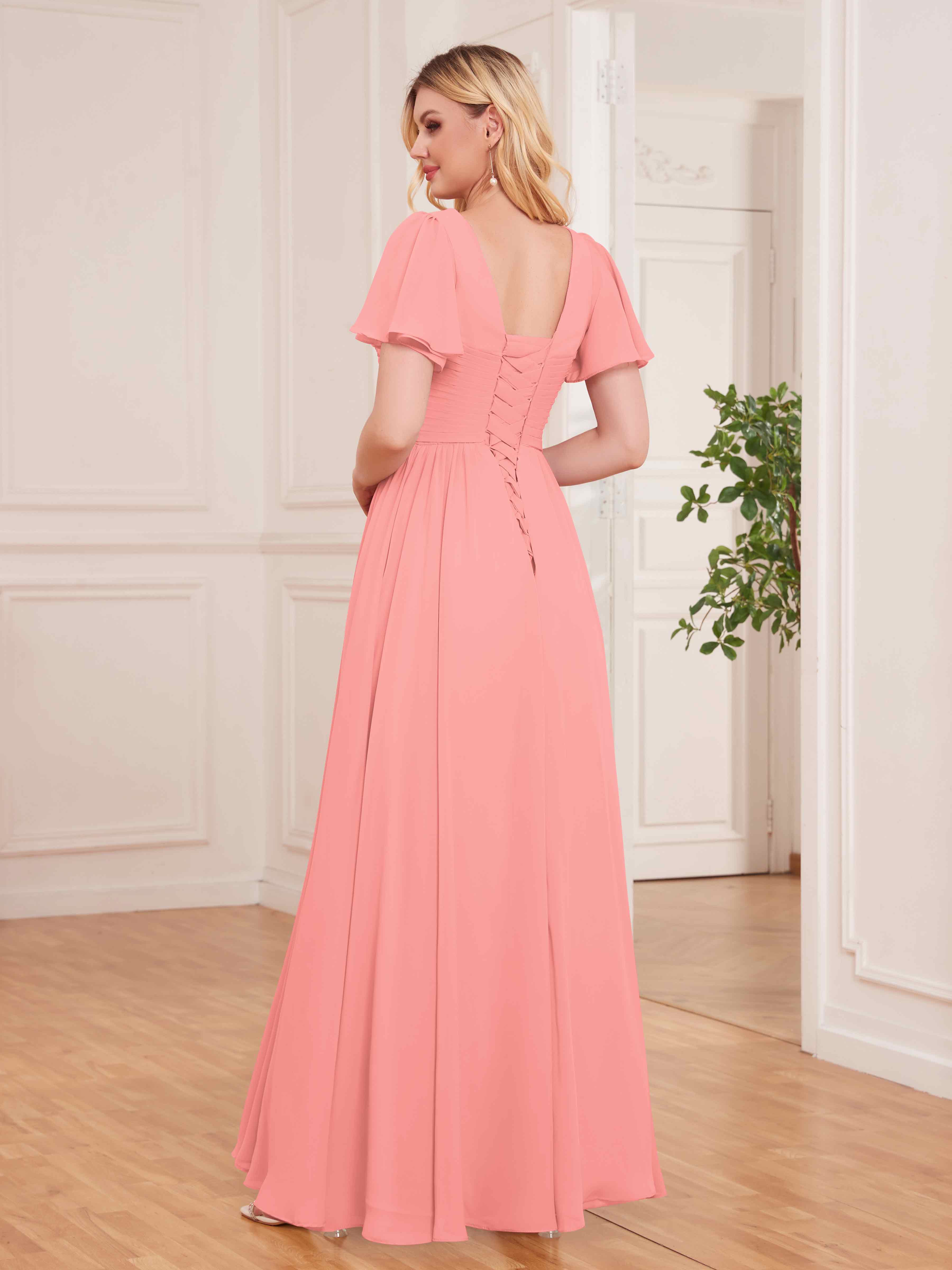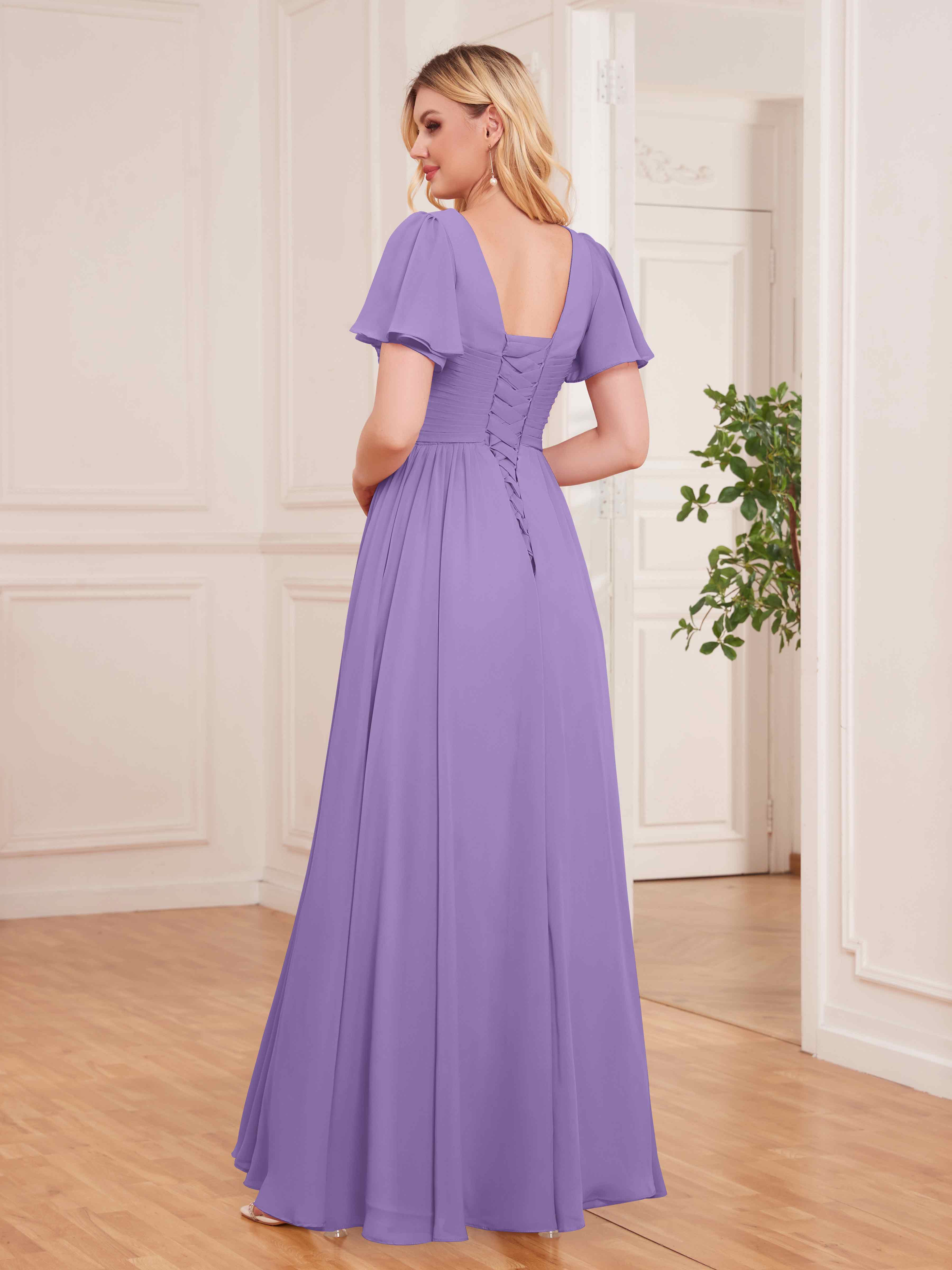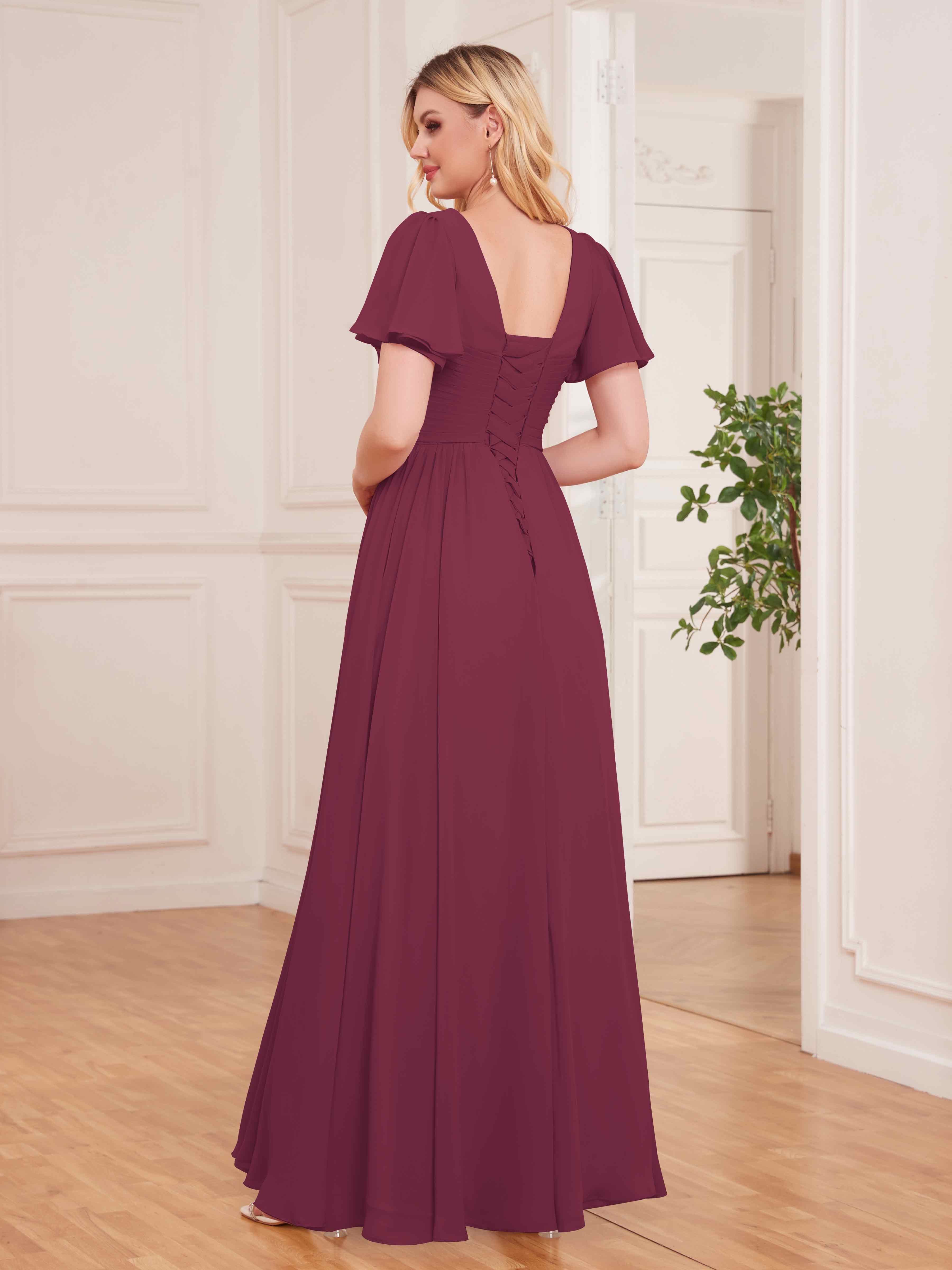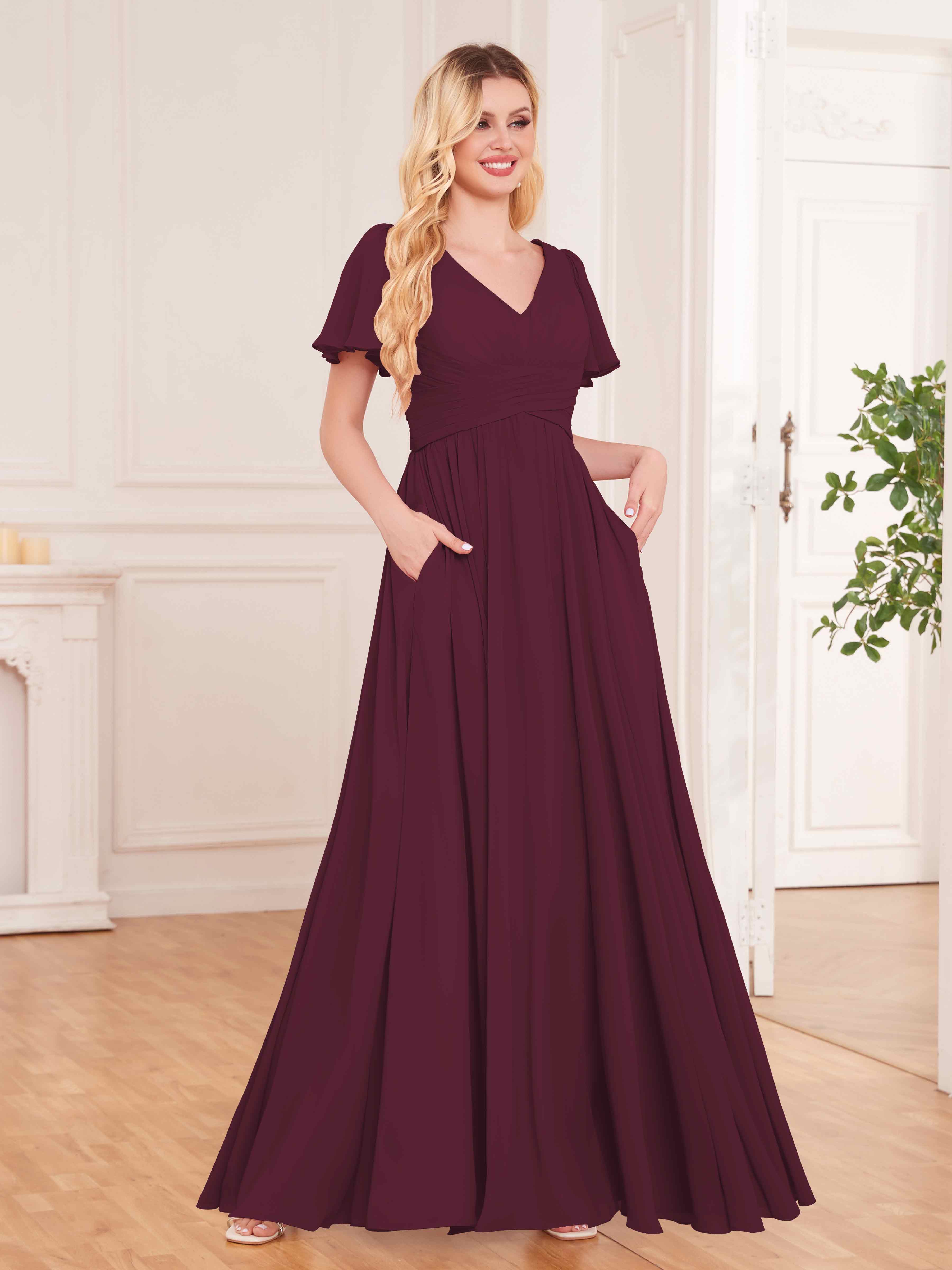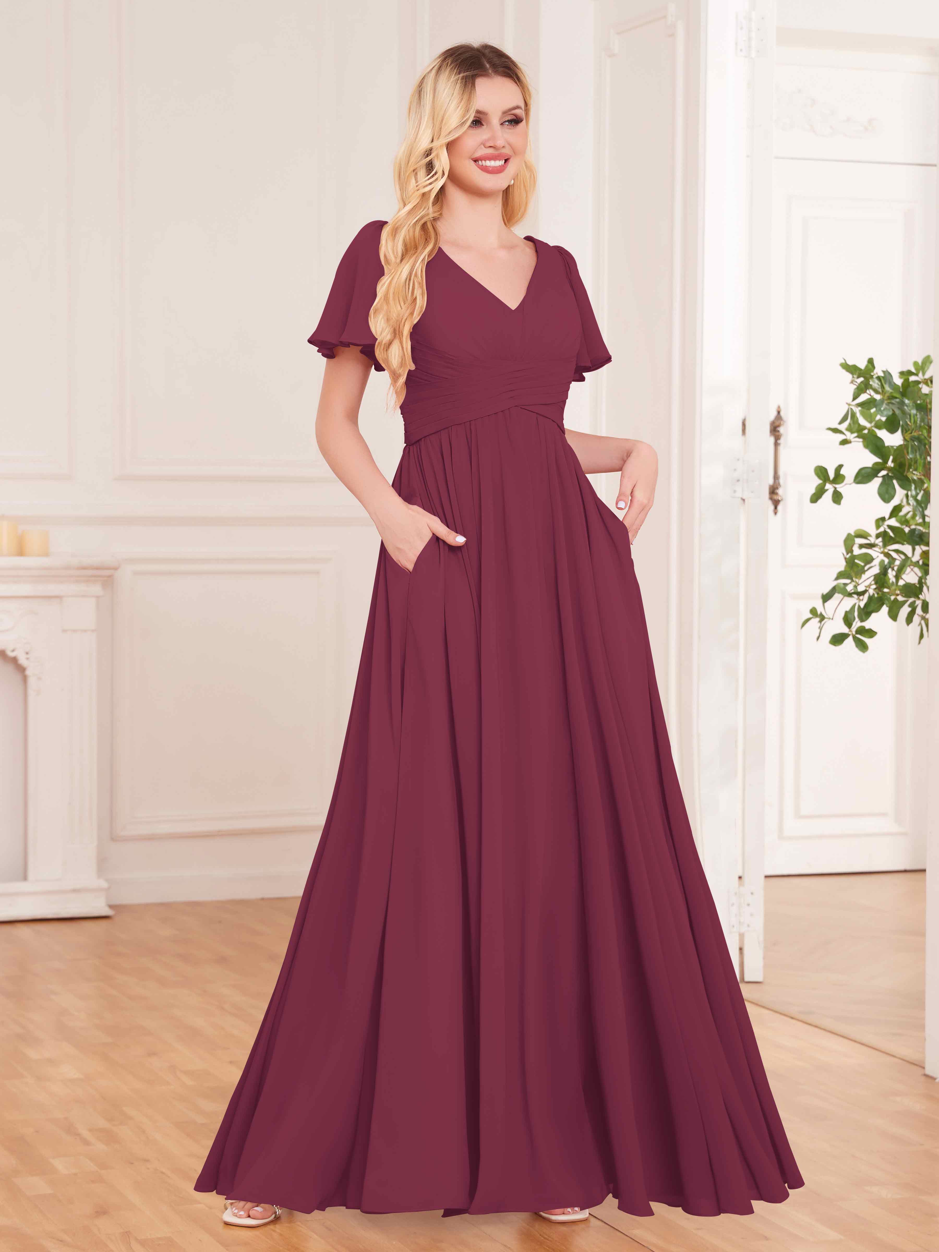 Robes De Demoiselle D'Honneur À Manches Courtes Longueur Au Sol Reese