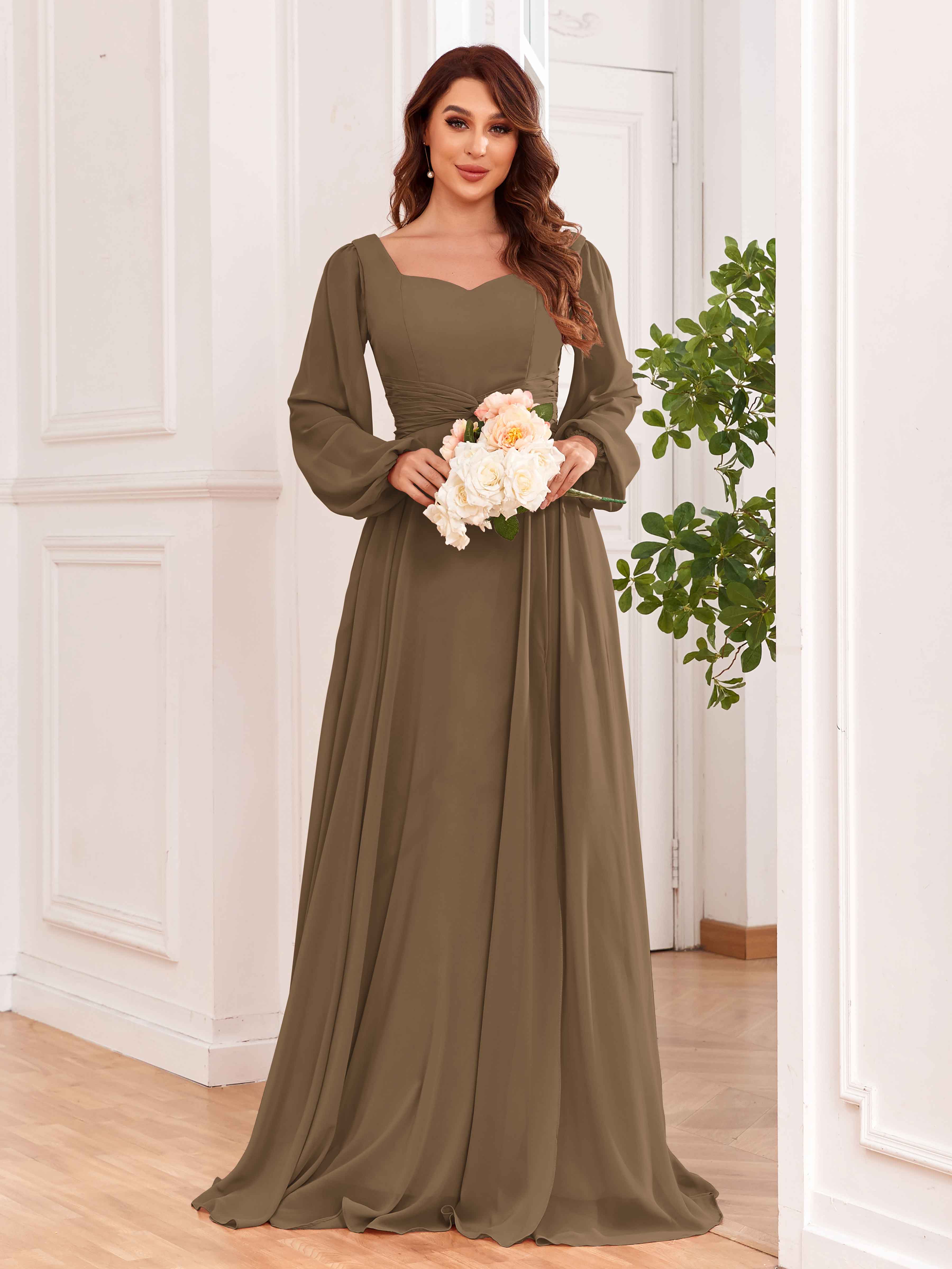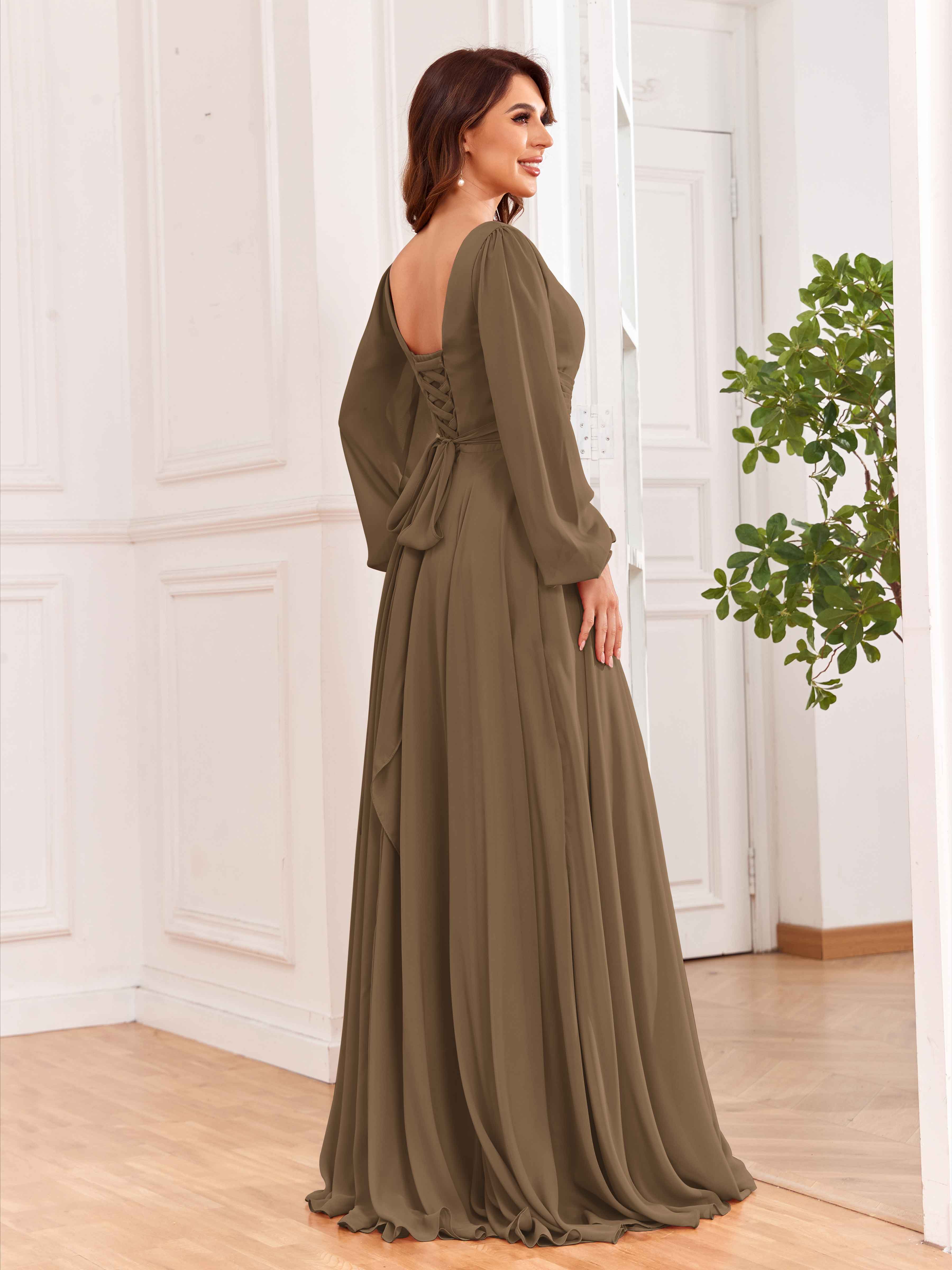 Robes De Demoiselle D'Honneur À Manches Longues Et Fente À Jambe Raelynn