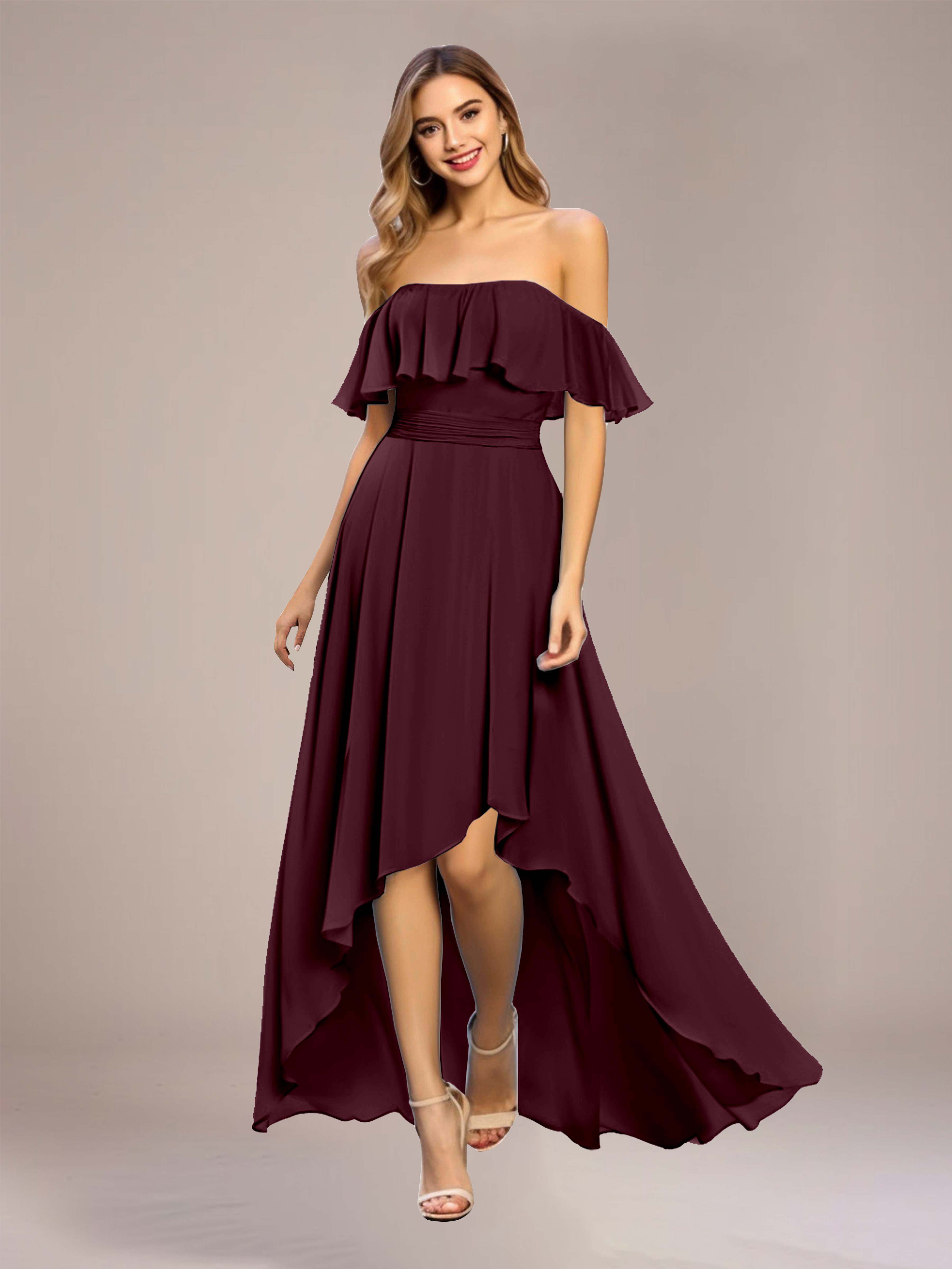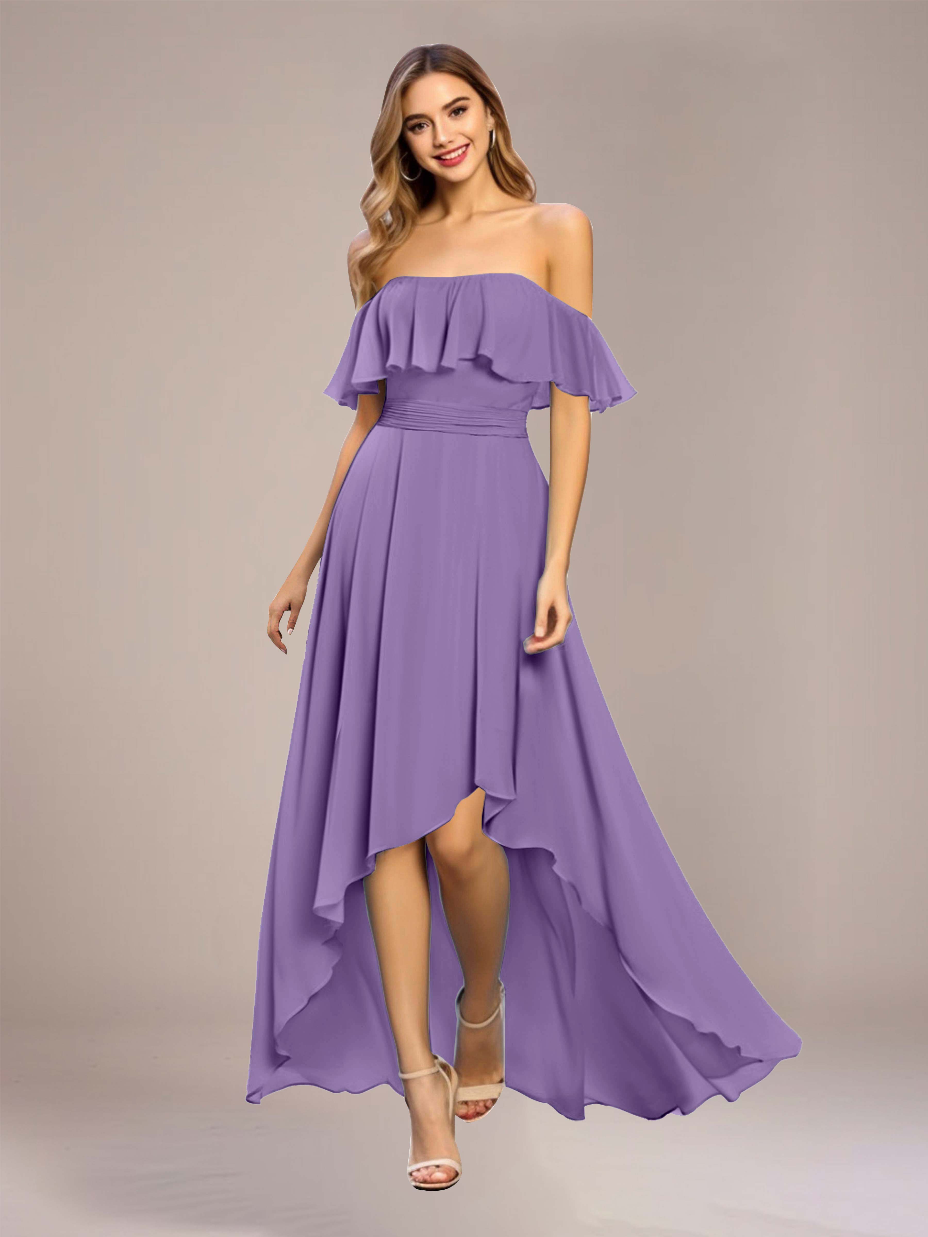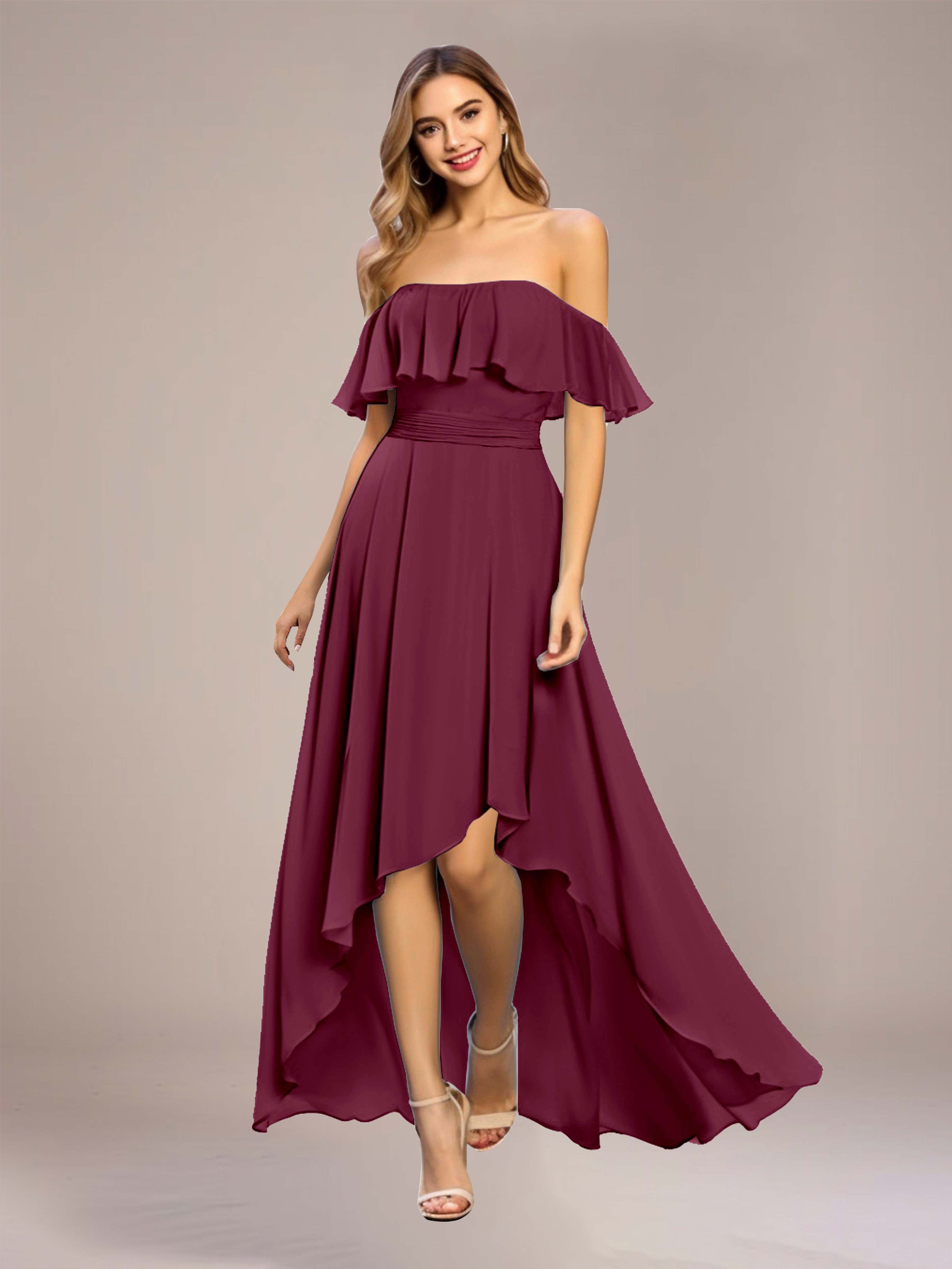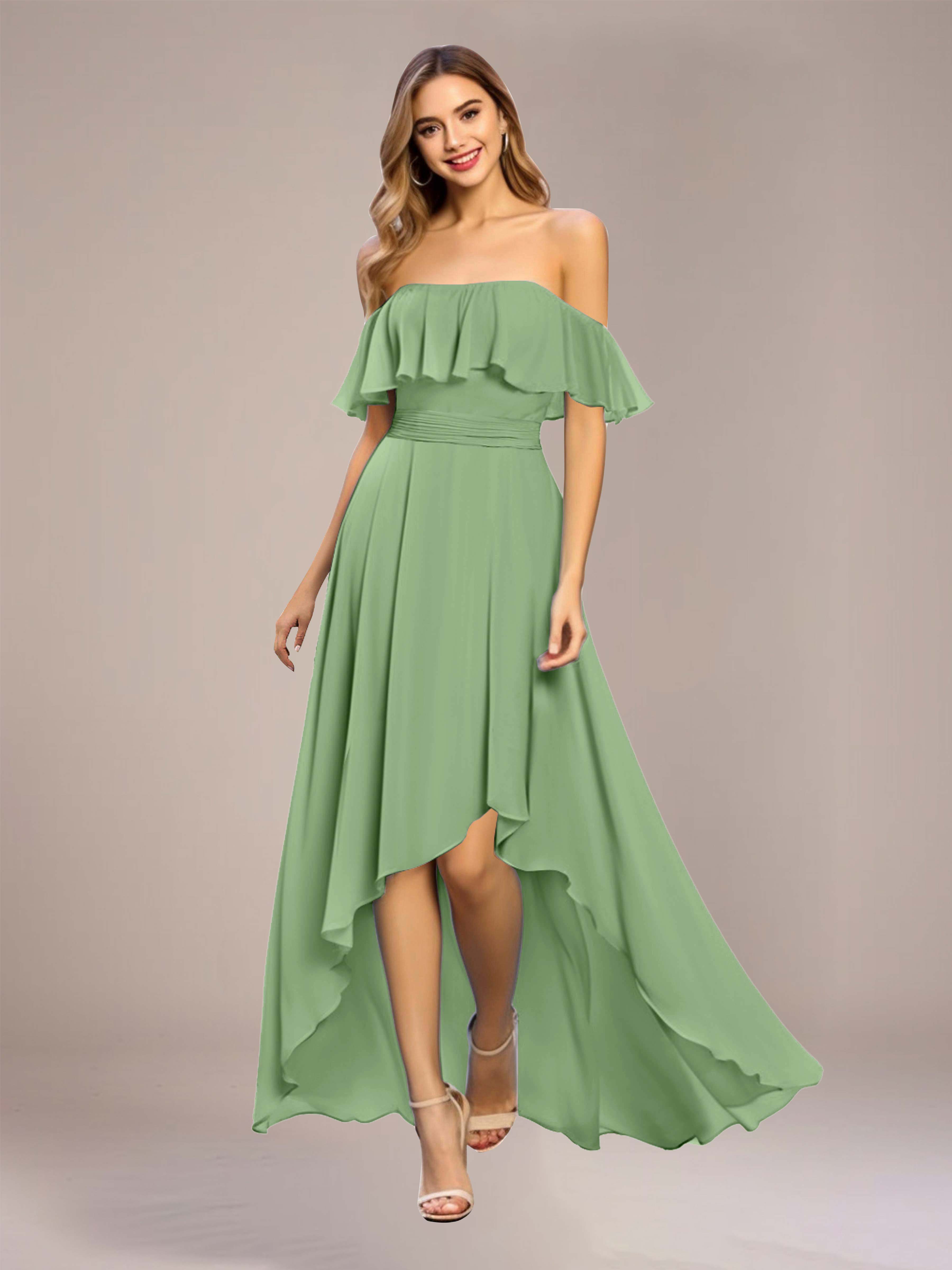 Robes De Demoiselle D'Honneur À Volants Et Épaules Dénudées Kaia