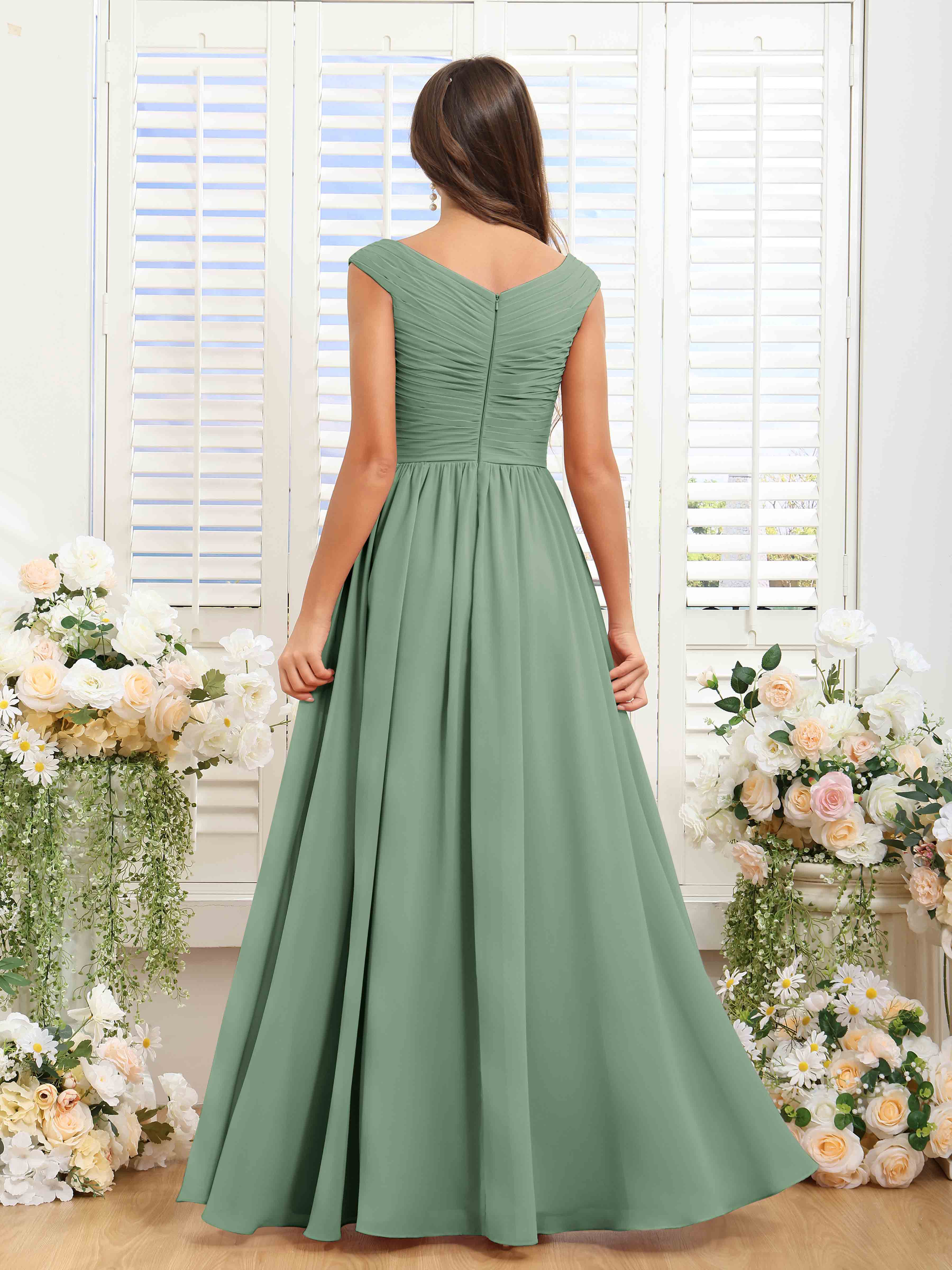 Robes De Demoiselle D'Honneur En Mousseline À Col V Ruché Cressida