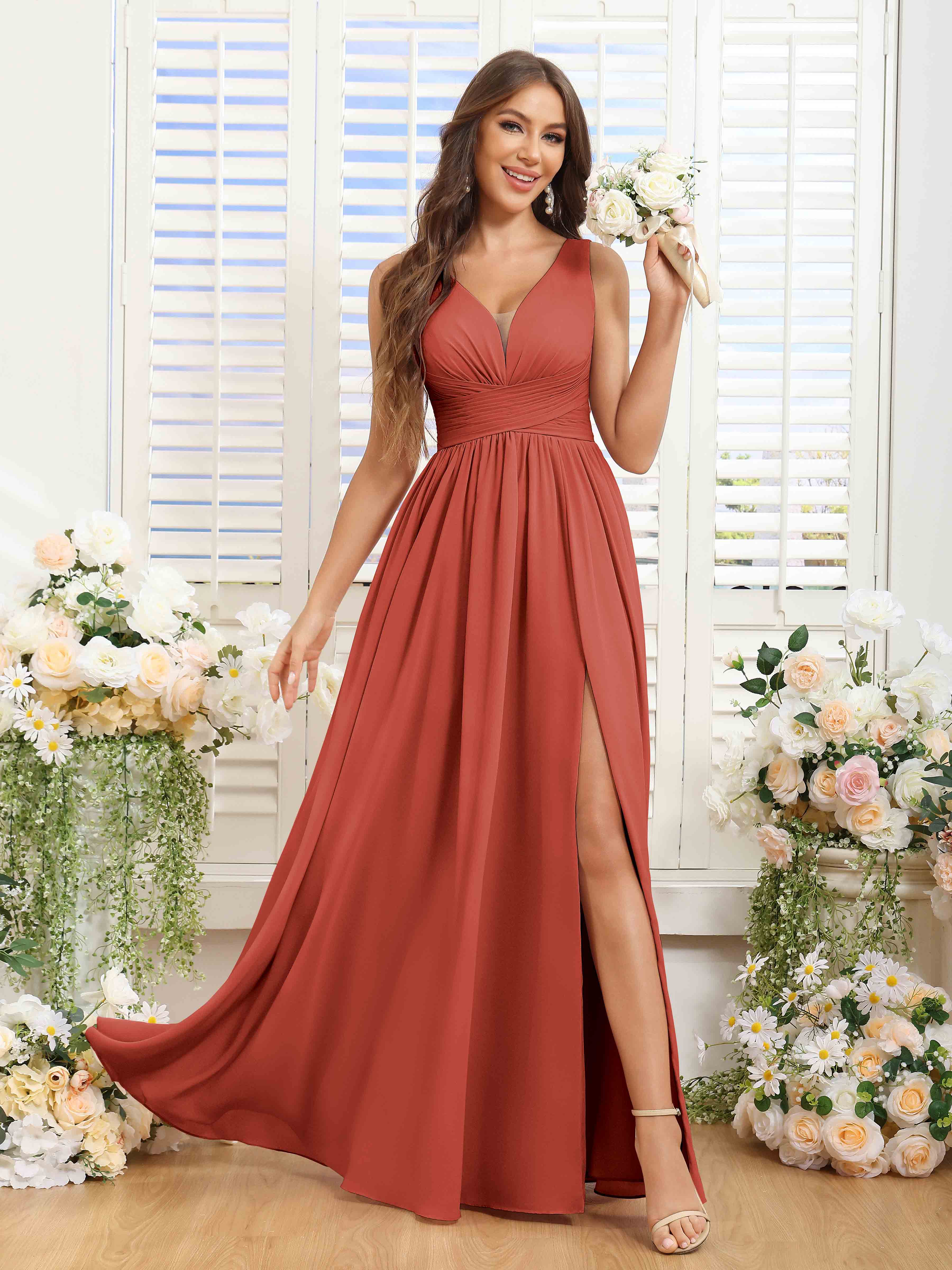 Robes De Demoiselle D'Honneur En Mousseline À Col V Ruché Eira