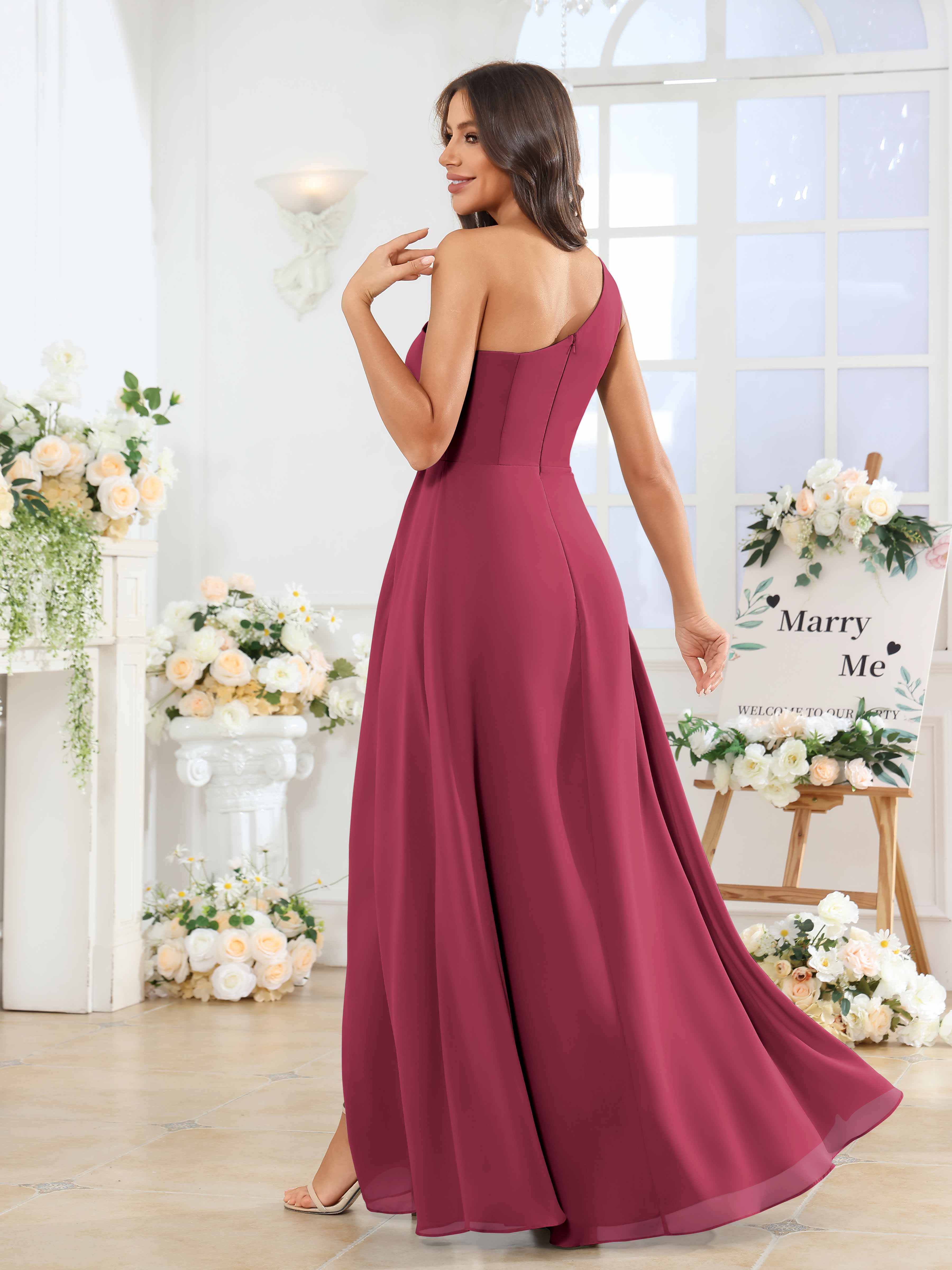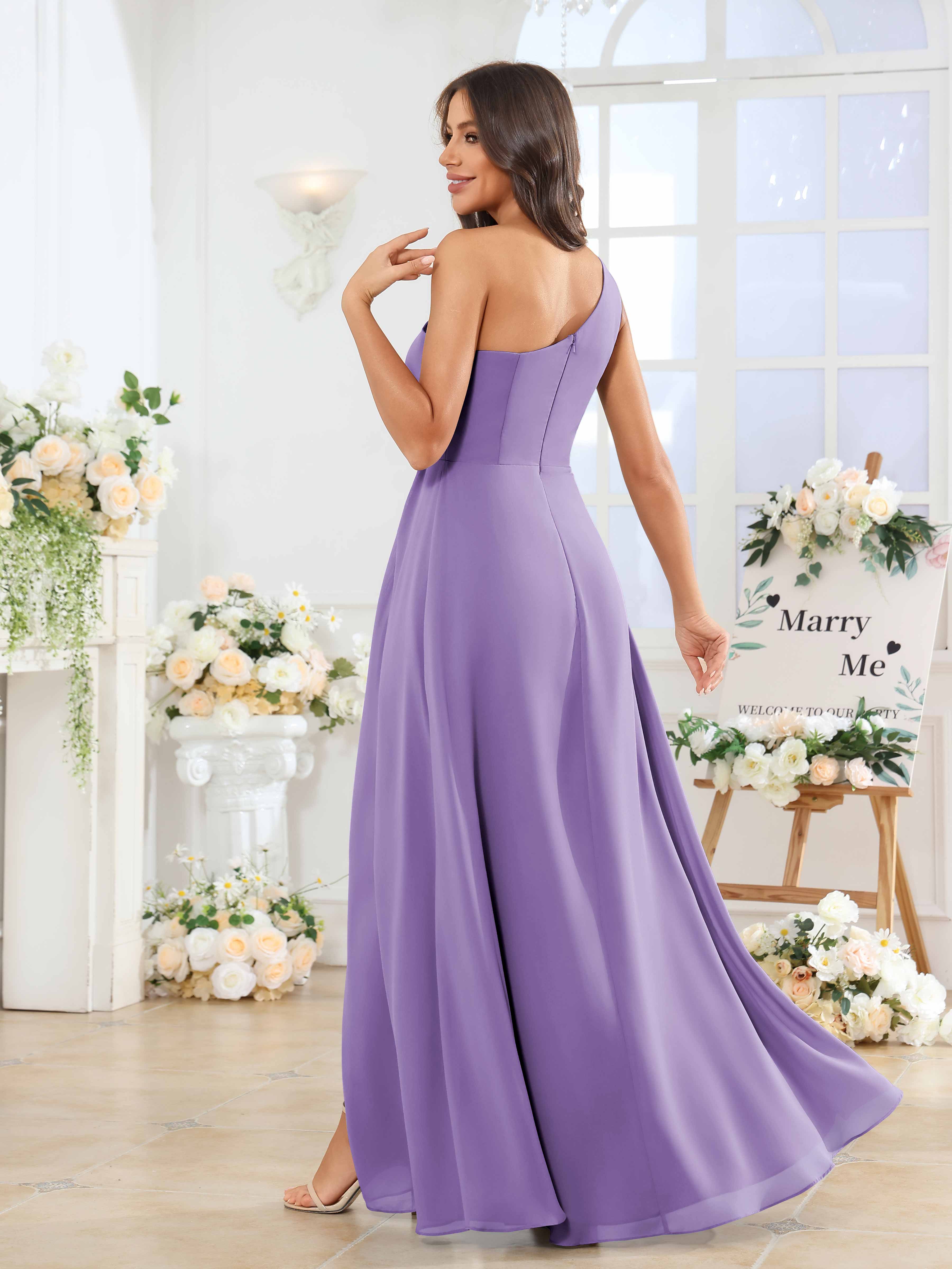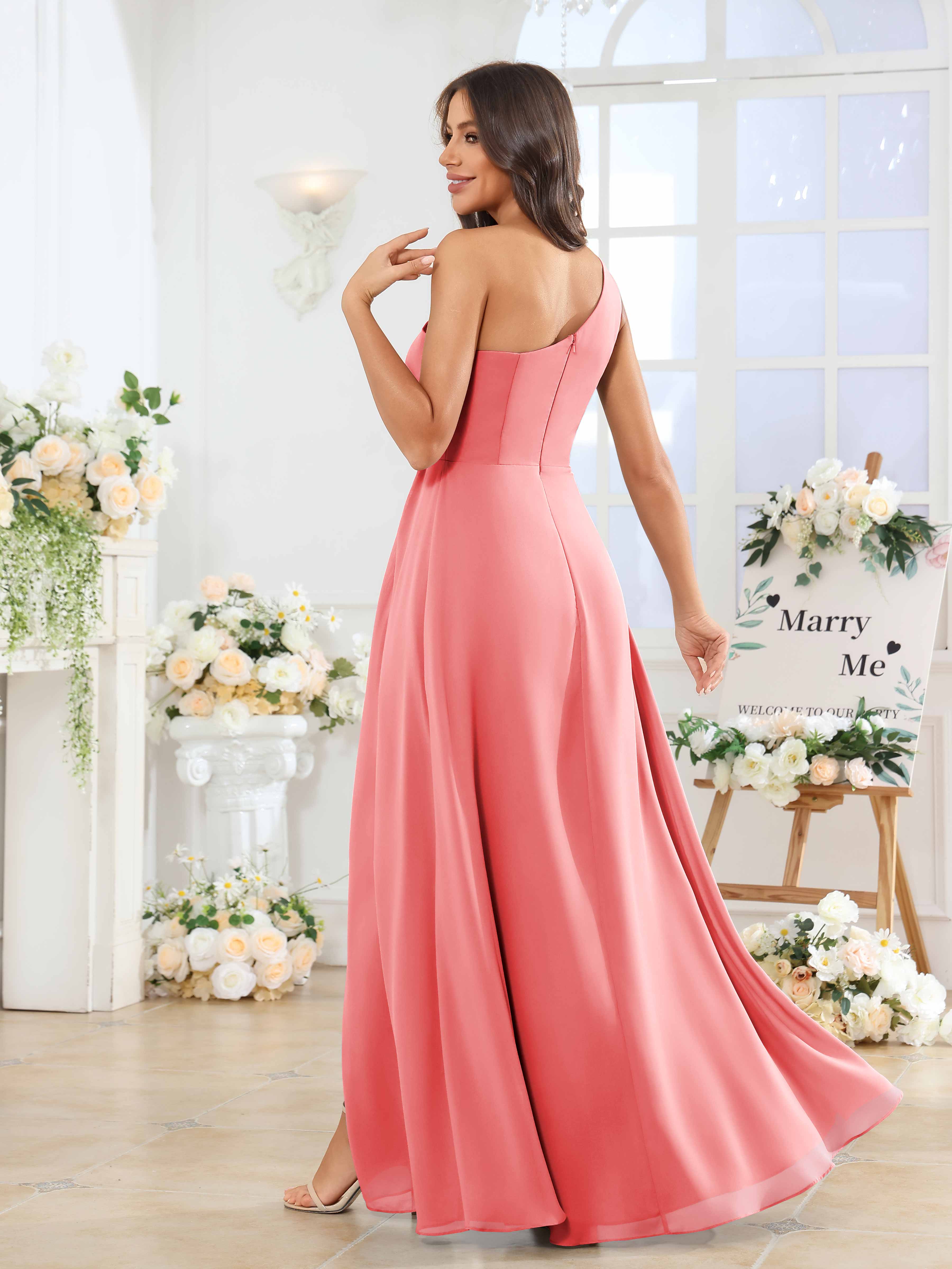 Robes De Demoiselle D'Honneur En Mousseline À Plissé Une Épaule Oleander