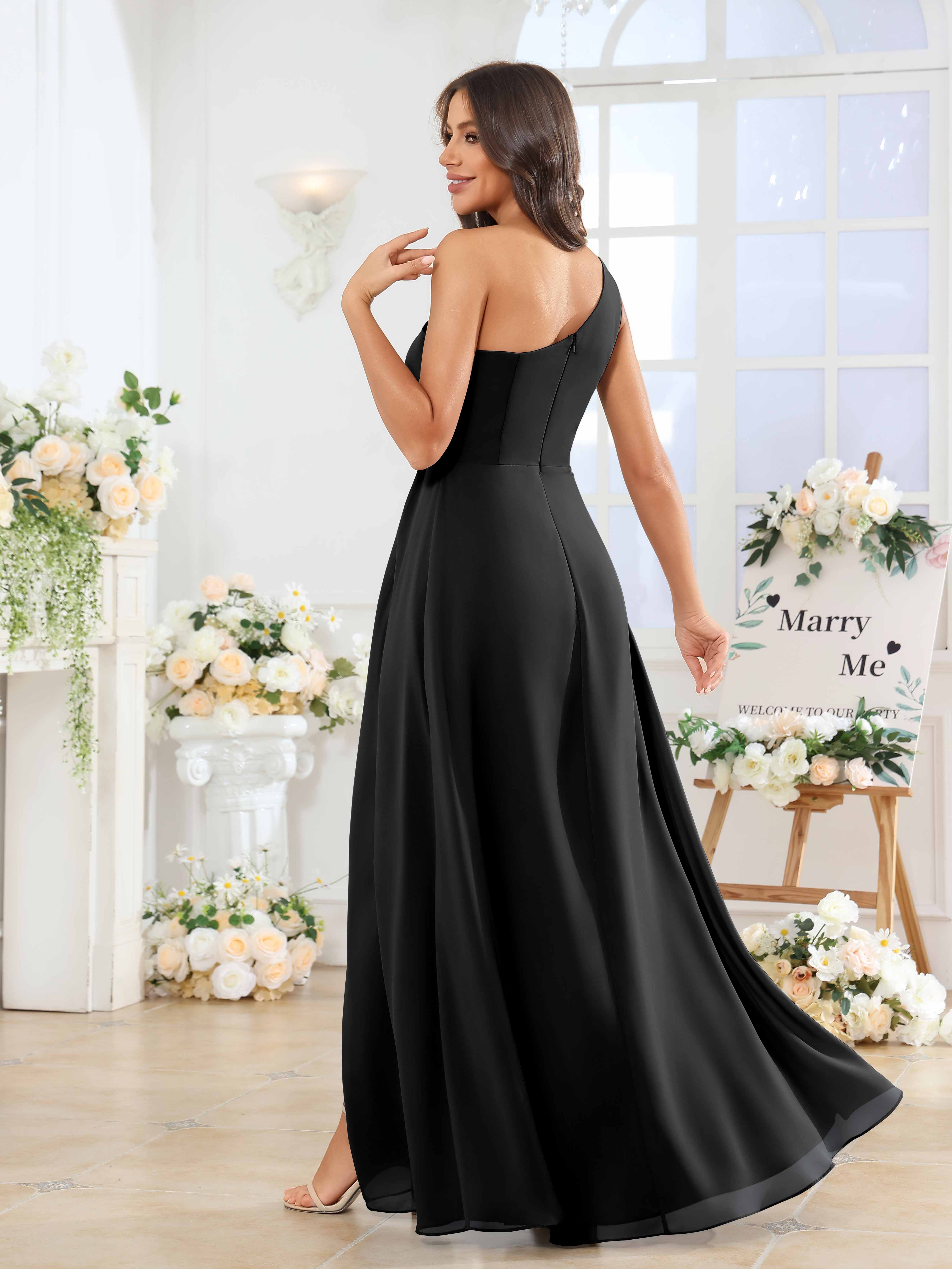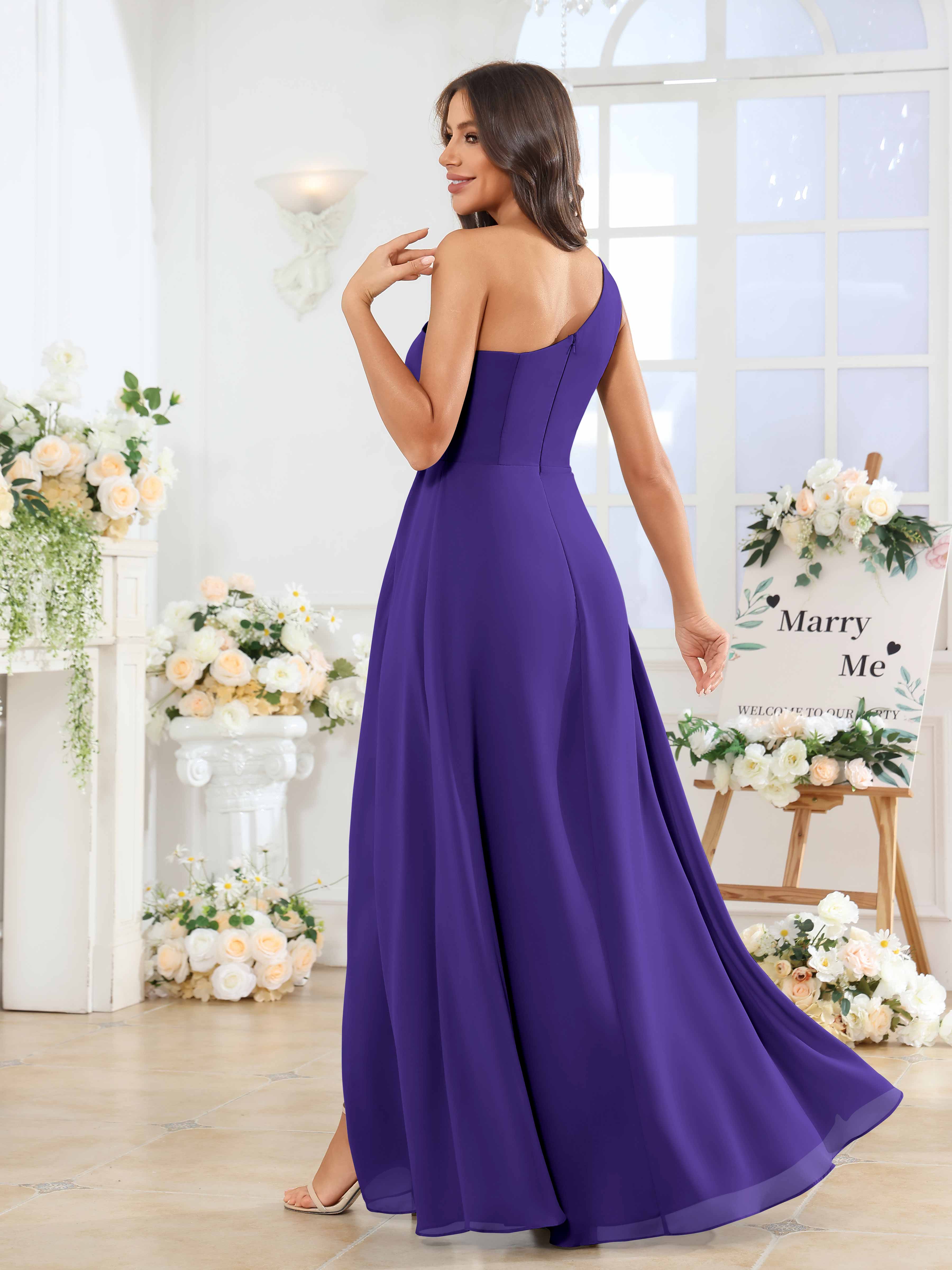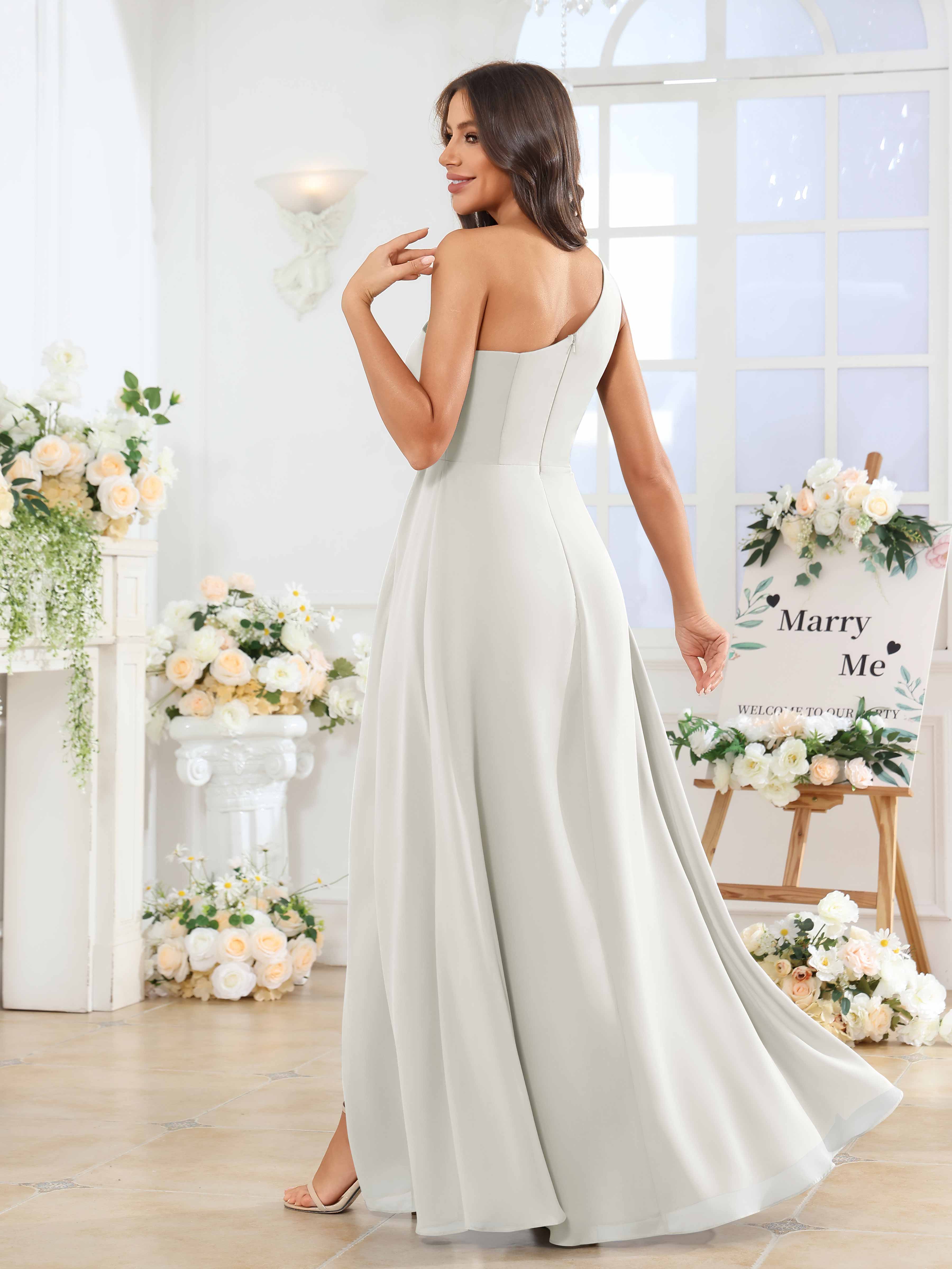 Robes De Demoiselle D'Honneur En Mousseline À Plissé Une Épaule Oleander