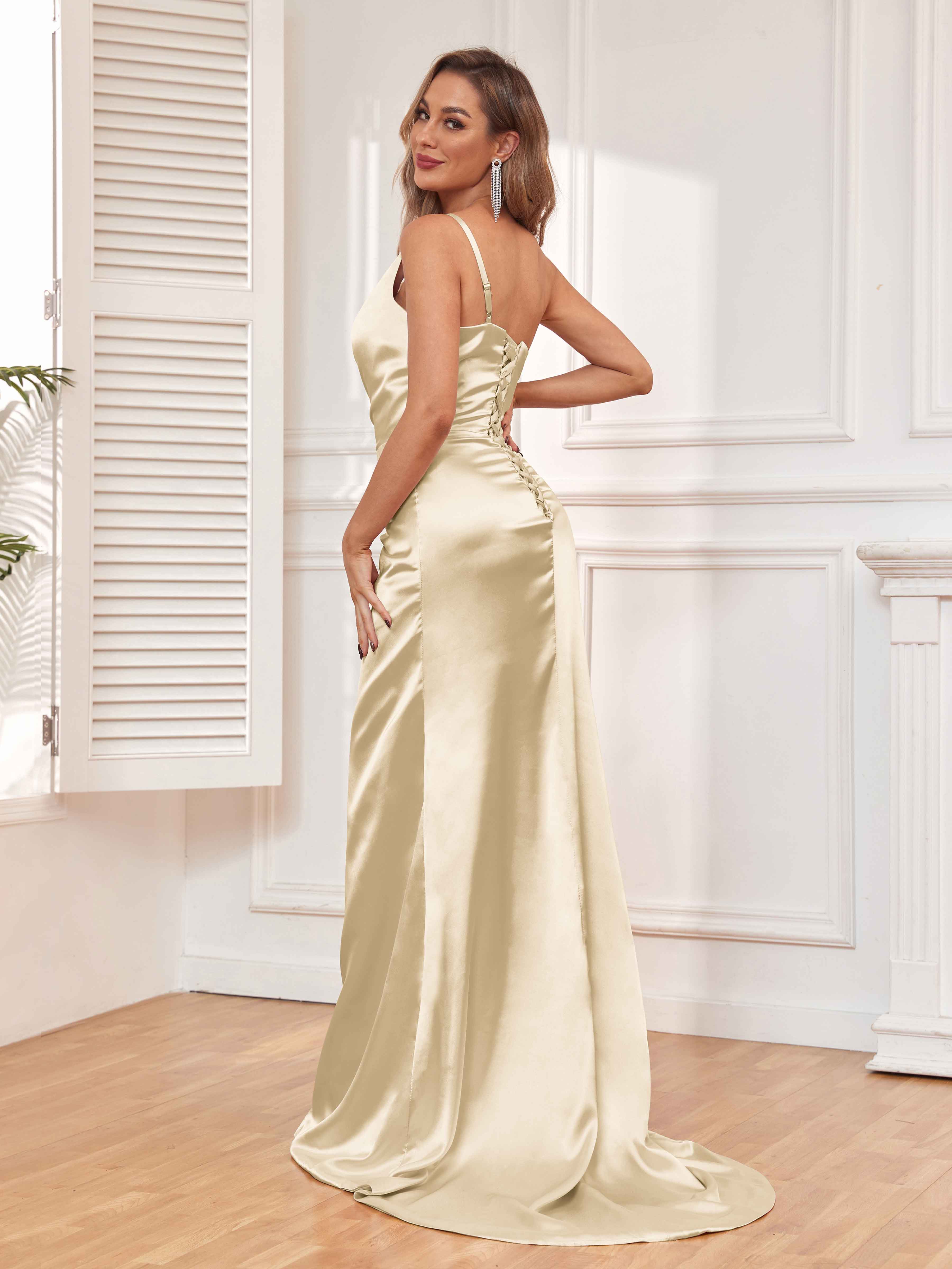 Robes De Demoiselle D'Honneur En Satin À Ruché Une Épaule Paisley