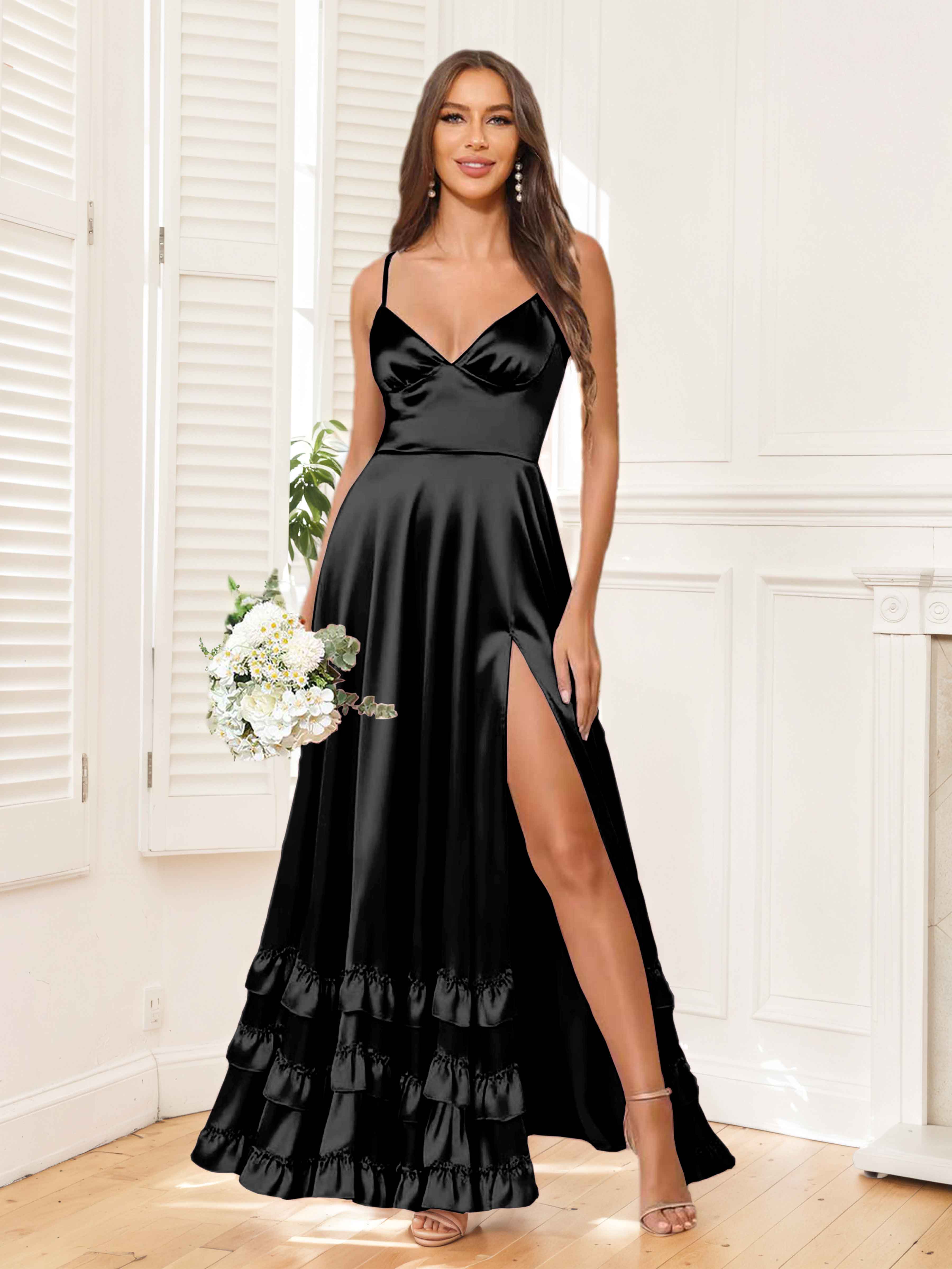 Robes De Demoiselle D'Honneur En Satin À Volants Fente À Jambe Xenia