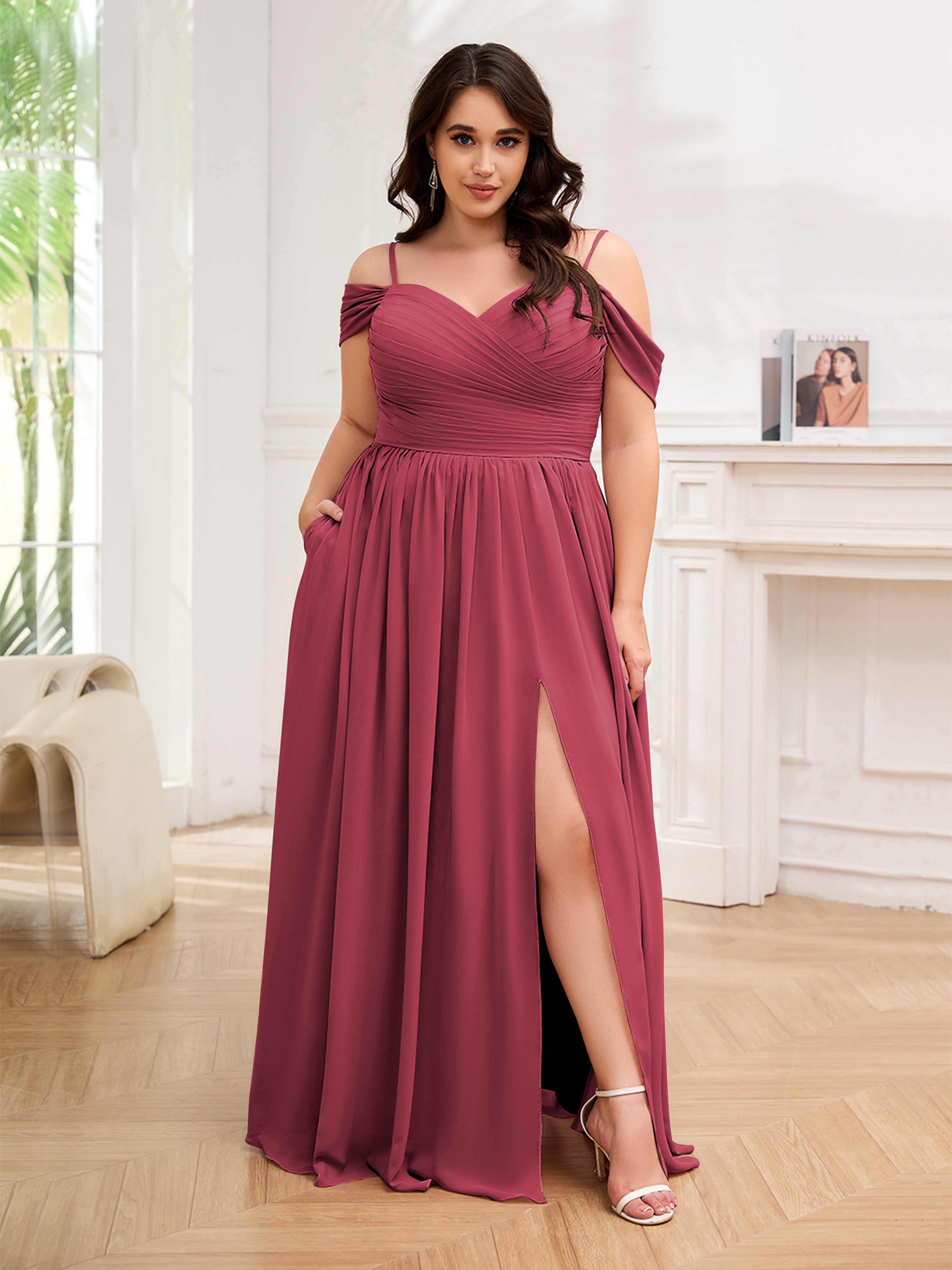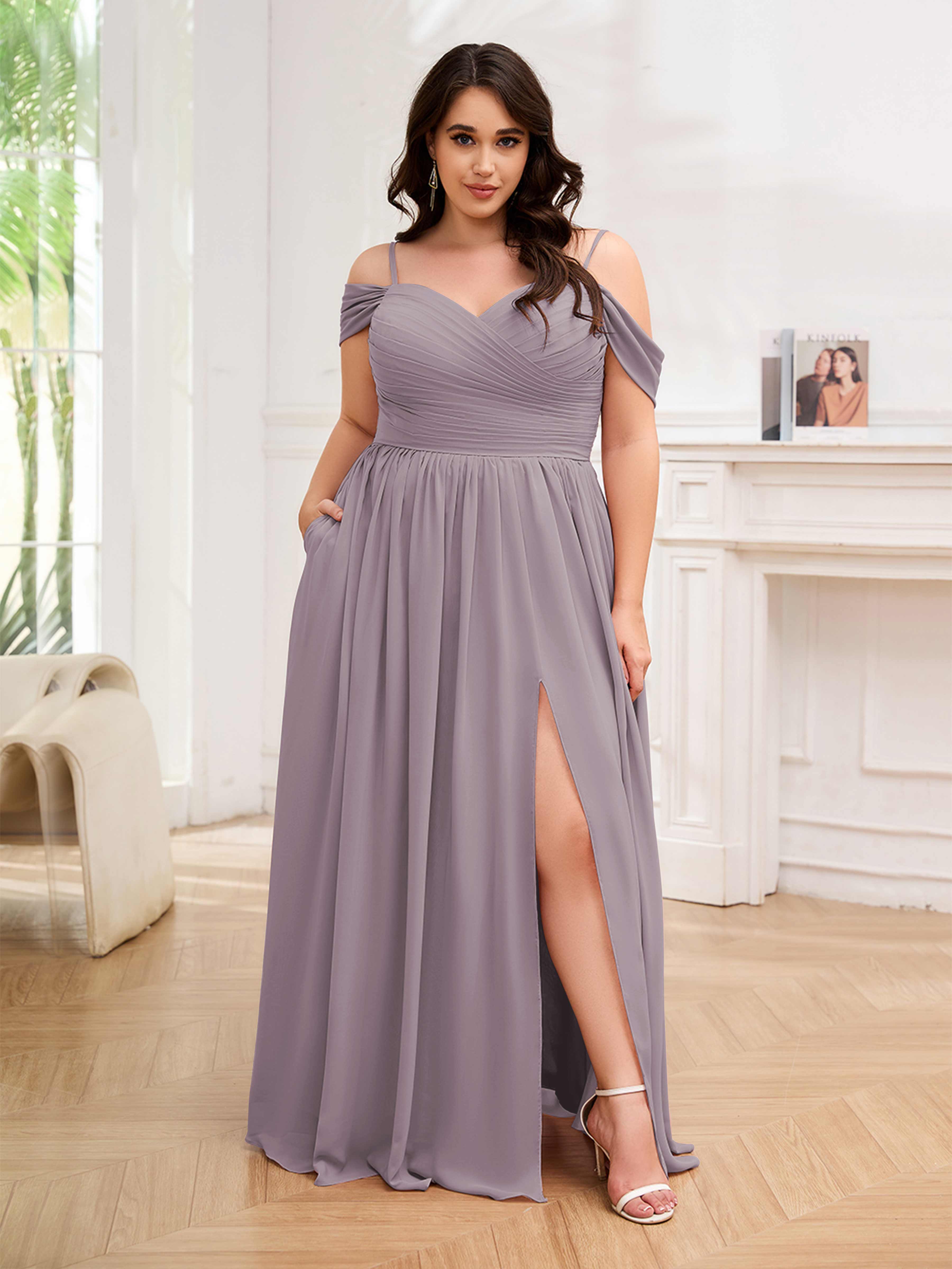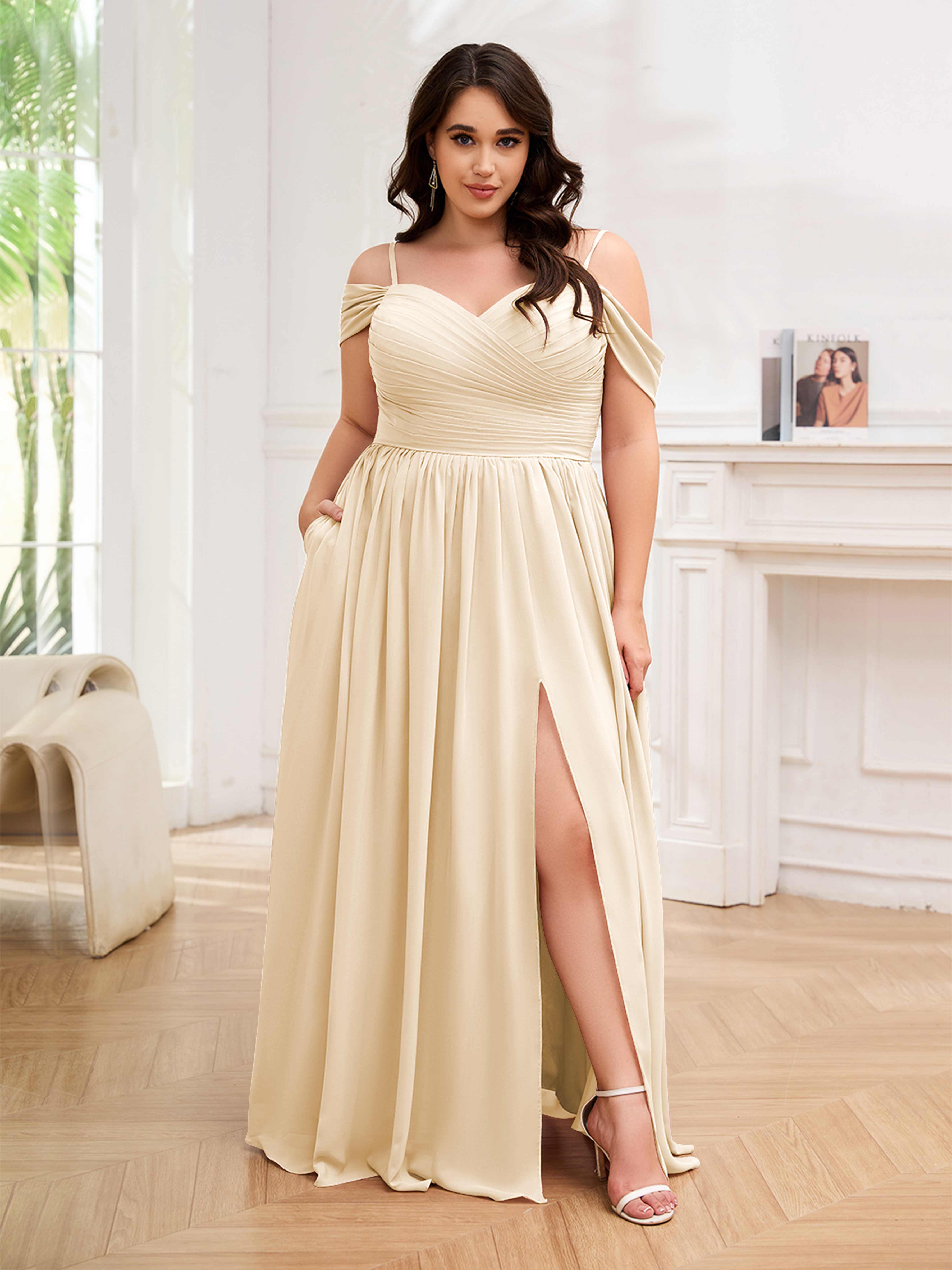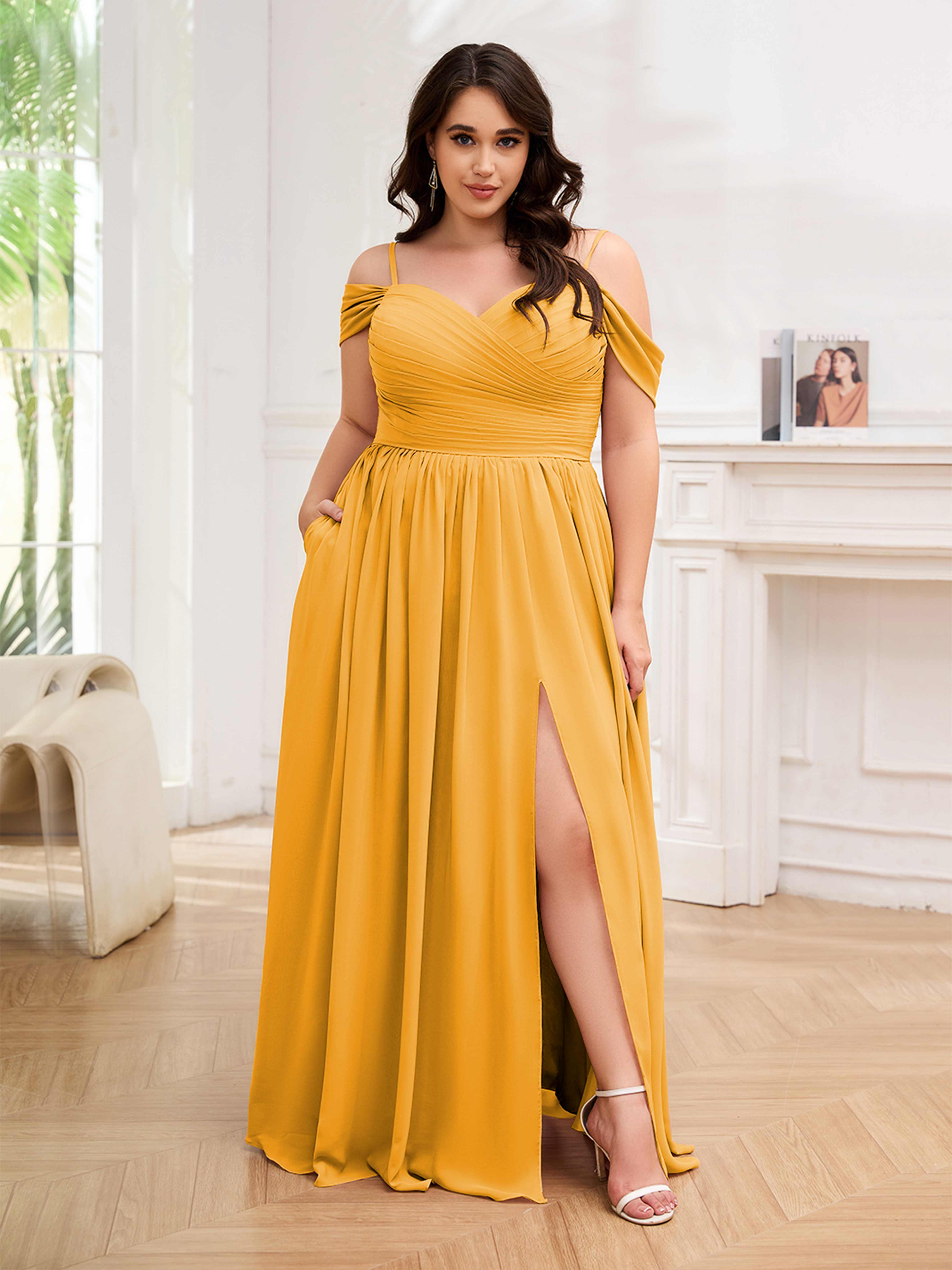 Robes De Demoiselle D'Honneur Grande Taille À Bretelles Spaghetti Avec Poches Anya