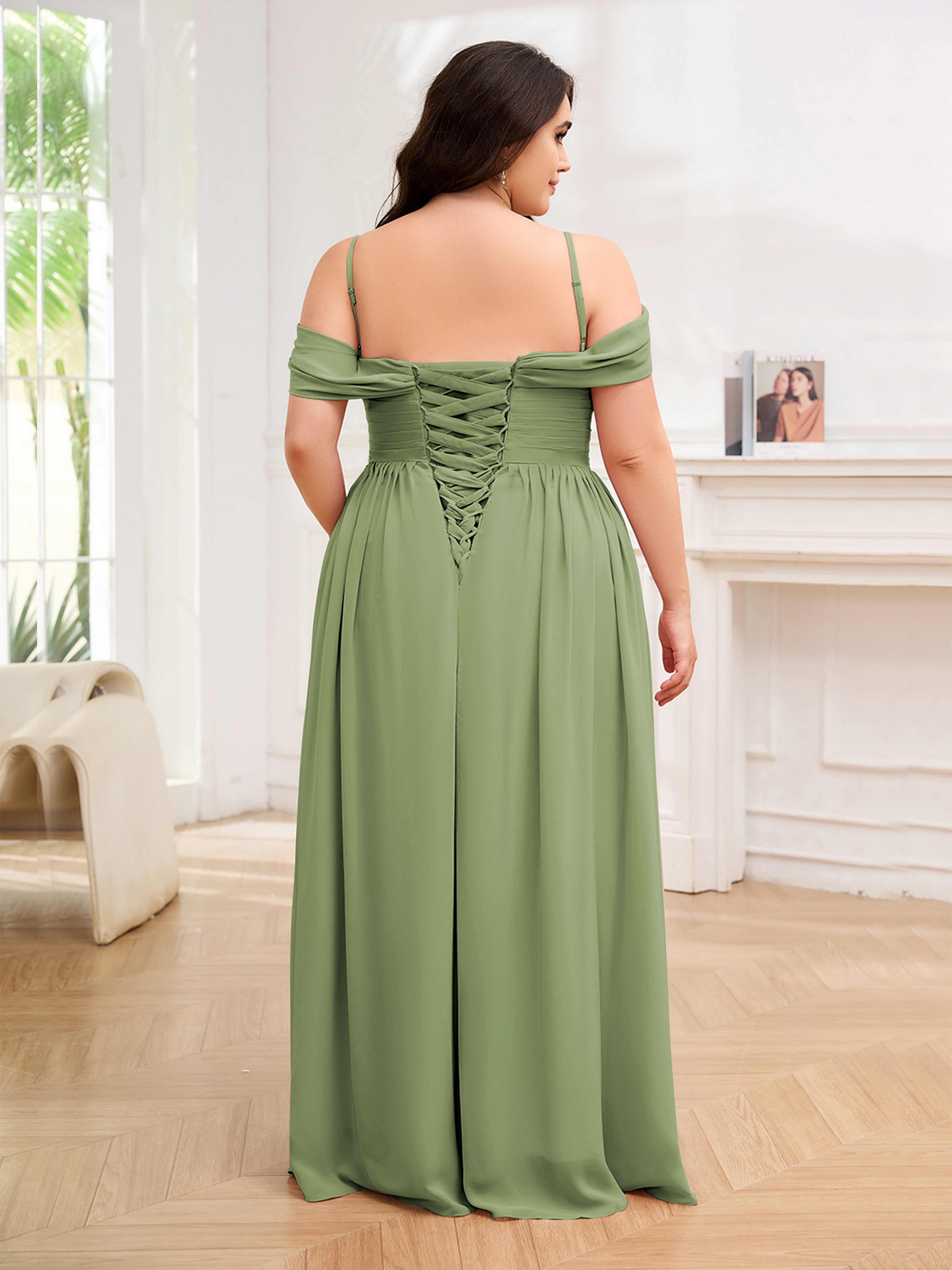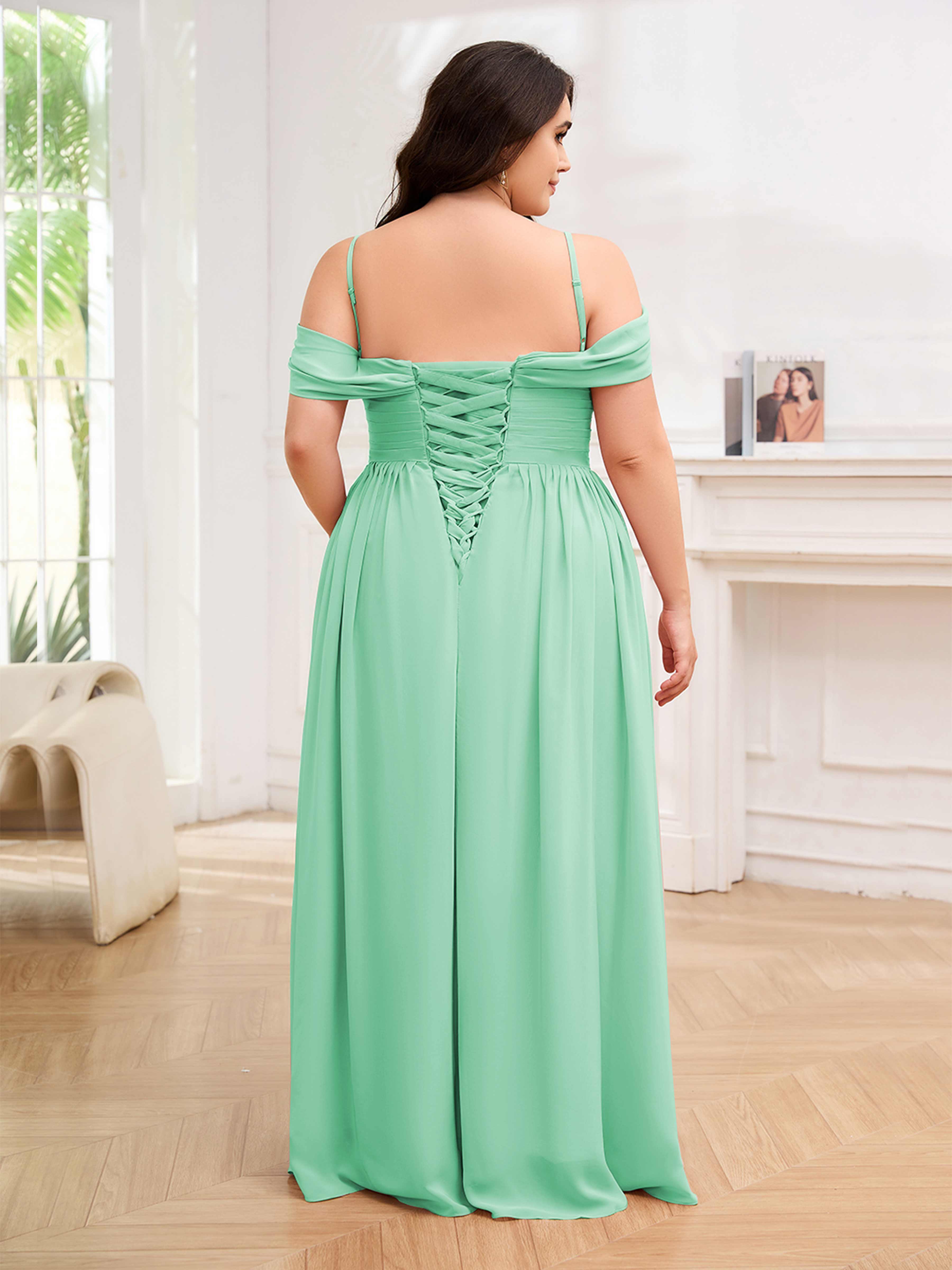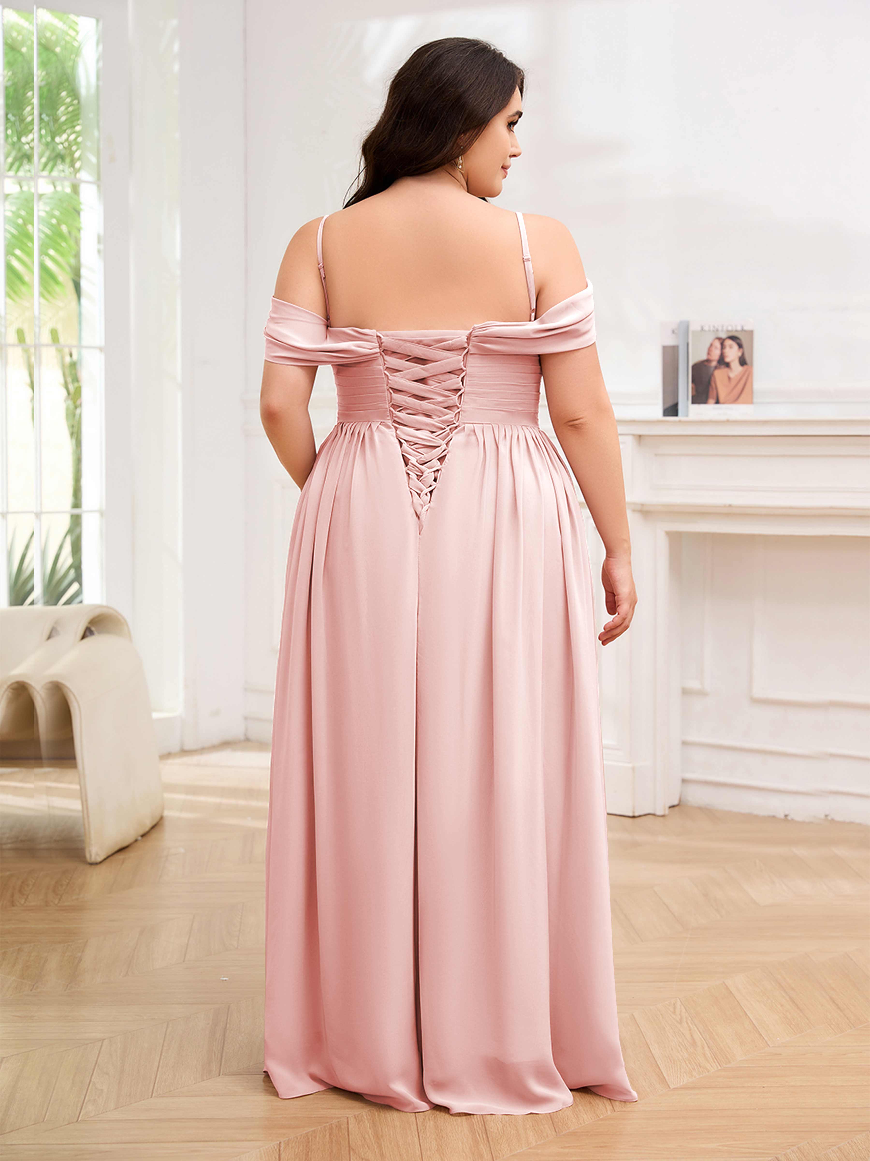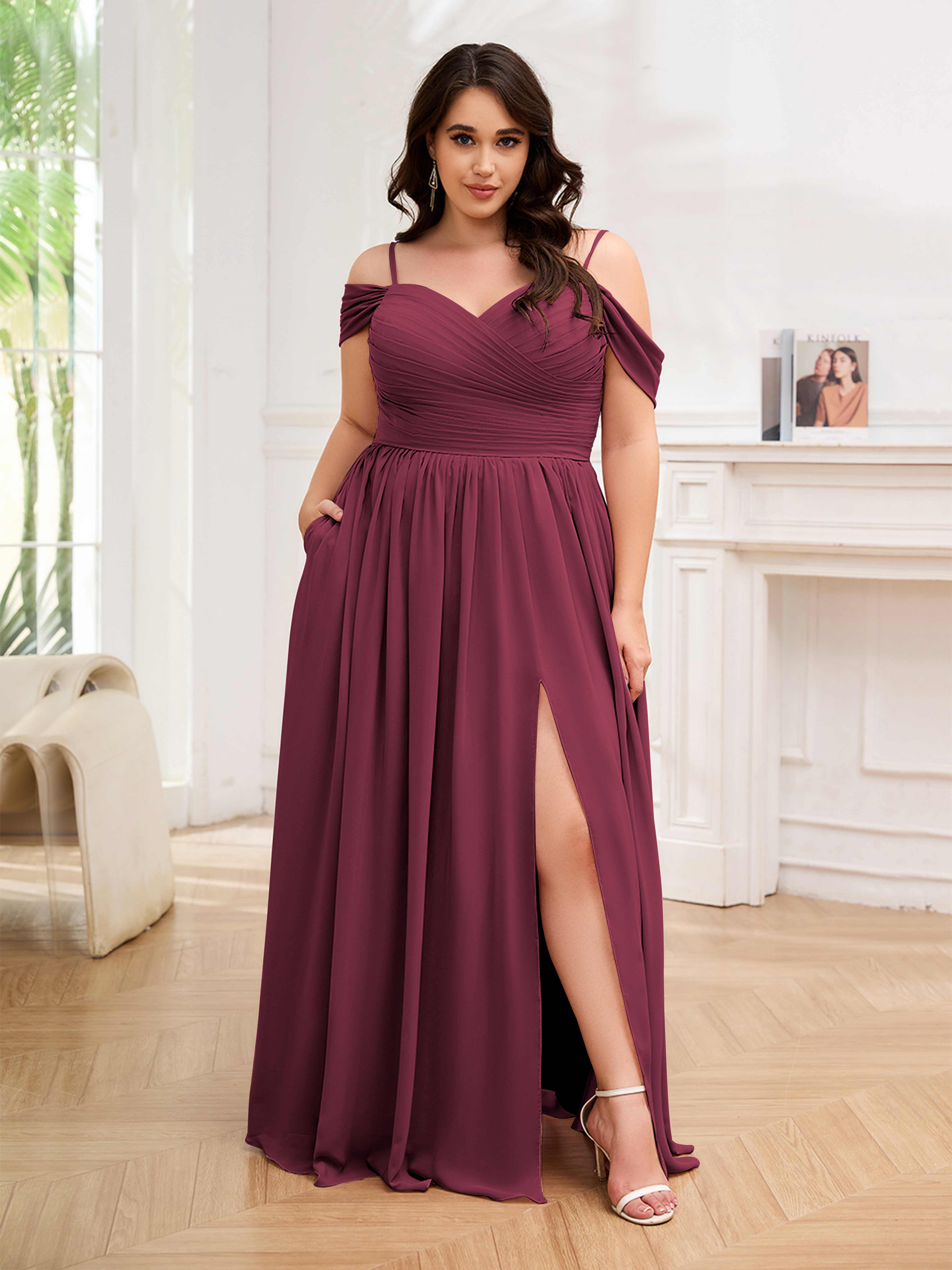 Robes De Demoiselle D'Honneur Grande Taille À Bretelles Spaghetti Avec Poches Anya