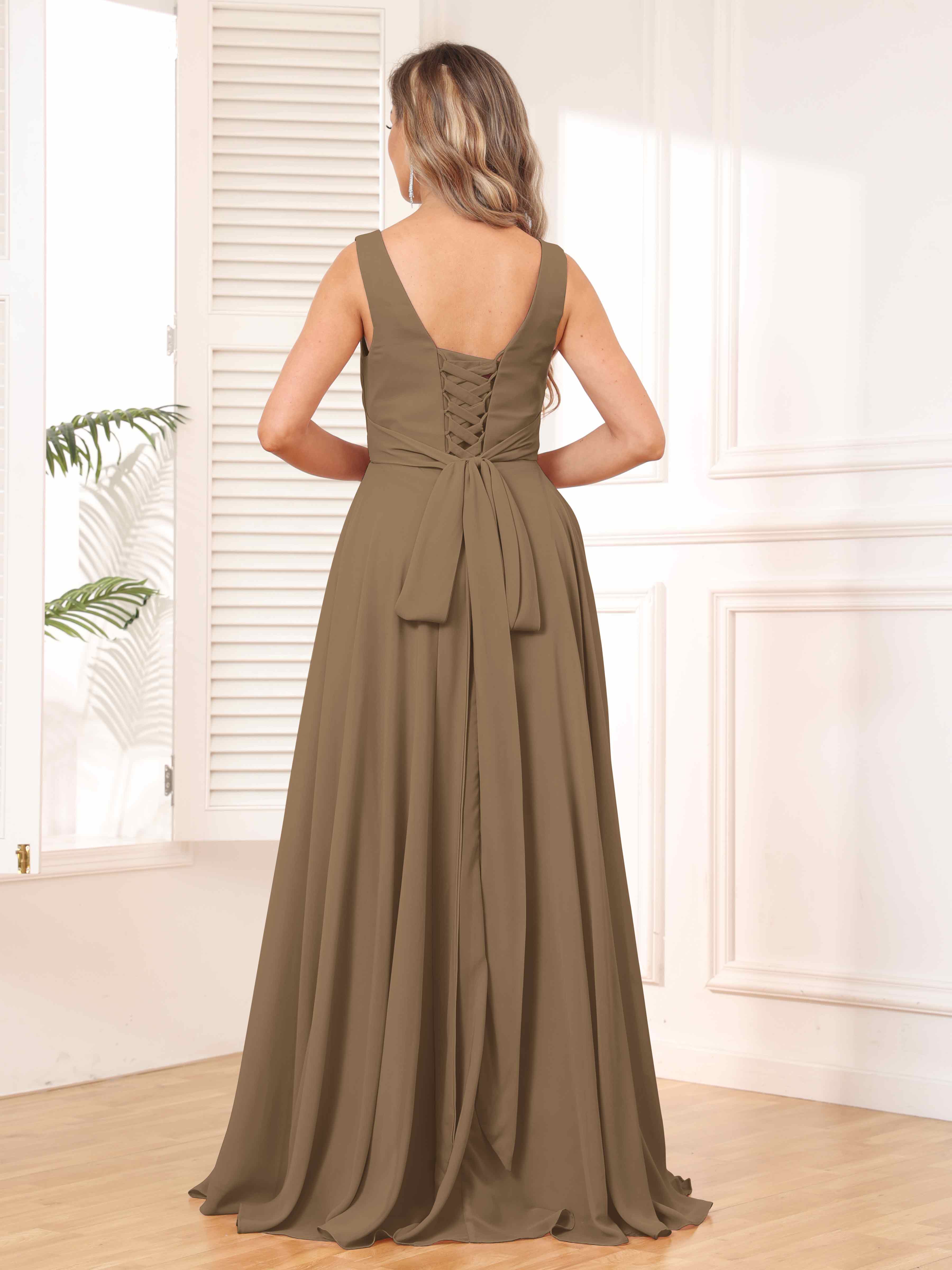 Incarnant sans effort la grâce et la sophistication, Mollevers présente les robes de demoiselle d'honneur simples sans manches à volants et nœud dans le dos. Avec leur design sans manches, ces robes présentent des volants délicats et un charmant nœud au dos, dégageant une élégance intemporelle.