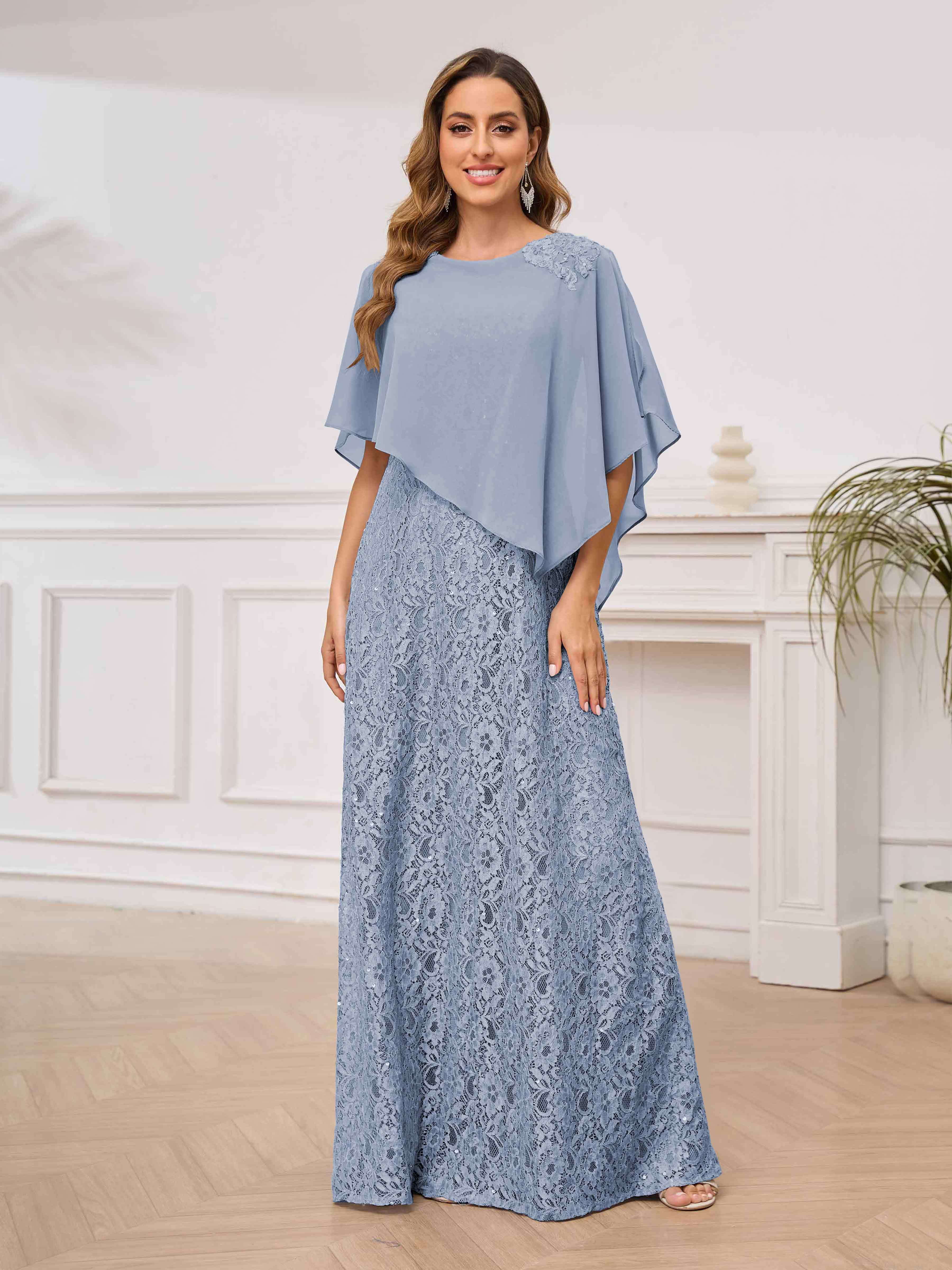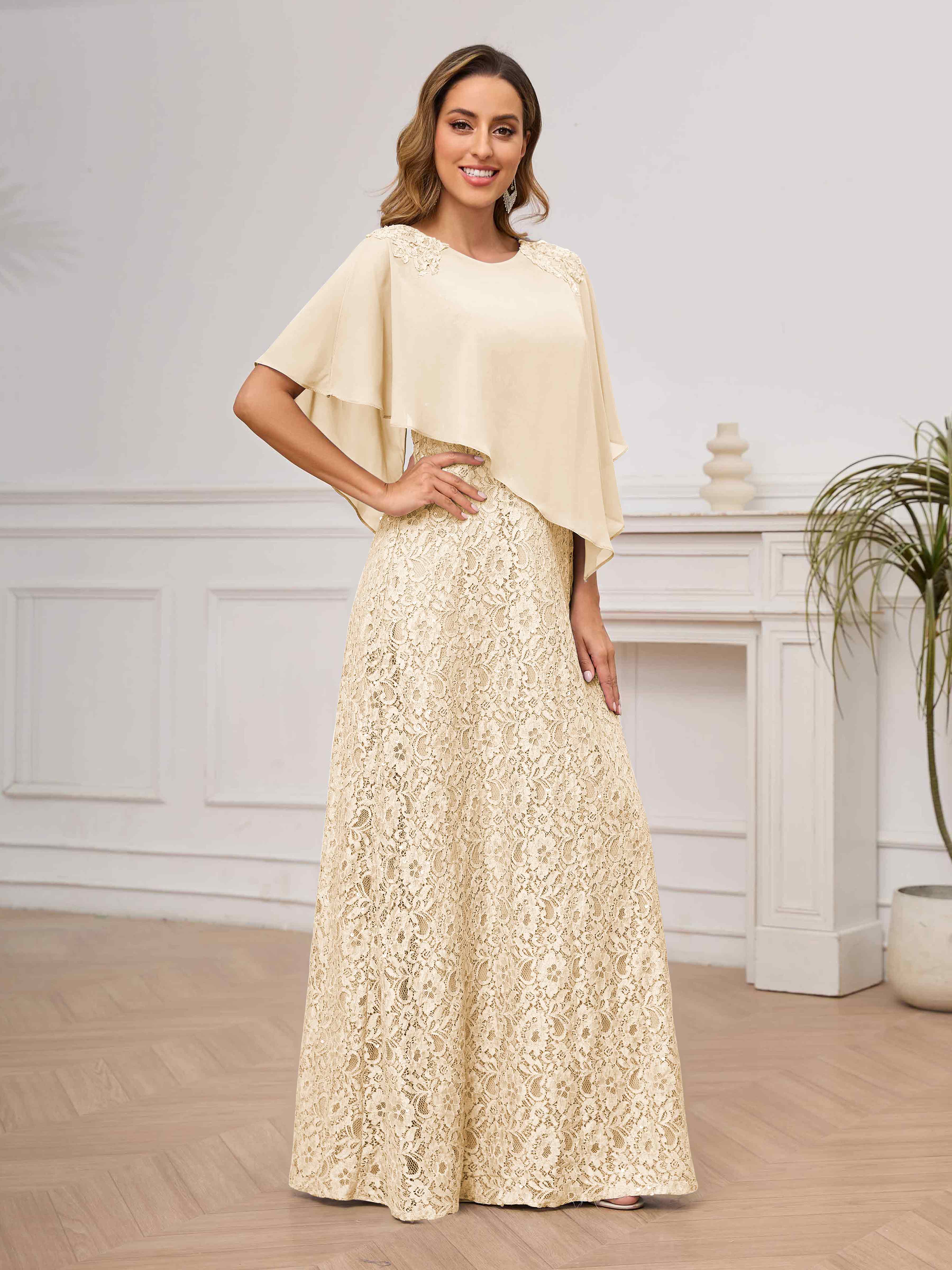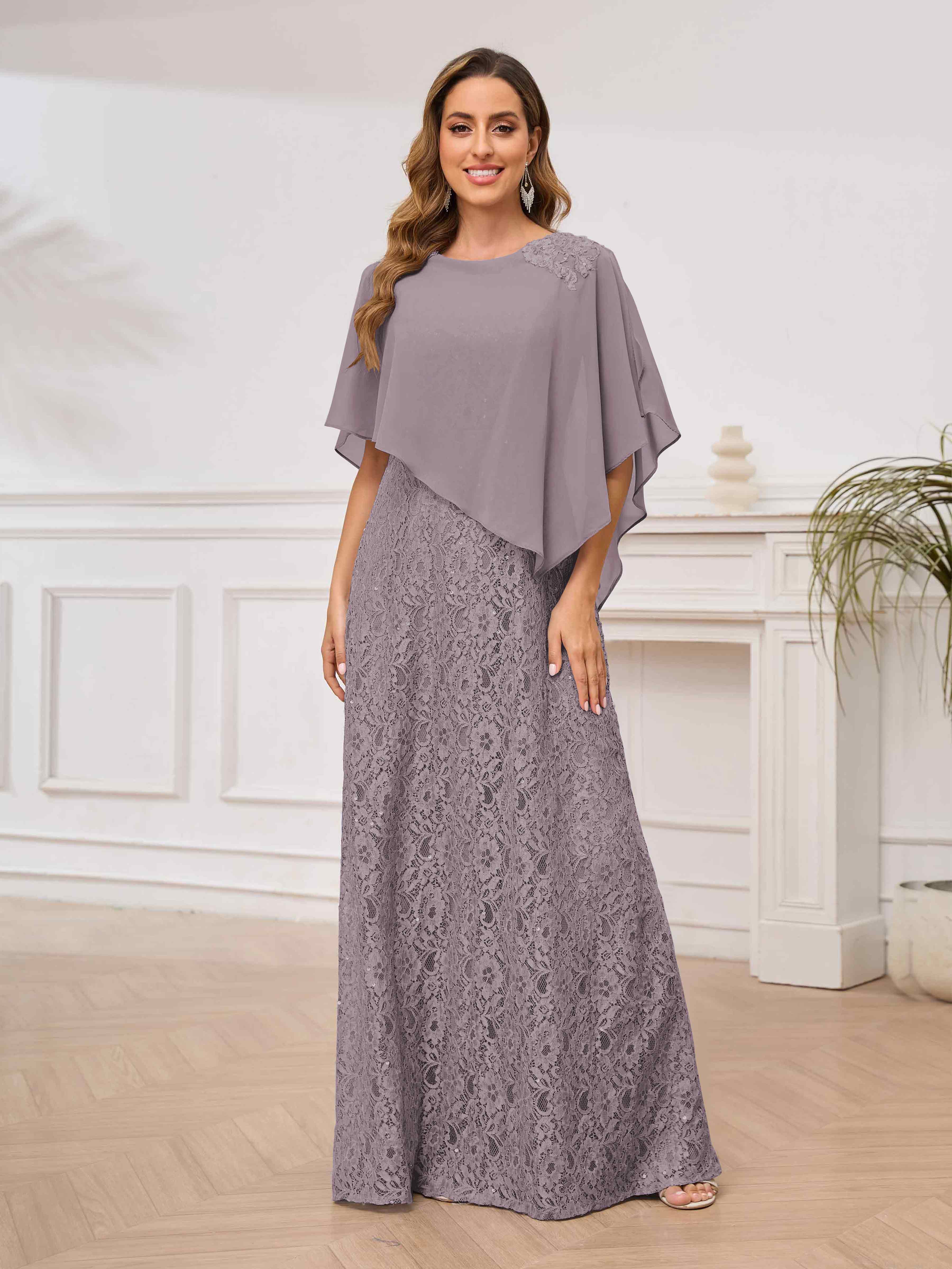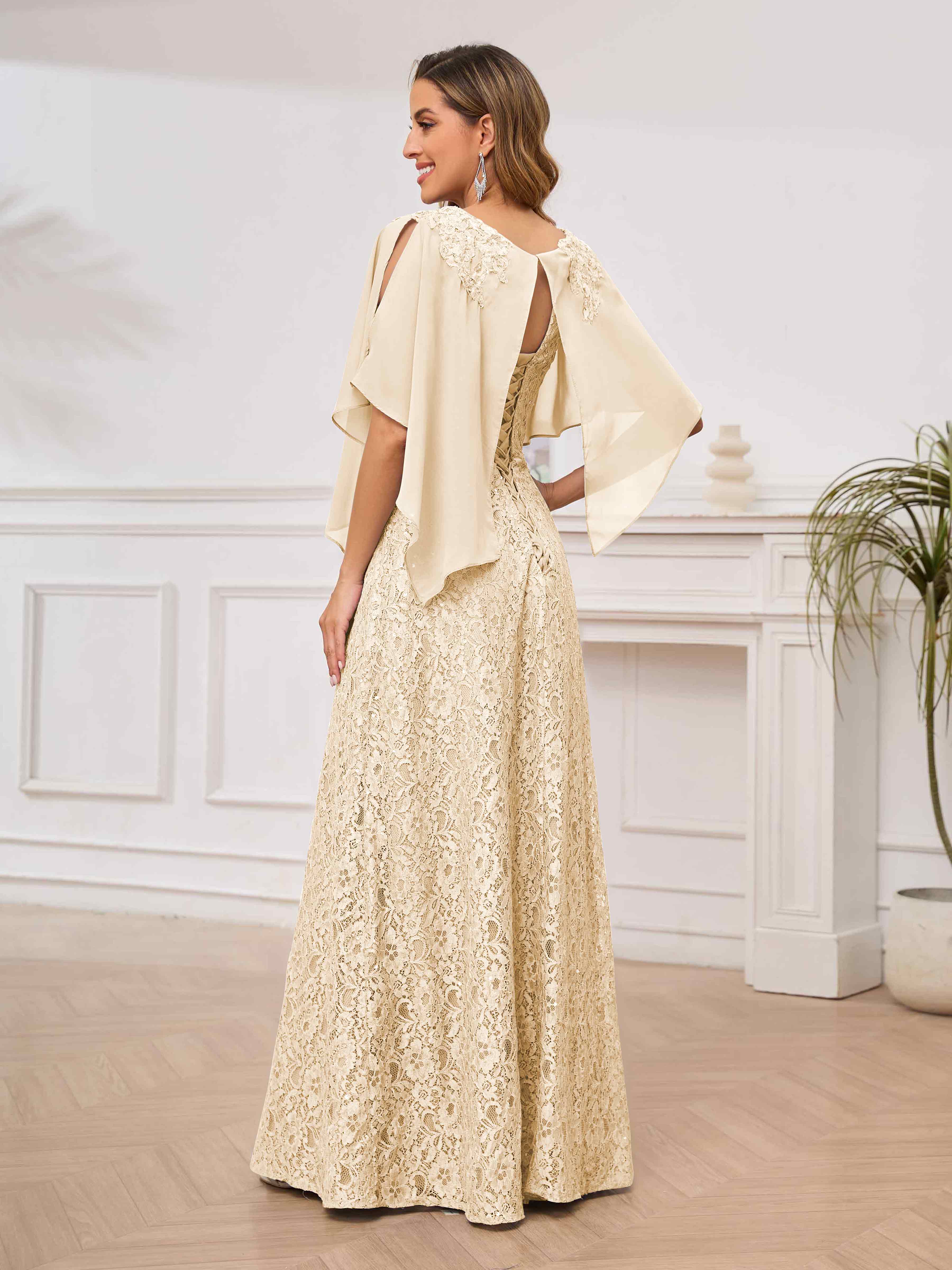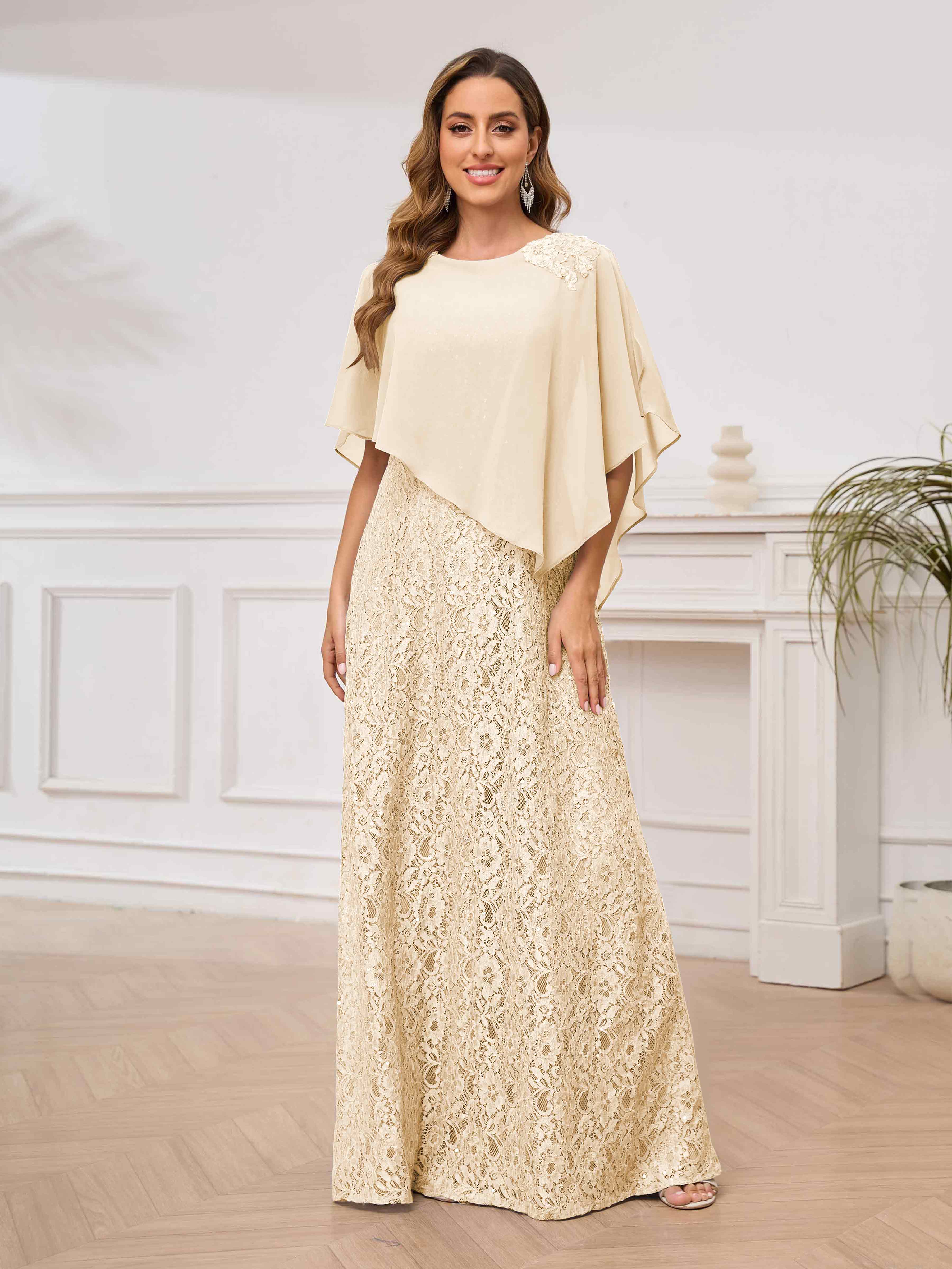 Robes Mère De La Mariée À Châle Dentelle Longueur Au Sol Margo