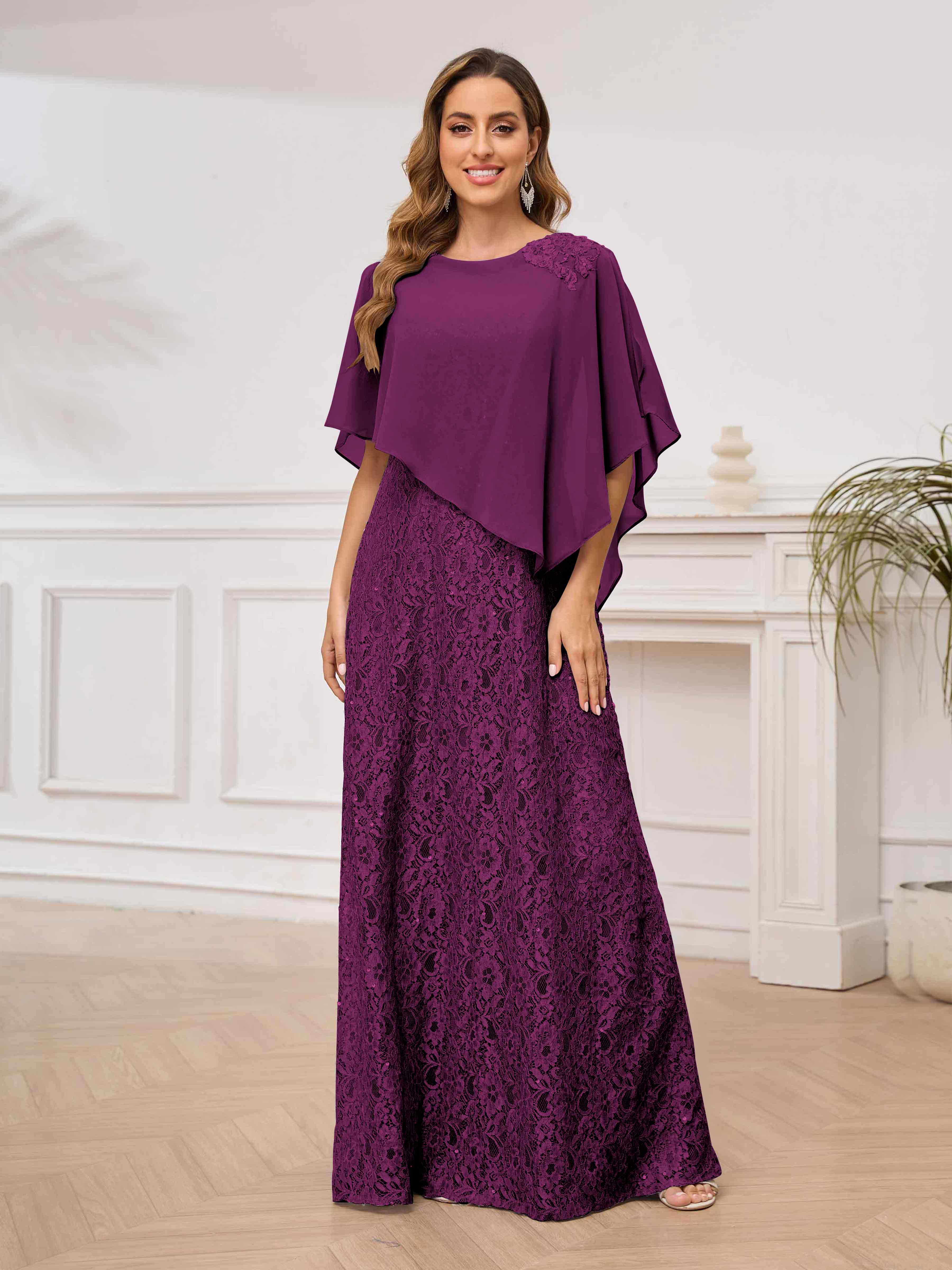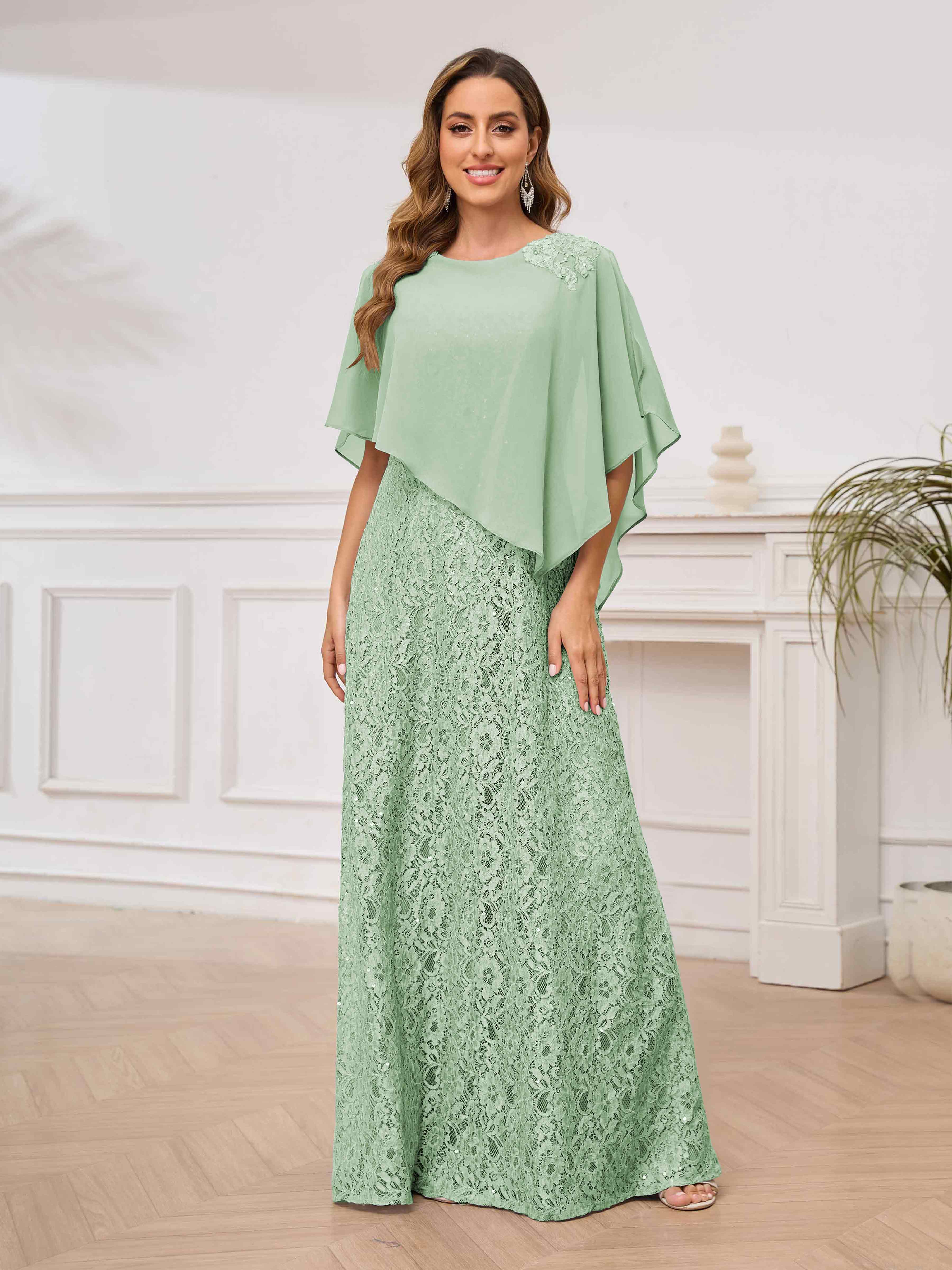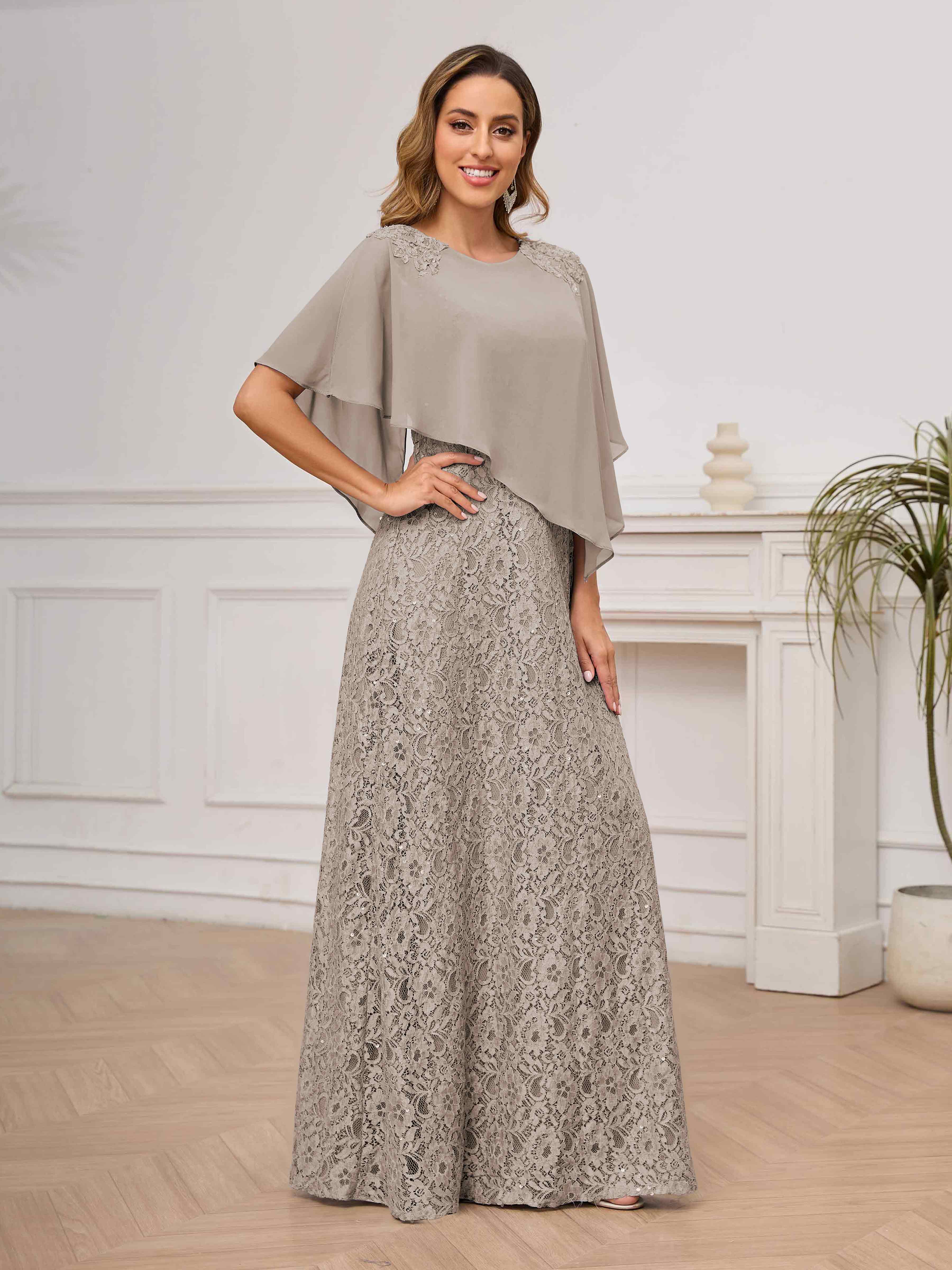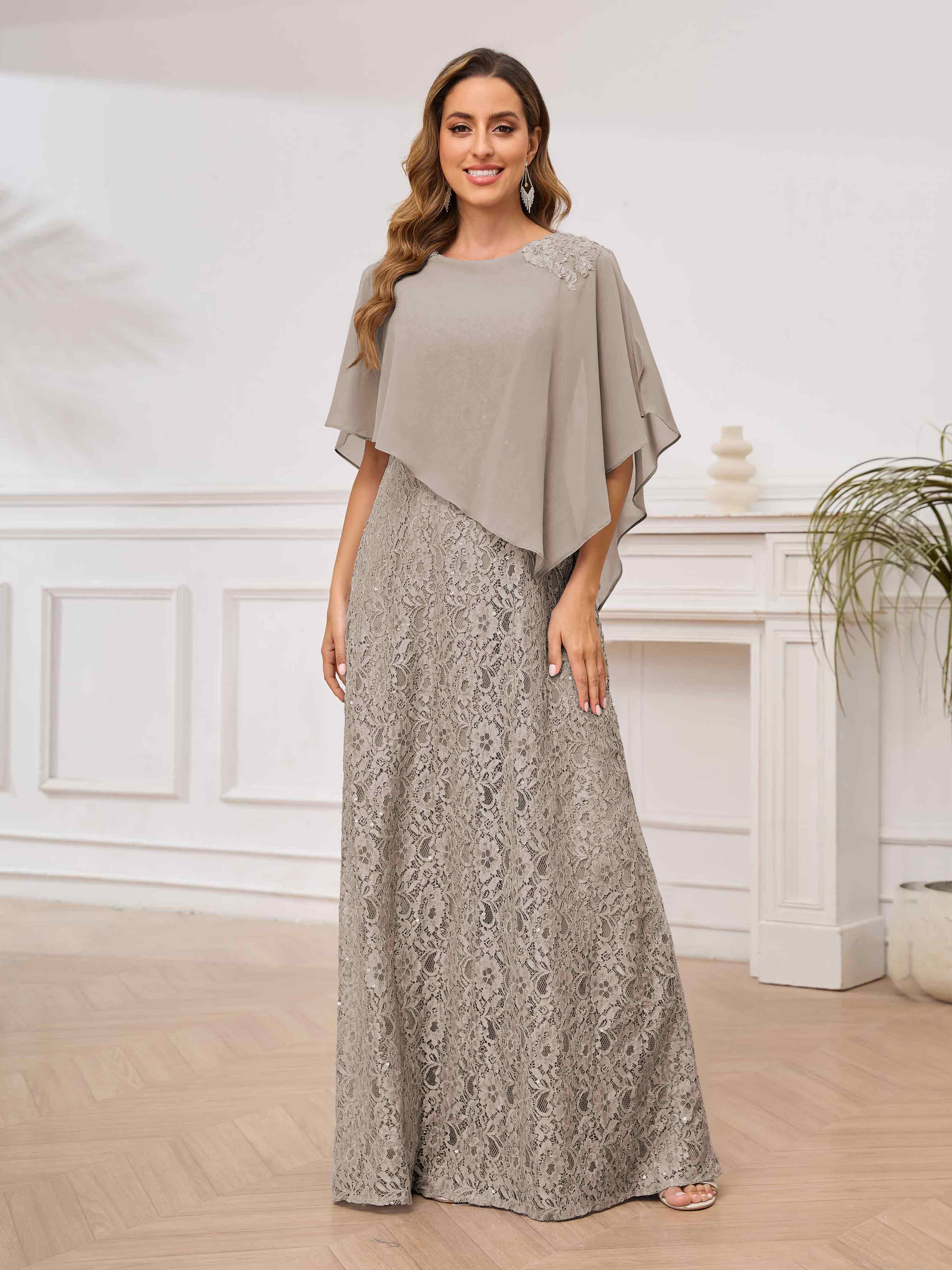 Robes Mère De La Mariée À Châle Dentelle Longueur Au Sol Margo