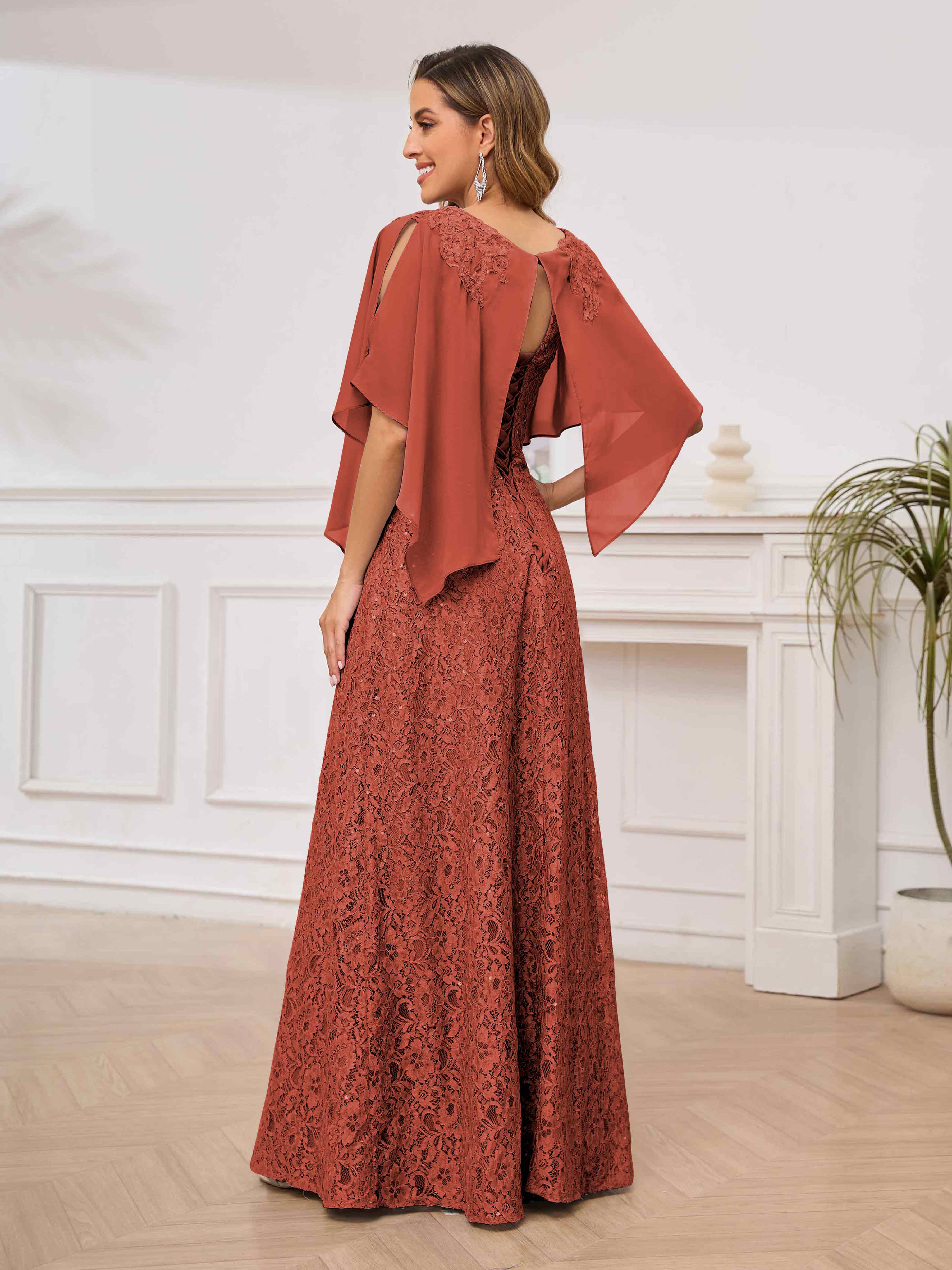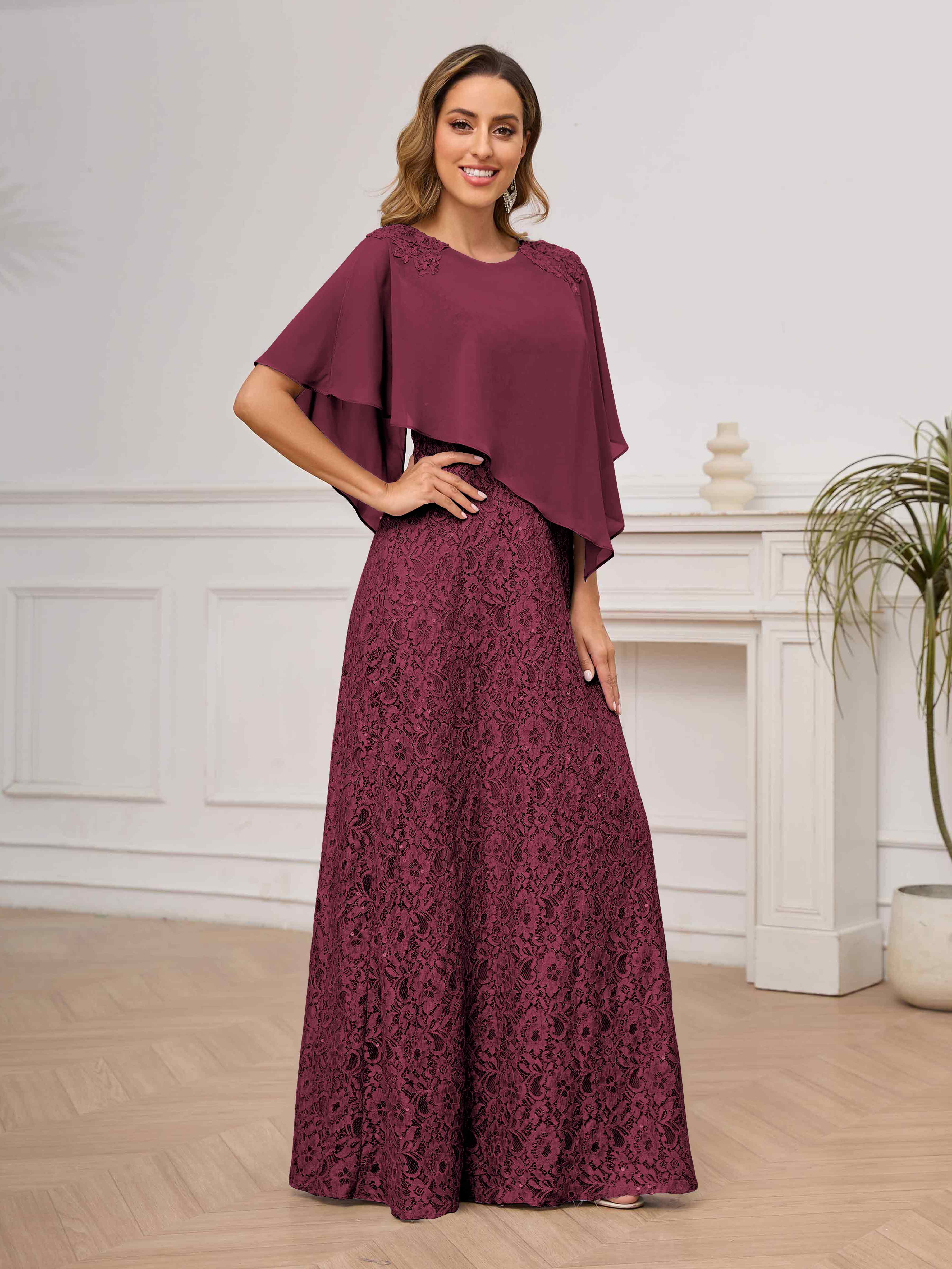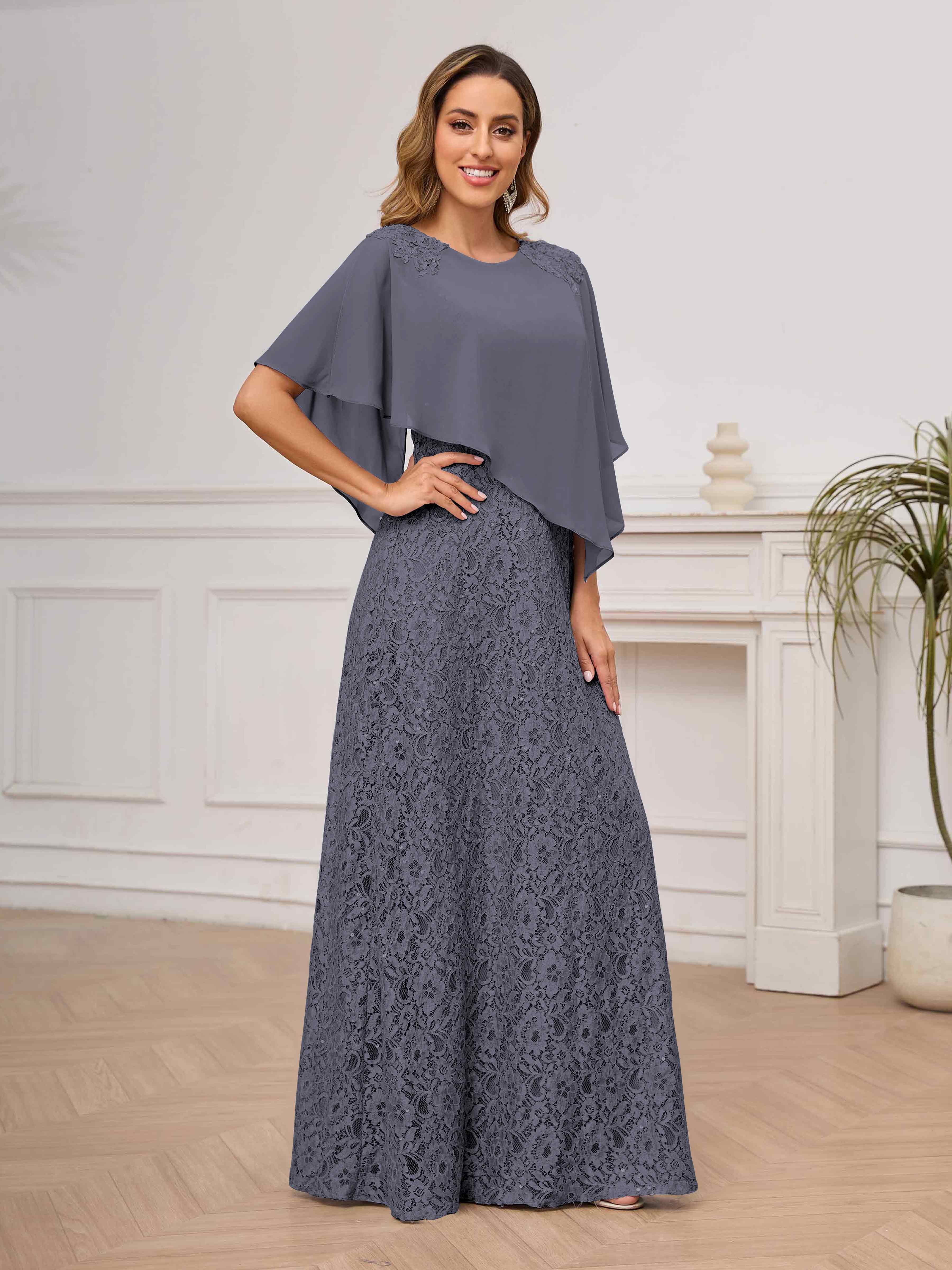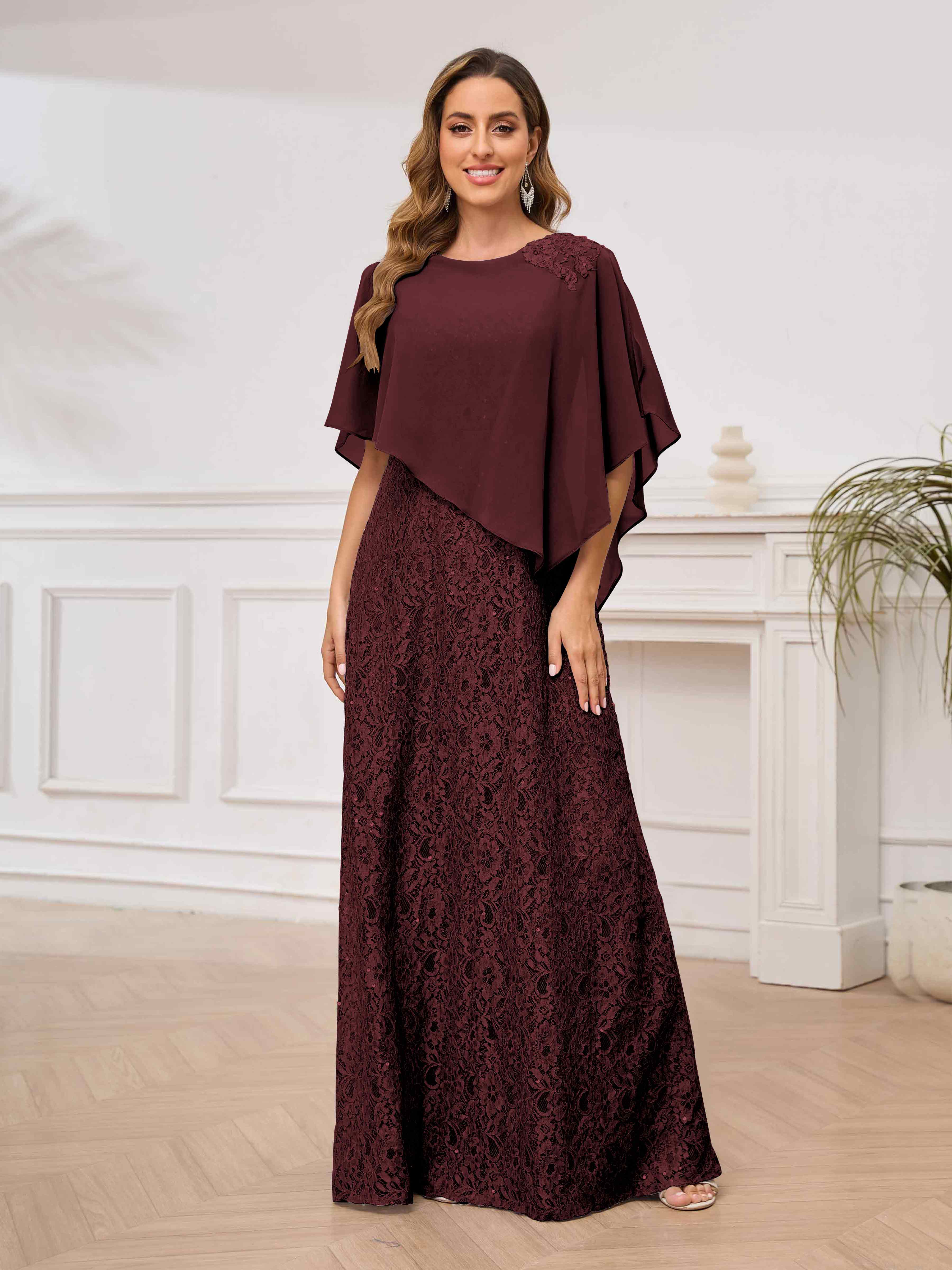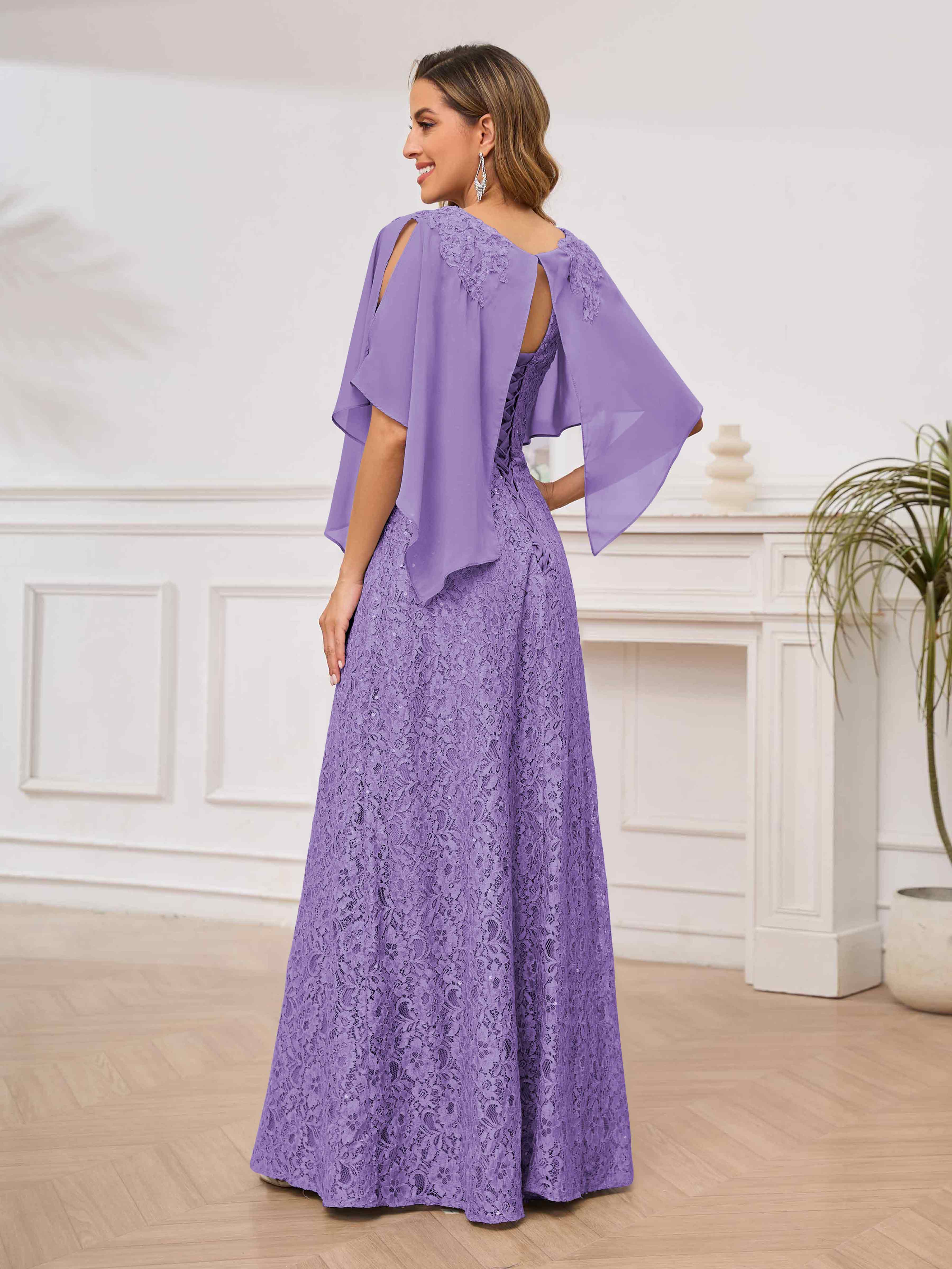 Robes Mère De La Mariée À Châle Dentelle Longueur Au Sol Margo