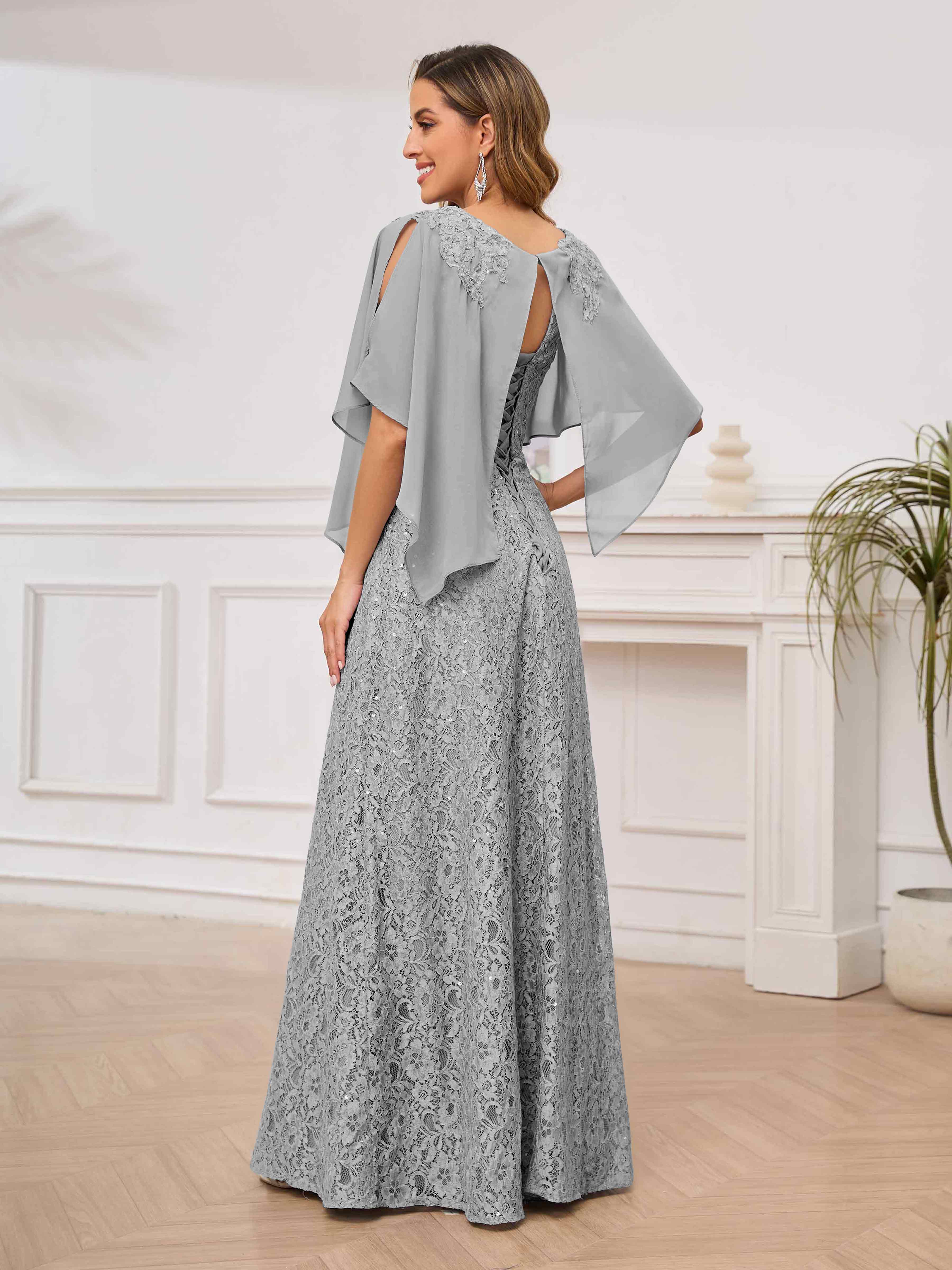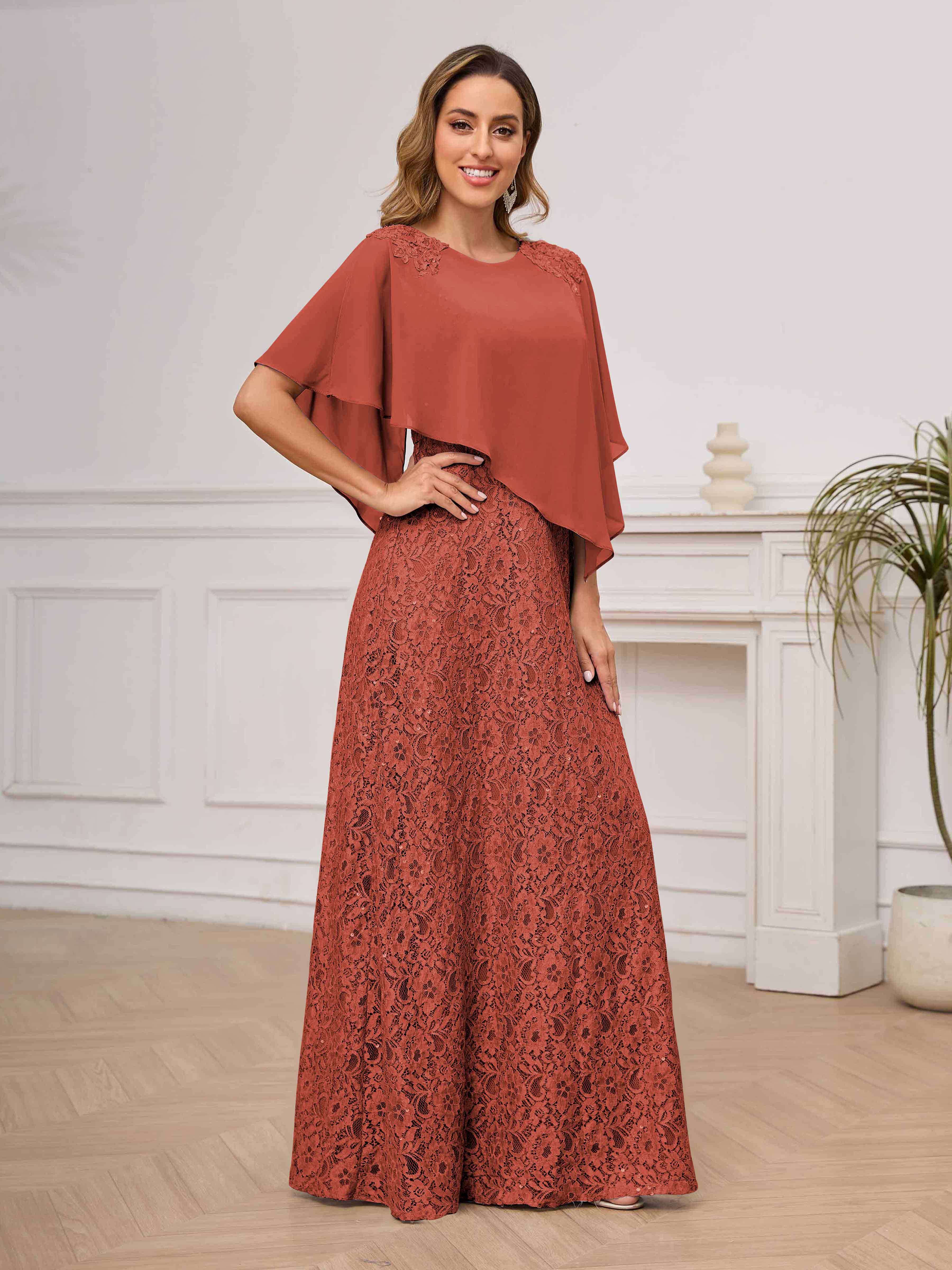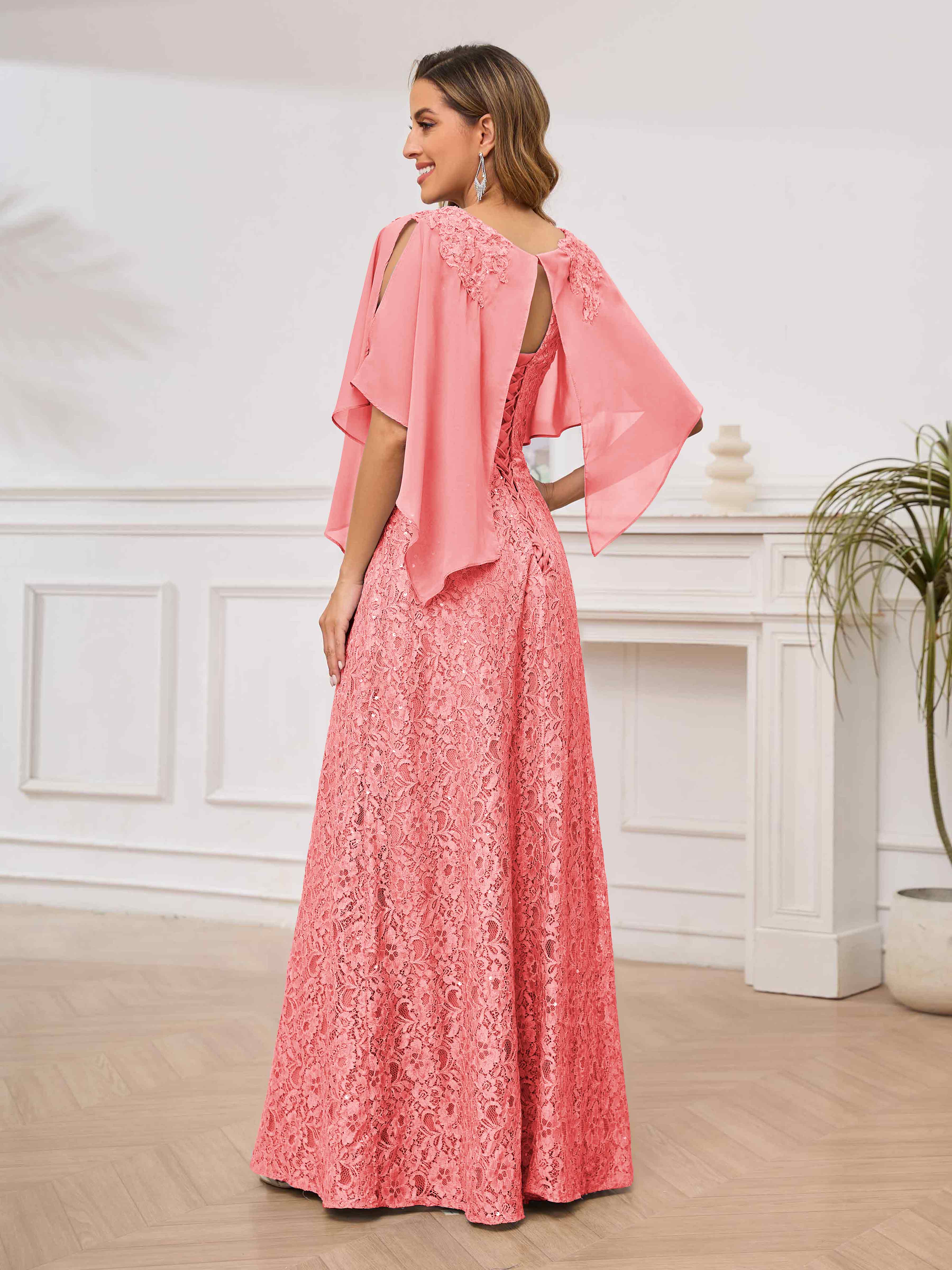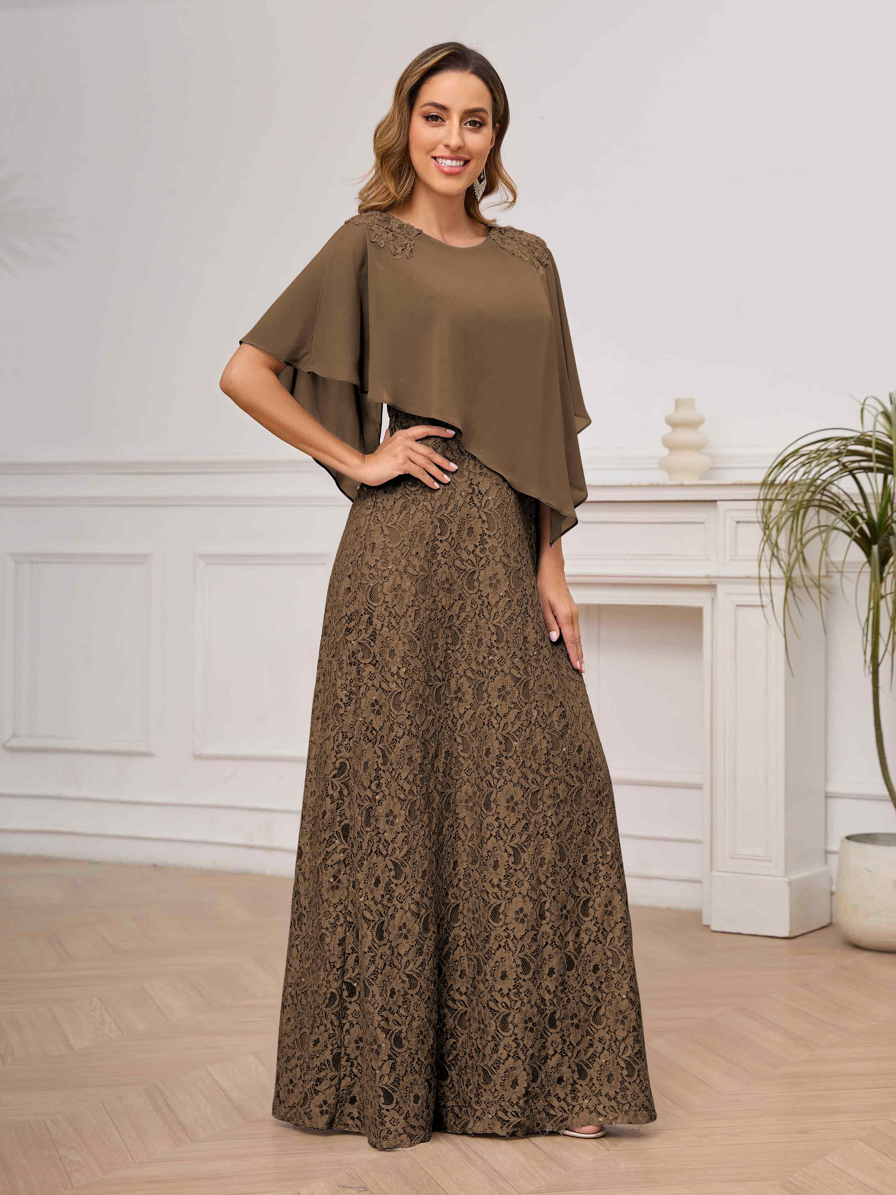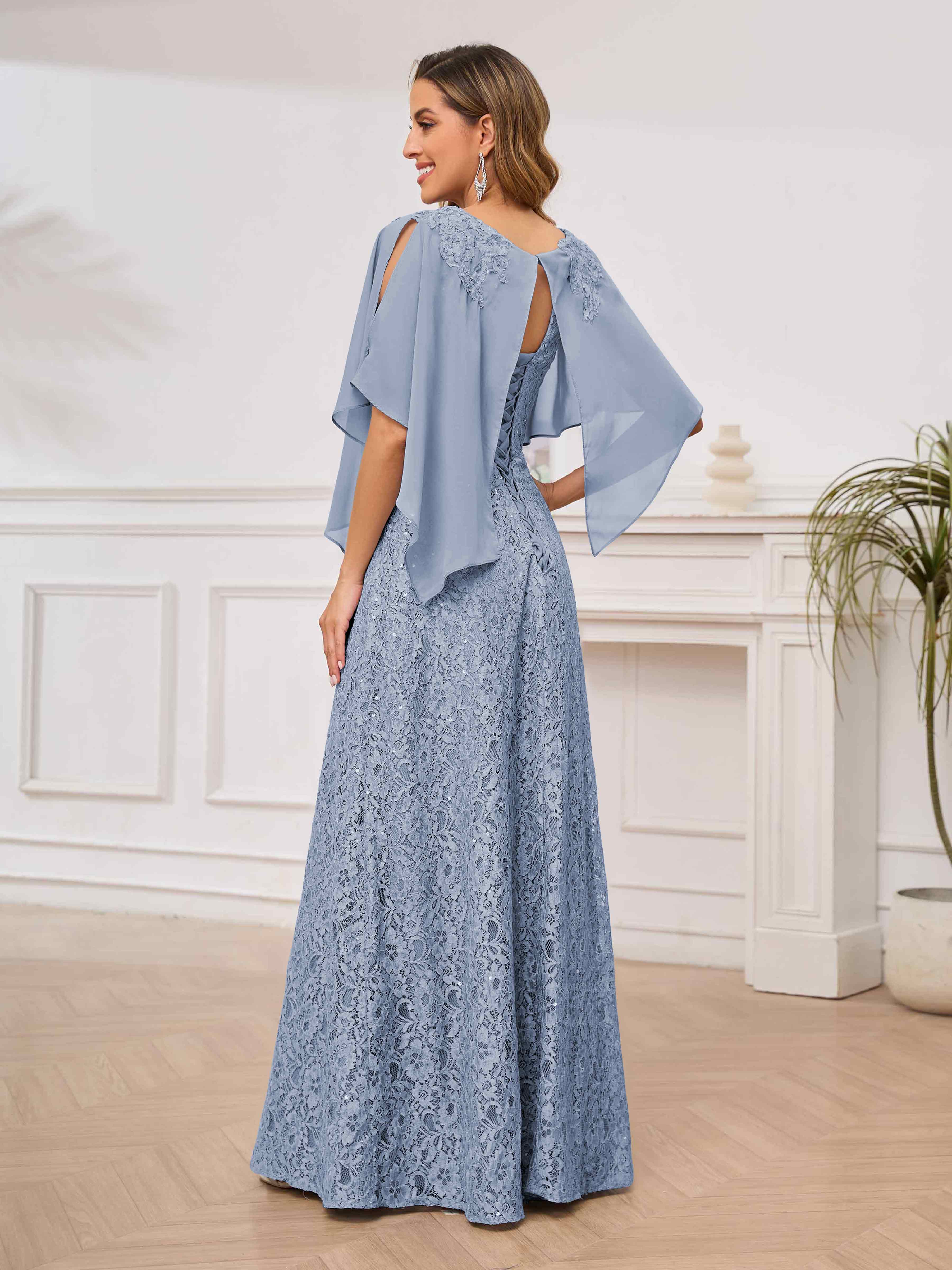 Robes Mère De La Mariée À Châle Dentelle Longueur Au Sol Margo