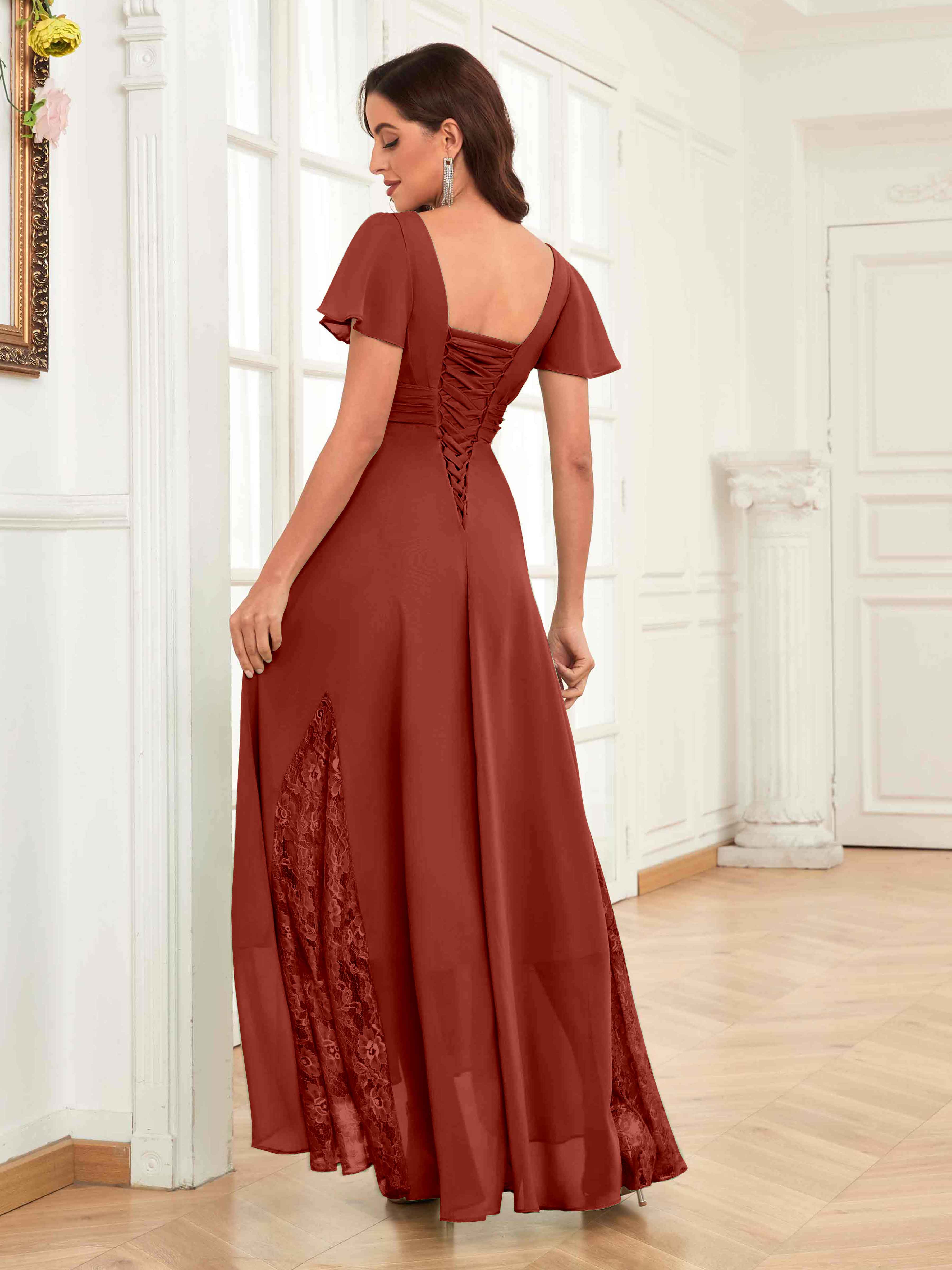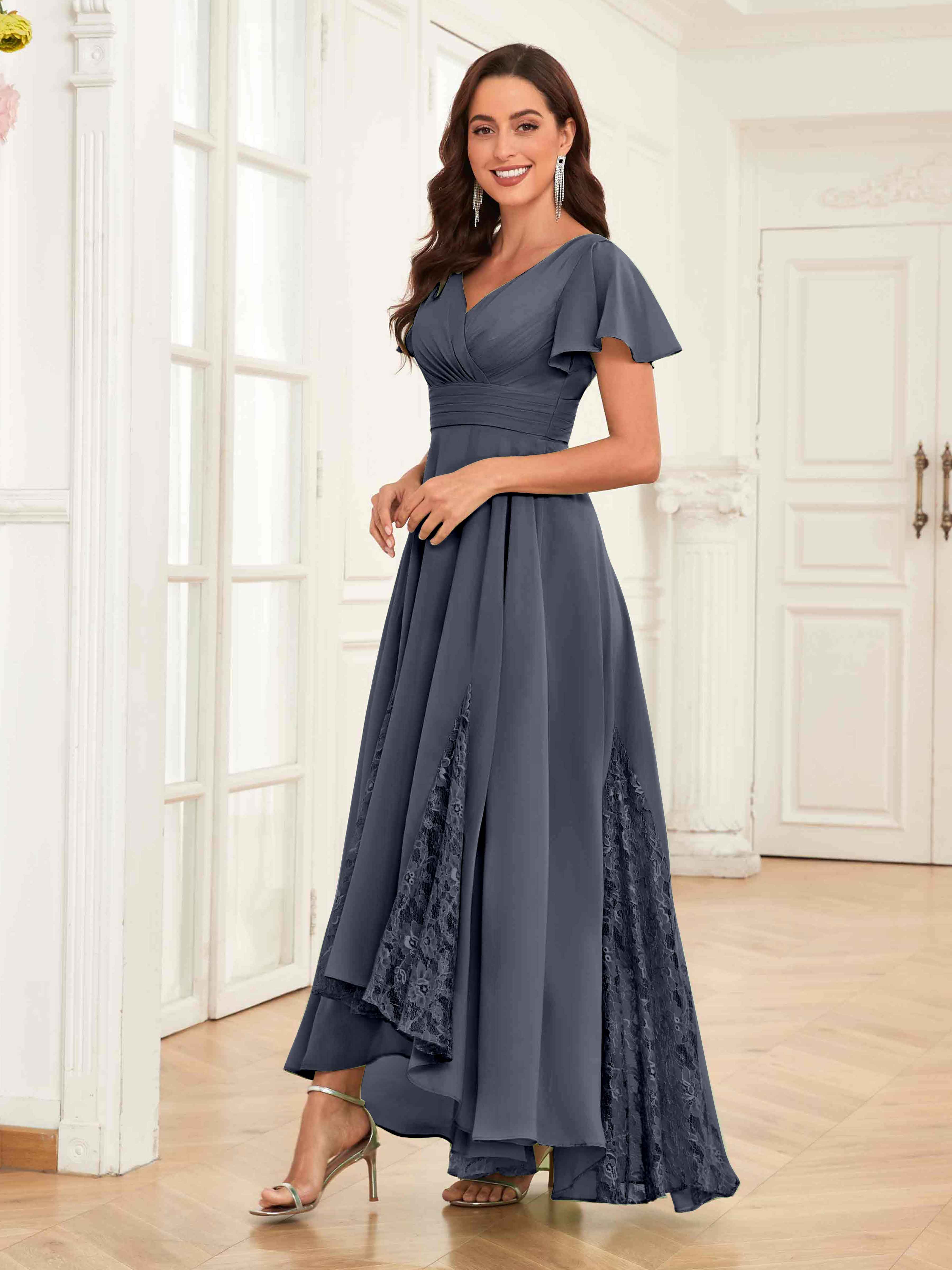 Robes Mère De La Mariée À Ruché Dentelle Et Col V Charlee