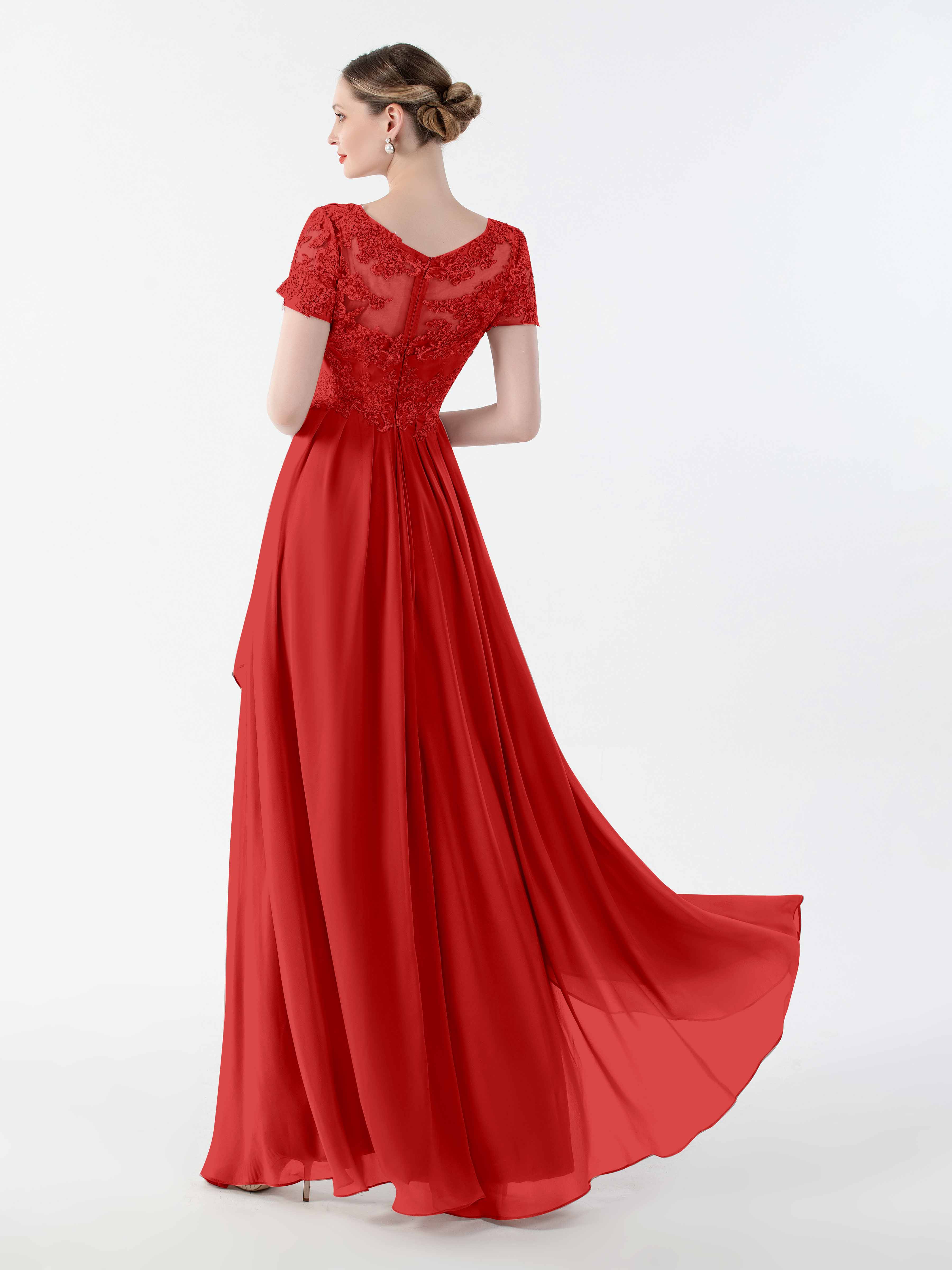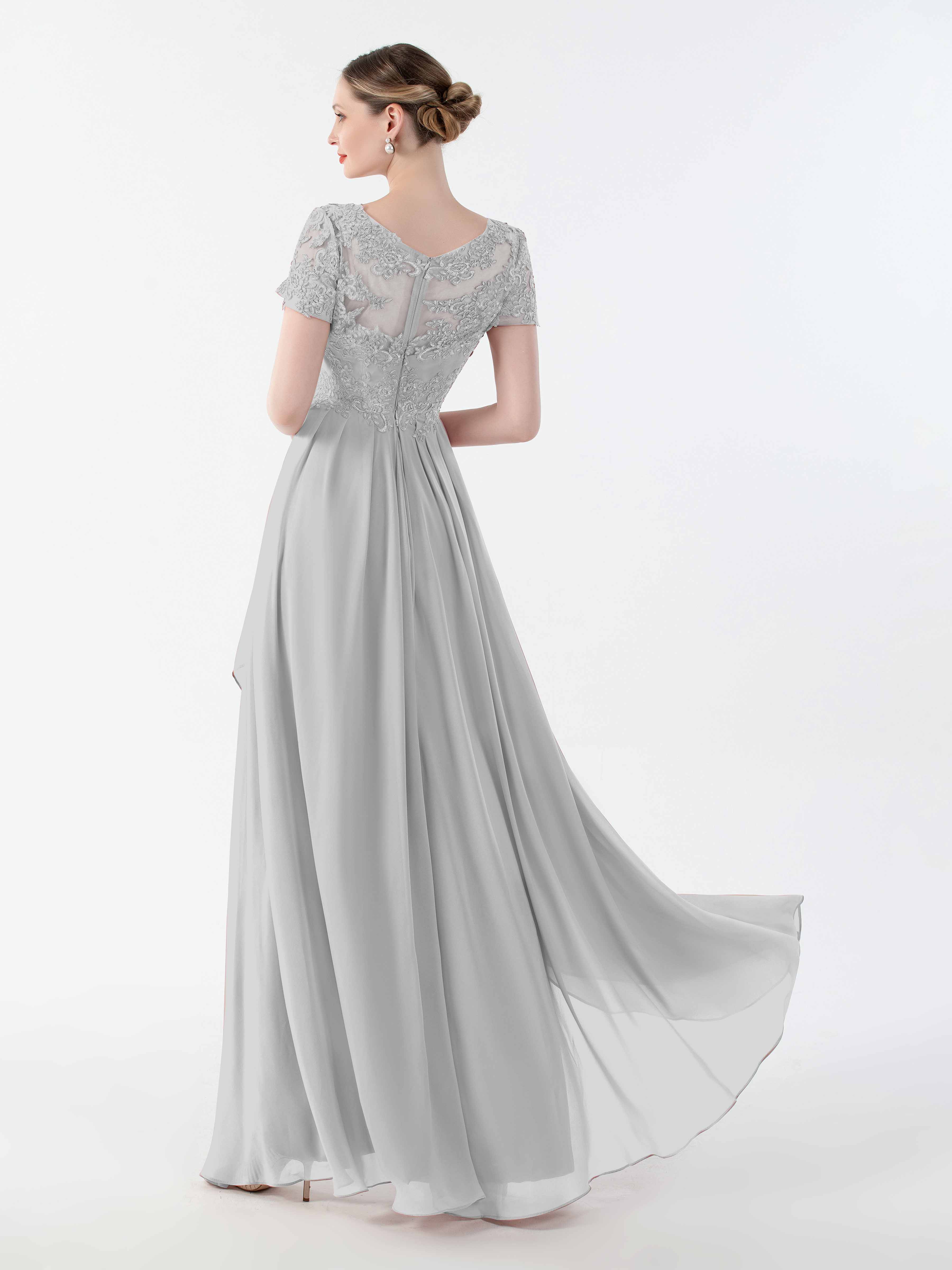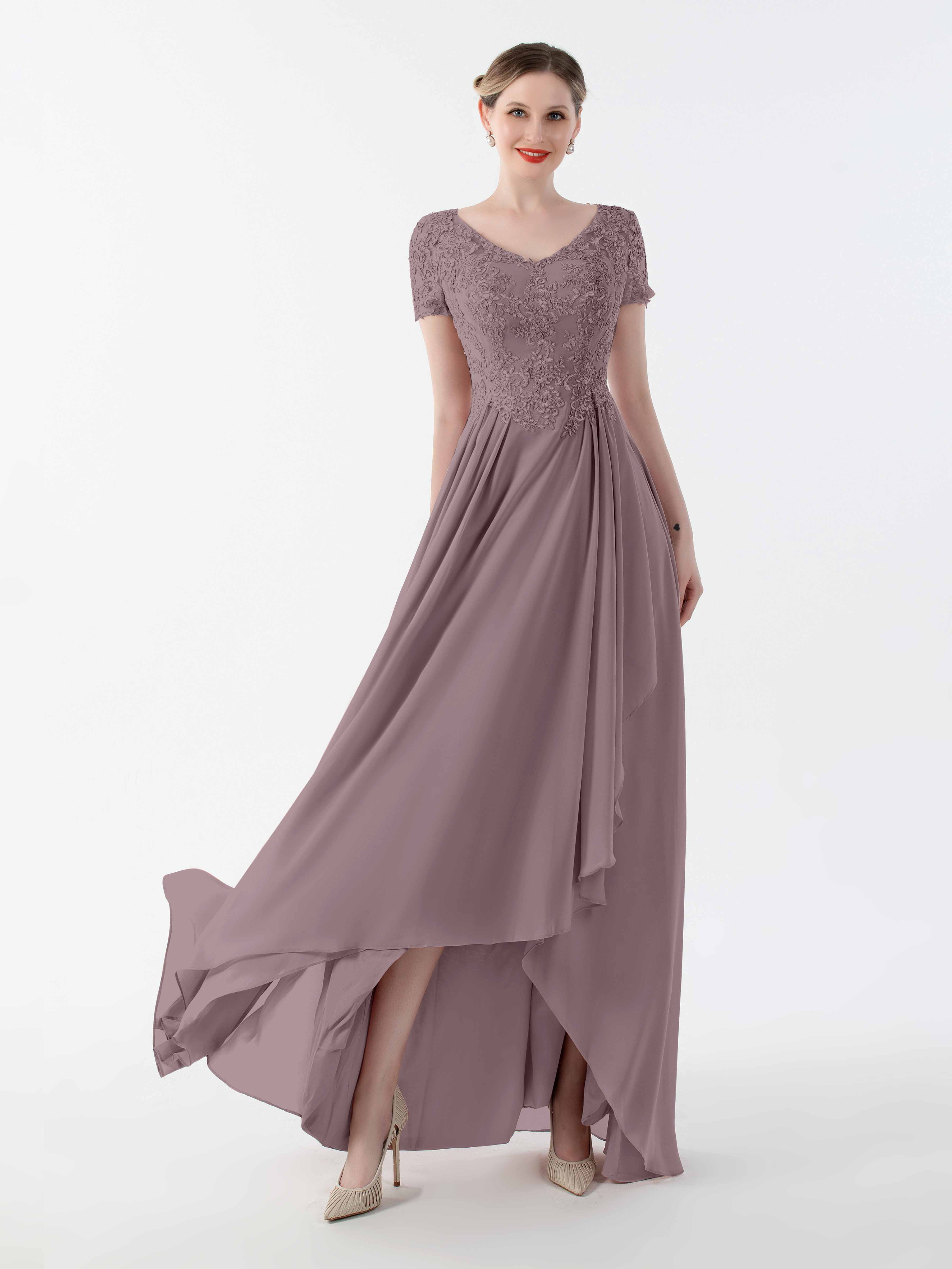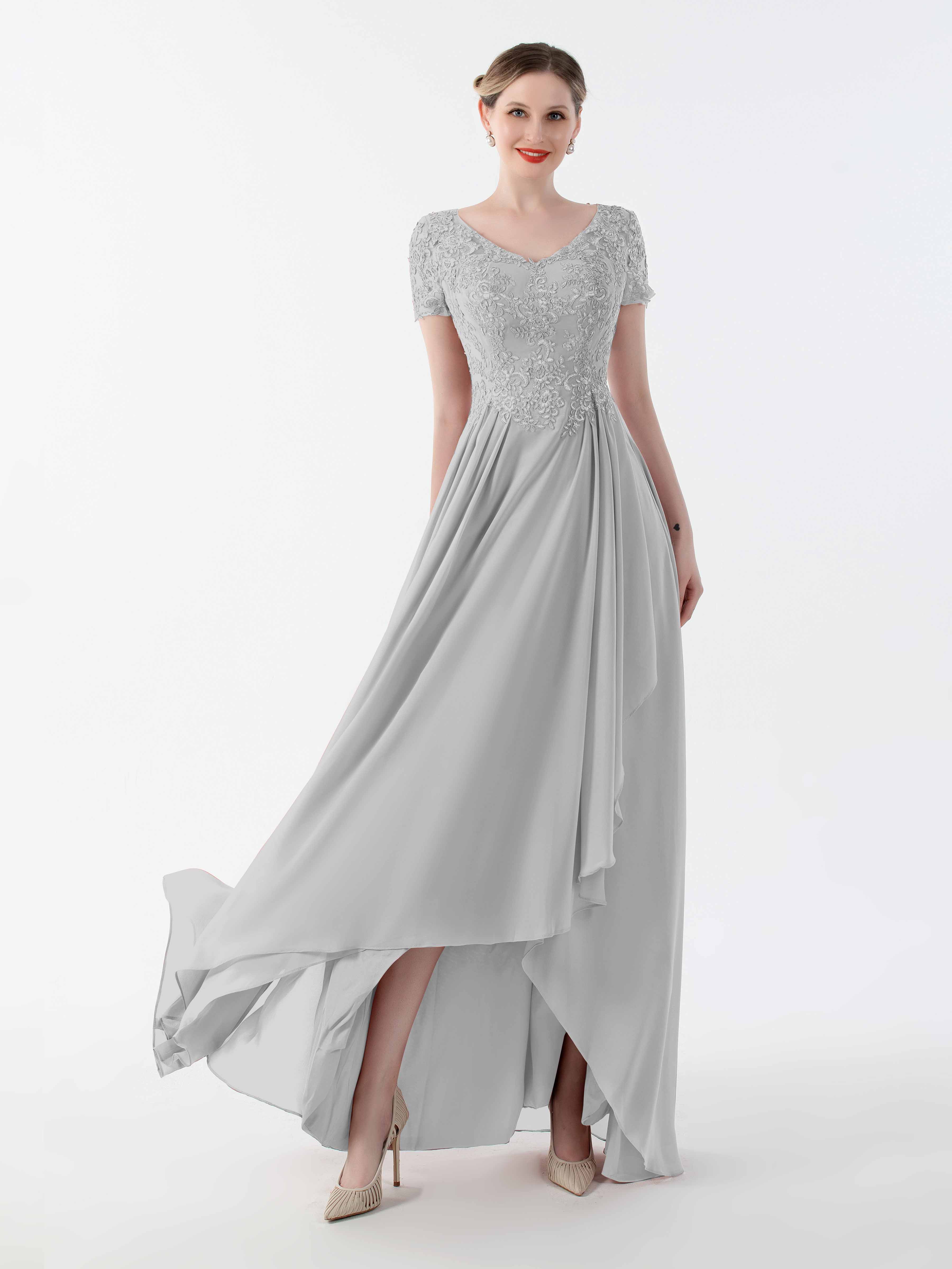 Robes Mère De La Mariée En Mousseline À Asymétrique Et Manches Courtes Journee