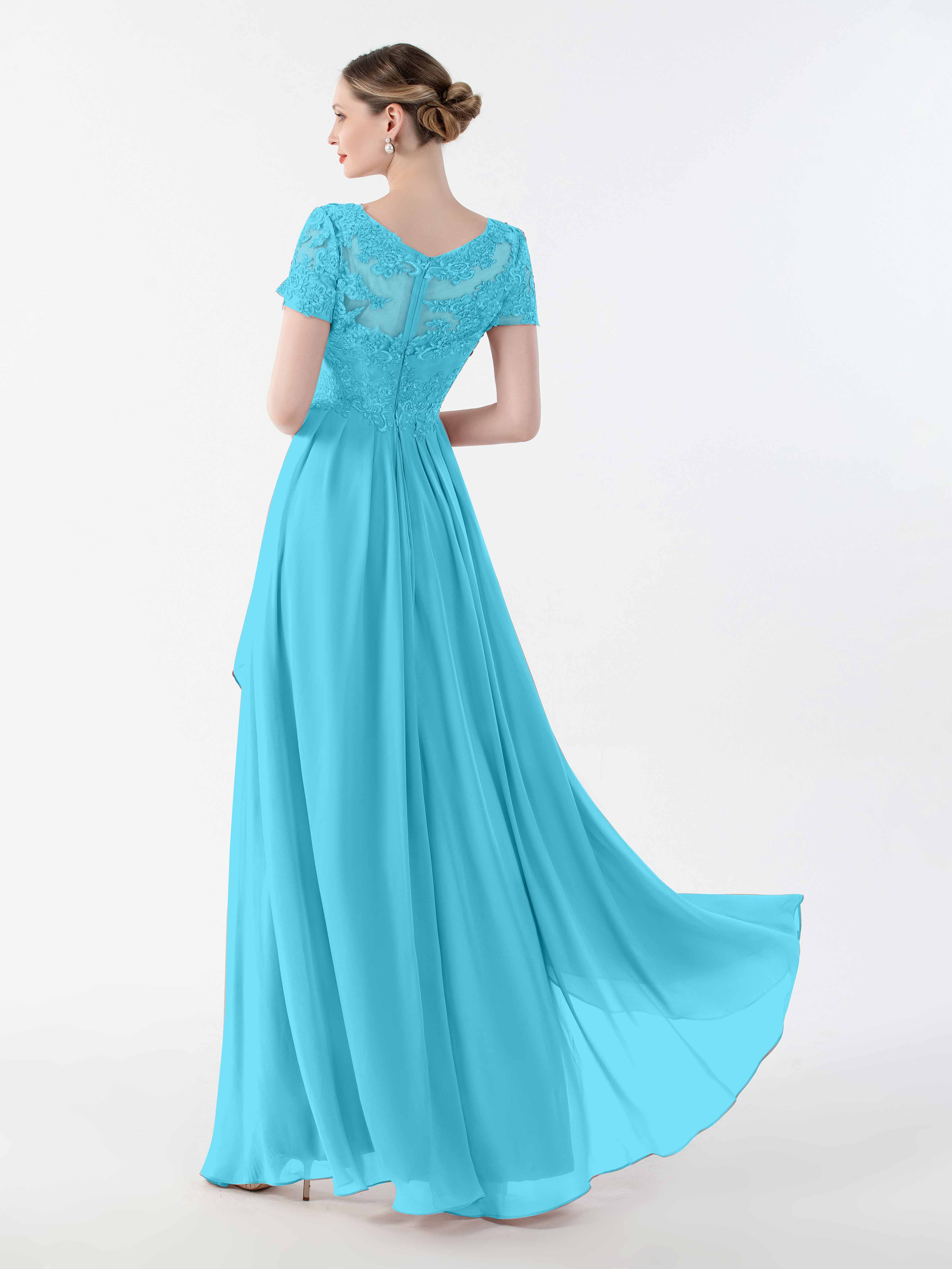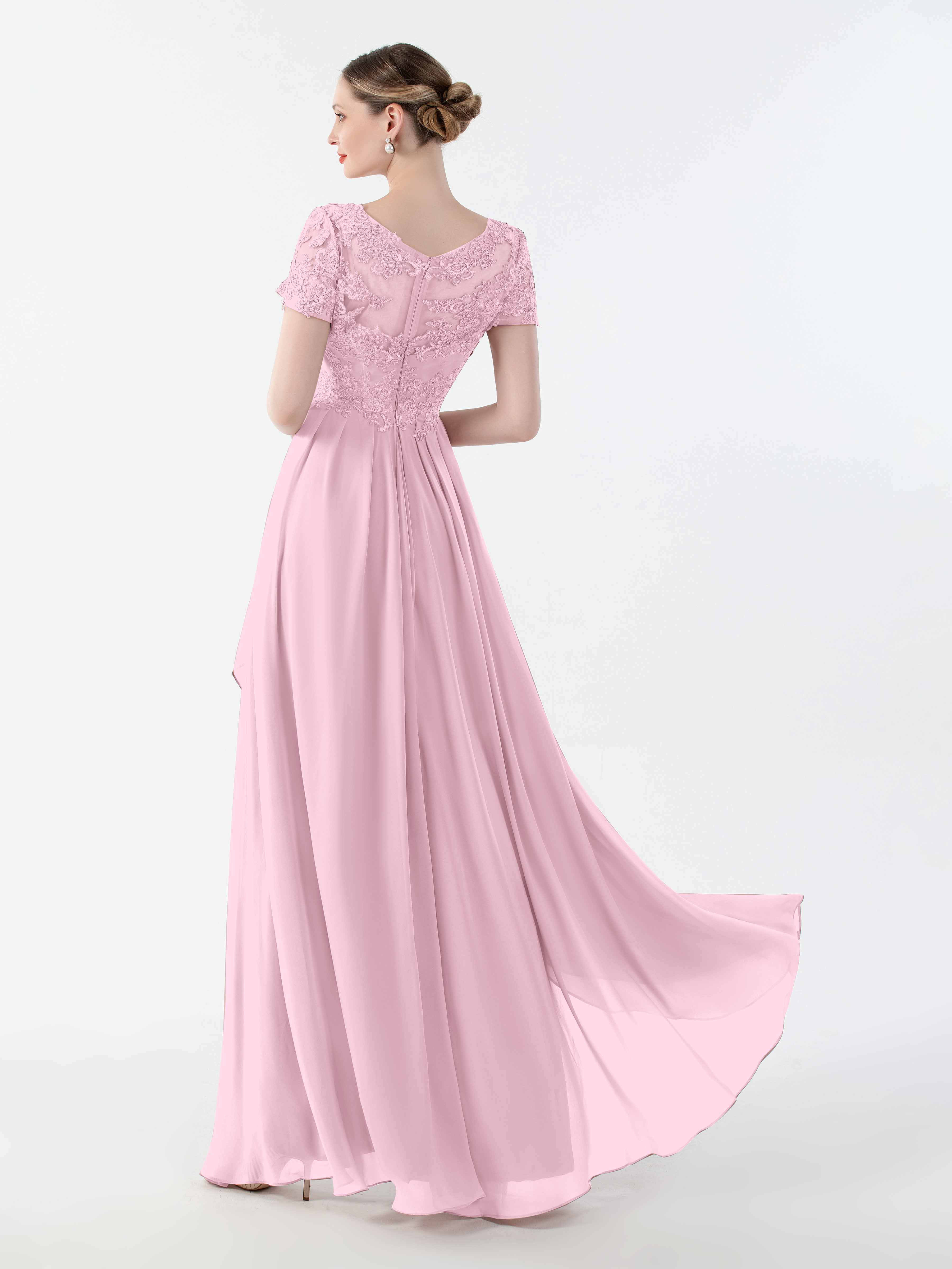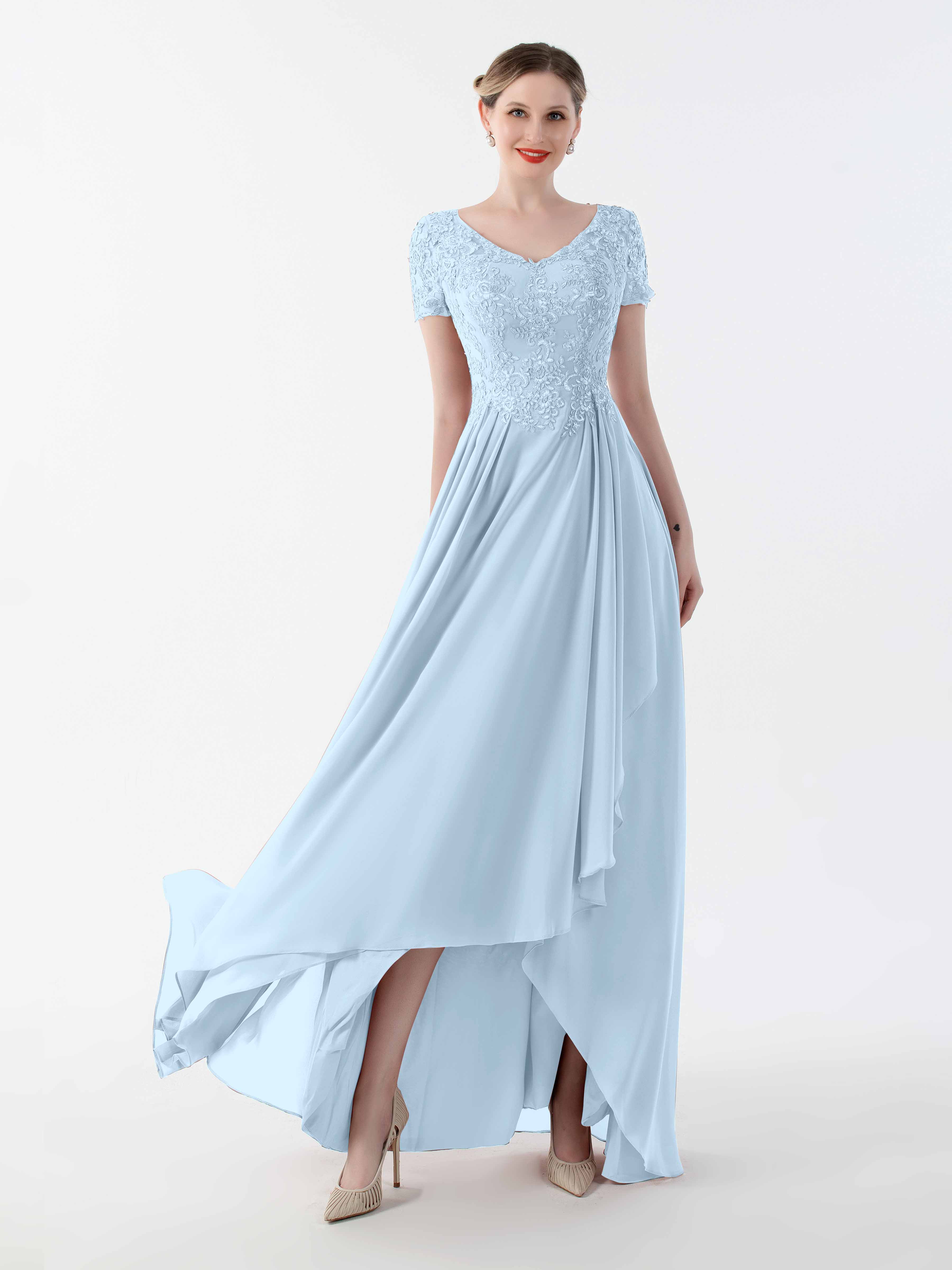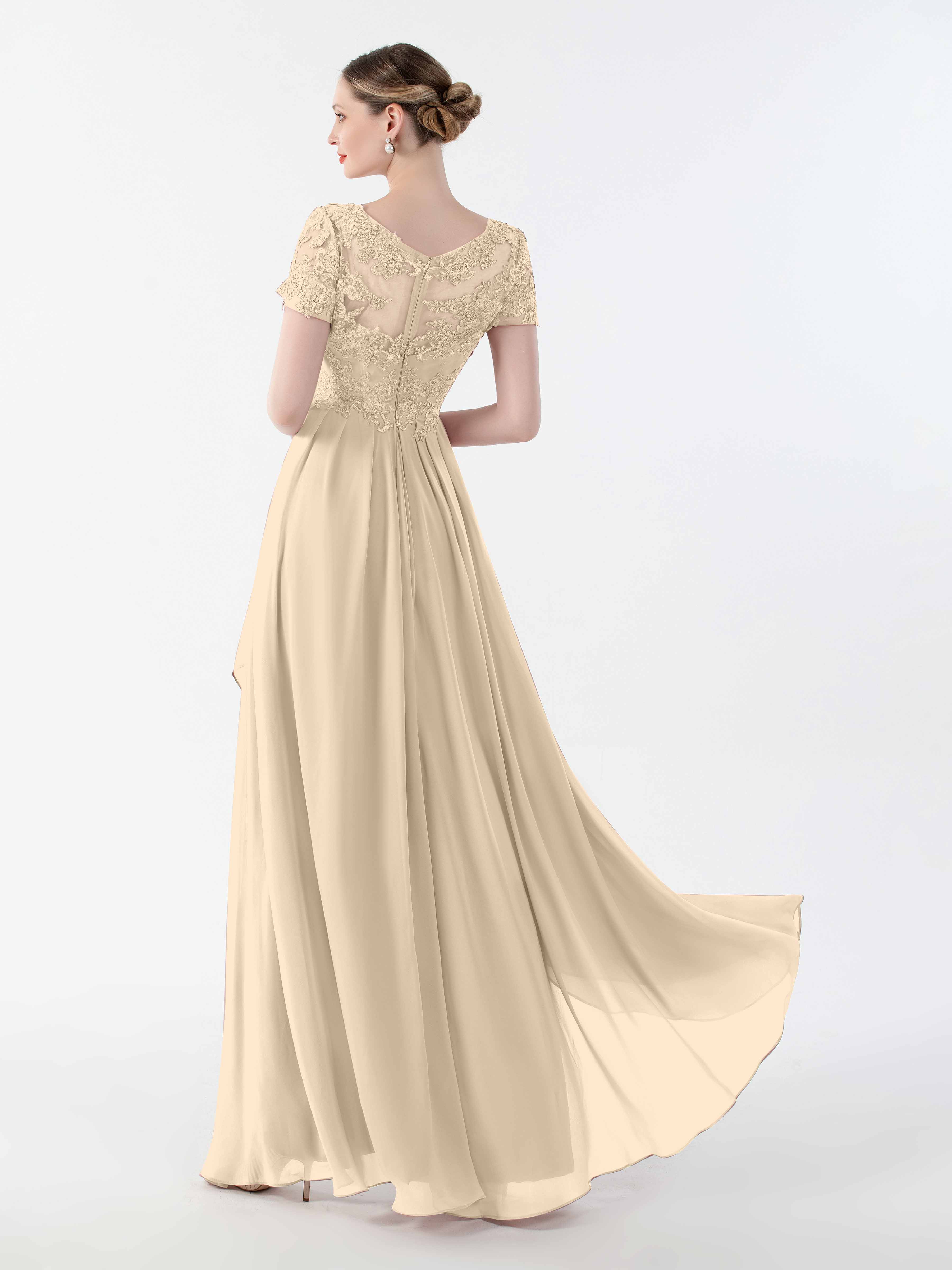 Robes Mère De La Mariée En Mousseline À Asymétrique Et Manches Courtes Journee