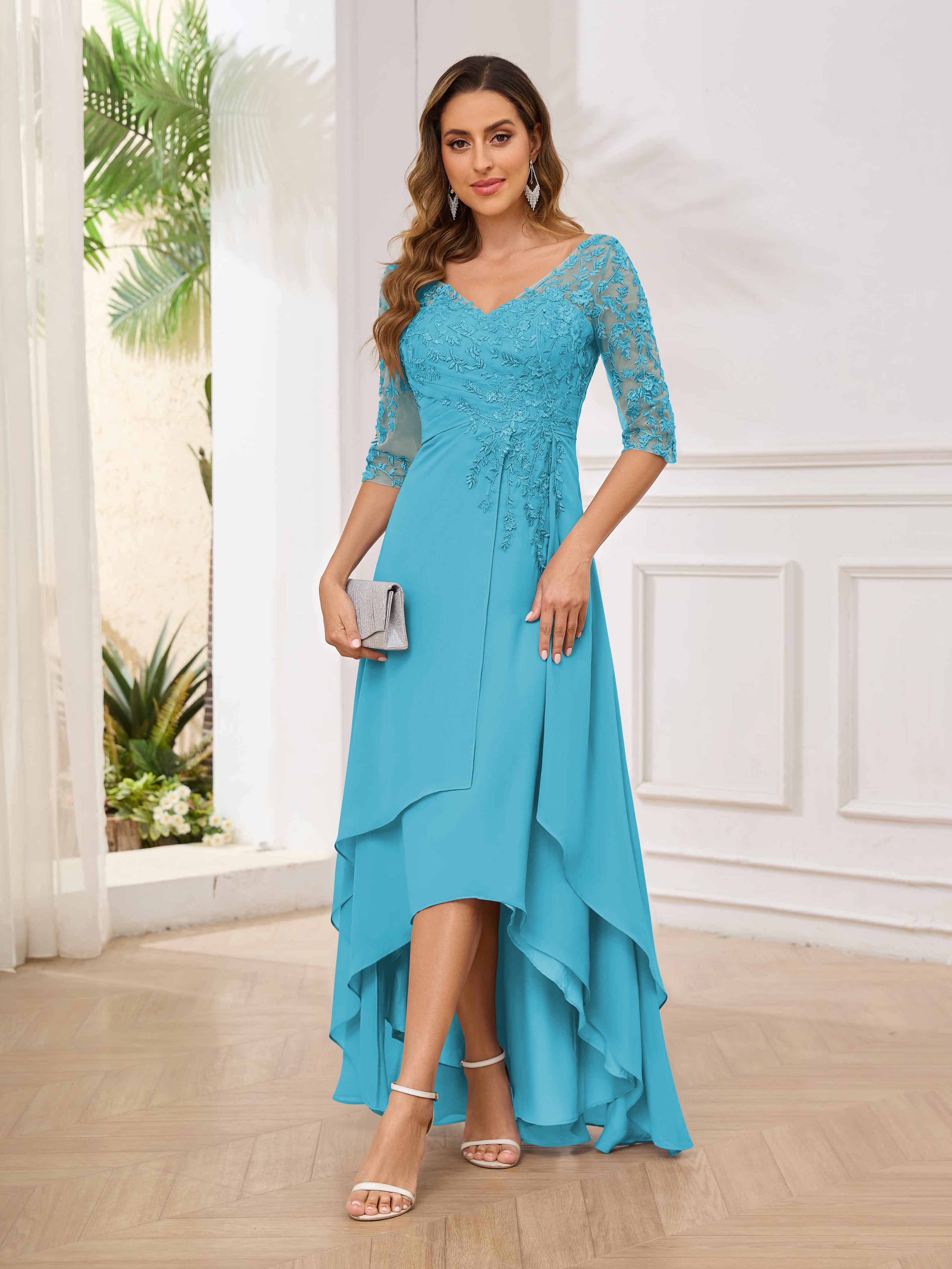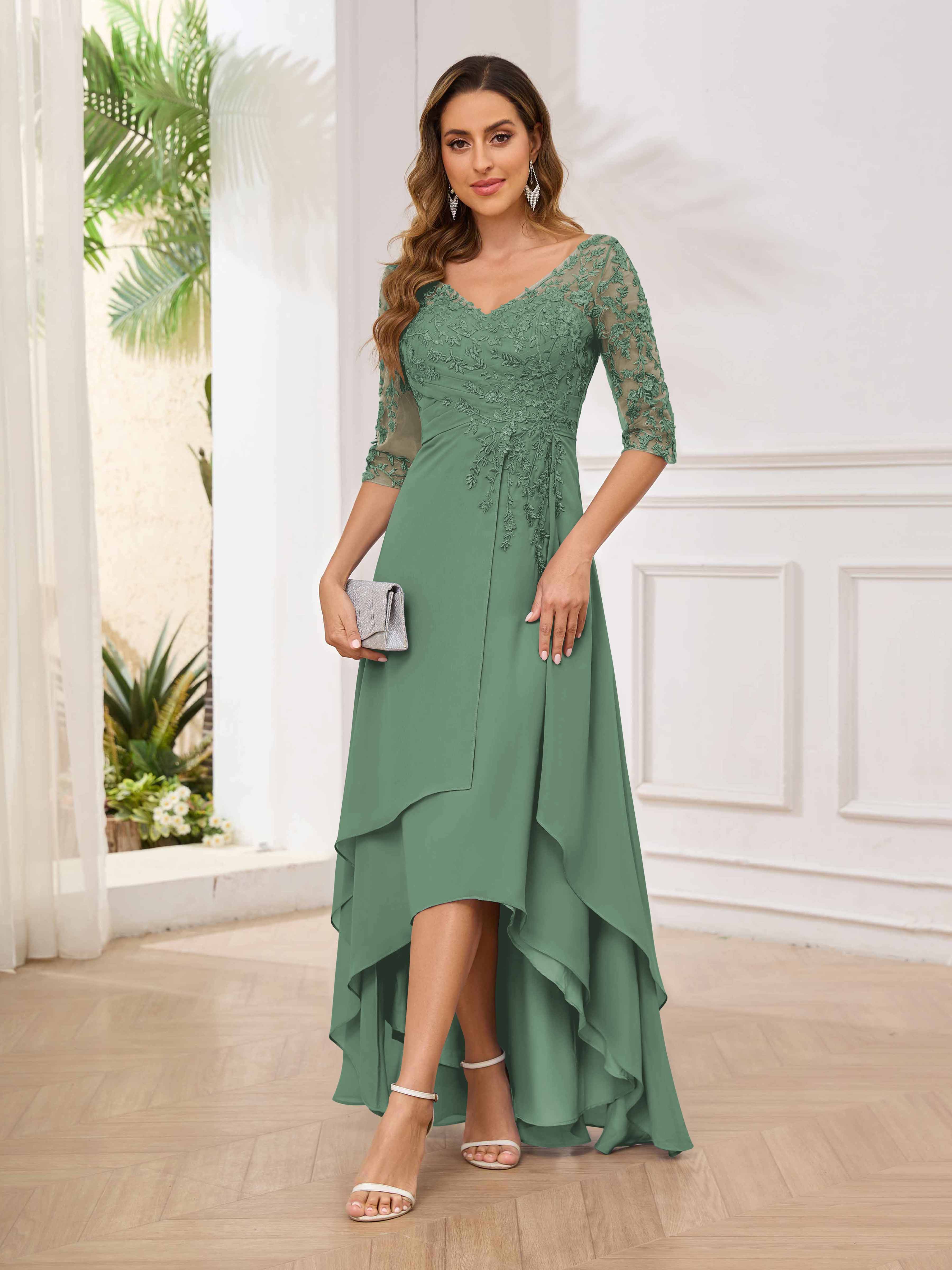 Robes Mère De La Mariée En Mousseline À Dentelle Asymétrique Blaire