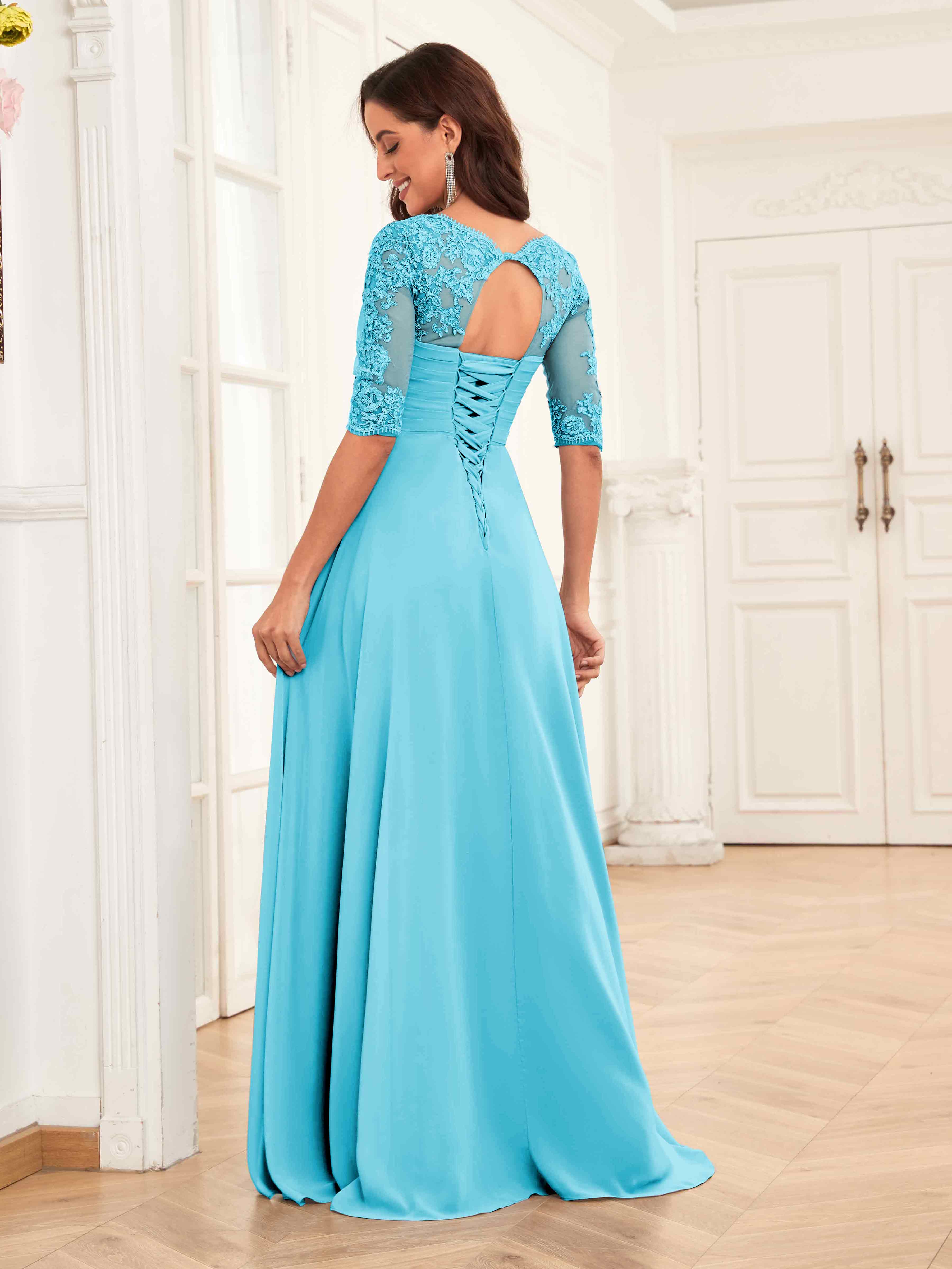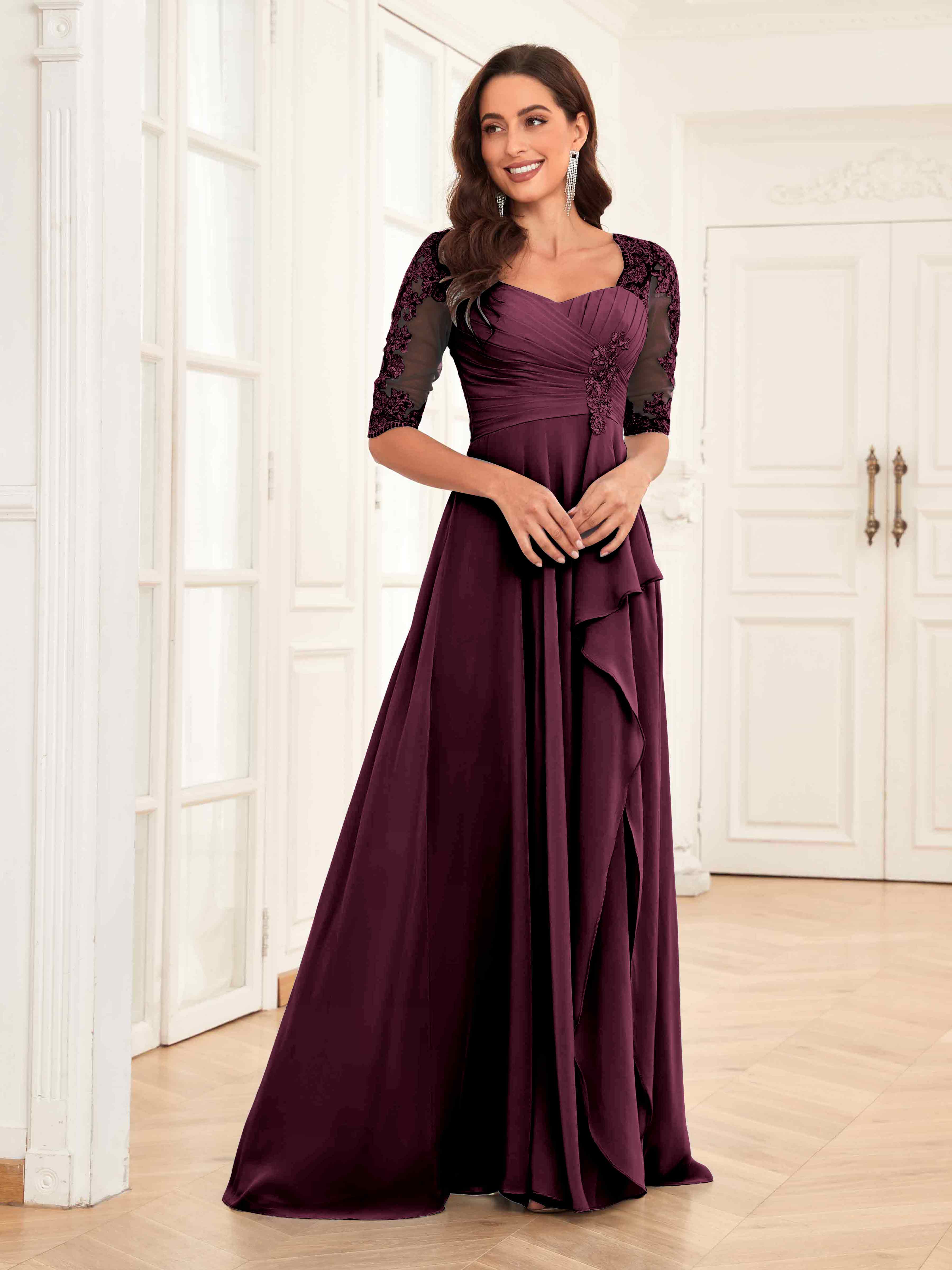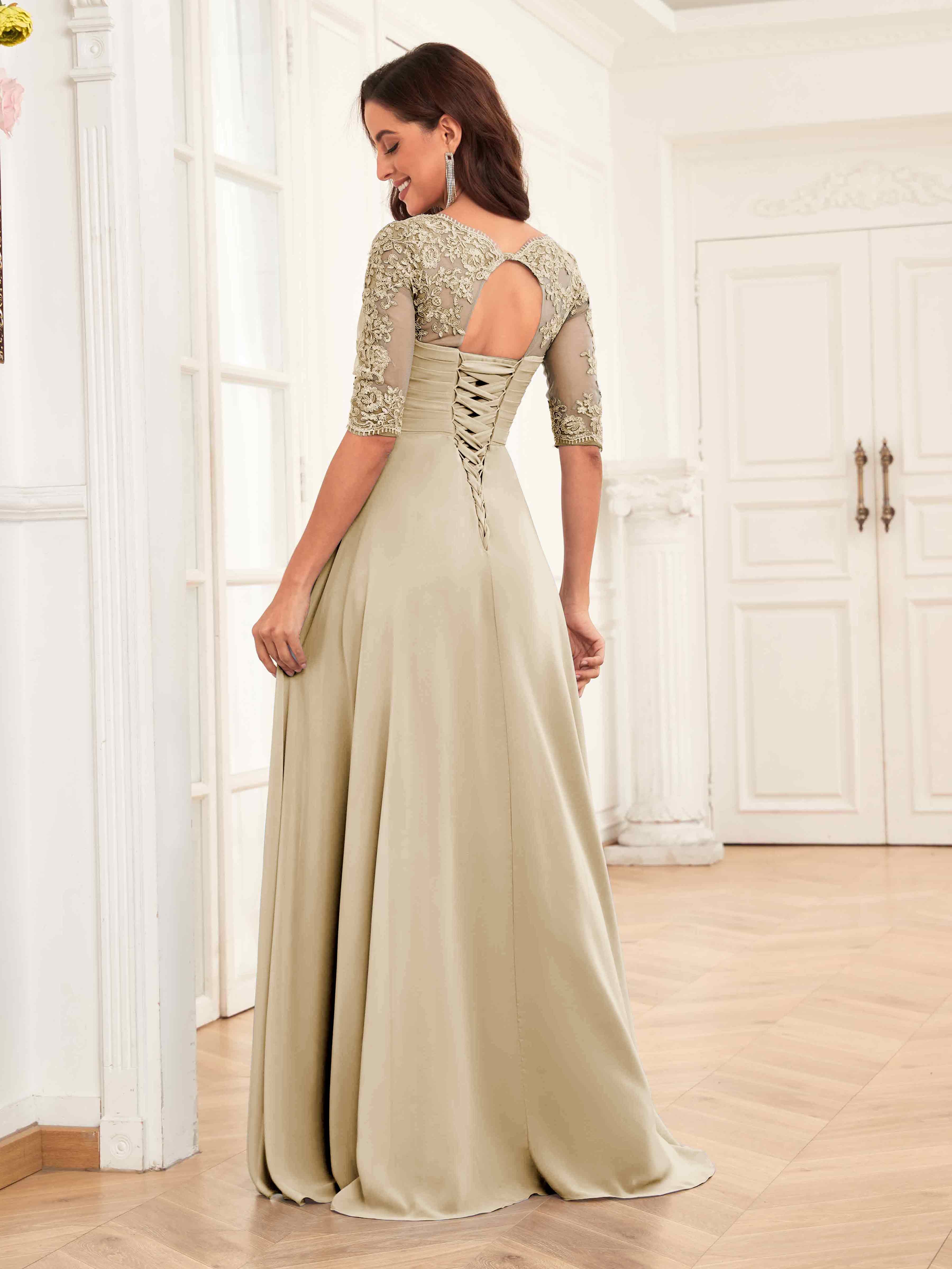 Offrez-vous le luxe avec nos luxueuses robes de mère de la mariée en dentelle à demi-manches chérie. Ces robes exquises sont conçues pour vous faire sentir comme des rois lors de la journée spéciale de votre fille. Le décolleté en cœur et les demi-manches délicates créent un look romantique et élégant.