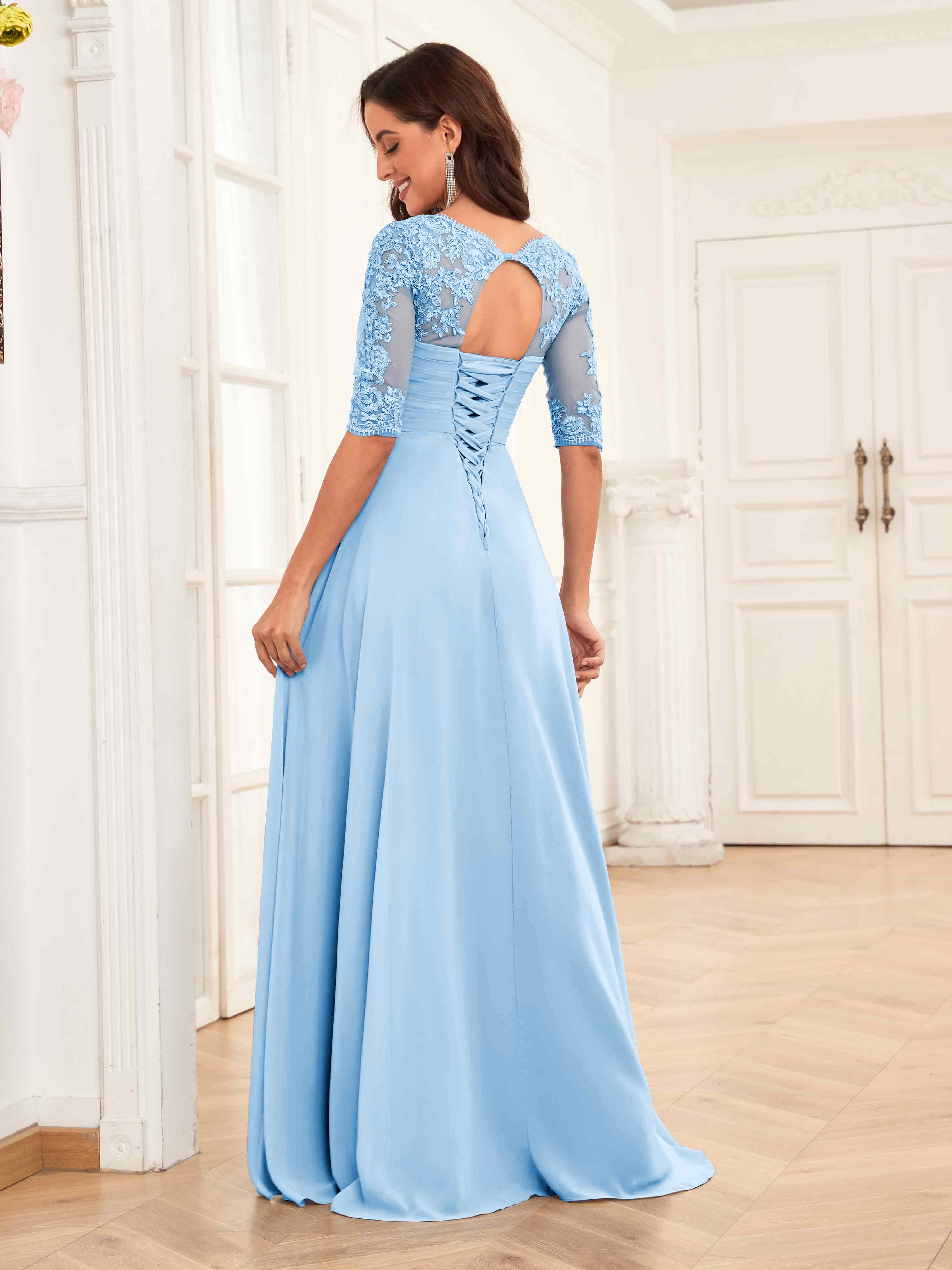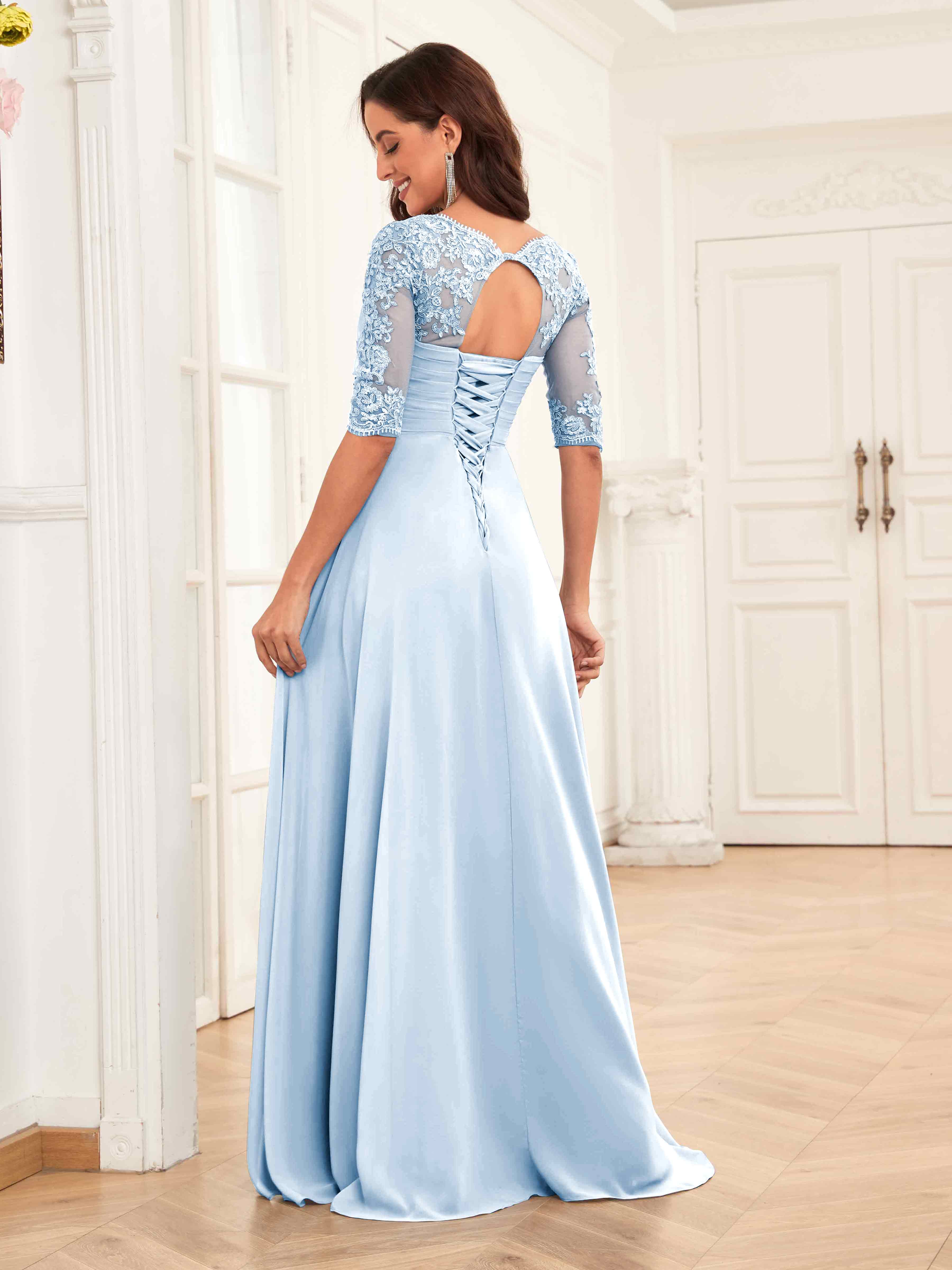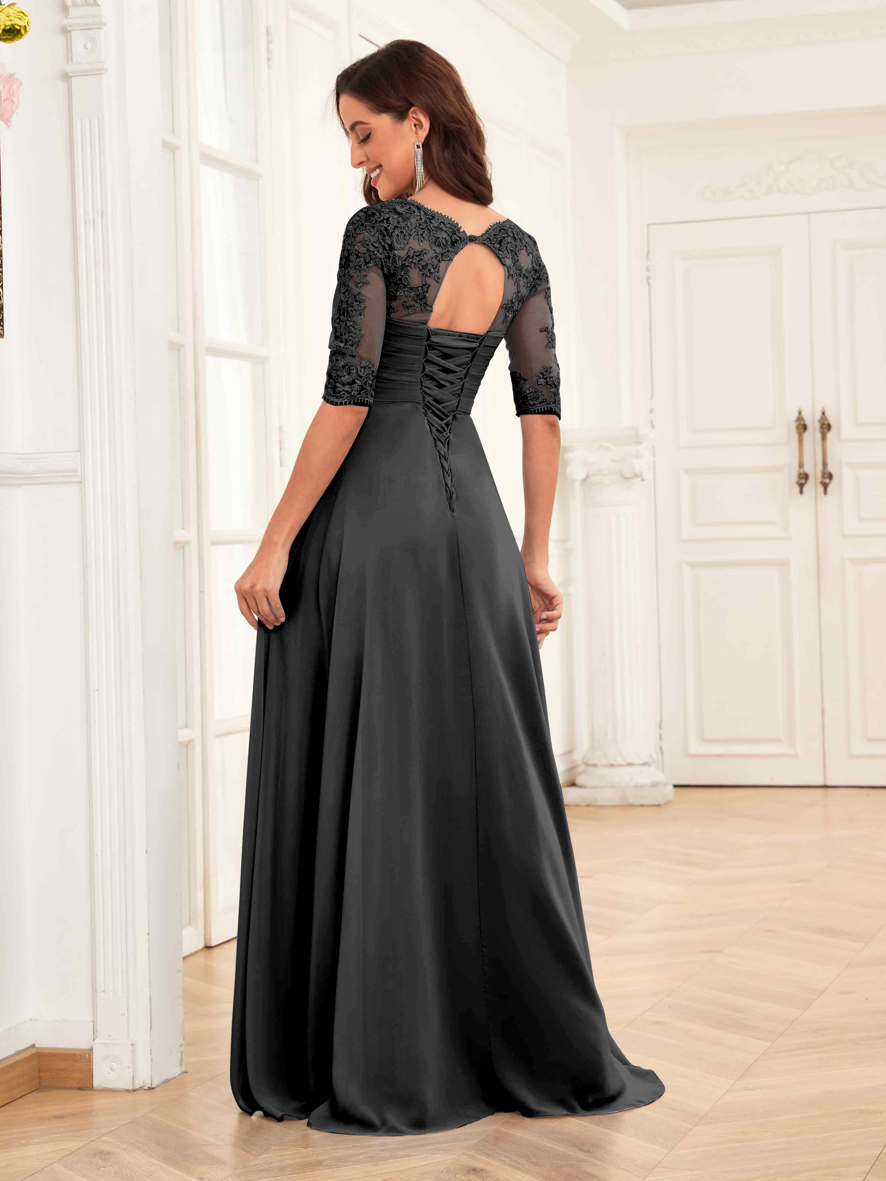 Offrez-vous le luxe avec nos luxueuses robes de mère de la mariée en dentelle à demi-manches chérie. Ces robes exquises sont conçues pour vous faire sentir comme des rois lors de la journée spéciale de votre fille. Le décolleté en cœur et les demi-manches délicates créent un look romantique et élégant.