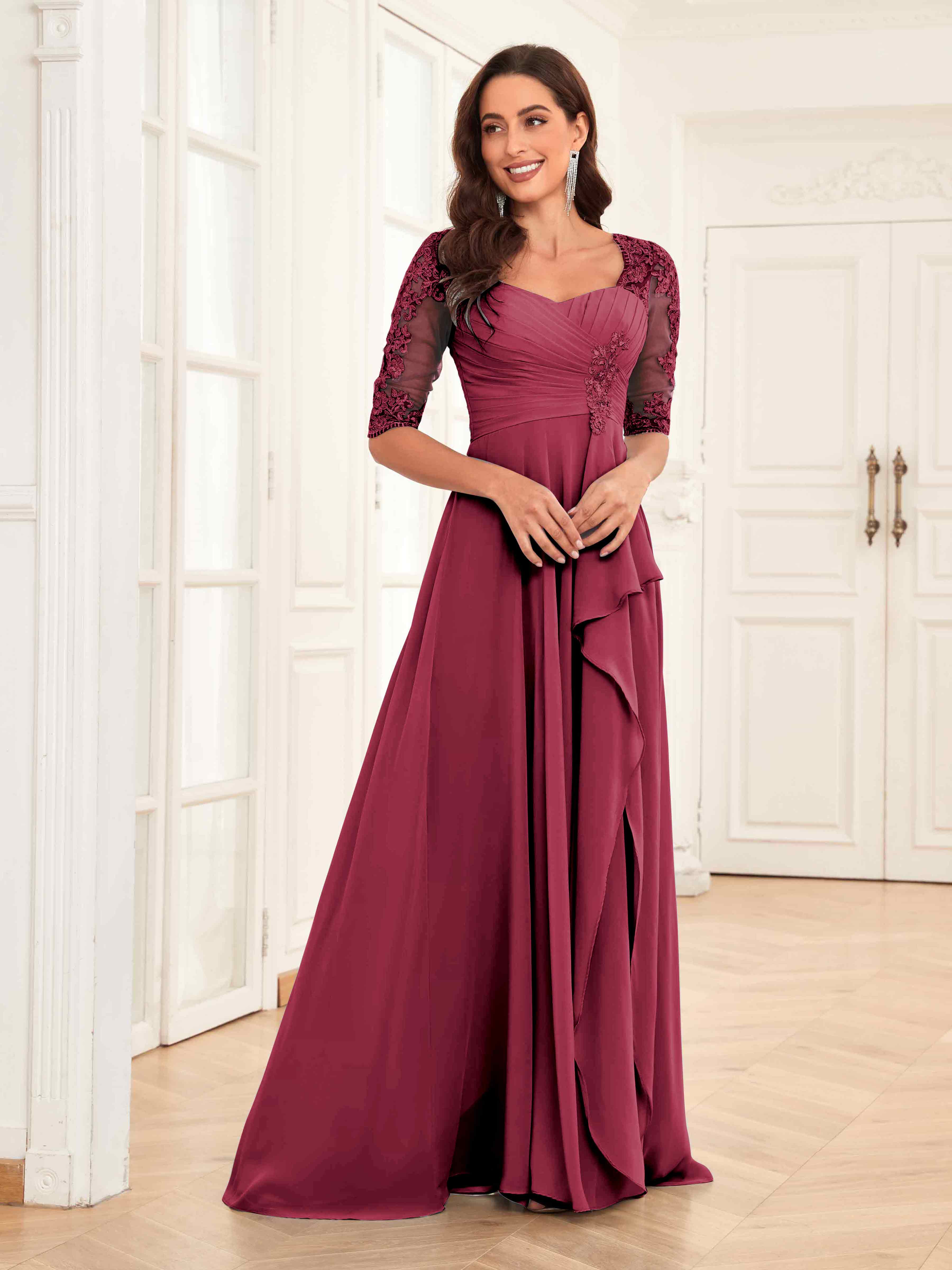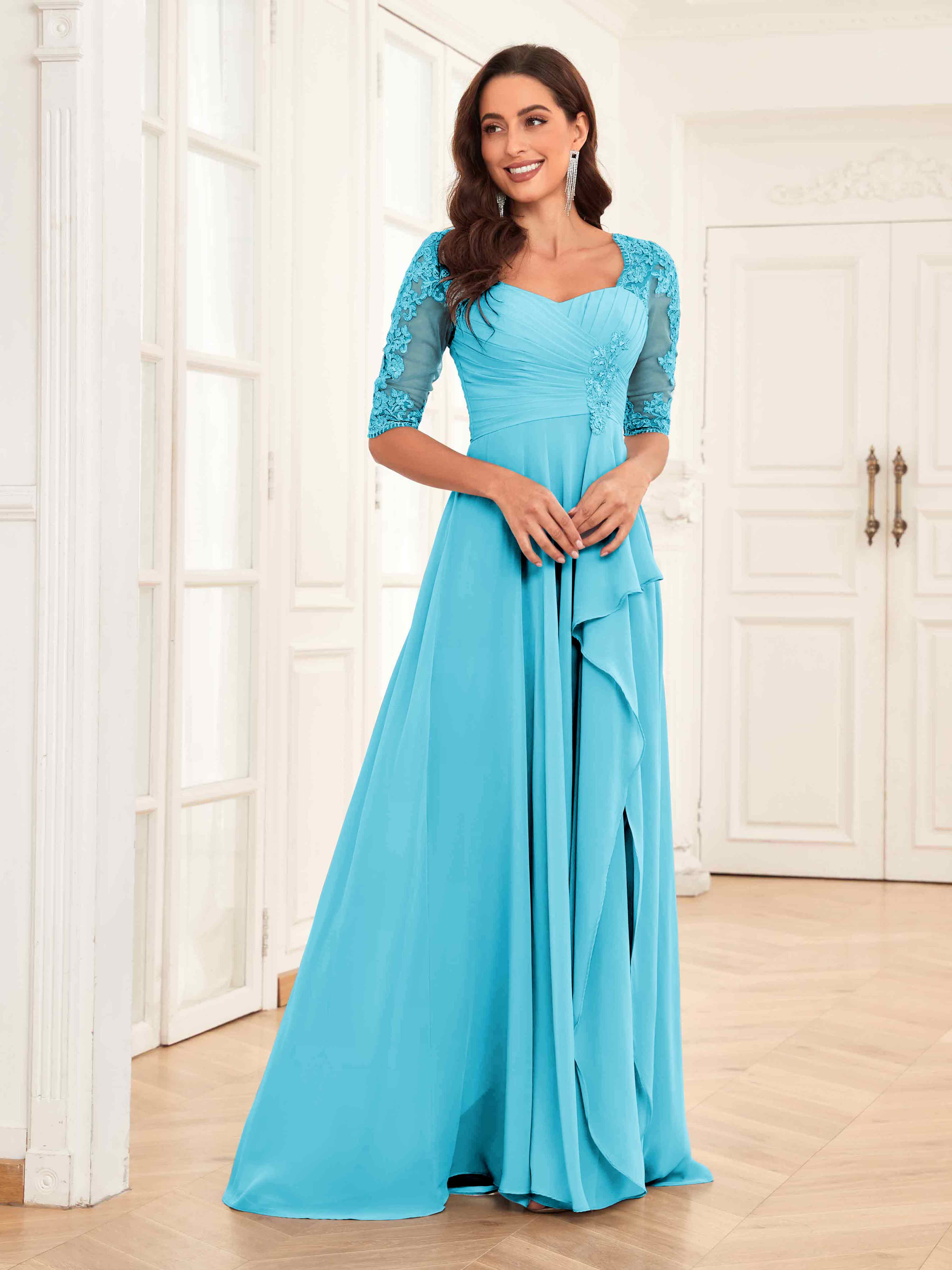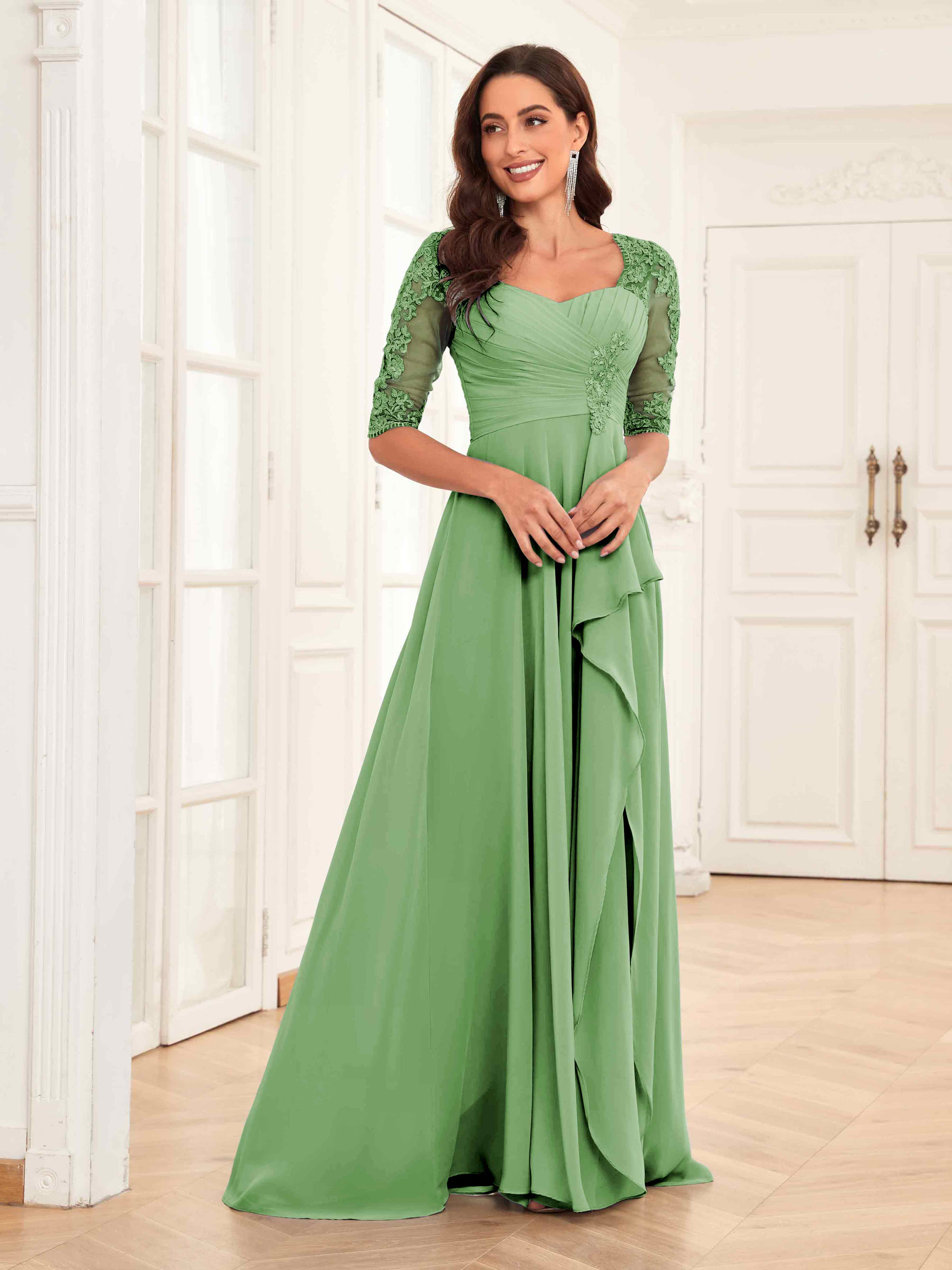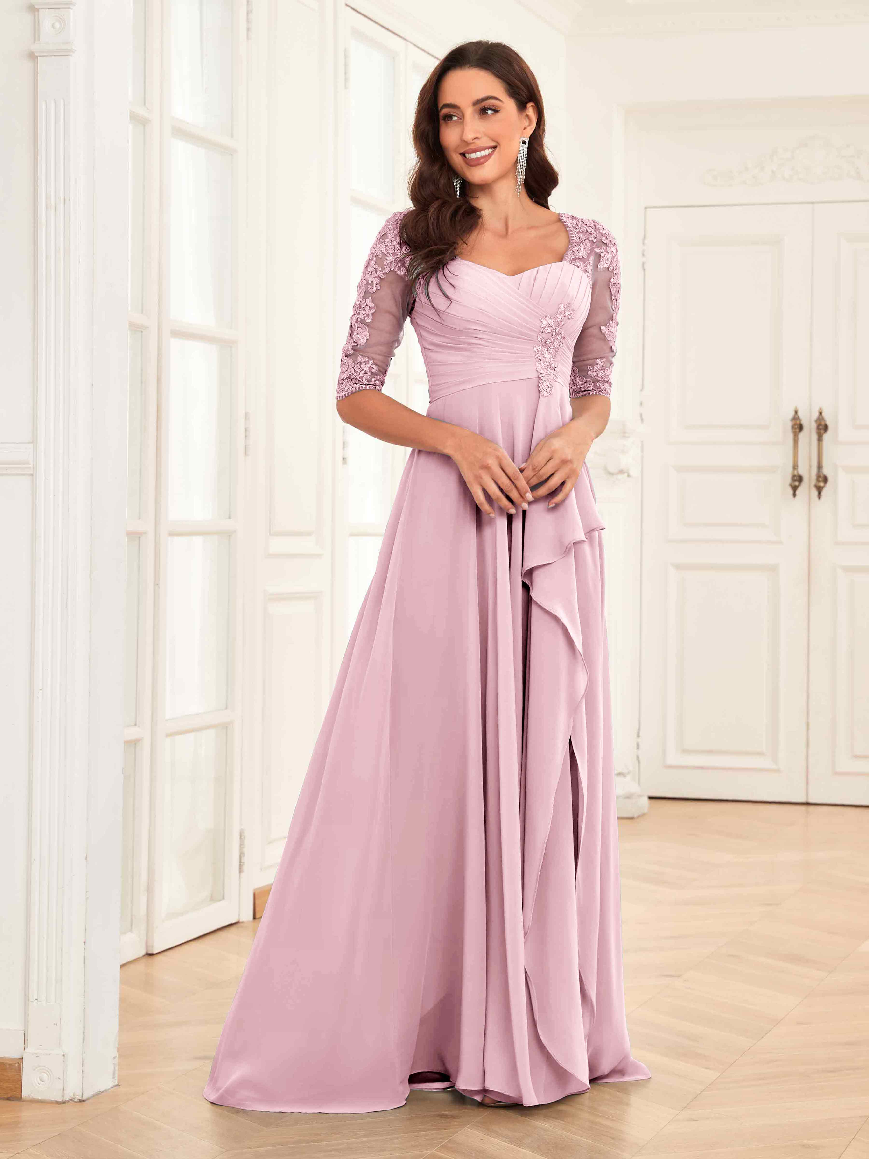 Robes Mère De La Mariée En Mousseline À Dentelle Volants et Fente à jambe Elaina