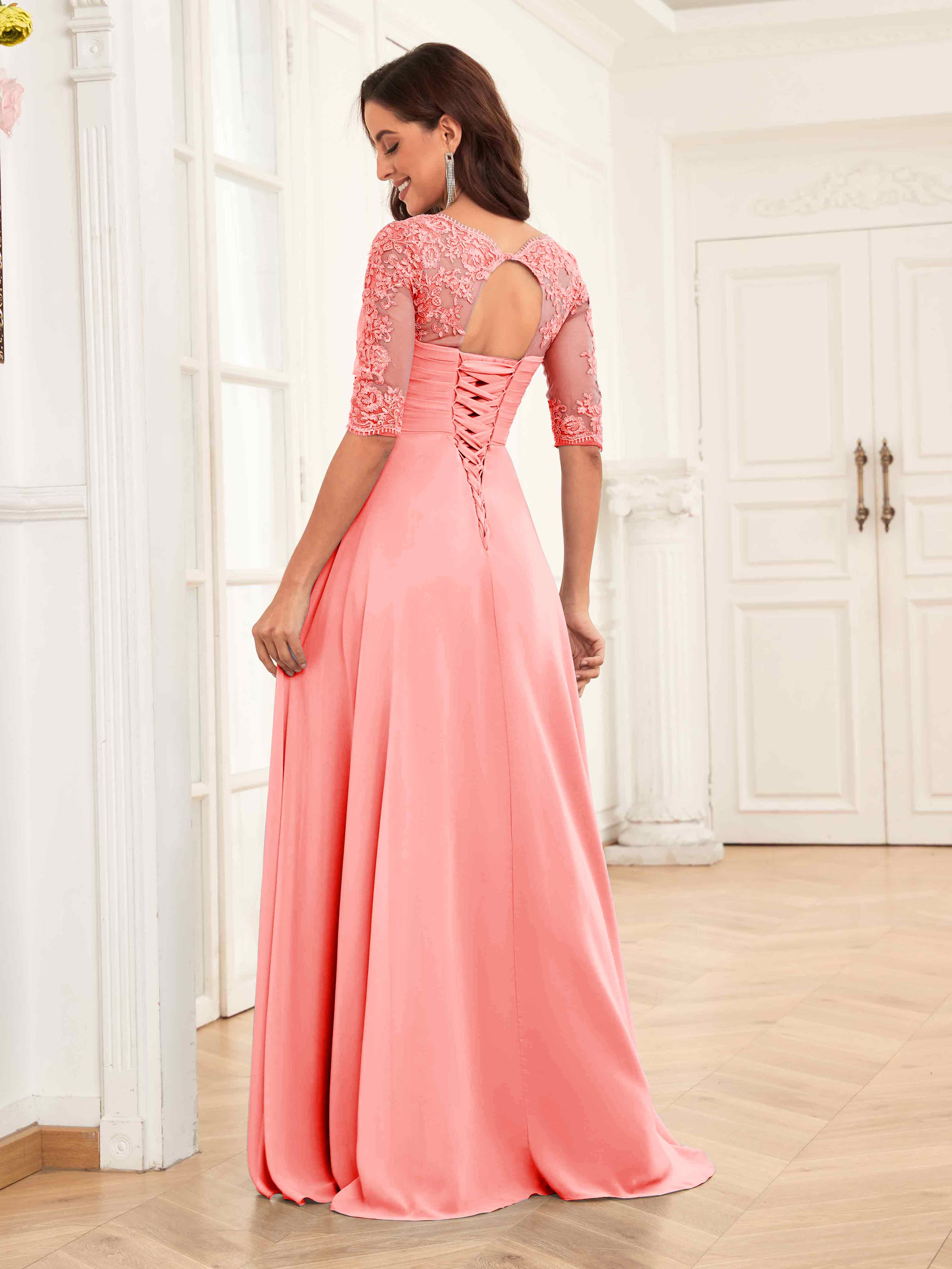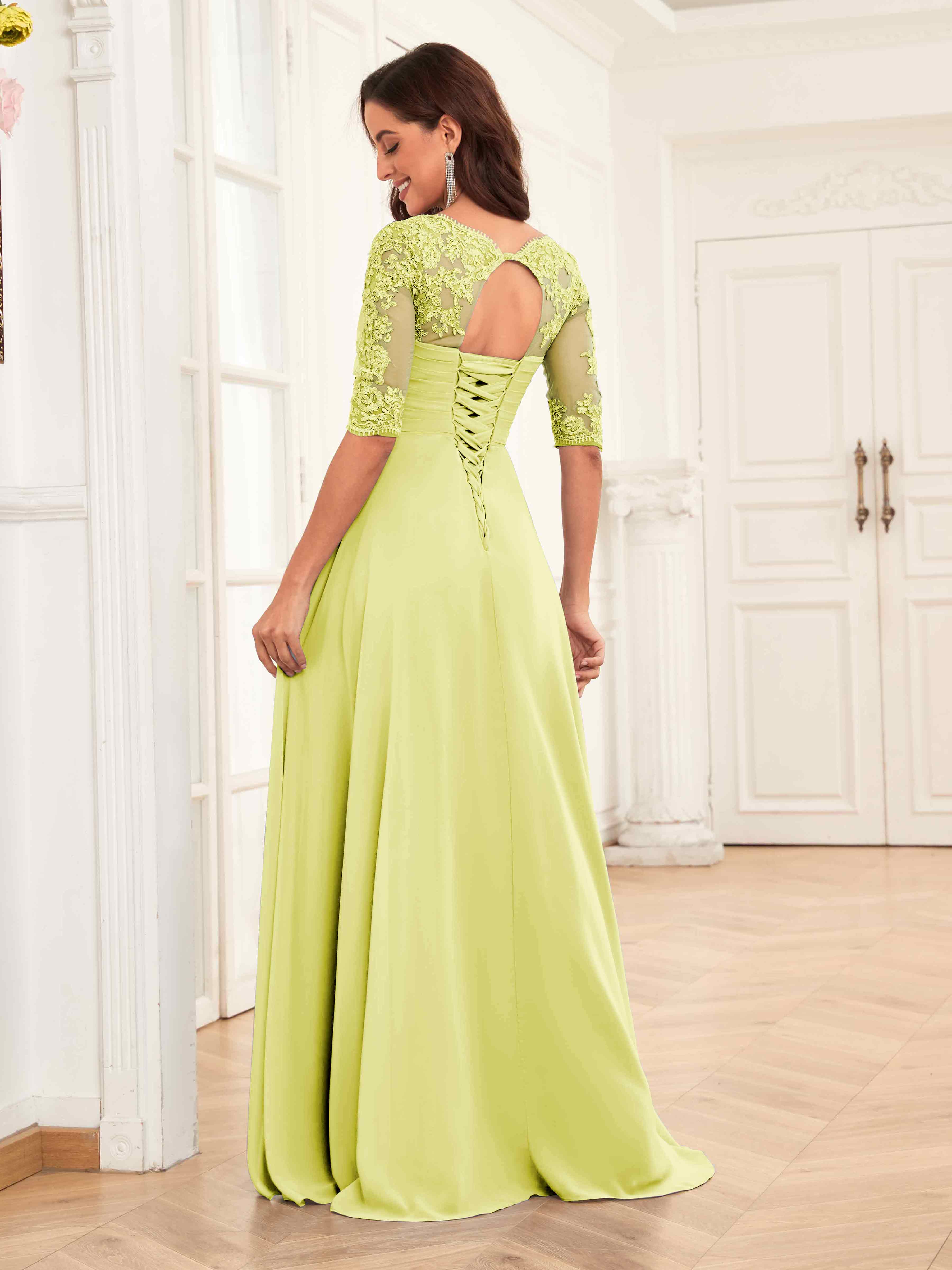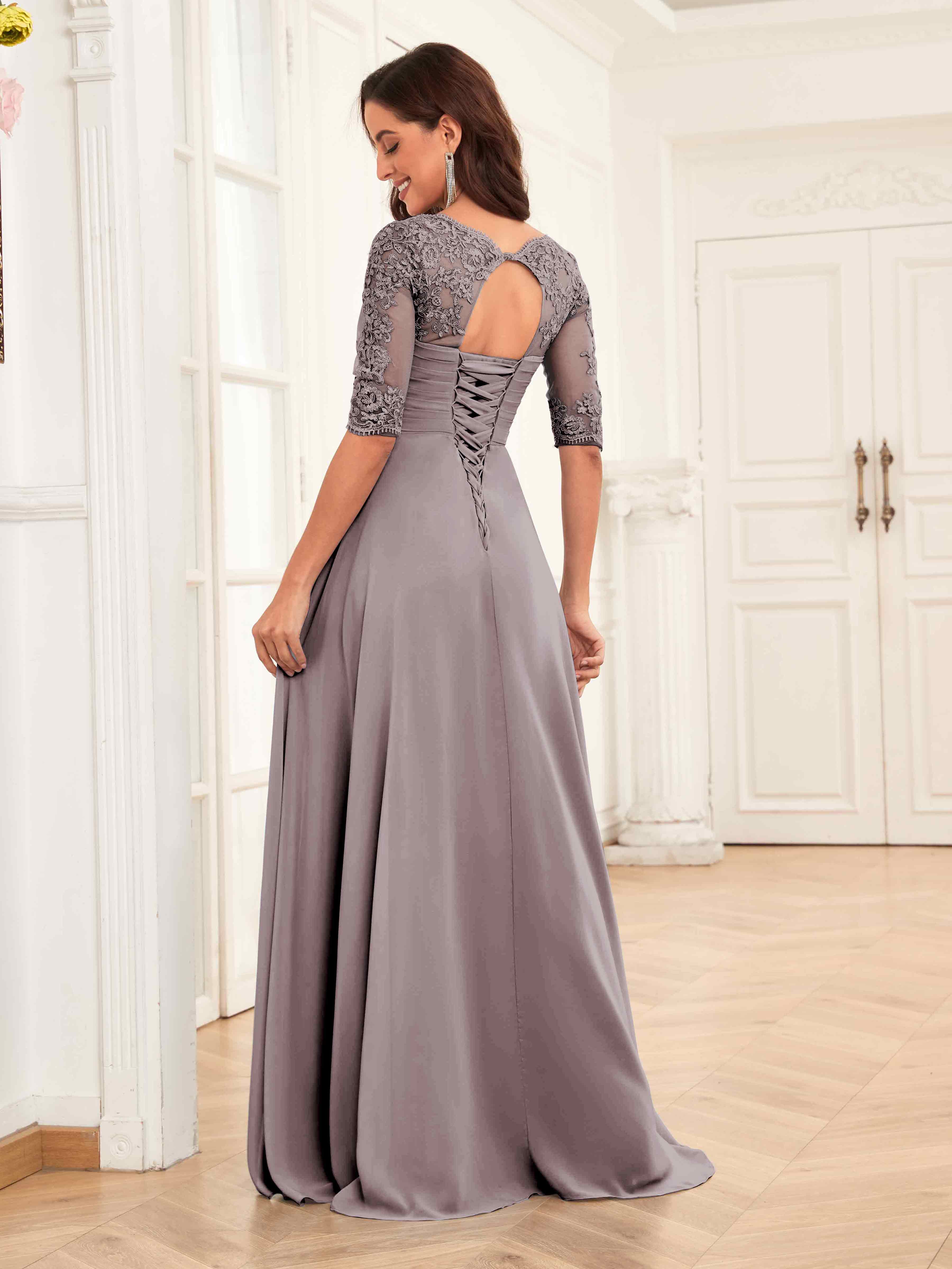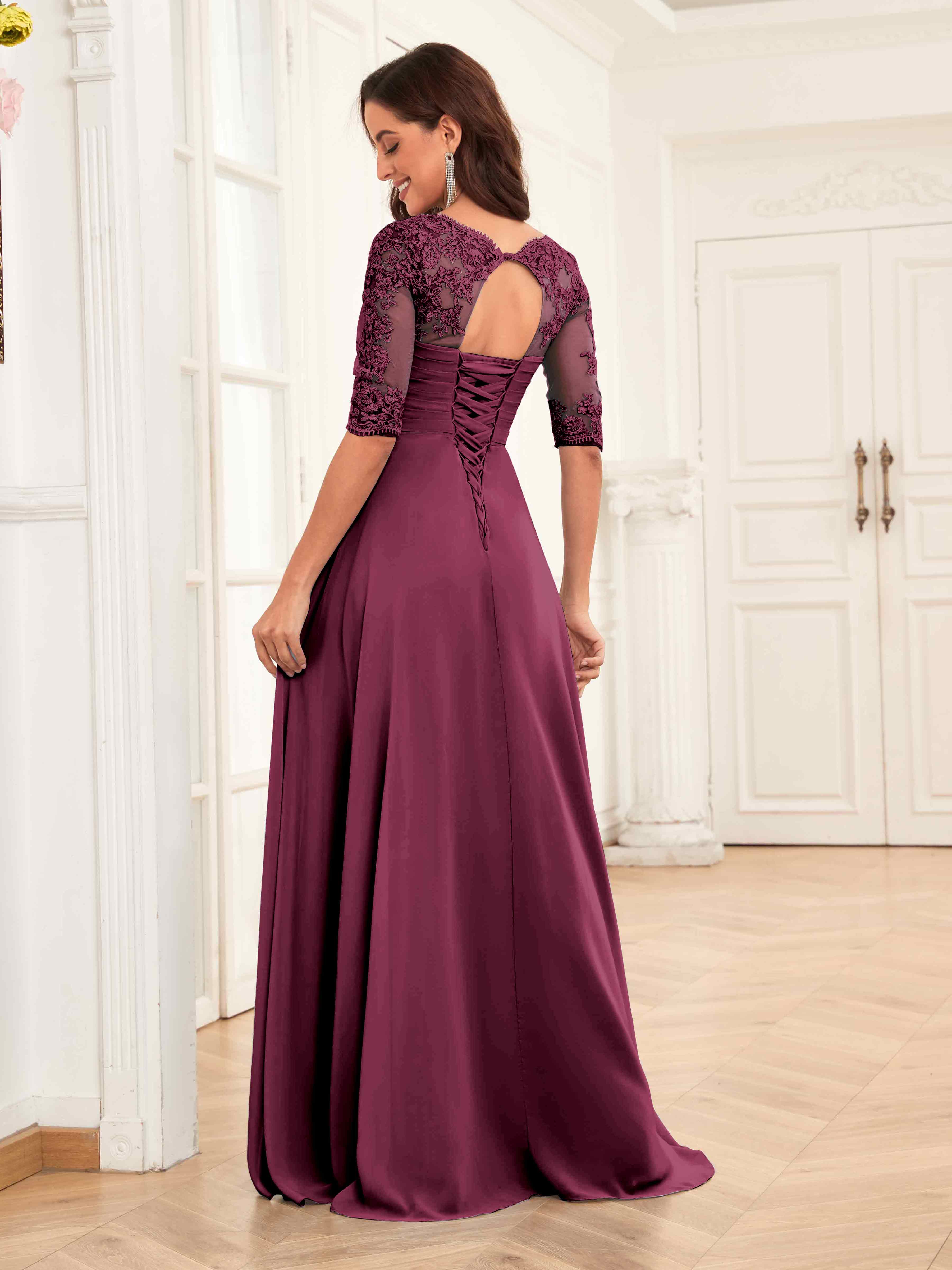 Robes Mère De La Mariée En Mousseline À Dentelle Volants et Fente à jambe Elaina