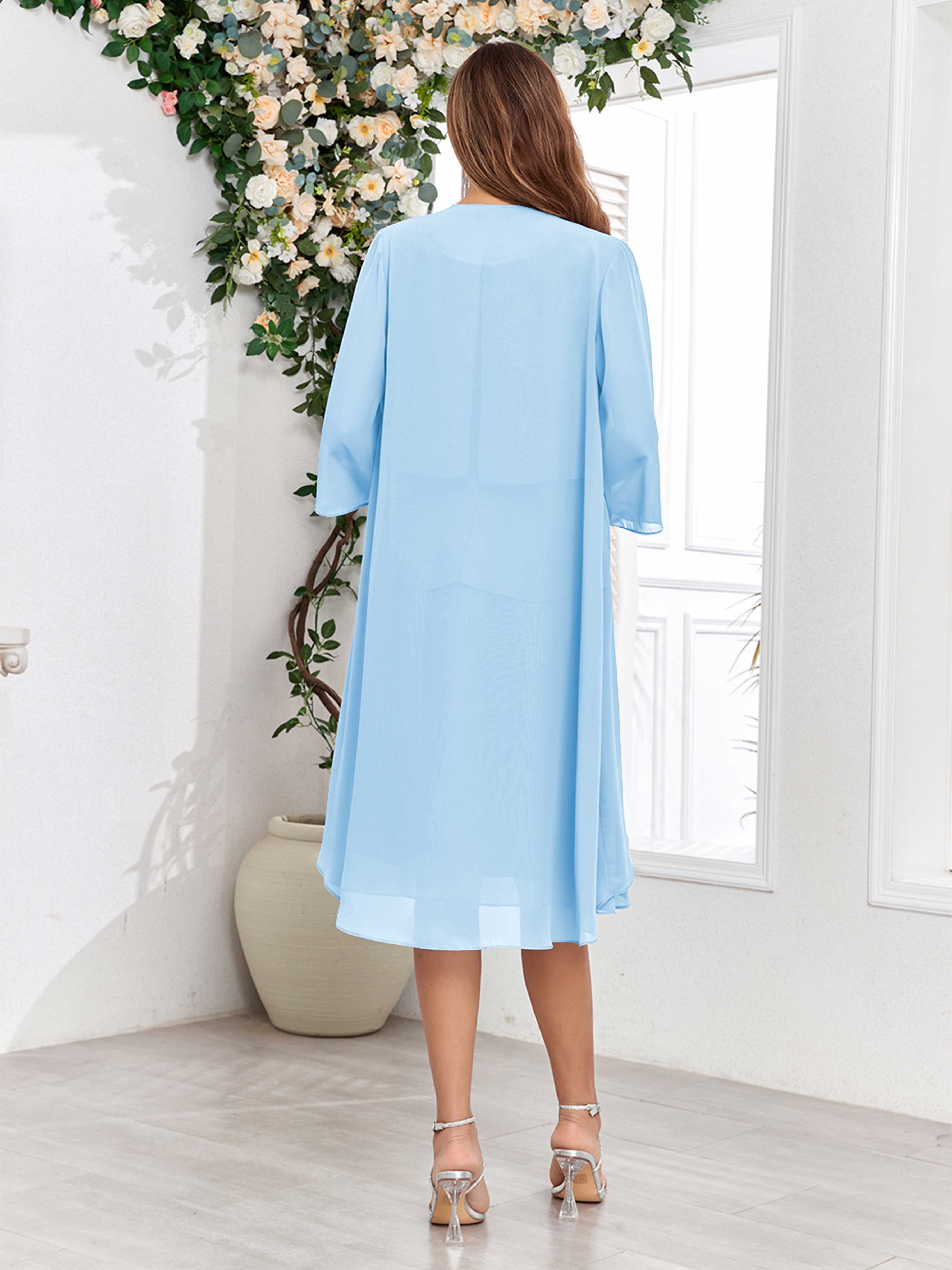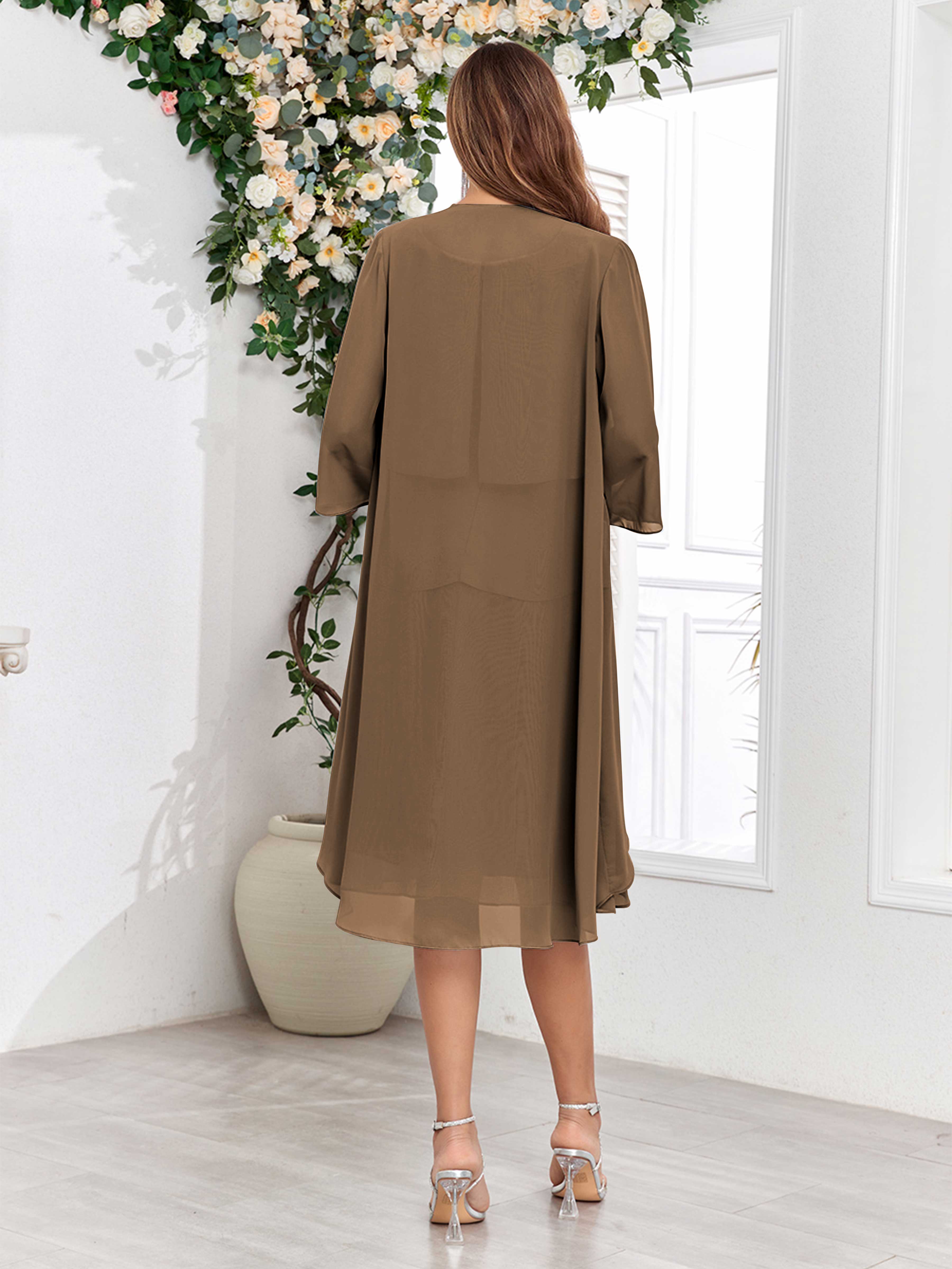 Robes Mère De La Mariée En Mousseline À Deux Pièces Longueur Aux Genoux Saige
