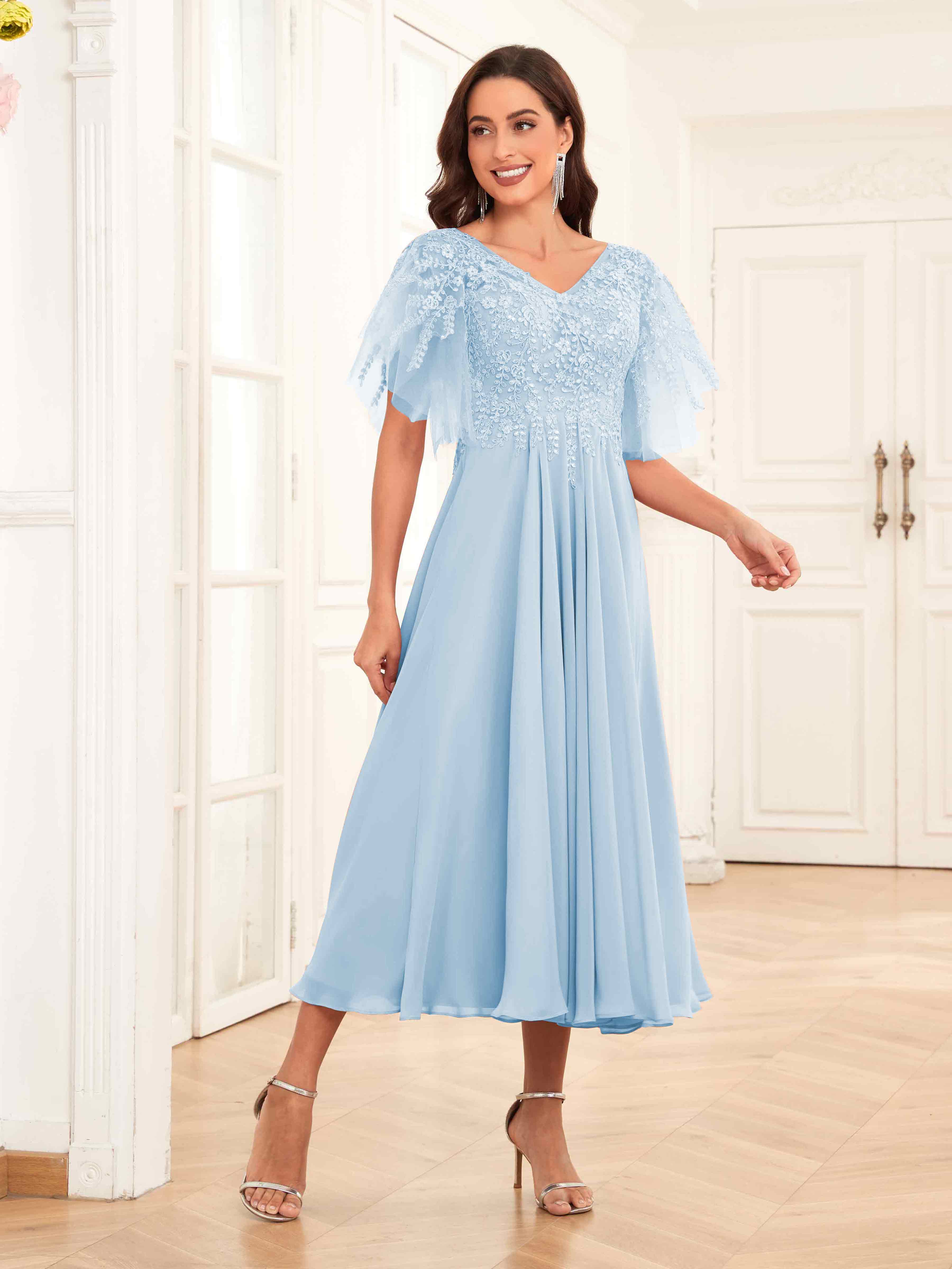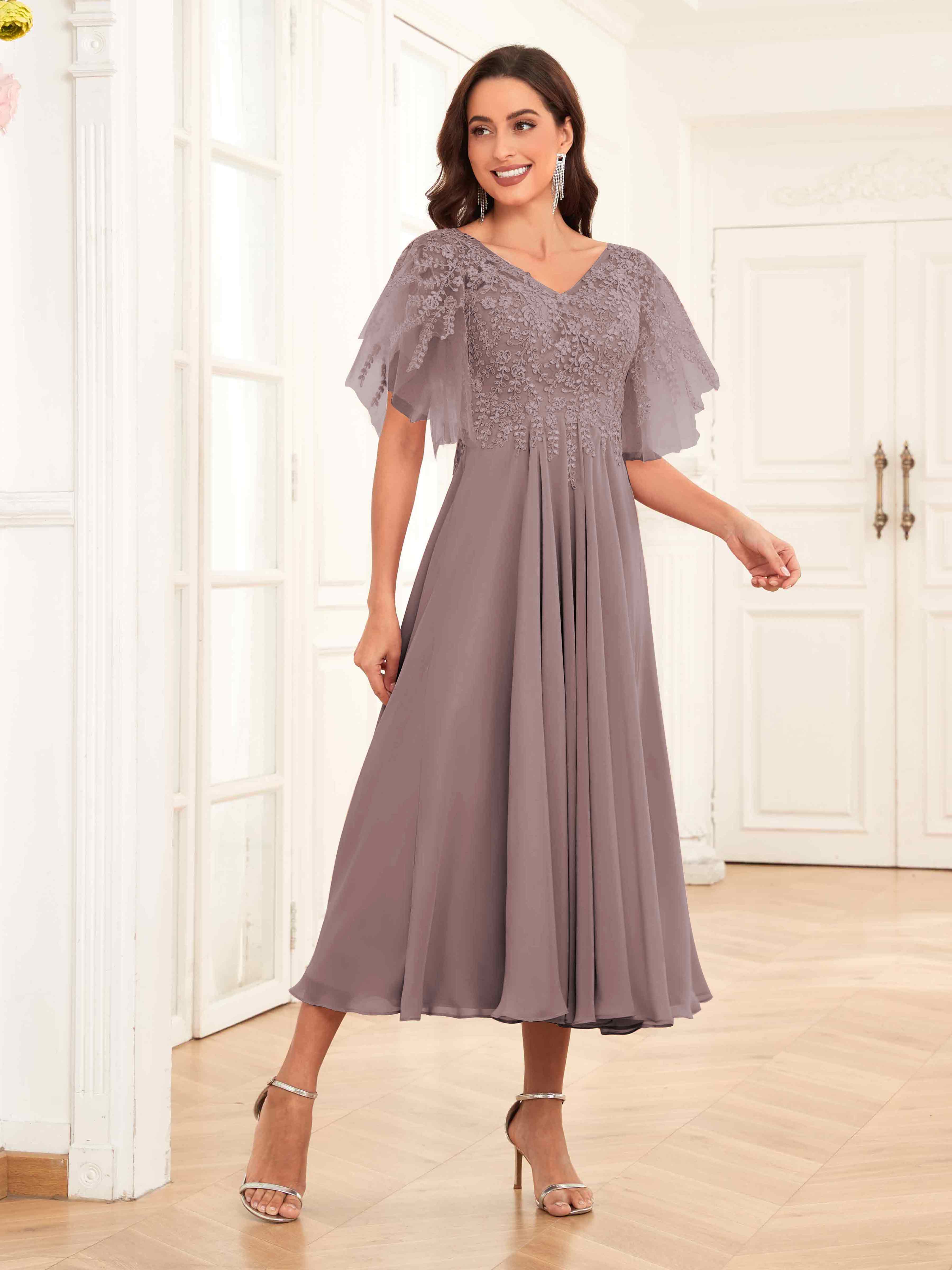 Robes Mère De La Mariée En Mousseline À Manches Courtes Daniela