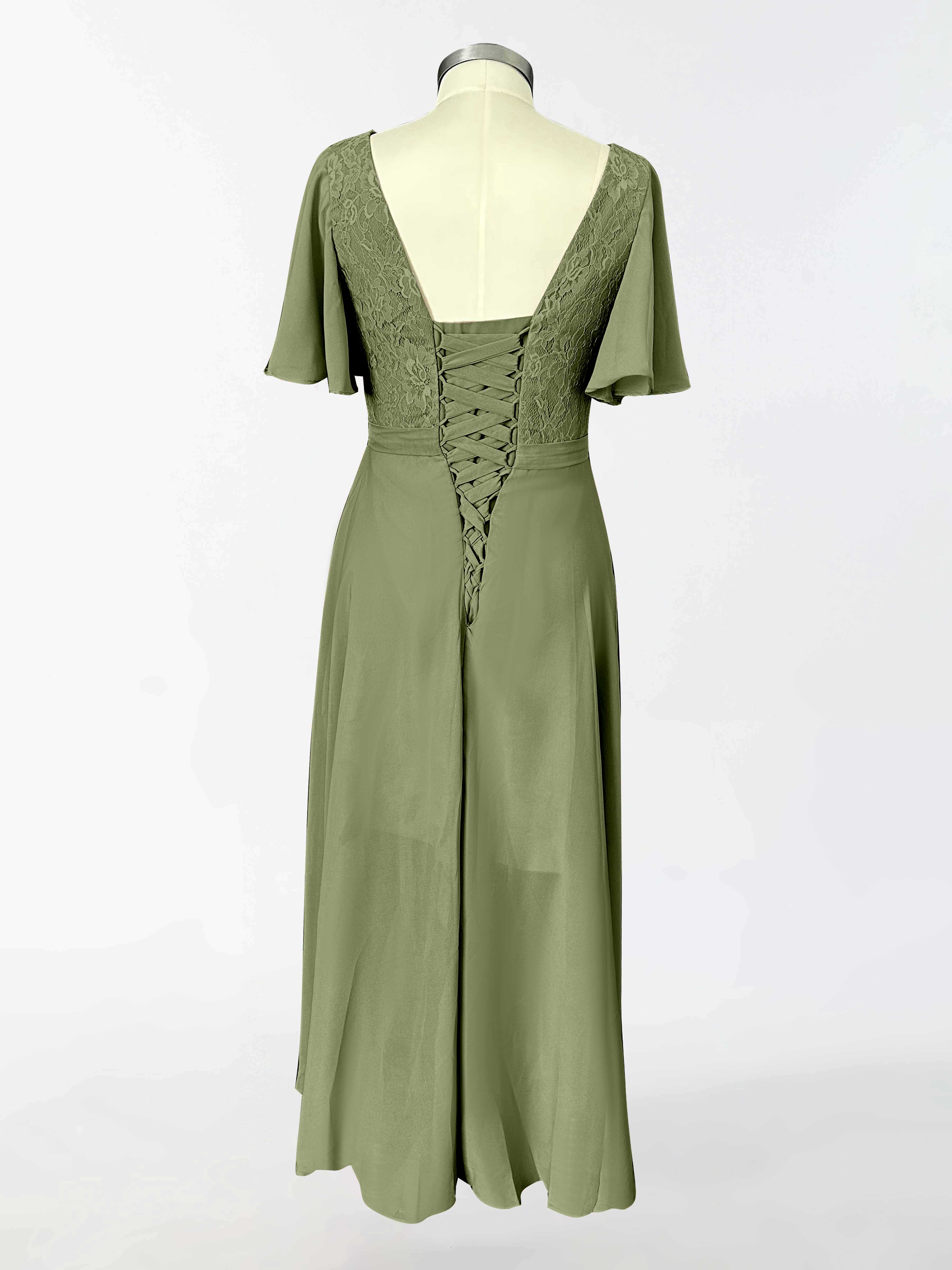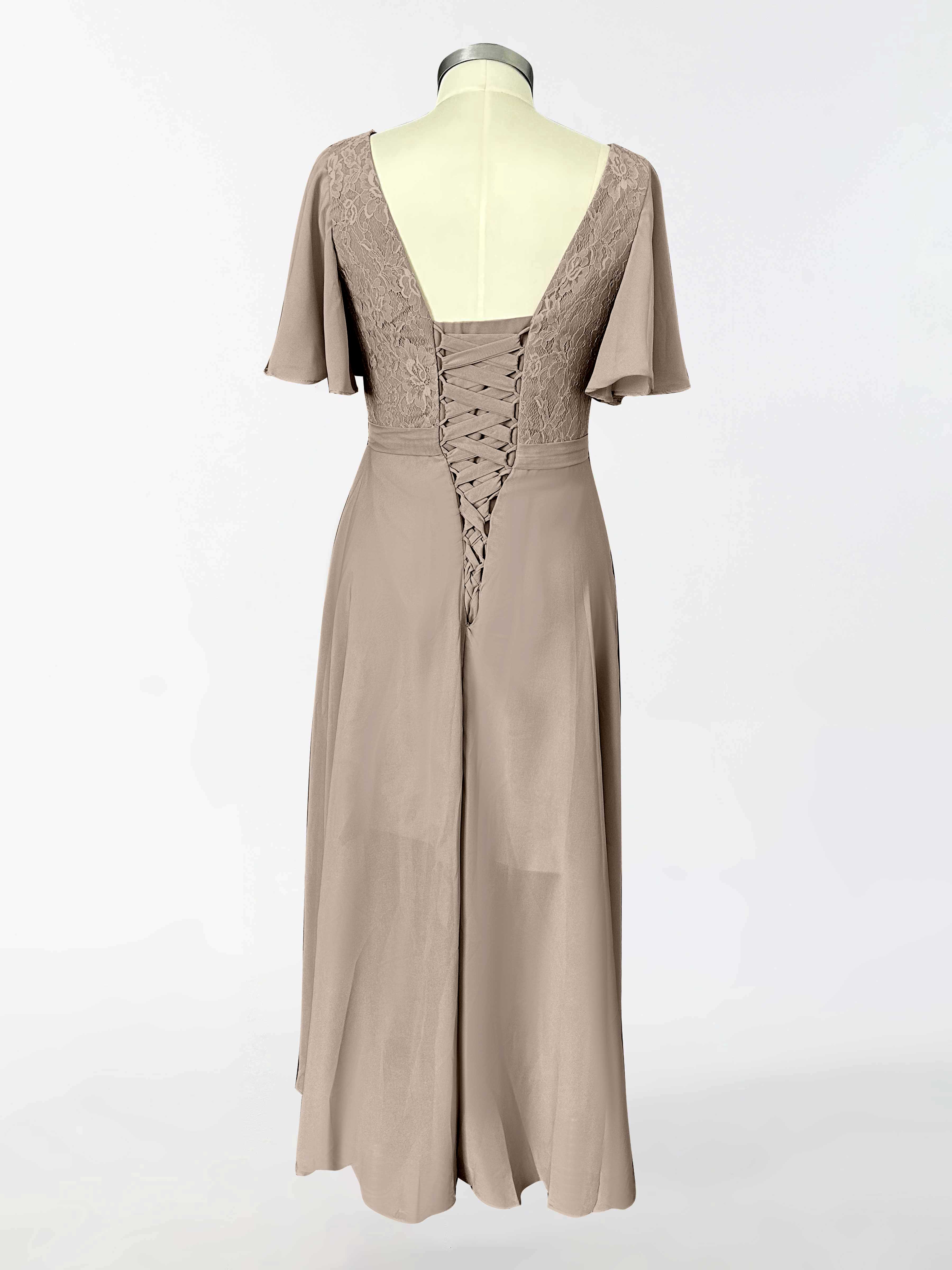 Robes Mère De La Mariée En Mousseline À Manches Longues Et Dentelle Elise