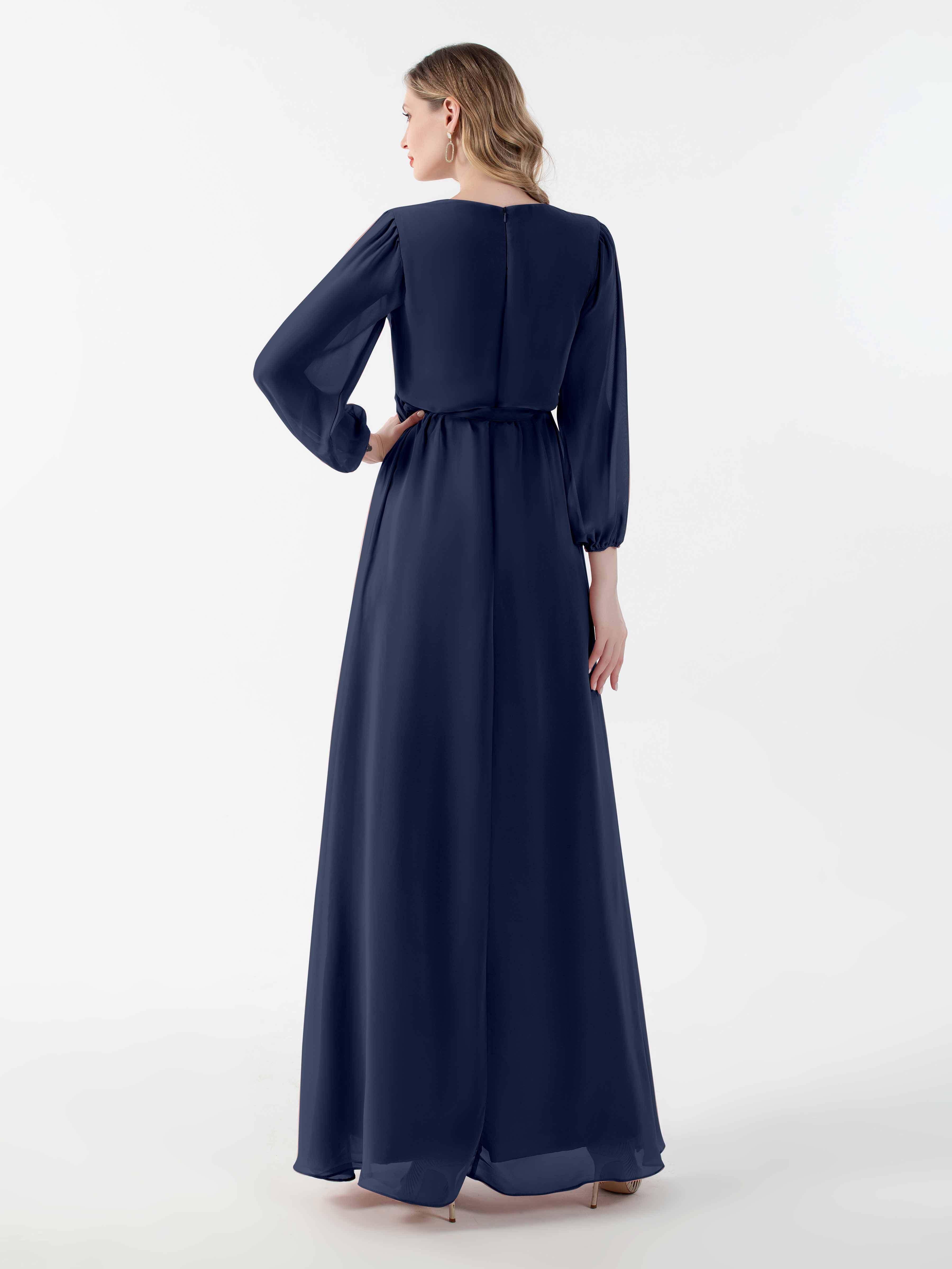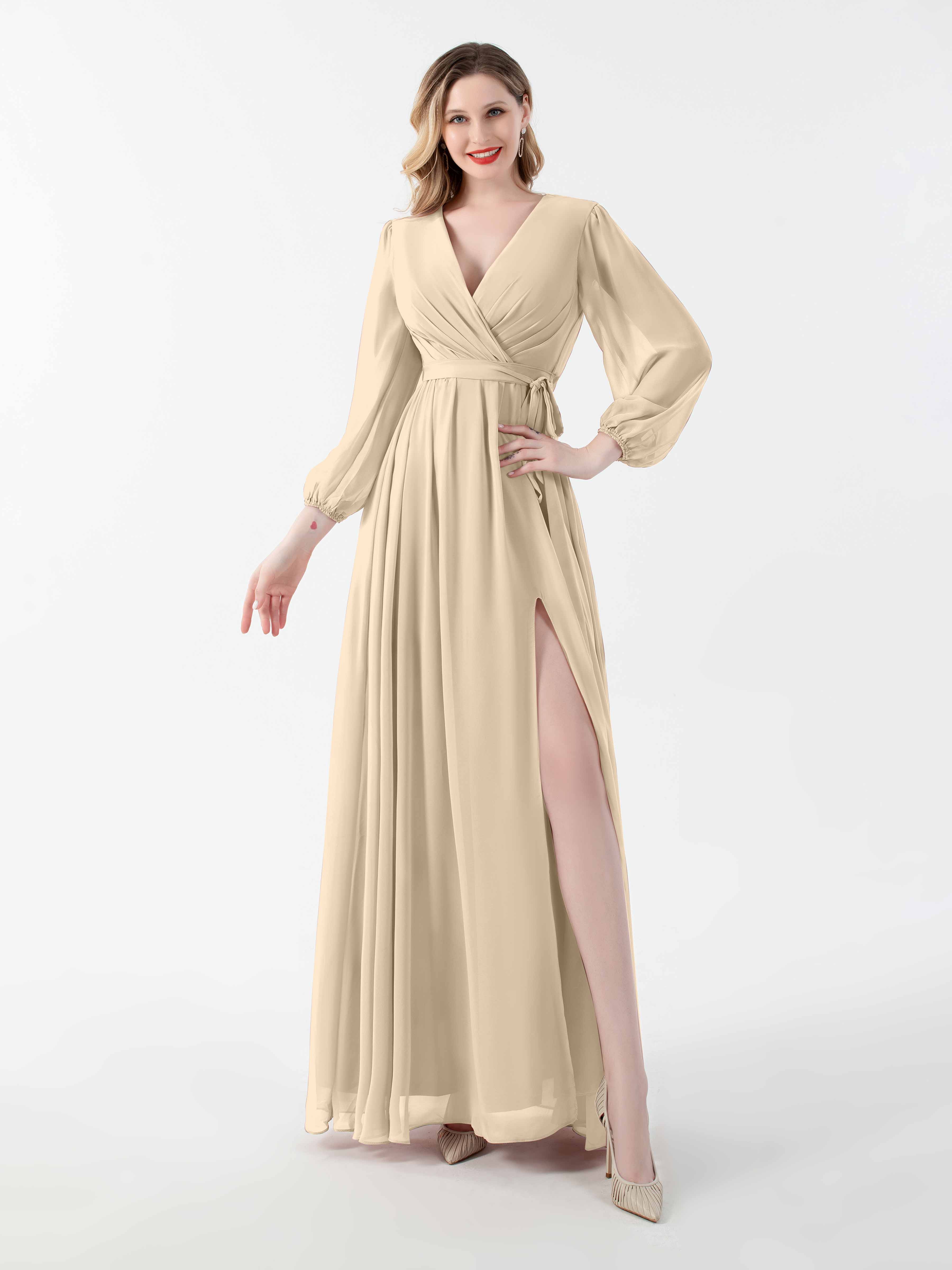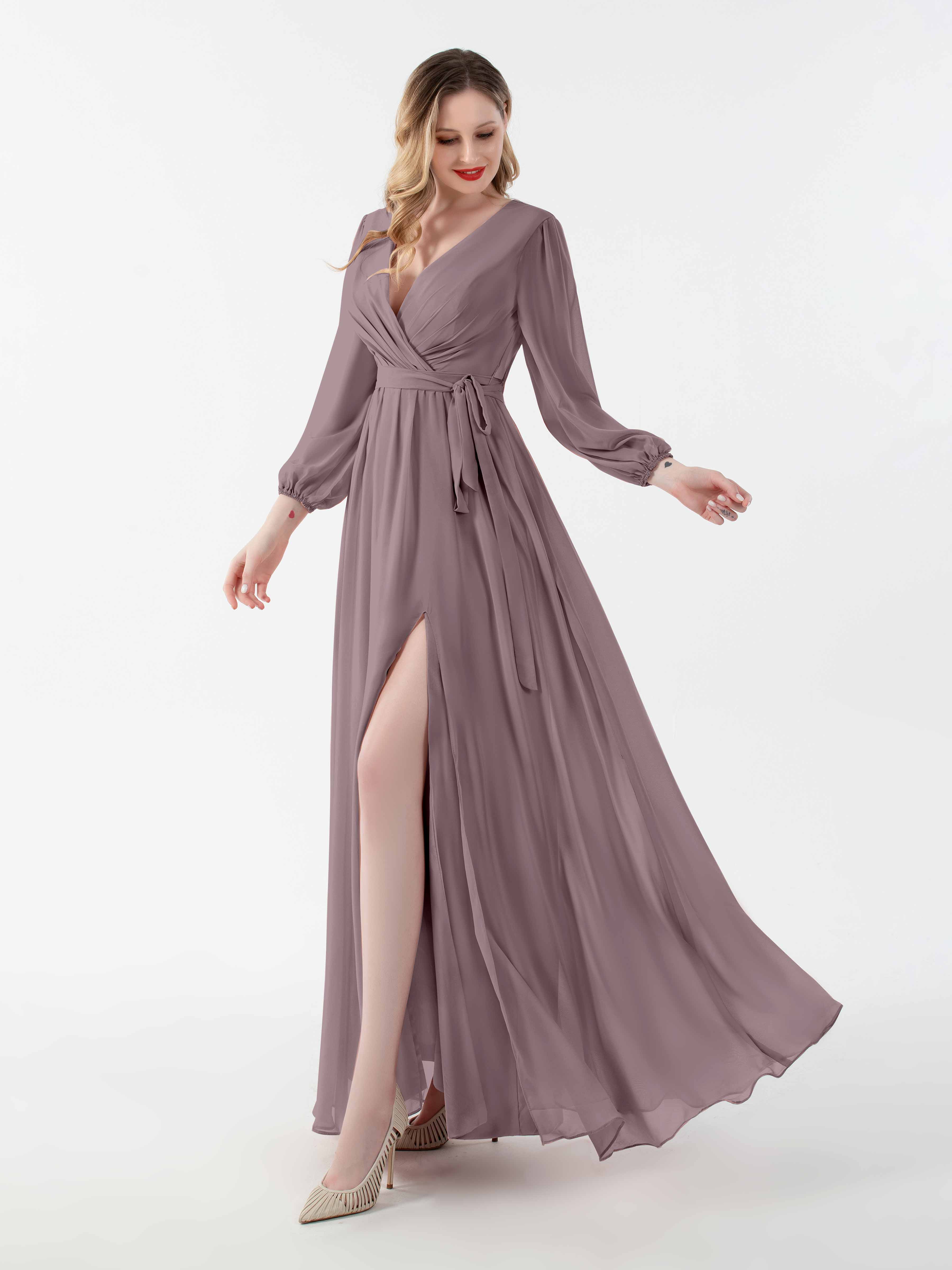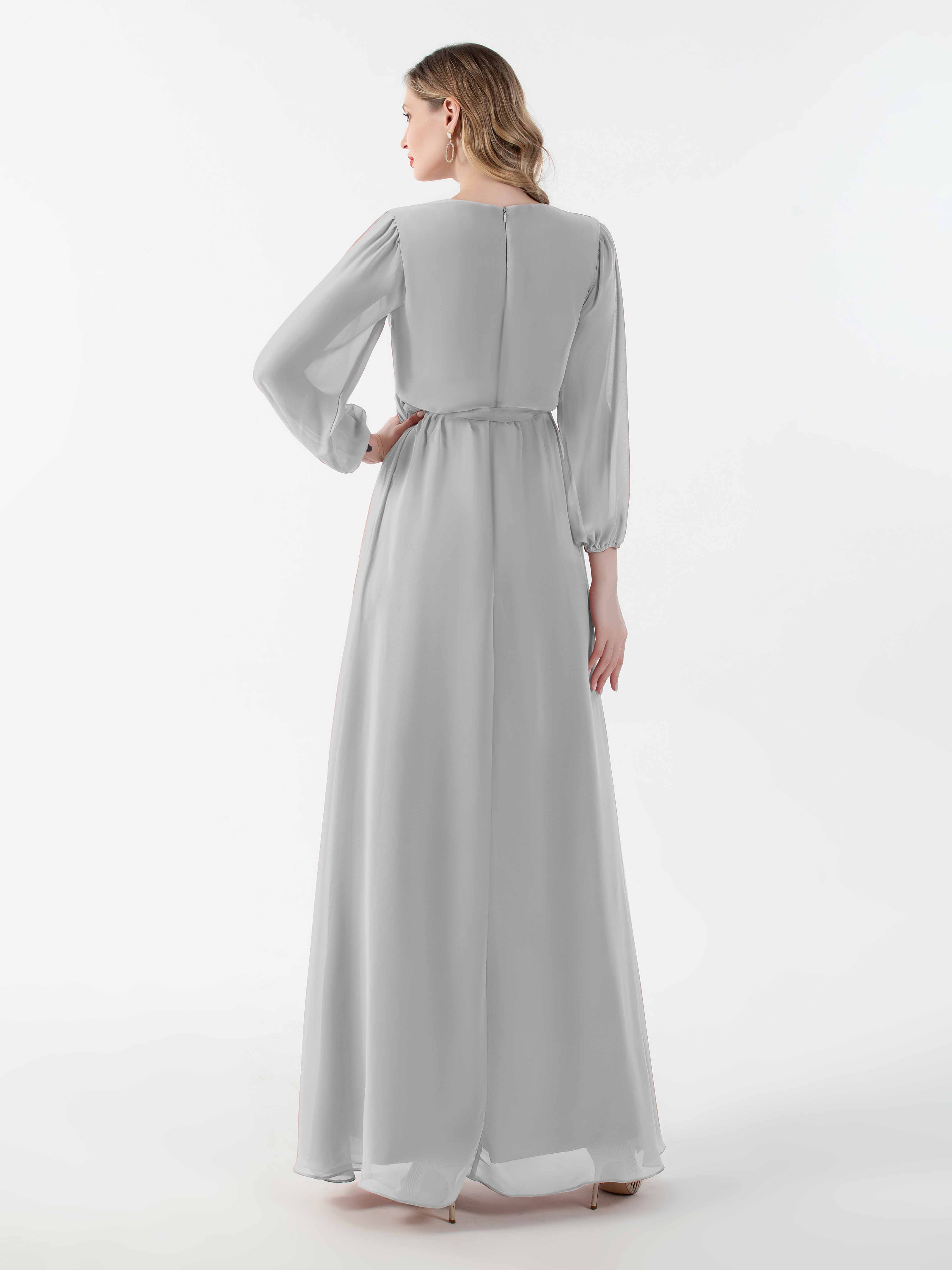 Robes Mère De La Mariée En Mousseline À Manches Longues Et Dos Zip Oakley