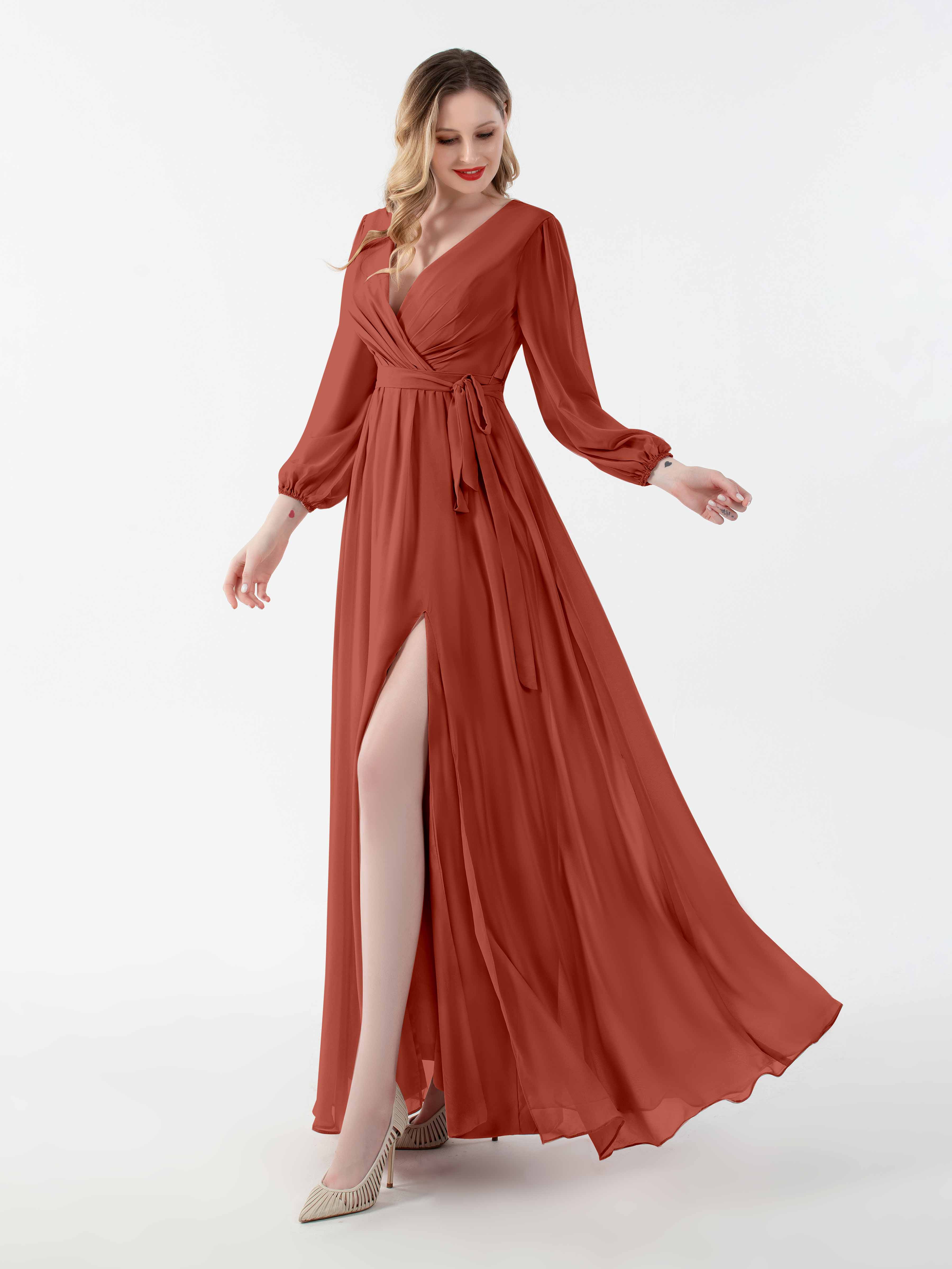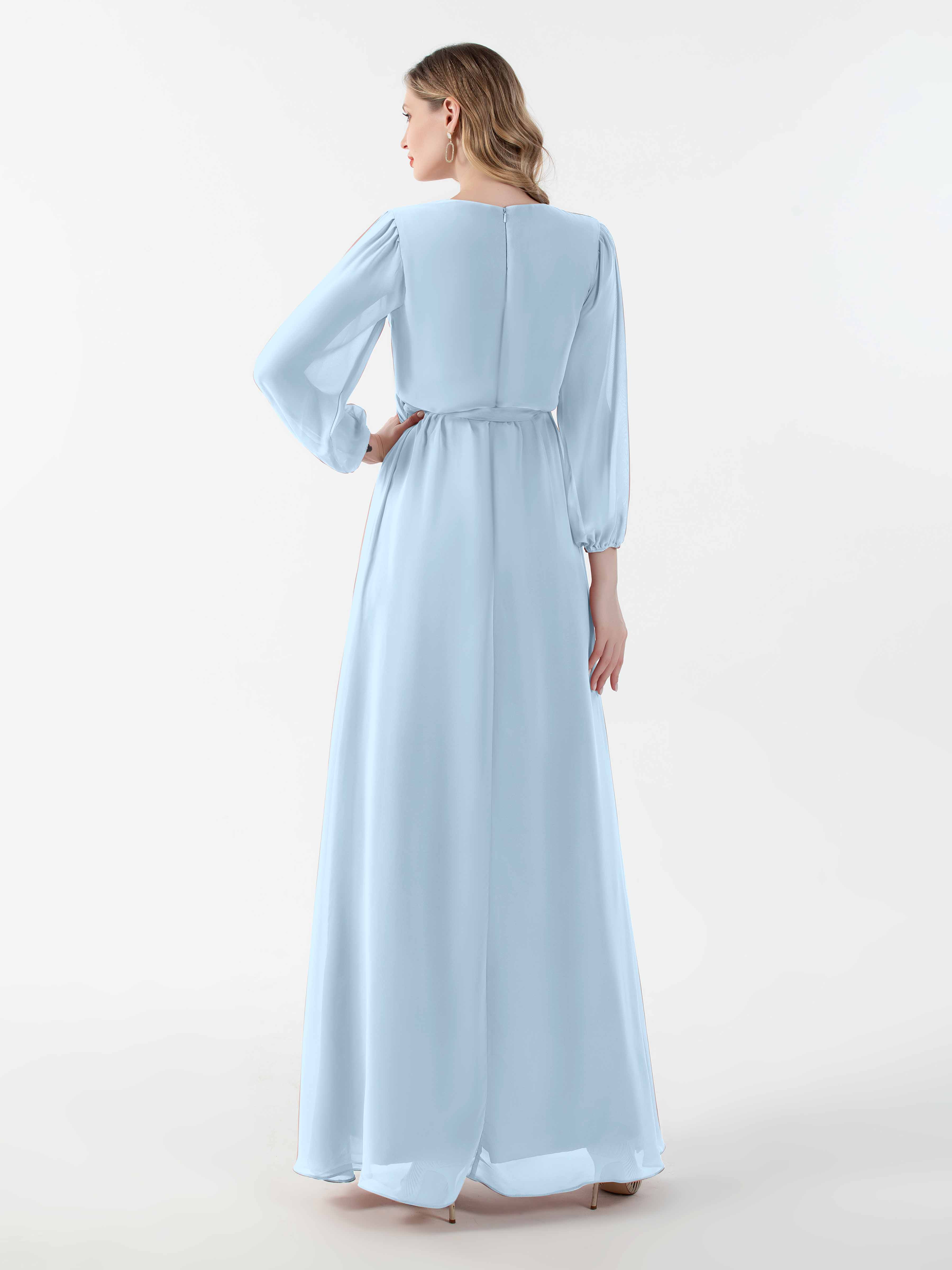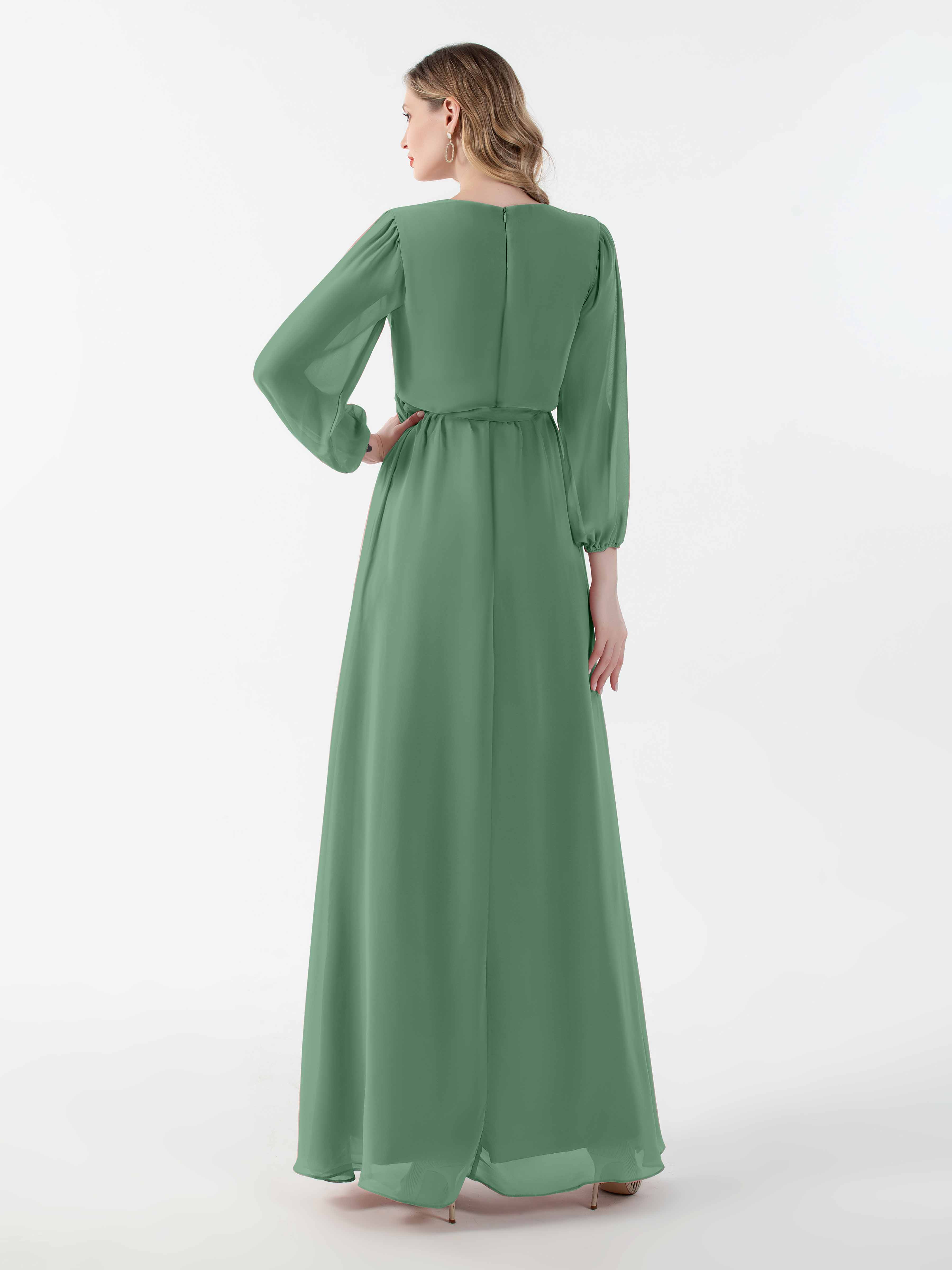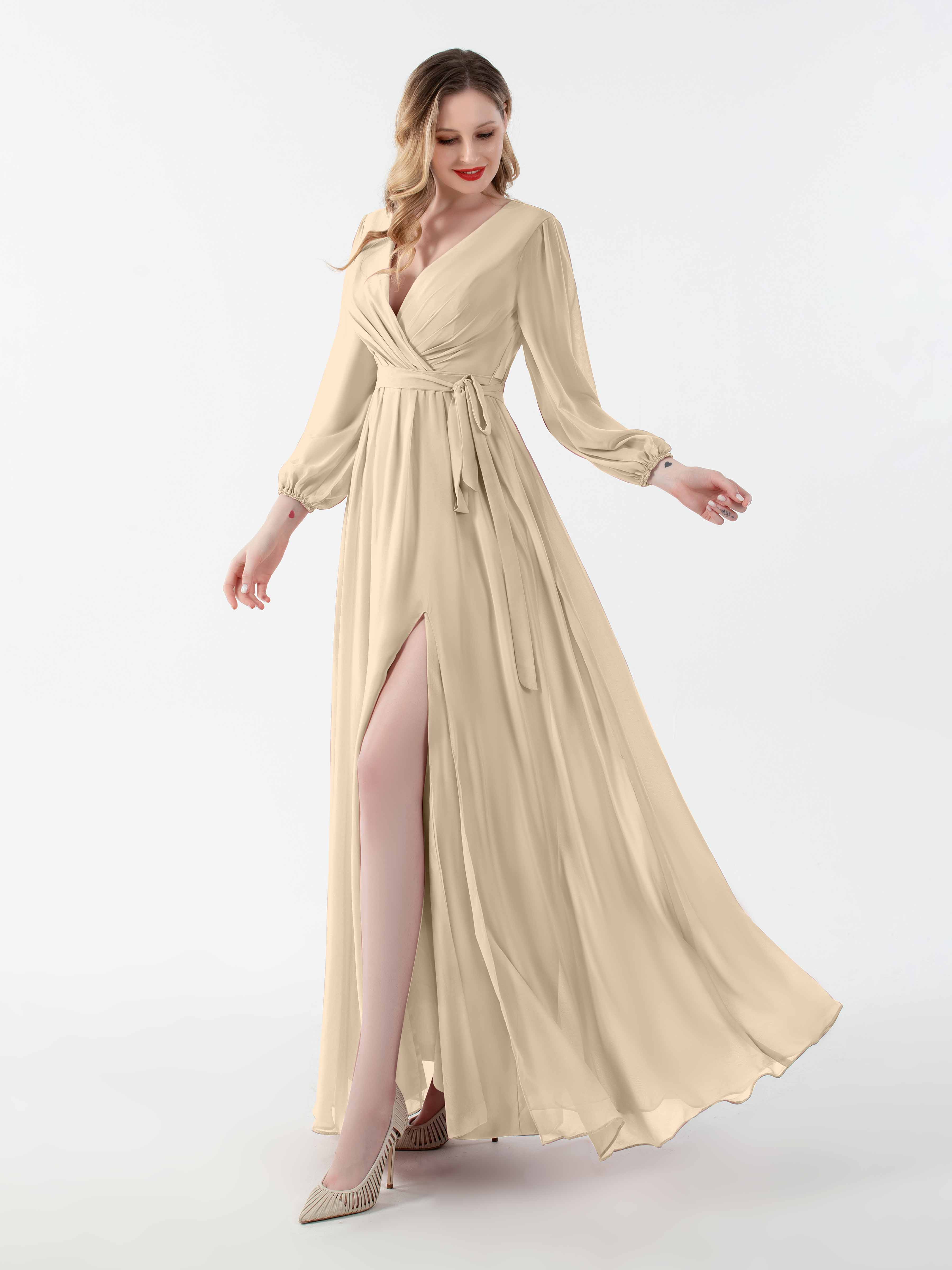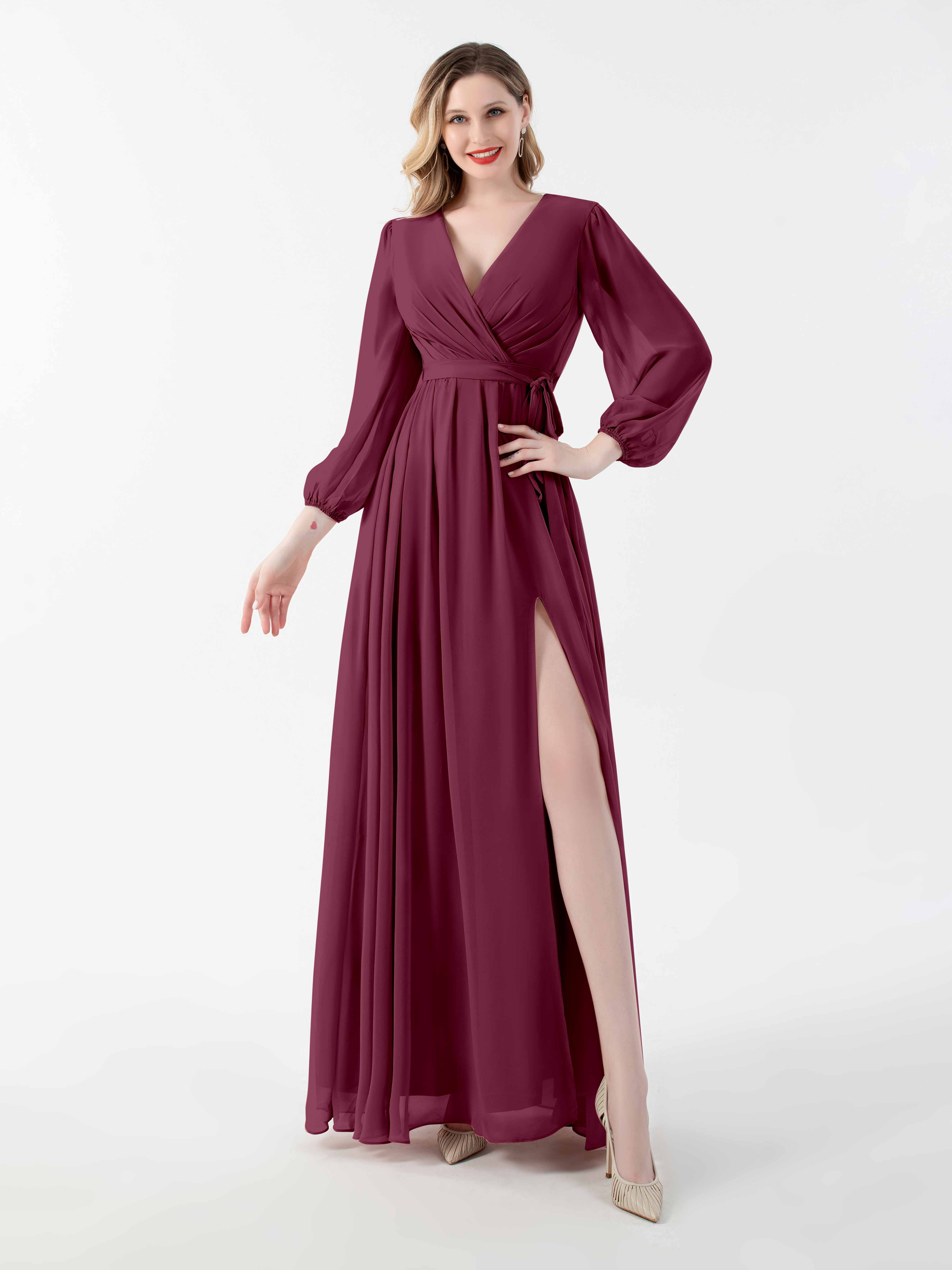 Robes Mère De La Mariée En Mousseline À Manches Longues Et Dos Zip Oakley