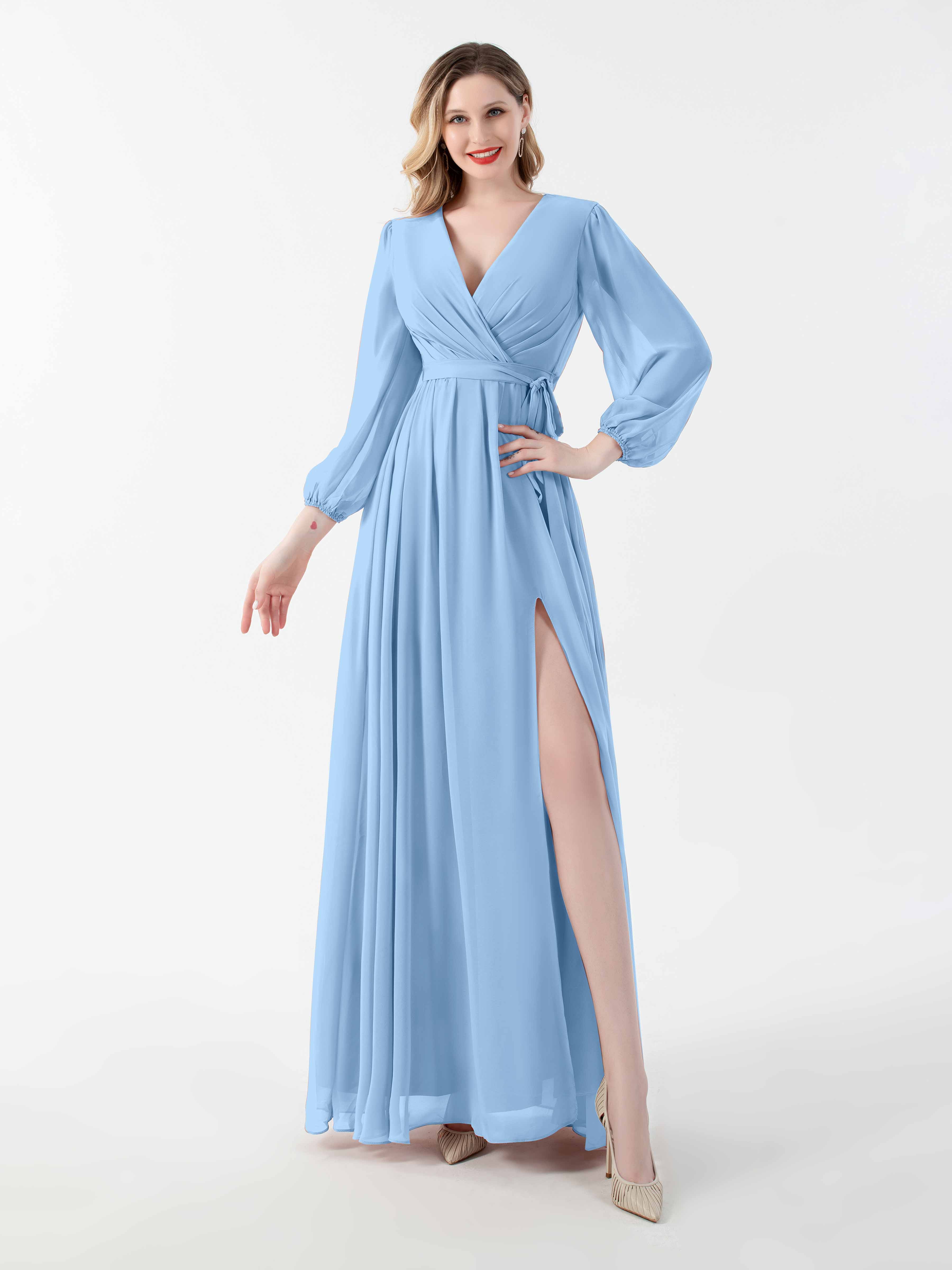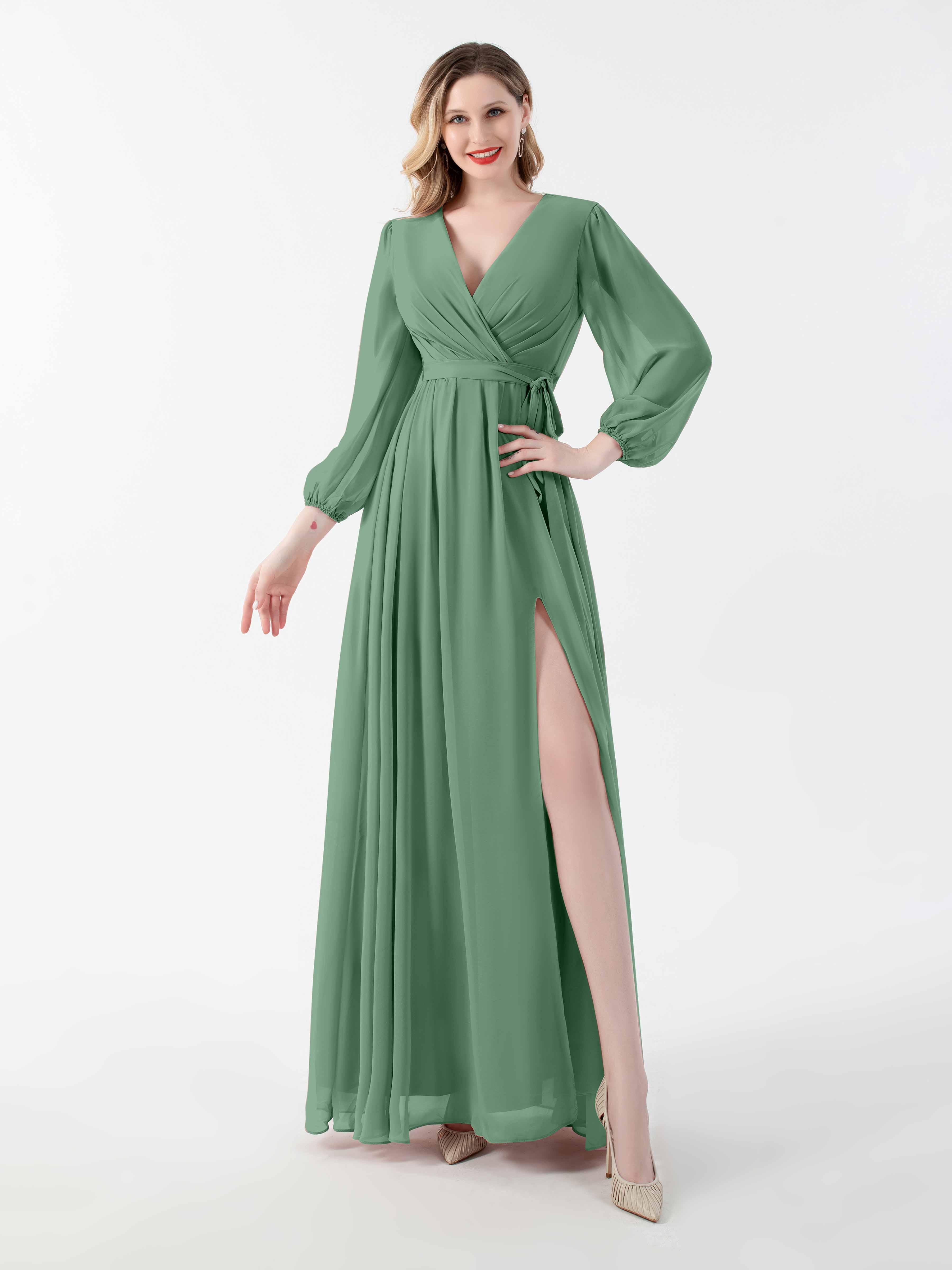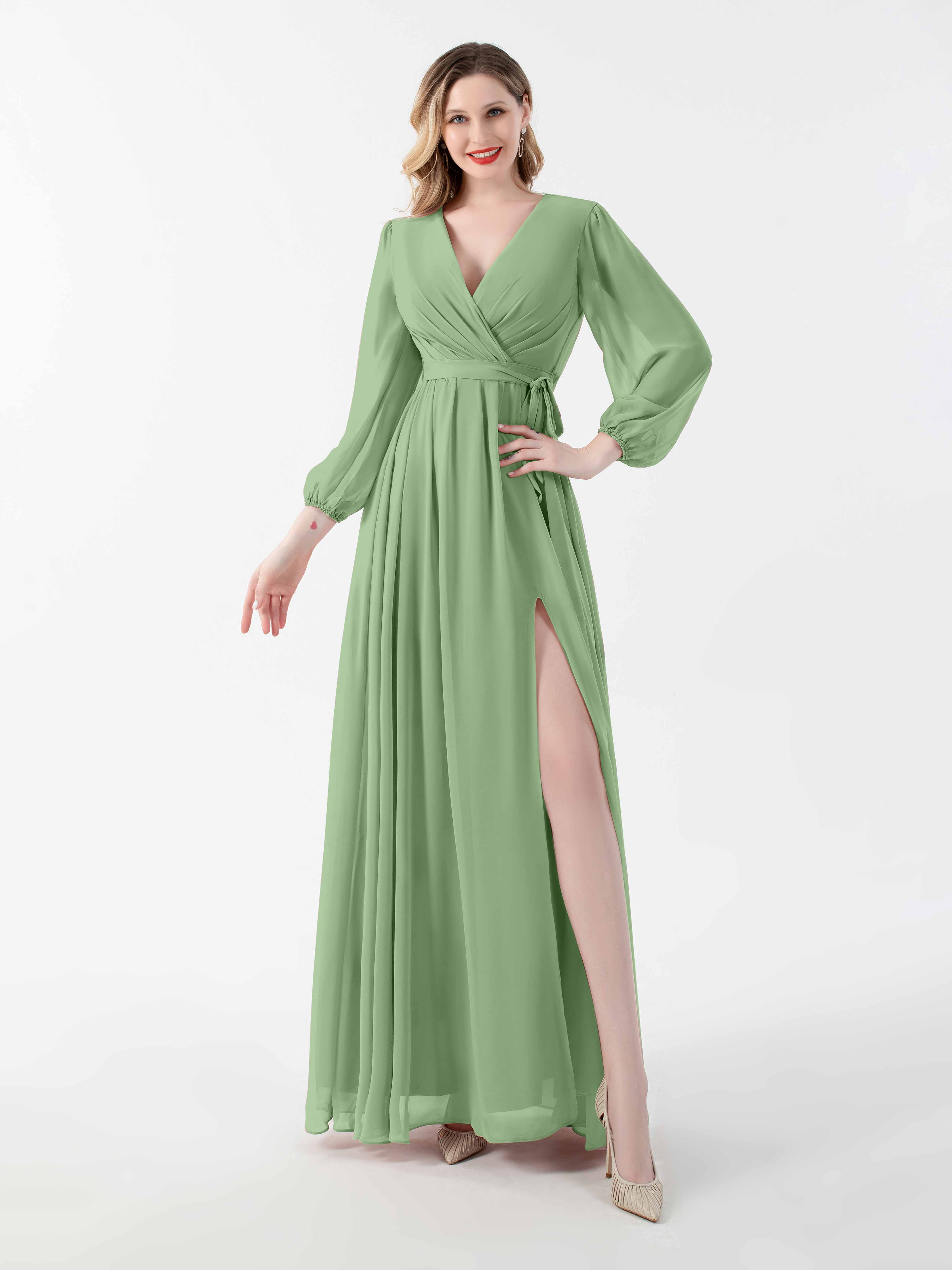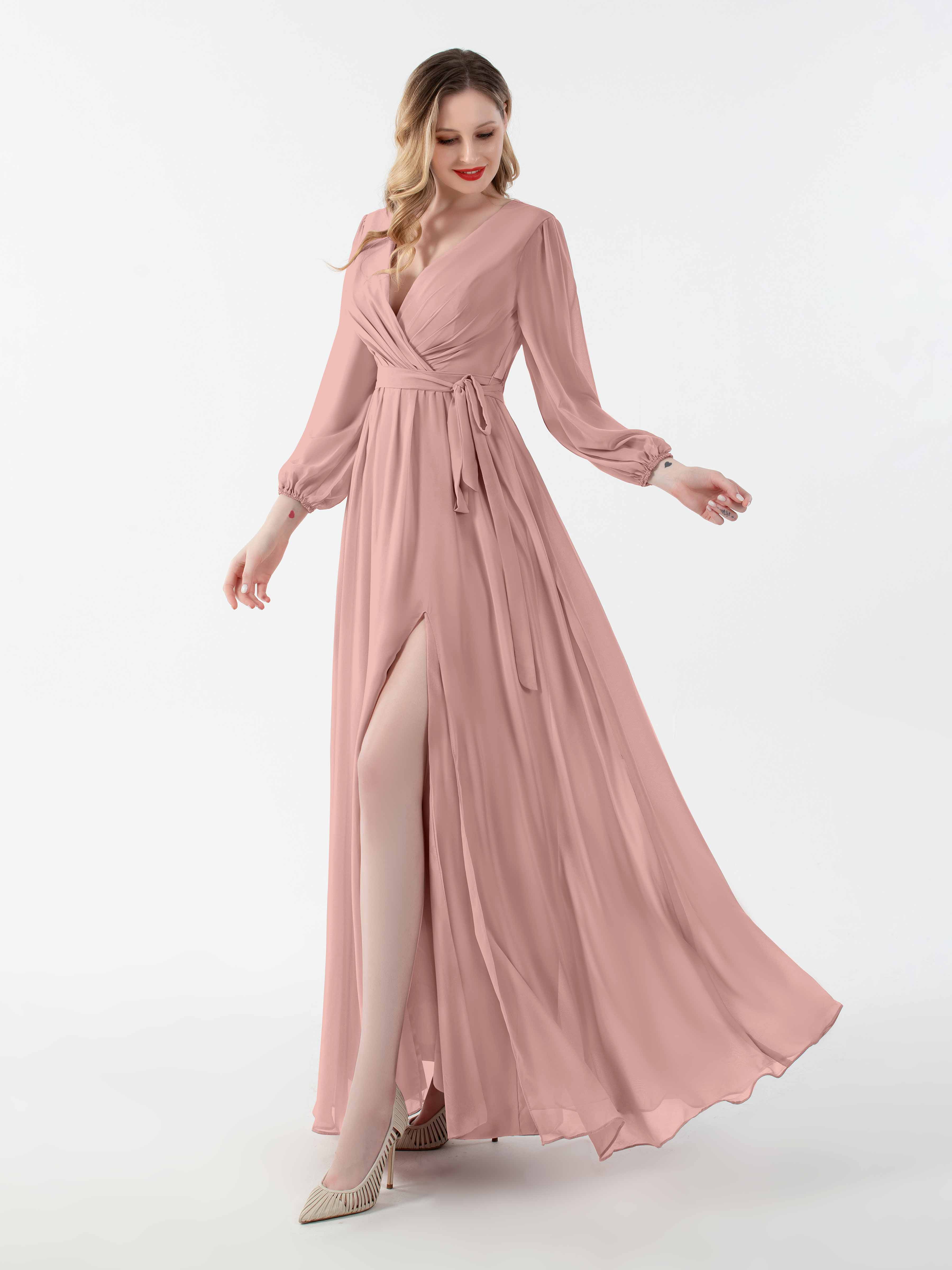 Robes Mère De La Mariée En Mousseline À Manches Longues Et Dos Zip Oakley
