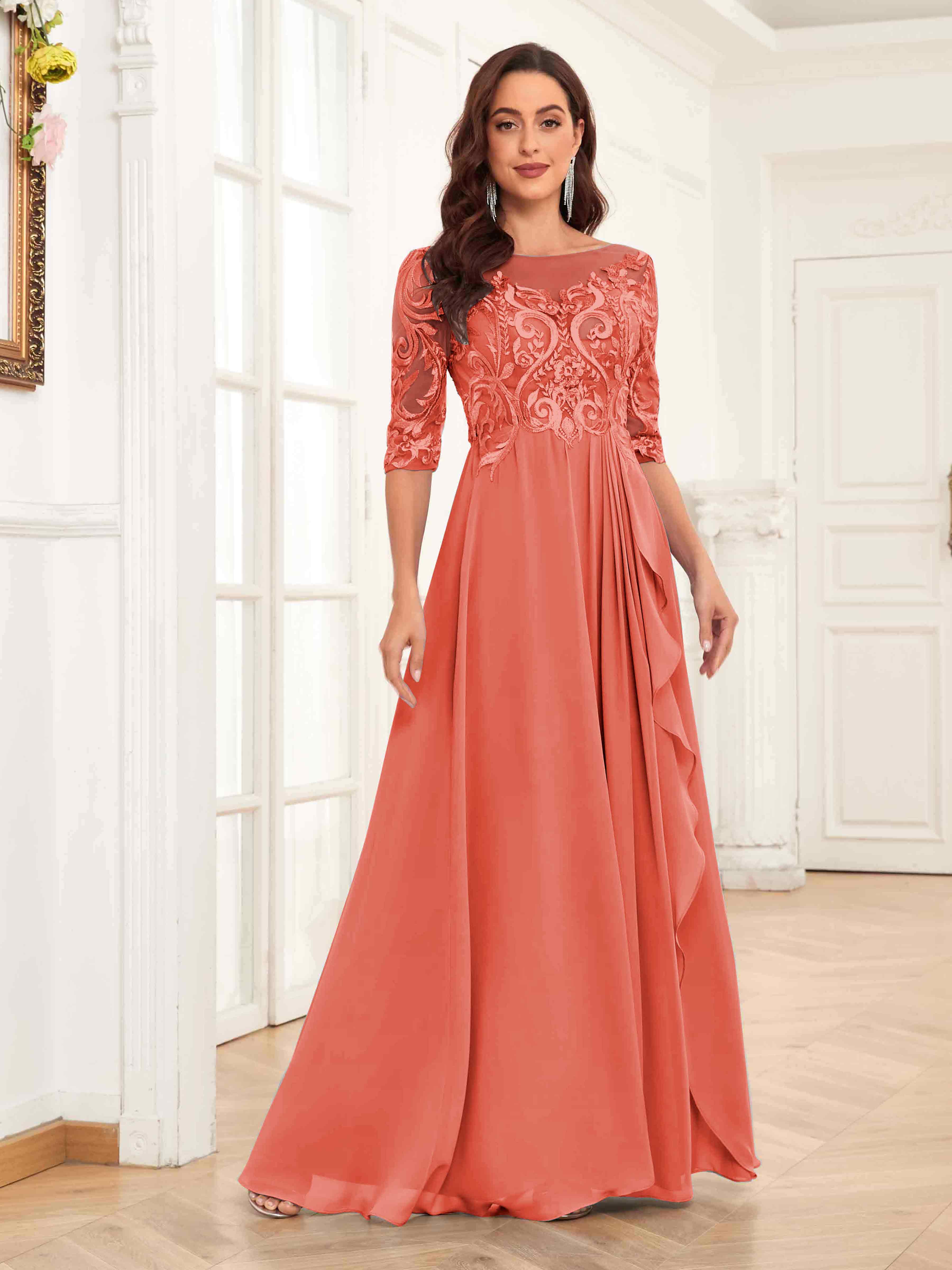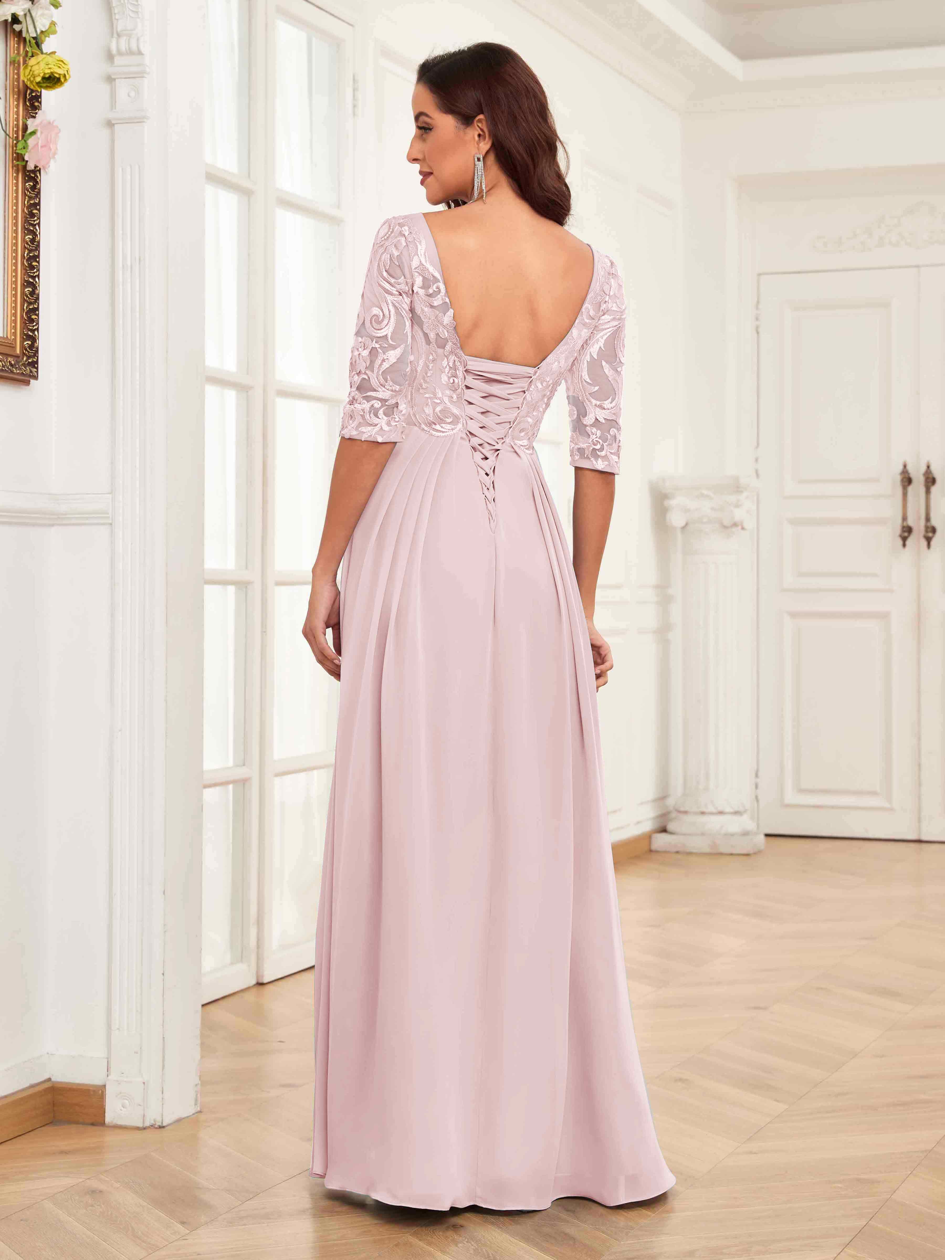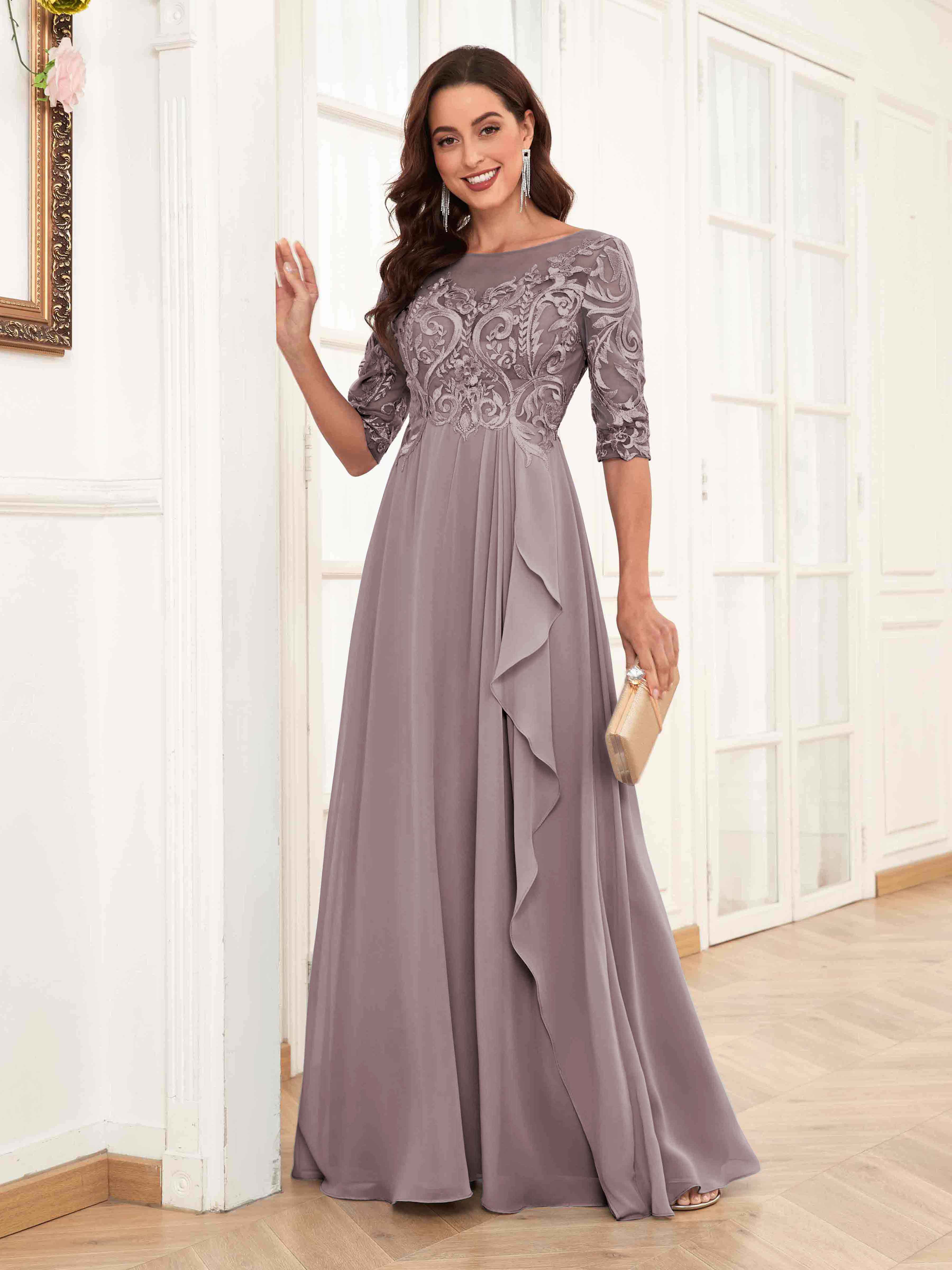 Adoptez les dernières tendances avec nos robes de mère de mariée en mousseline de soie à demi-manches à la mode. Ces robes sont conçues pour que vous vous sentiez fabuleuse lors du grand jour de votre fille.