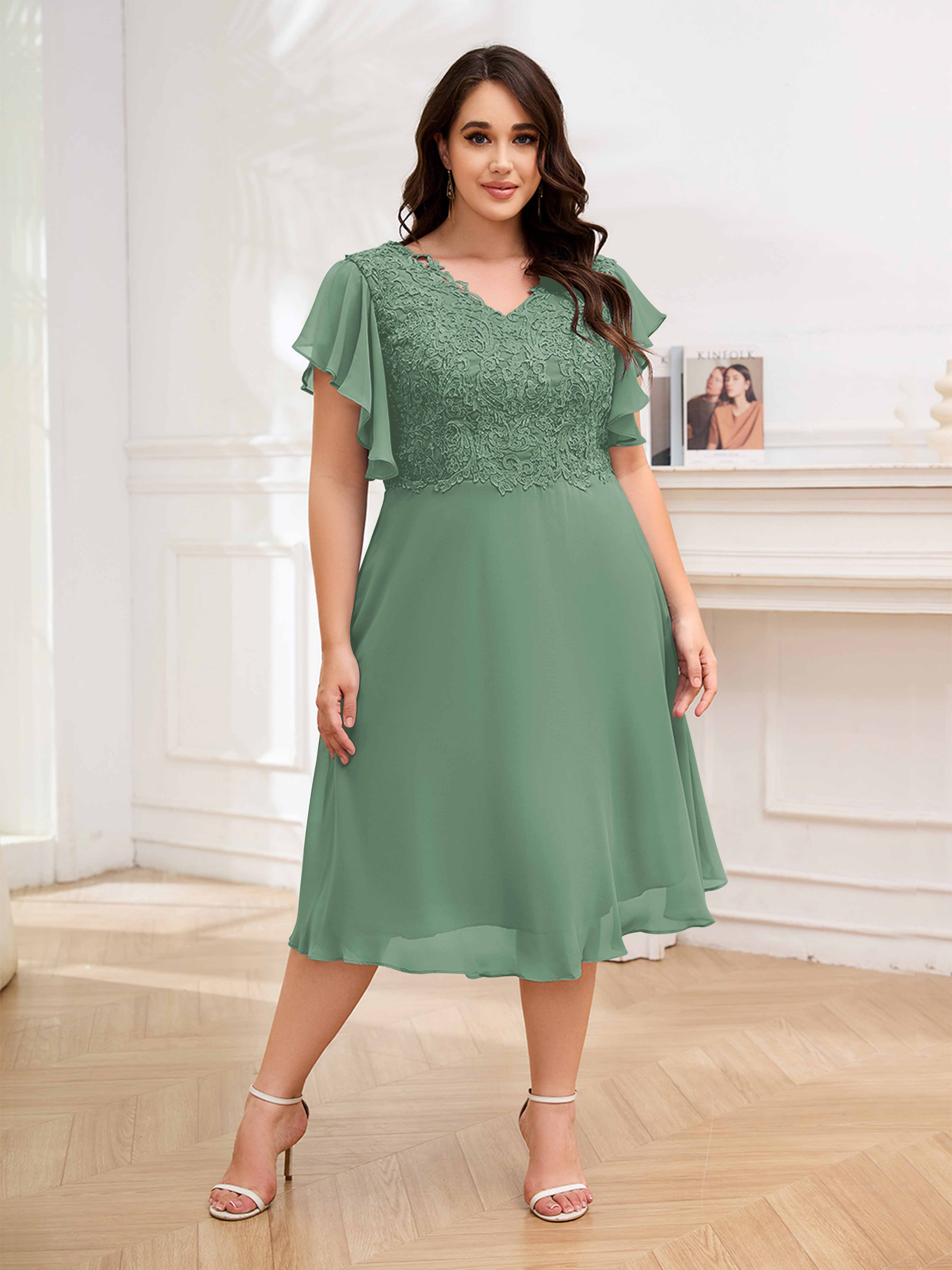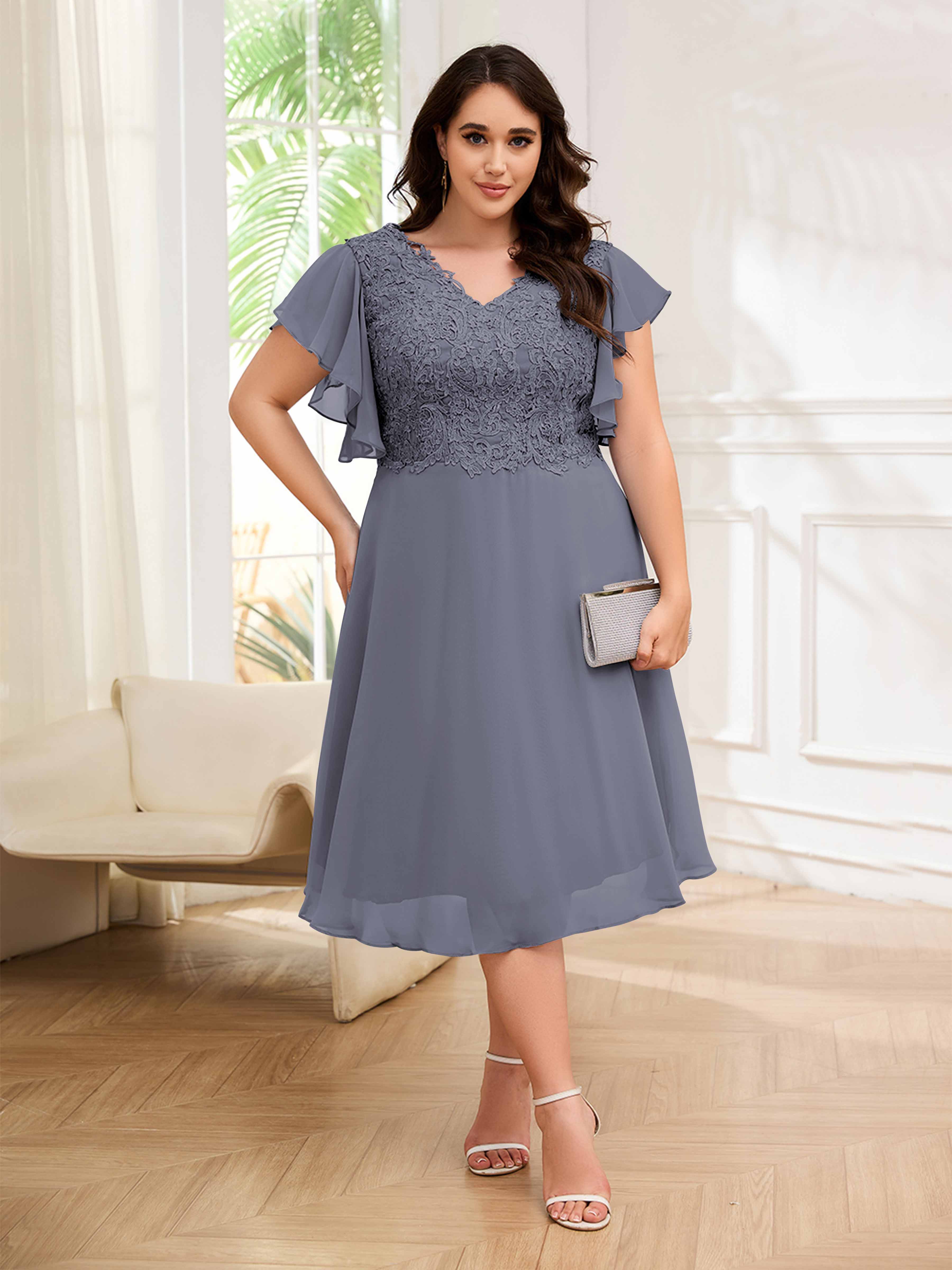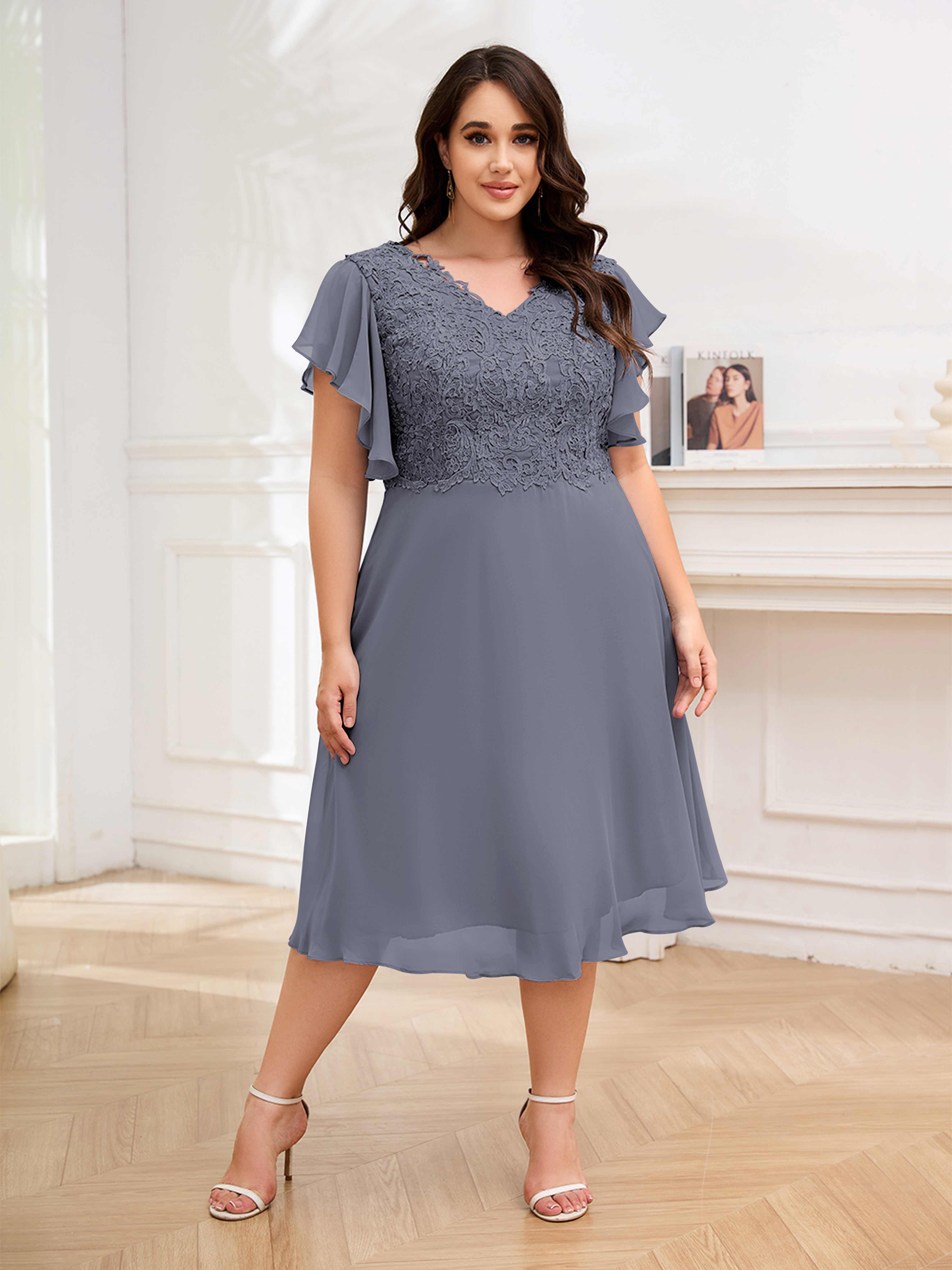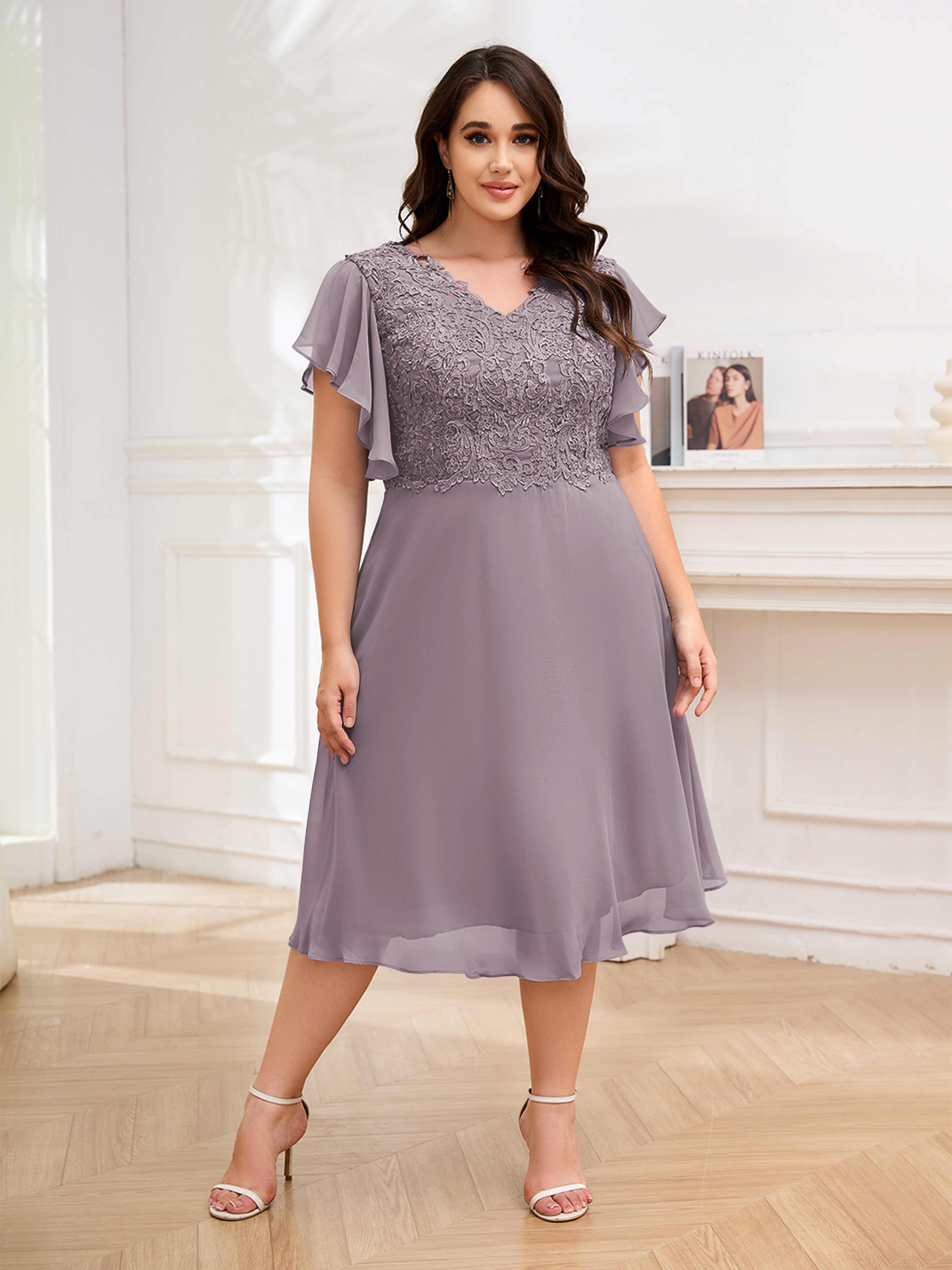Robes Mère De La Mariée Grande Taille En Mousseline À Dentelle Longueur Du Thé Maryam