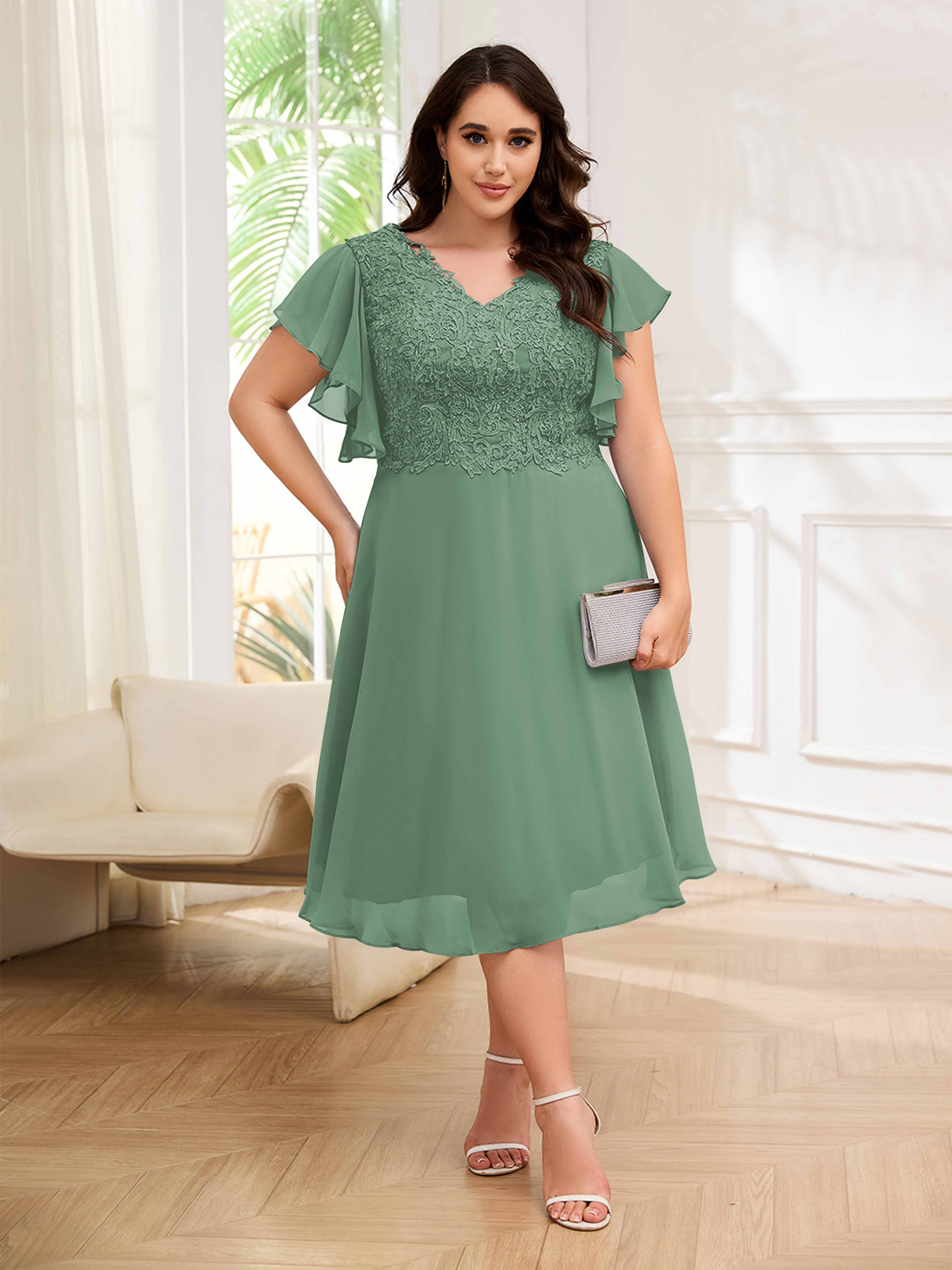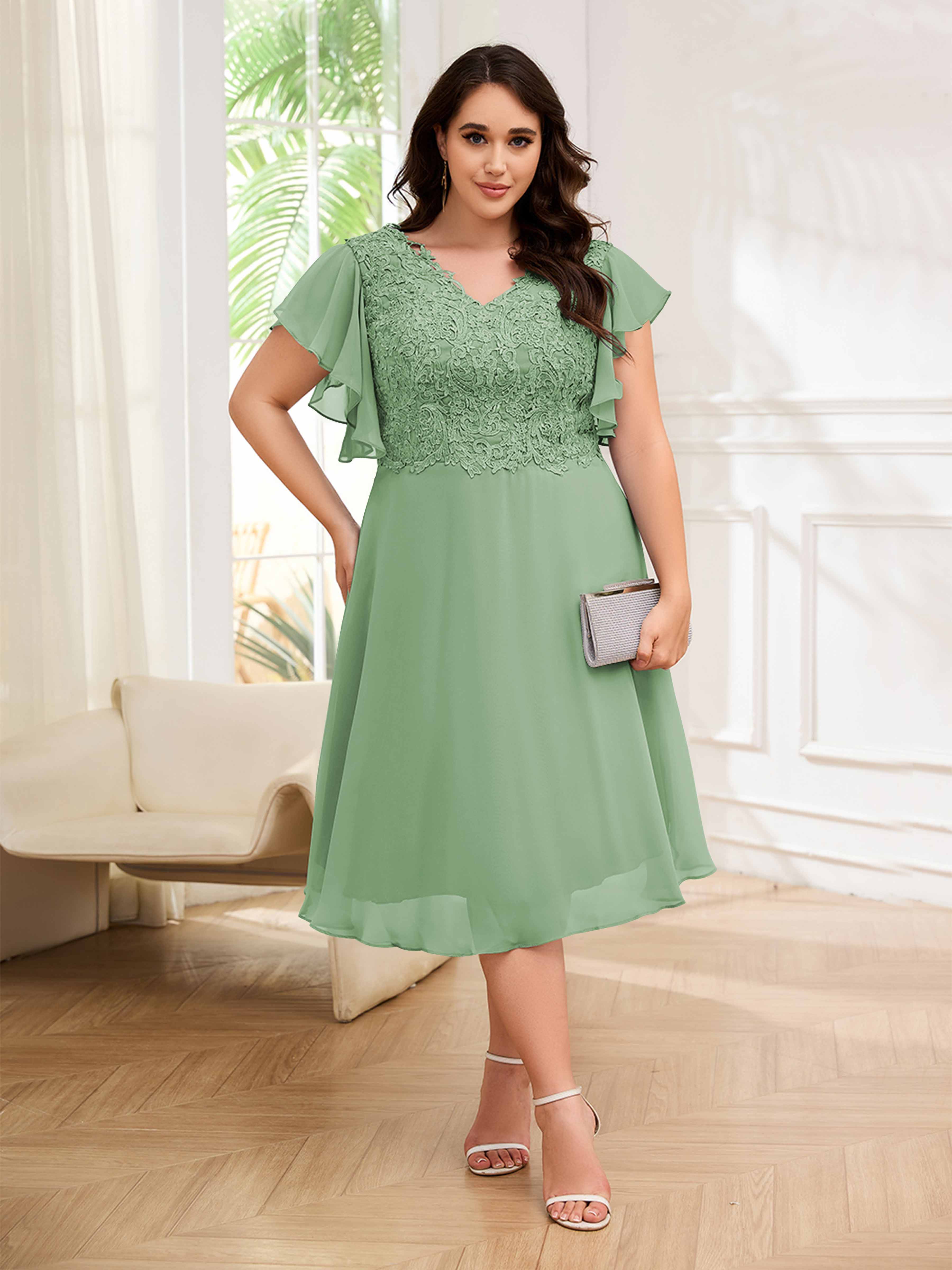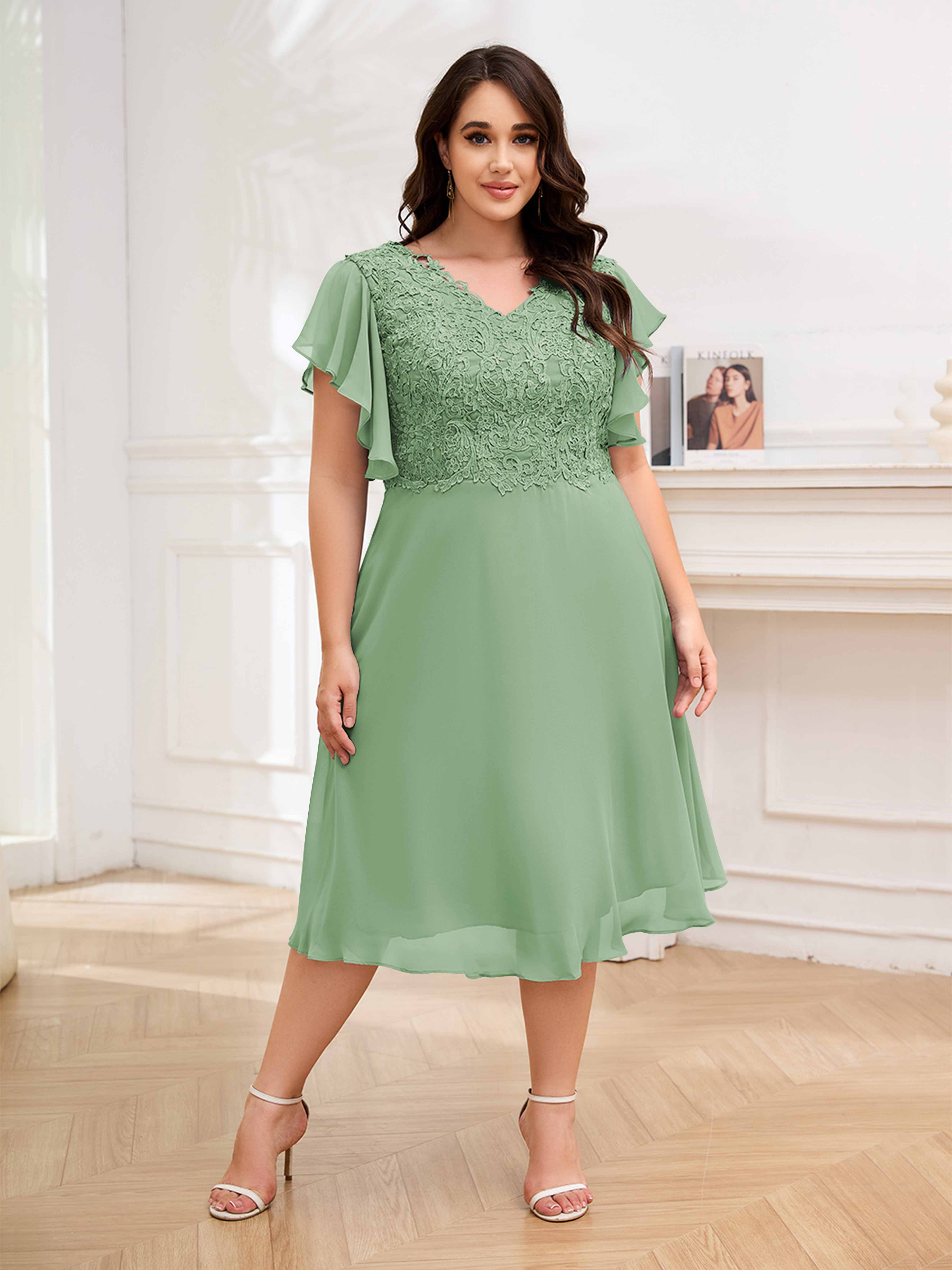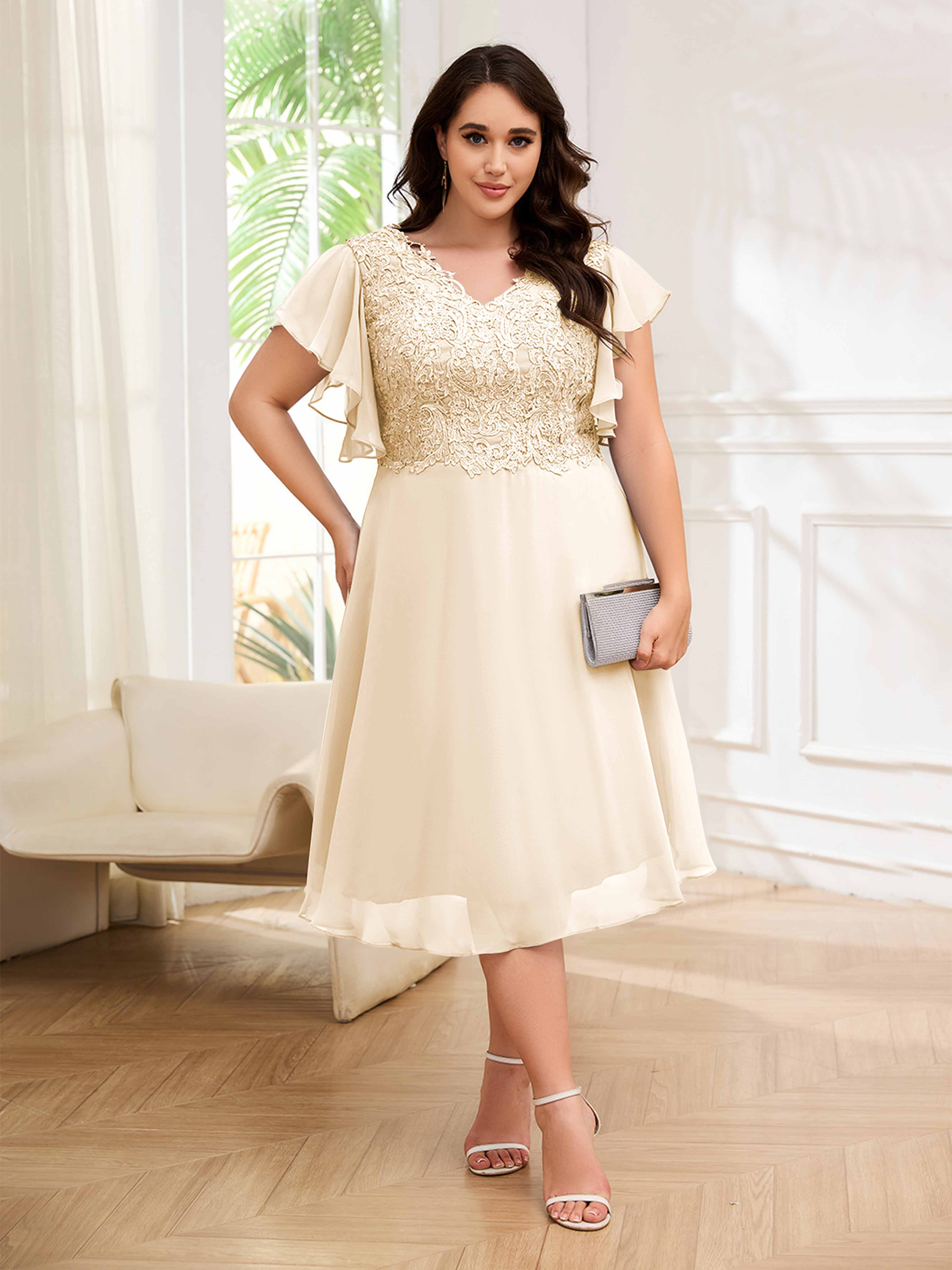 Robes Mère De La Mariée Grande Taille En Mousseline À Dentelle Longueur Du Thé Maryam