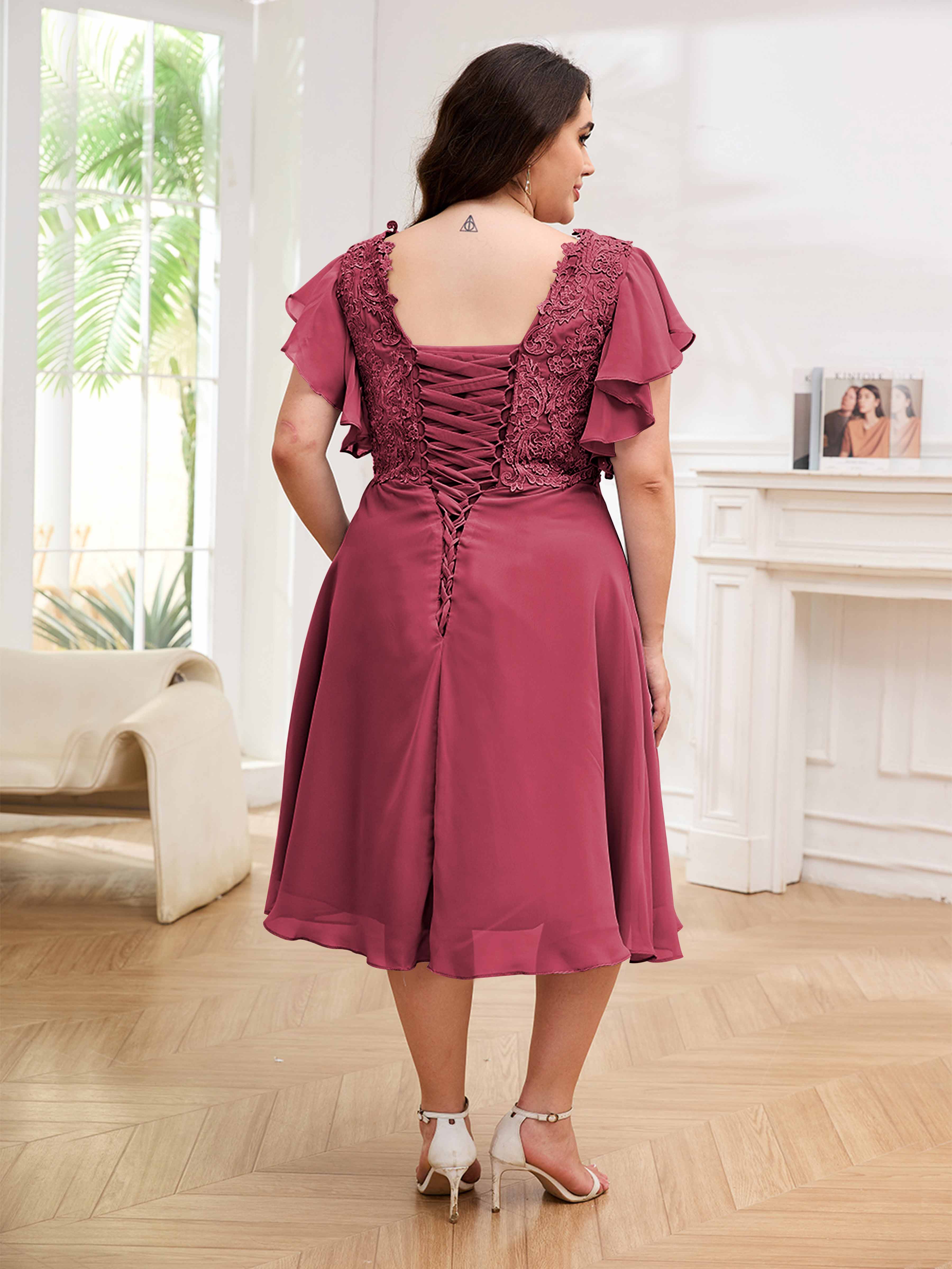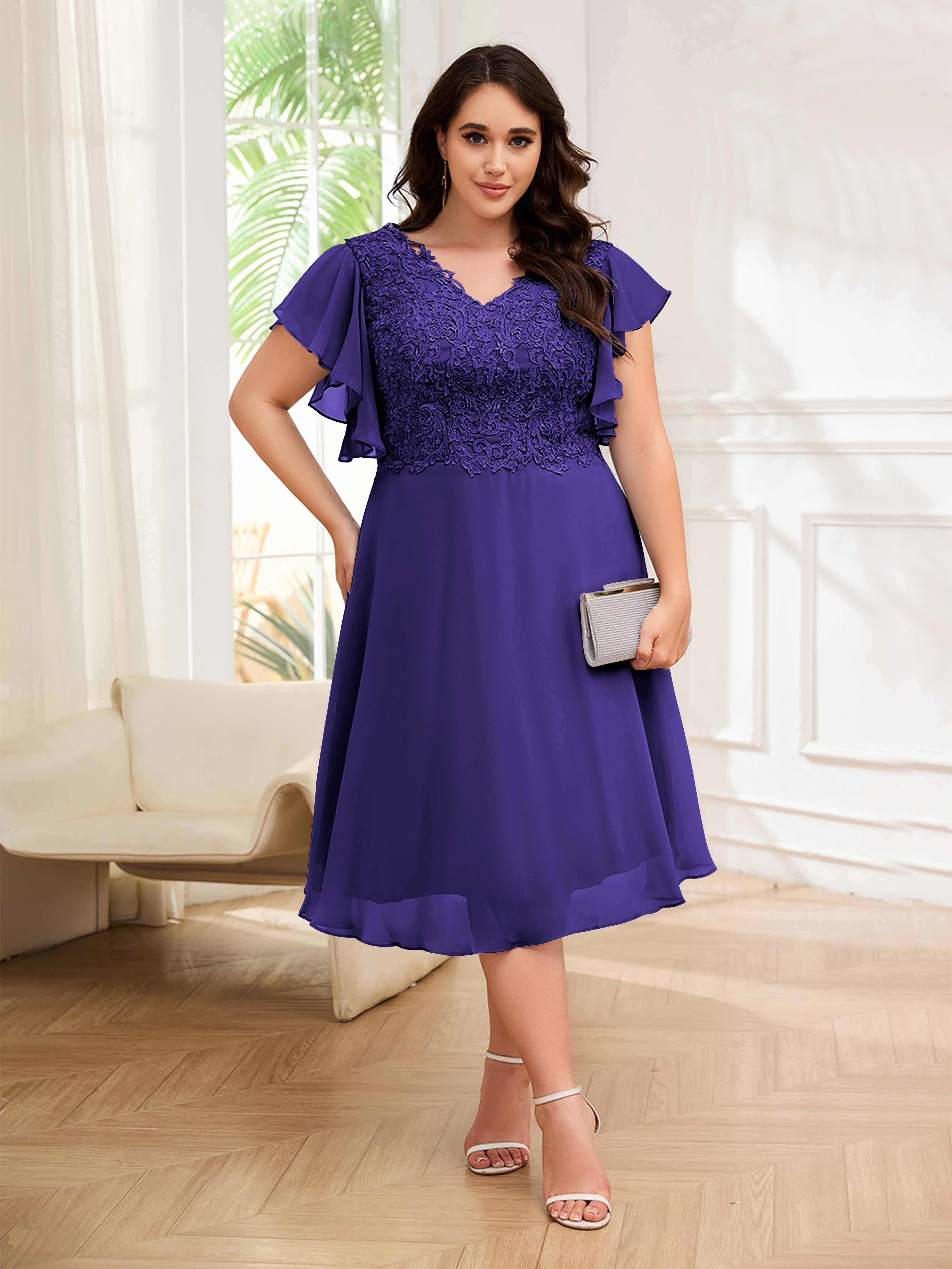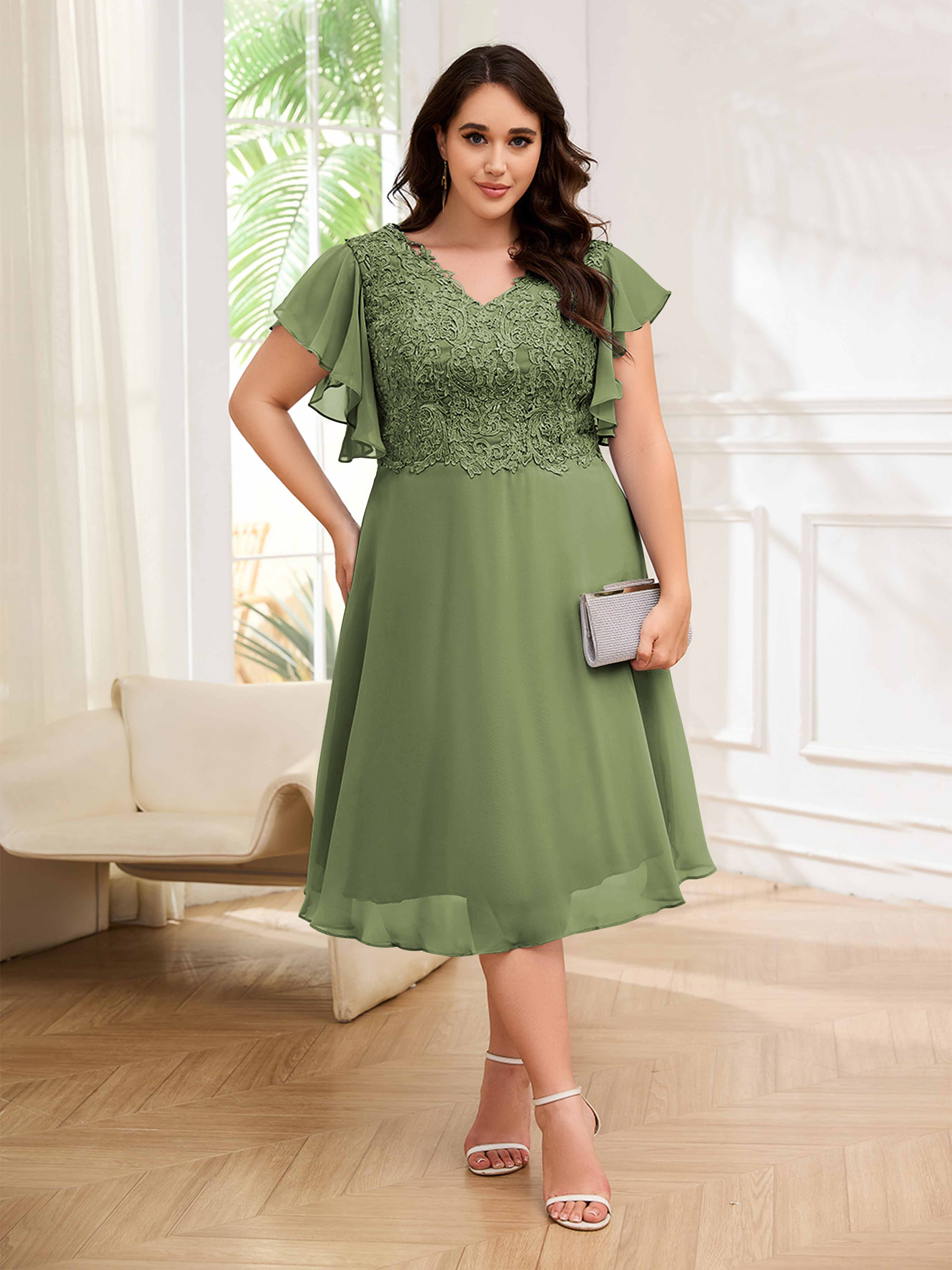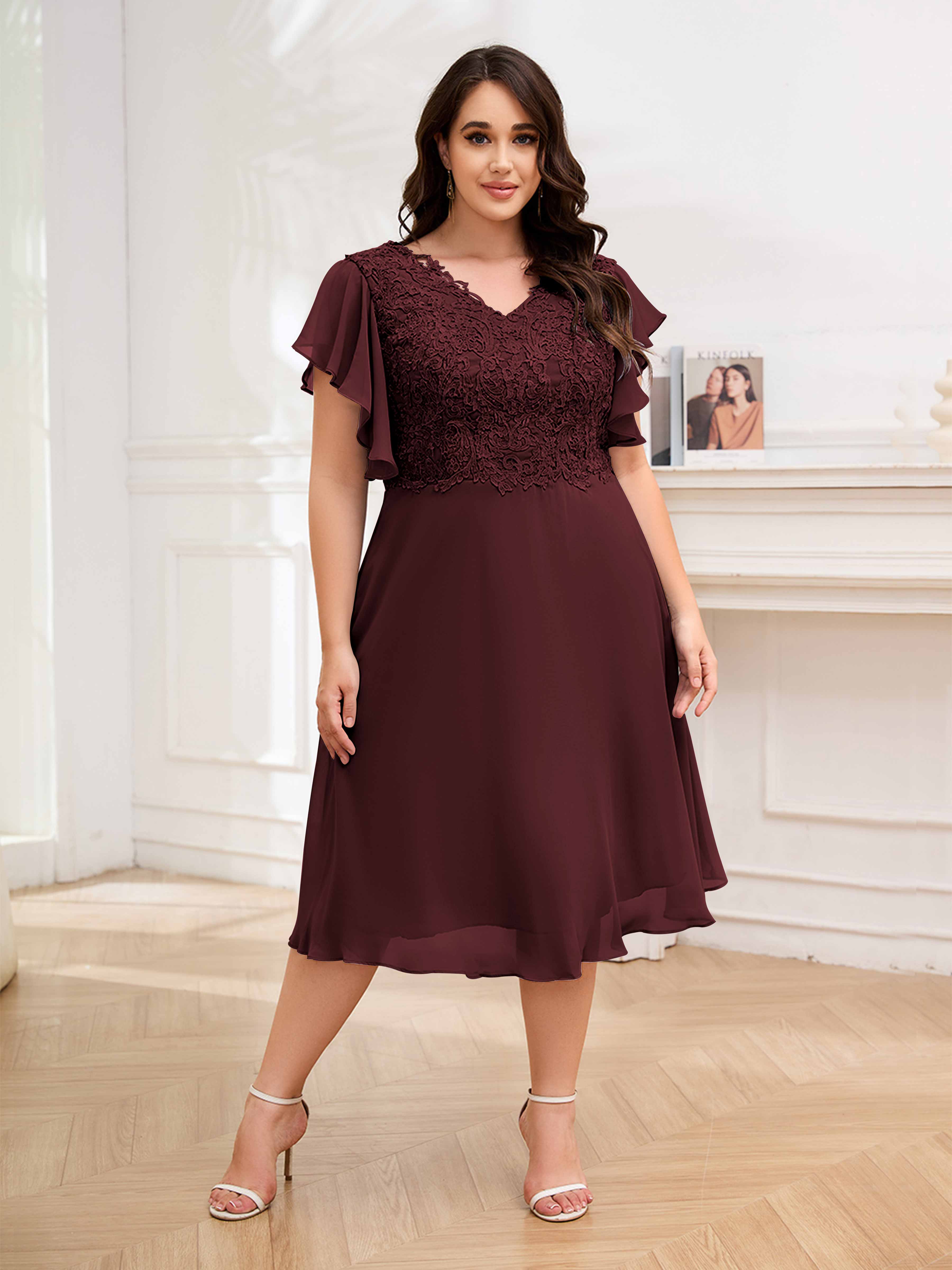 Robes Mère De La Mariée Grande Taille En Mousseline À Dentelle Longueur Du Thé Maryam