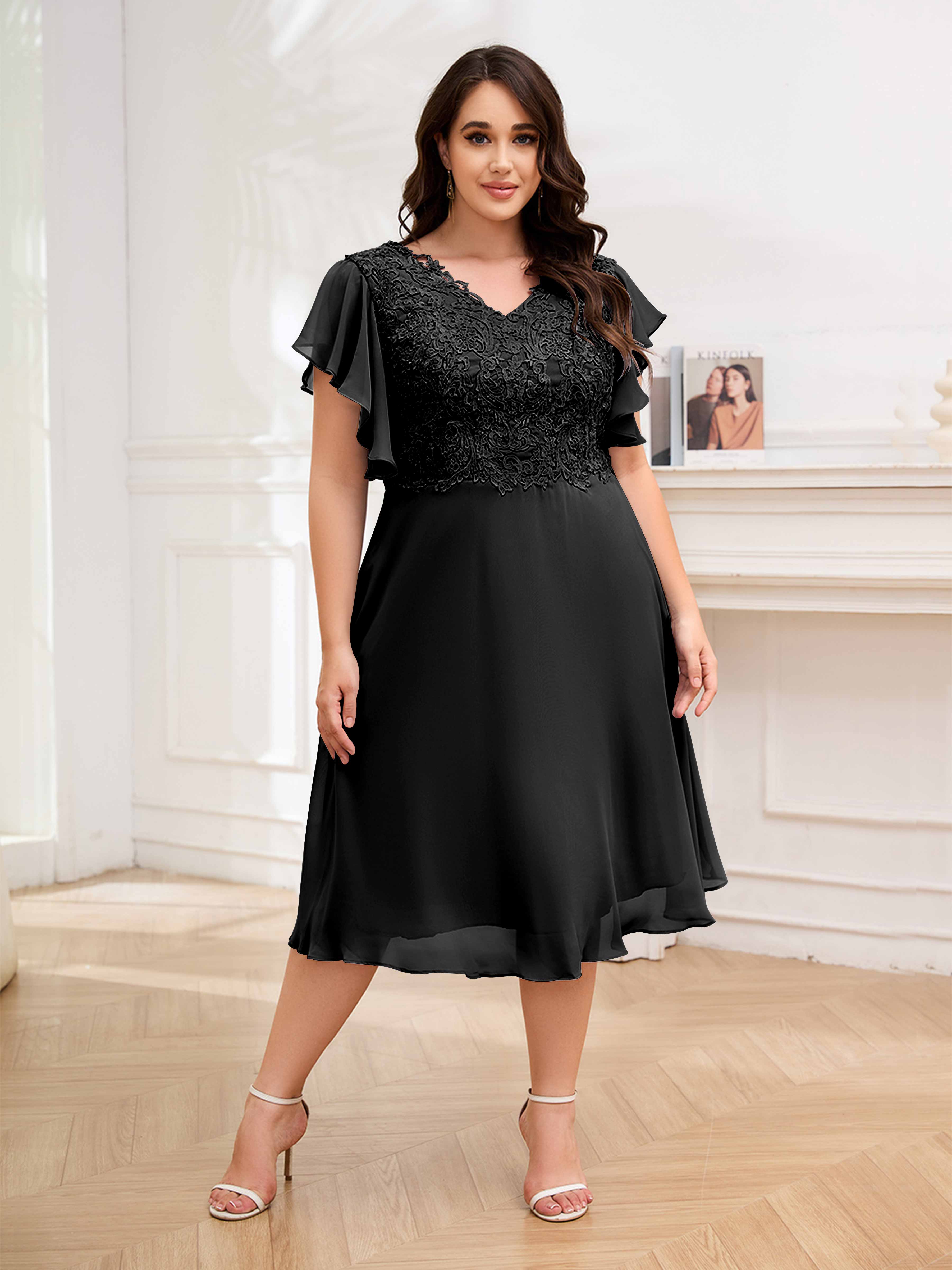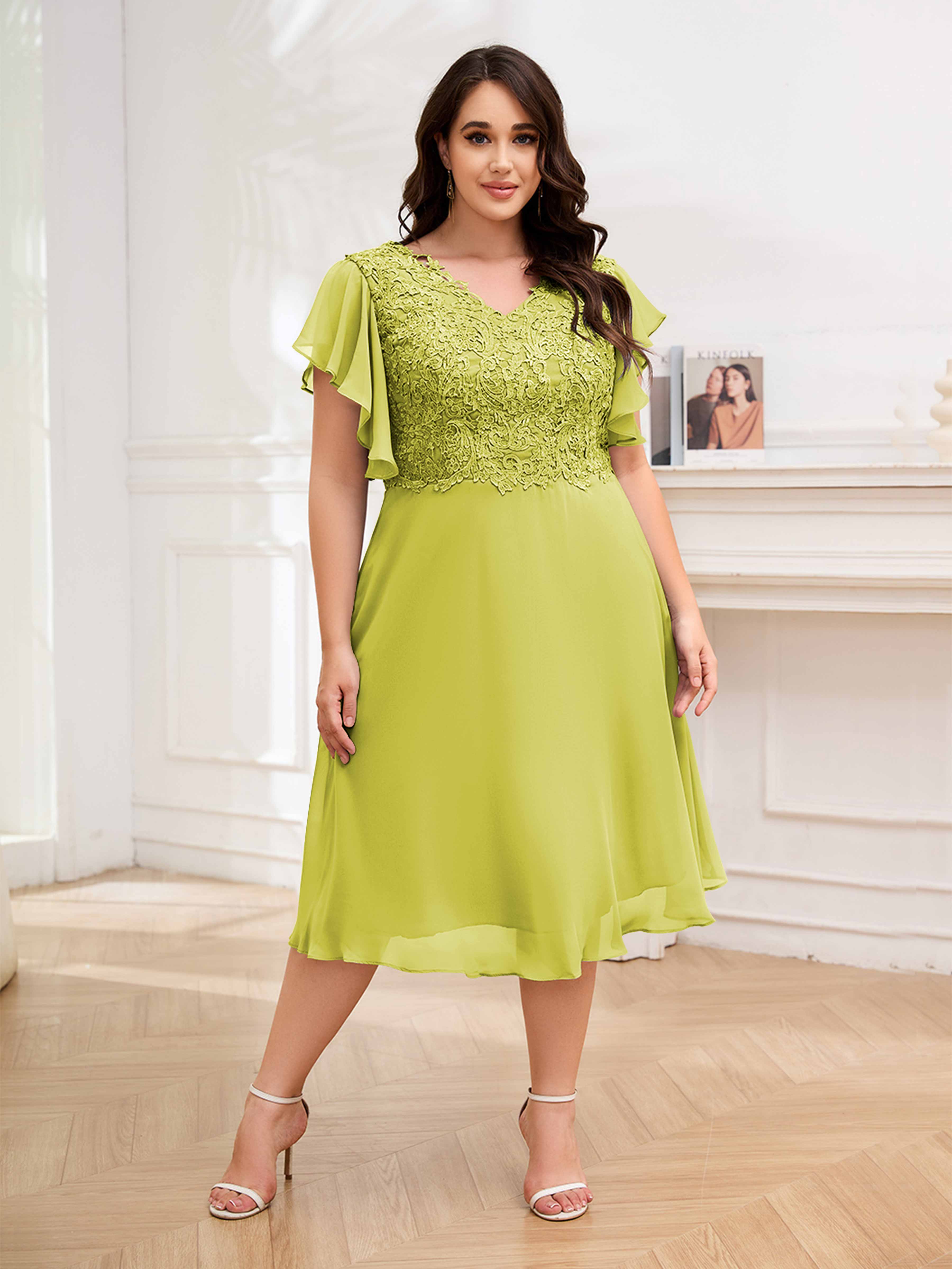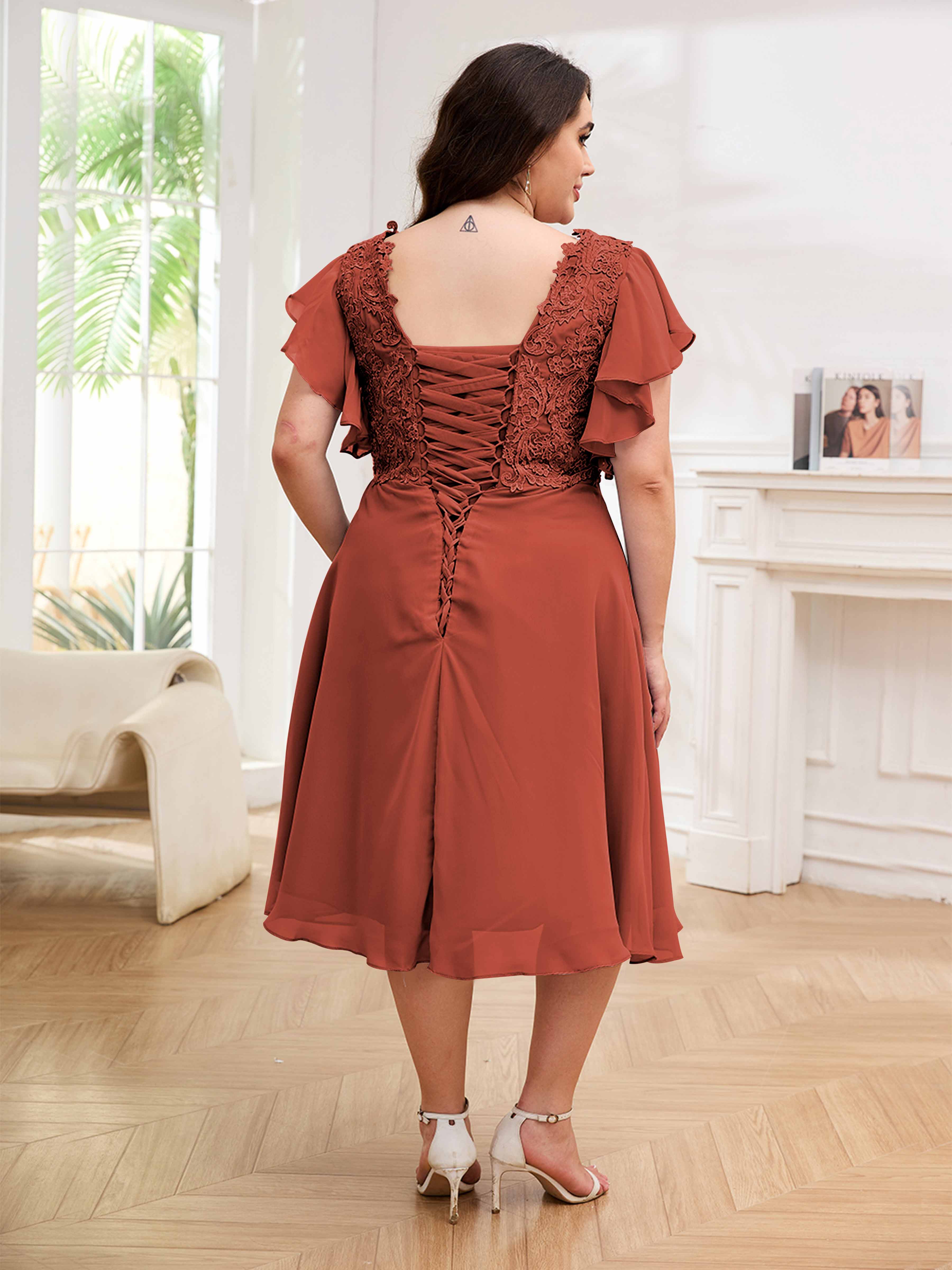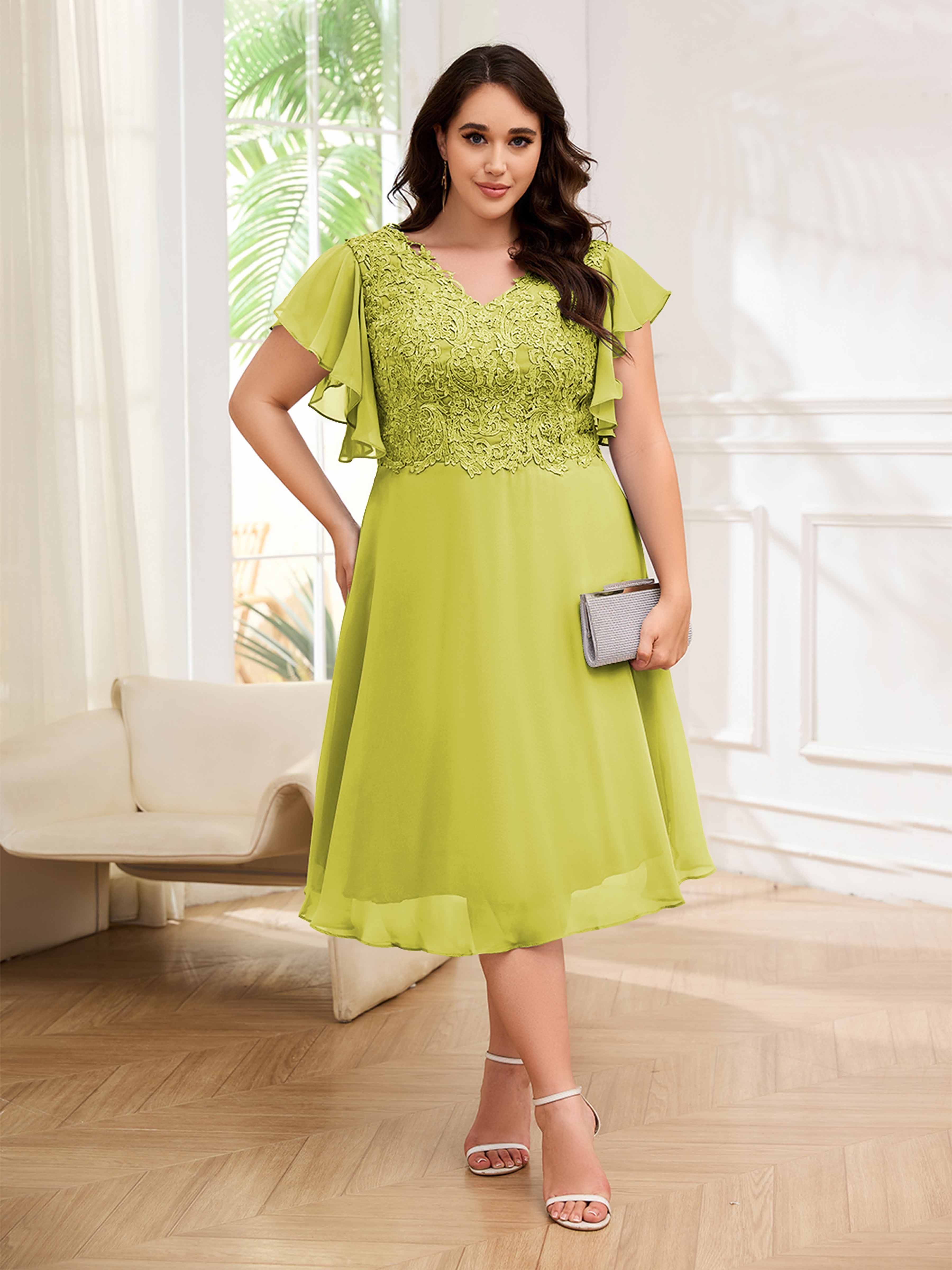 Robes Mère De La Mariée Grande Taille En Mousseline À Dentelle Longueur Du Thé Maryam