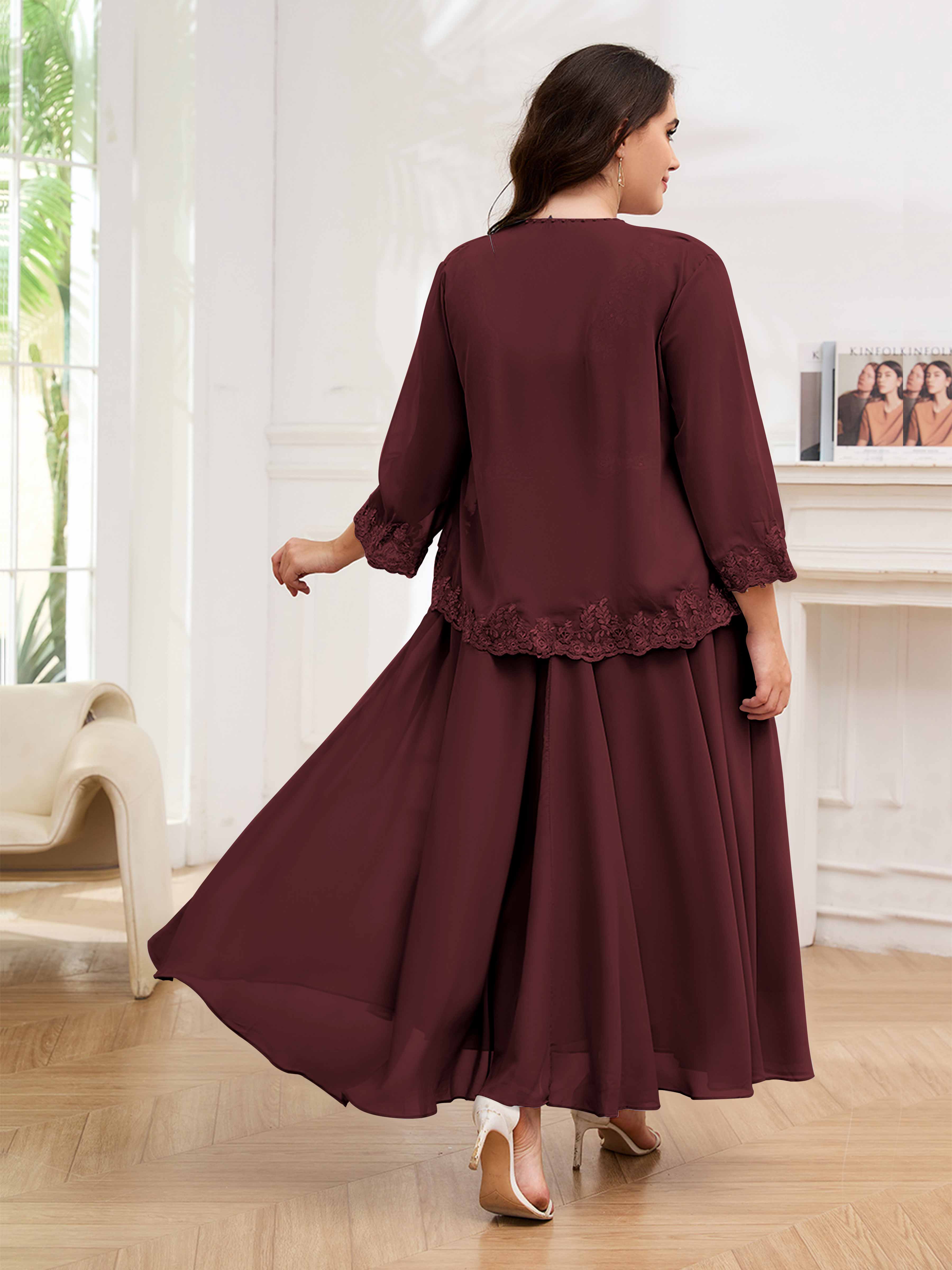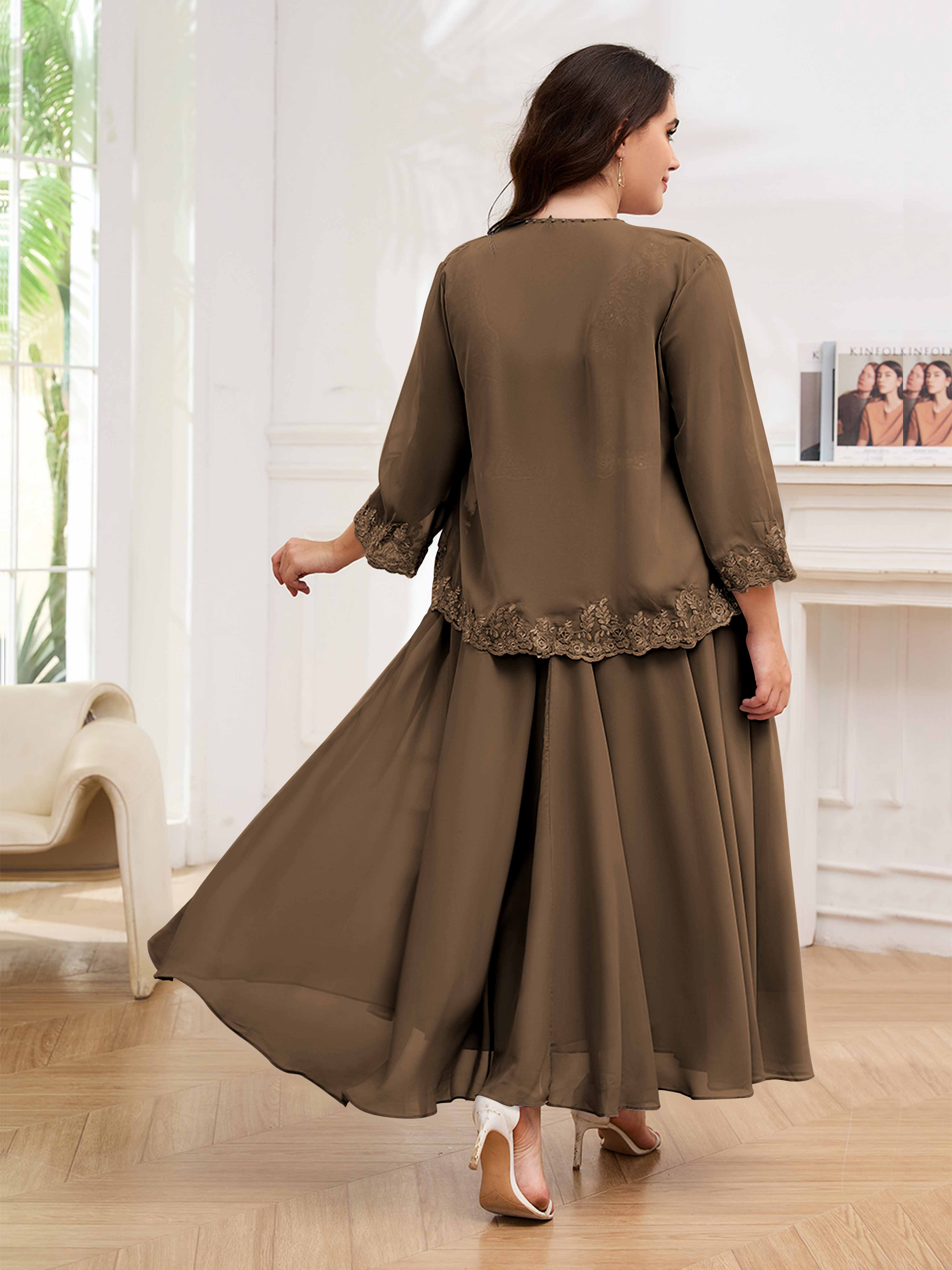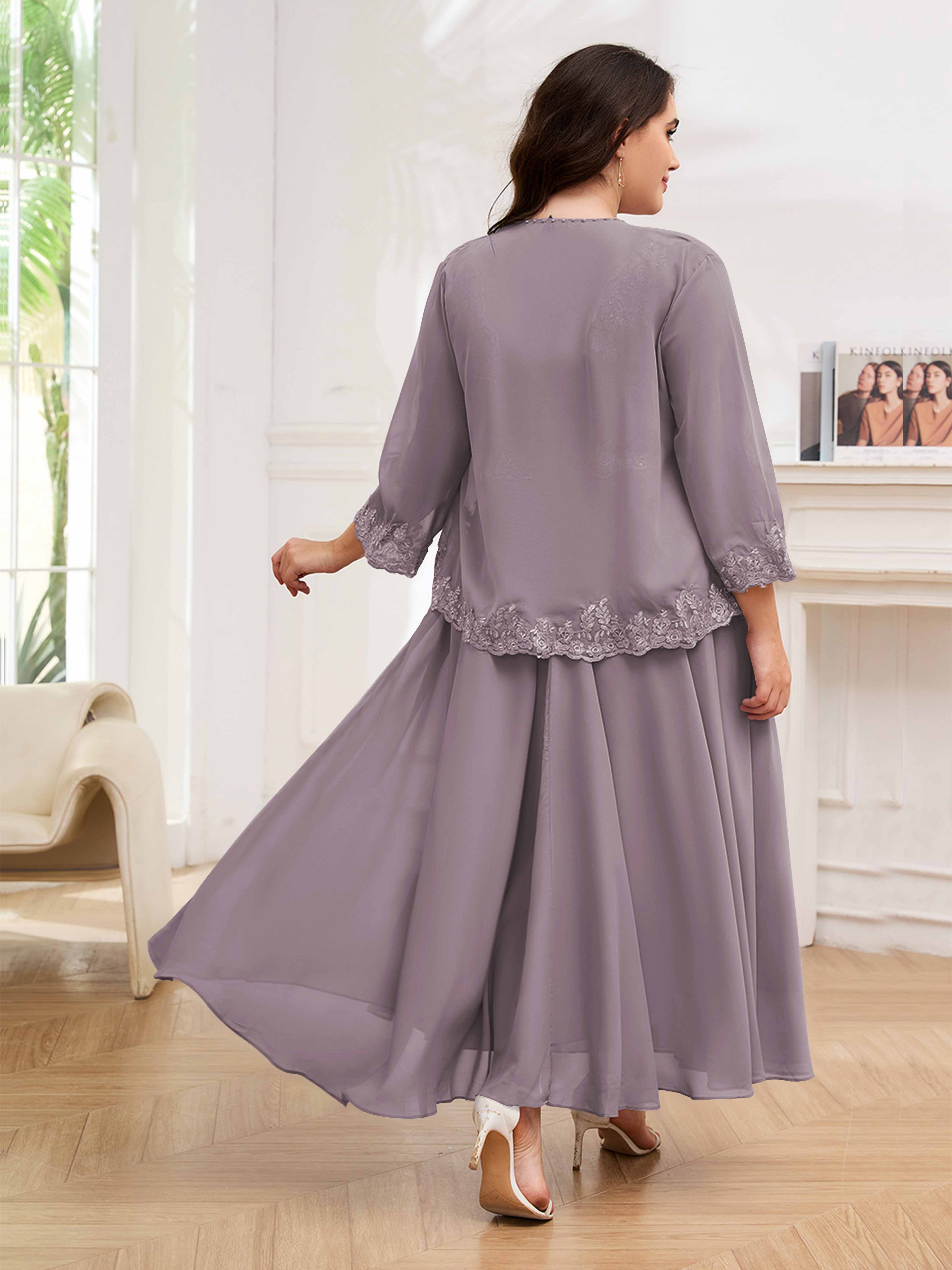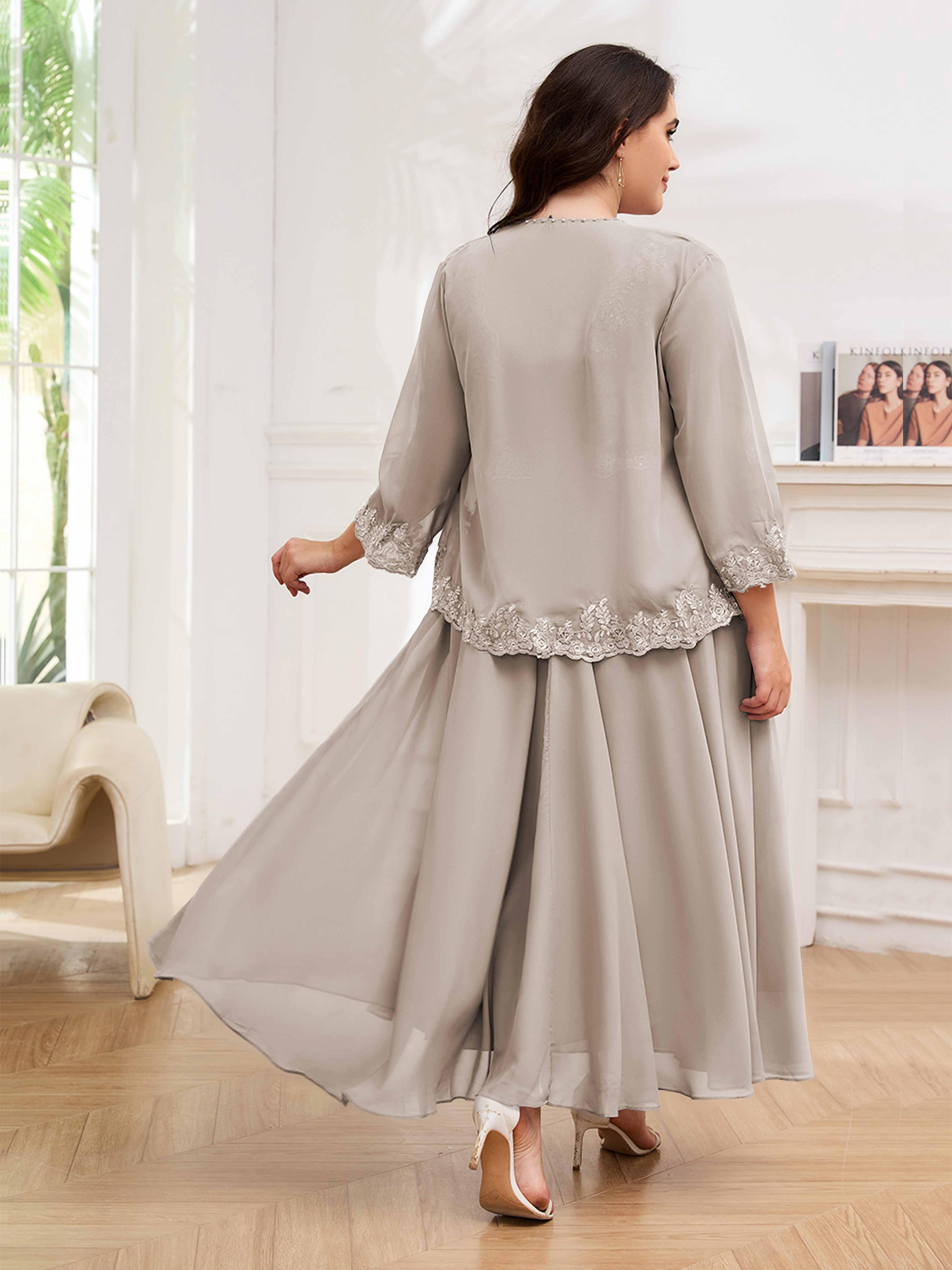 Robes Mère De La Mariée Grande Taille En Mousseline Dentelle À Deux-Pièces Mallory