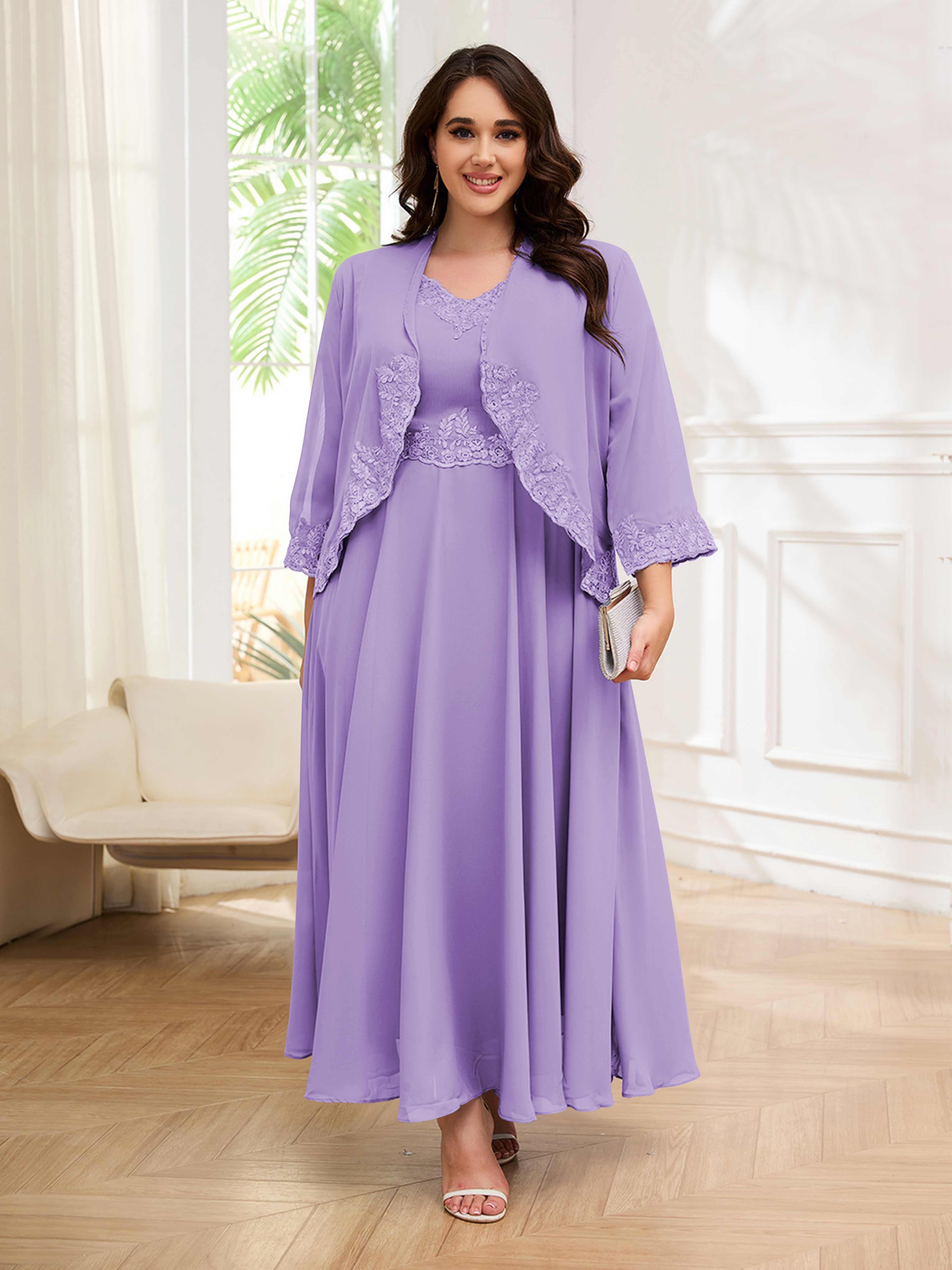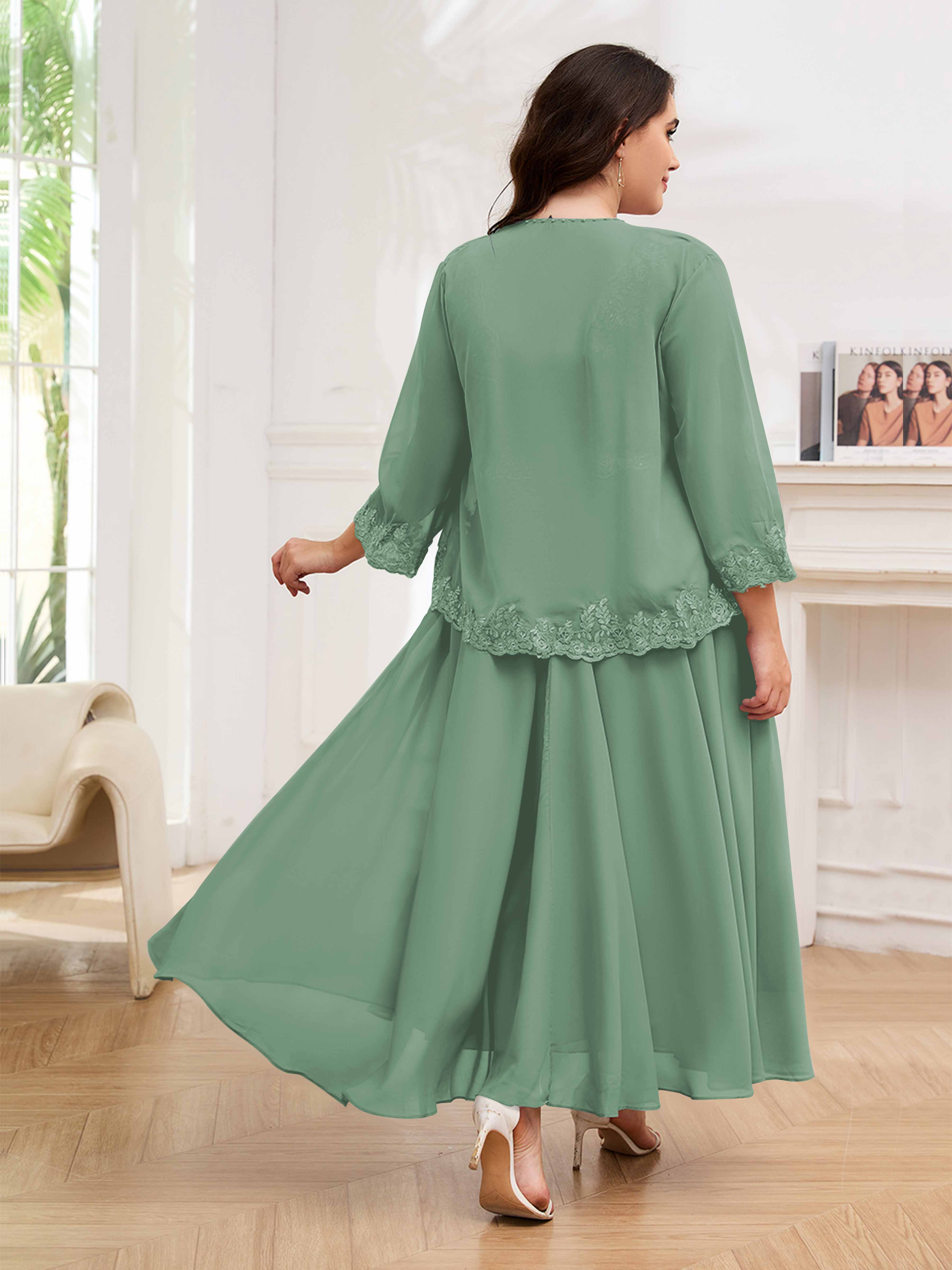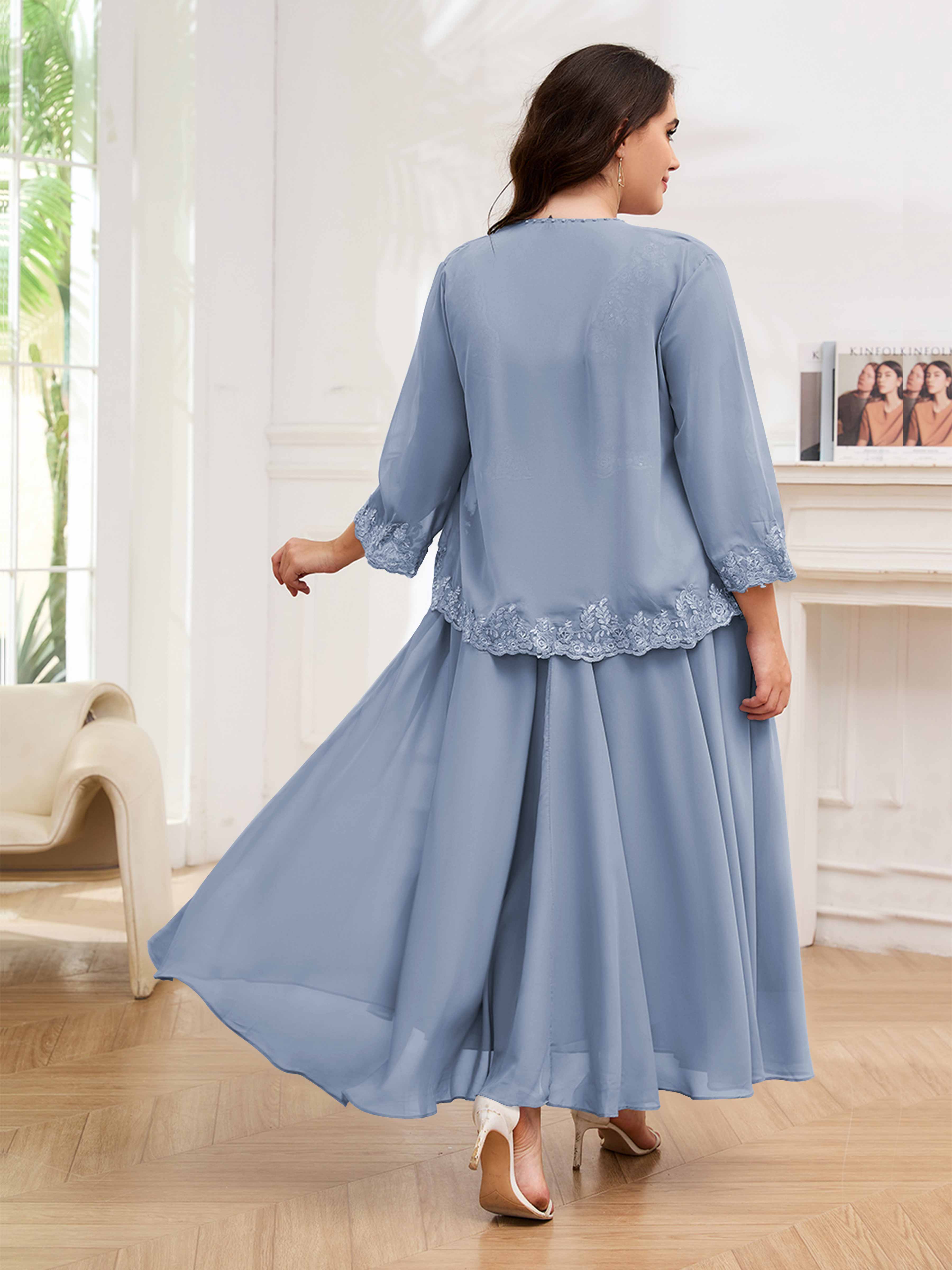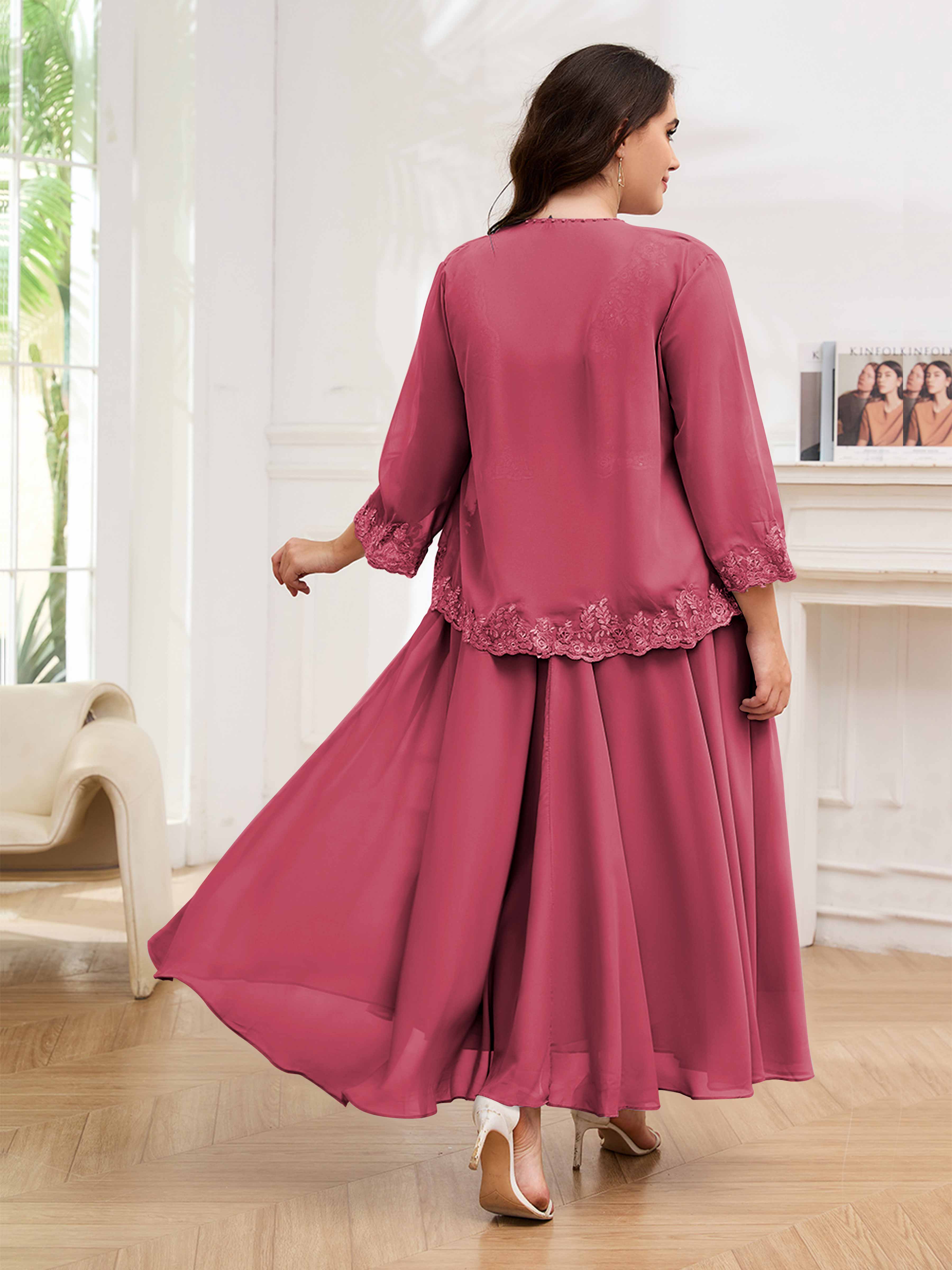 Robes Mère De La Mariée Grande Taille En Mousseline Dentelle À Deux-Pièces Mallory