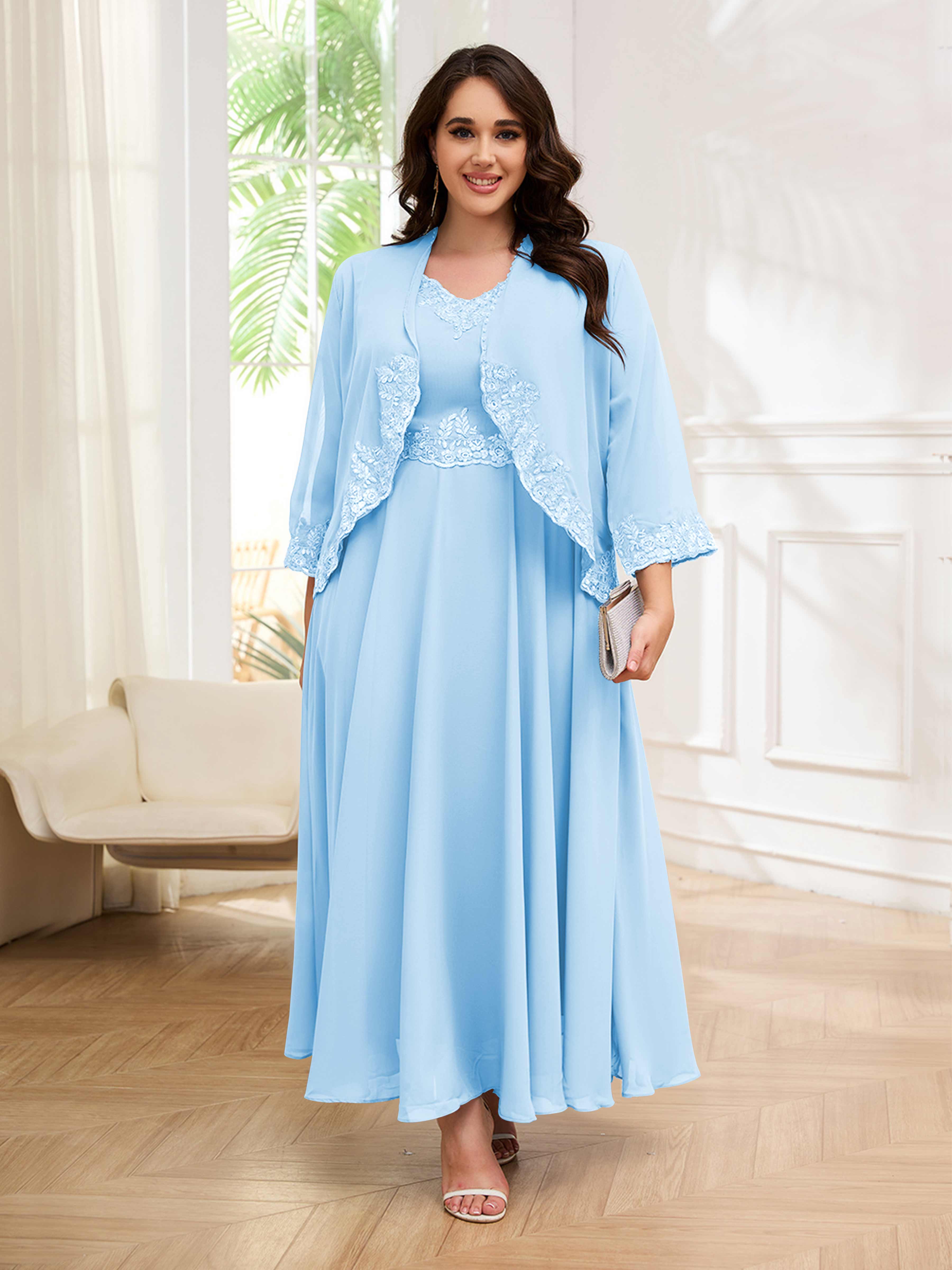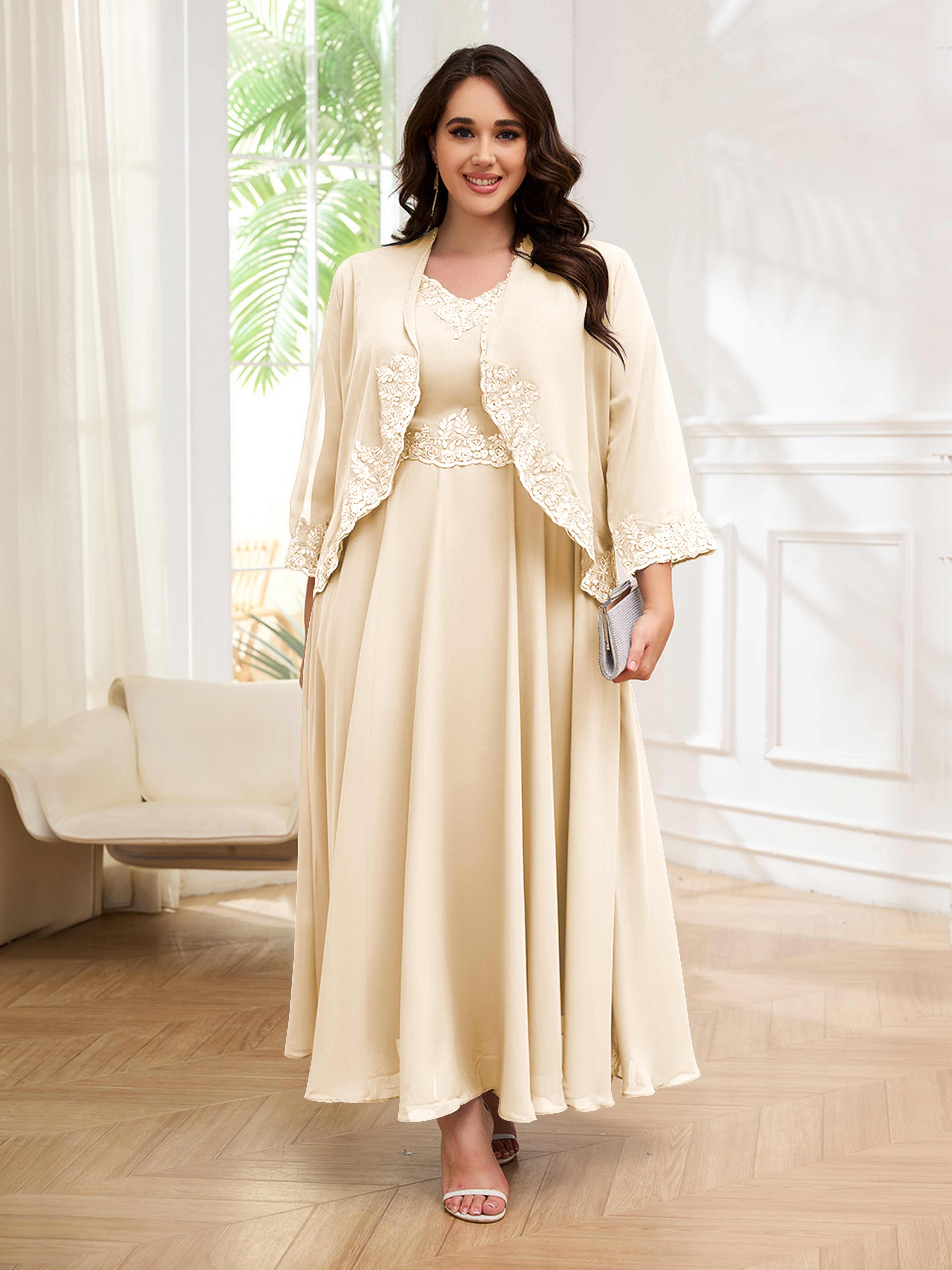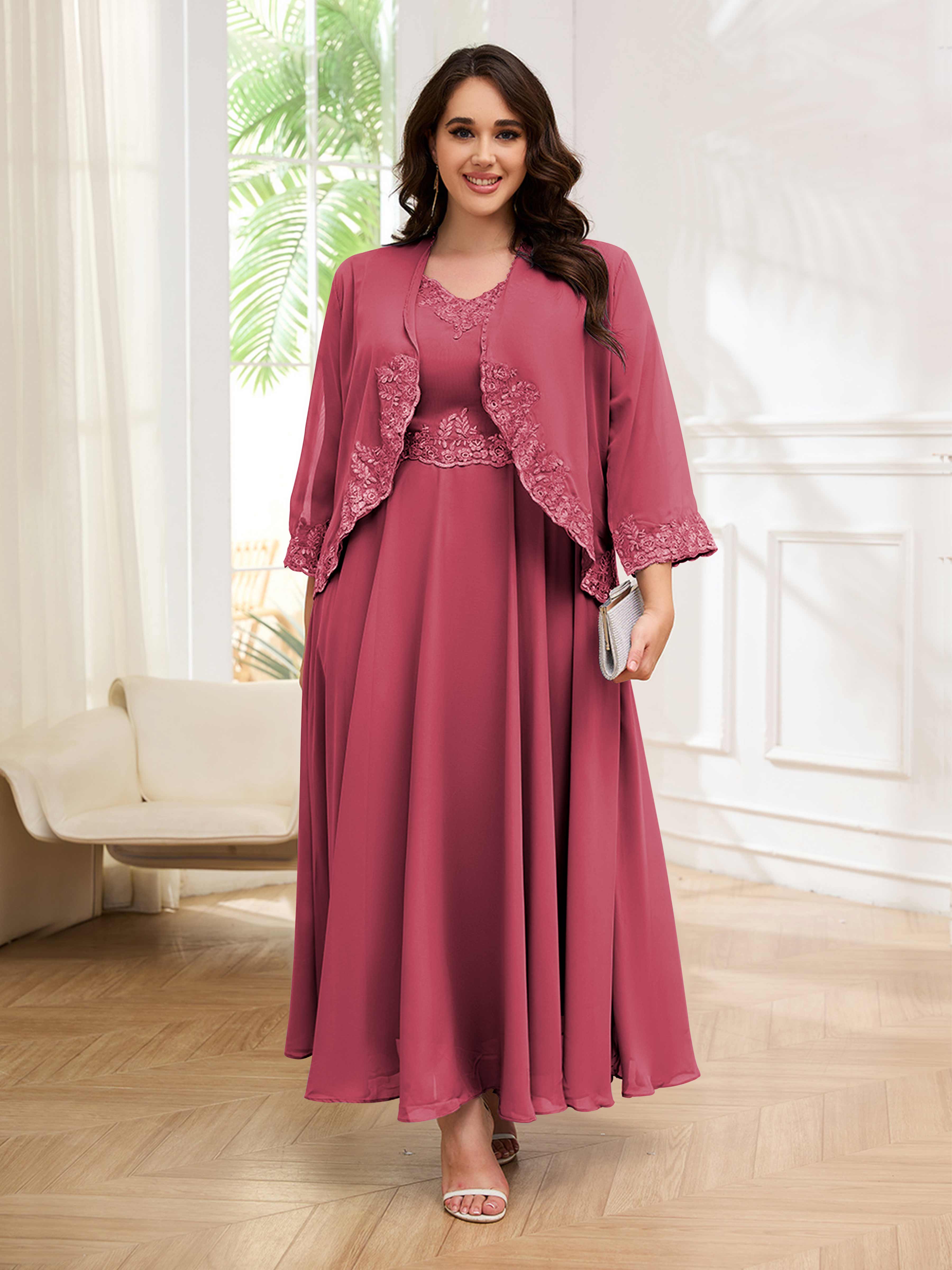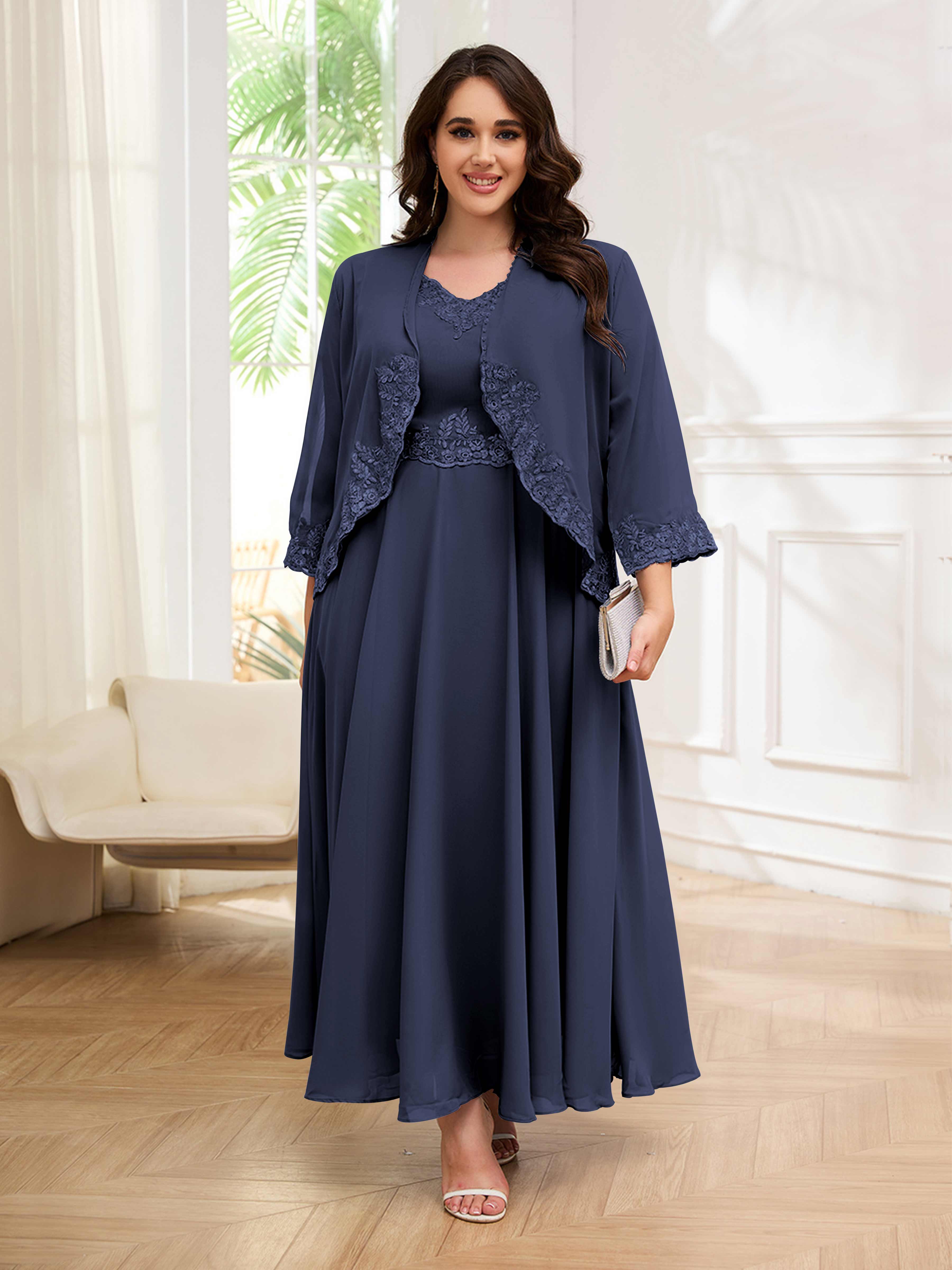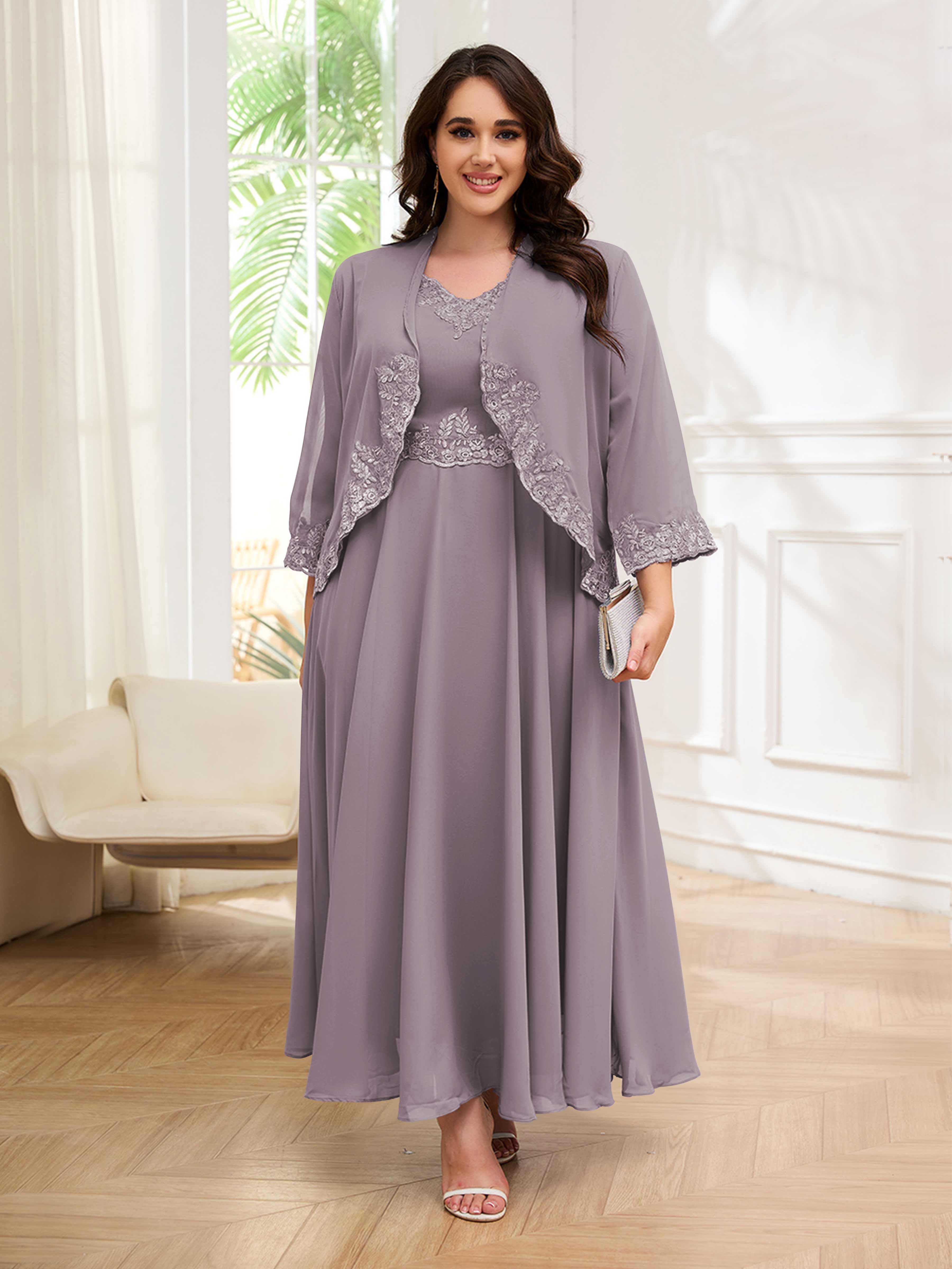 Robes Mère De La Mariée Grande Taille En Mousseline Dentelle À Deux-Pièces Mallory