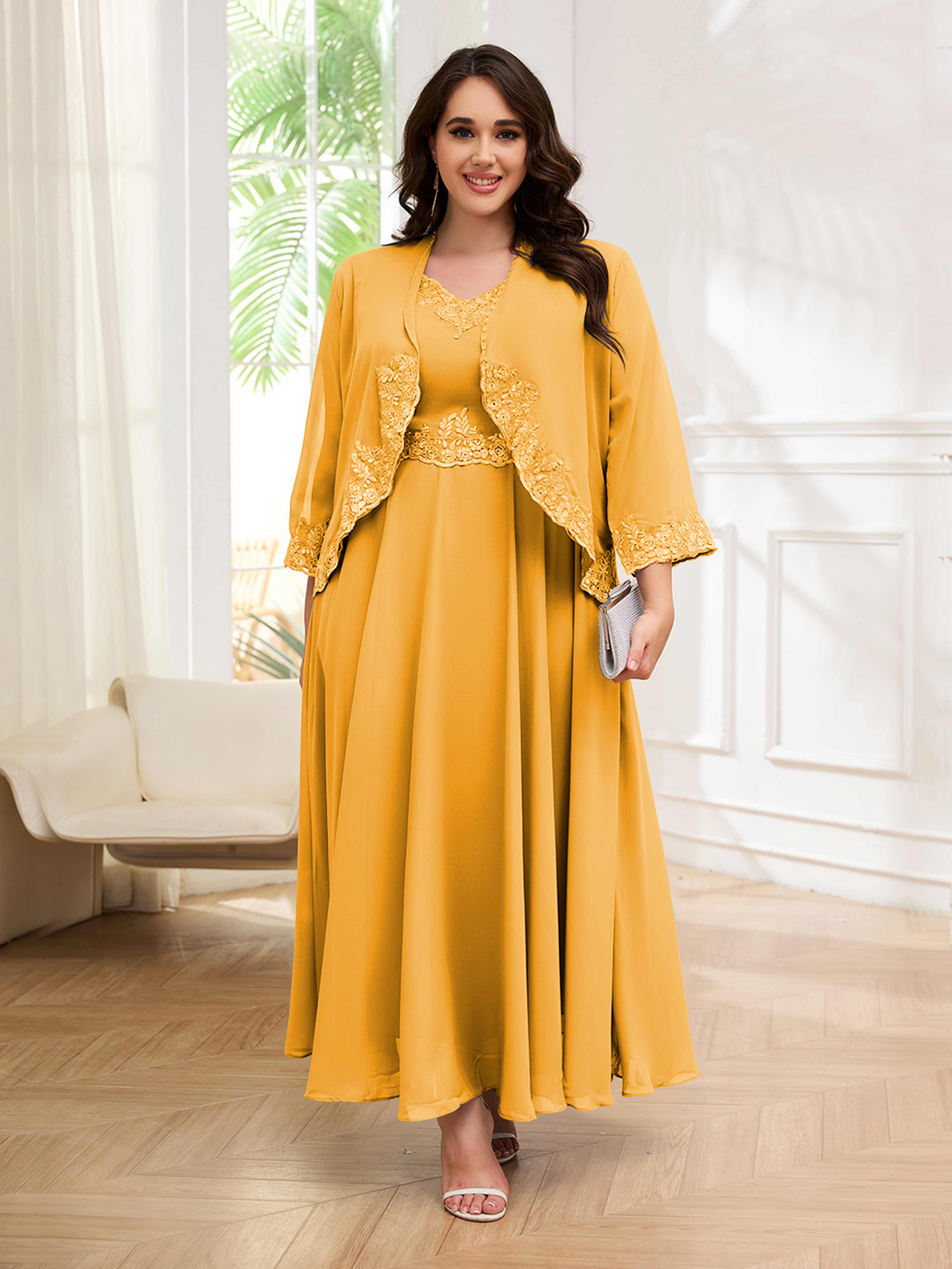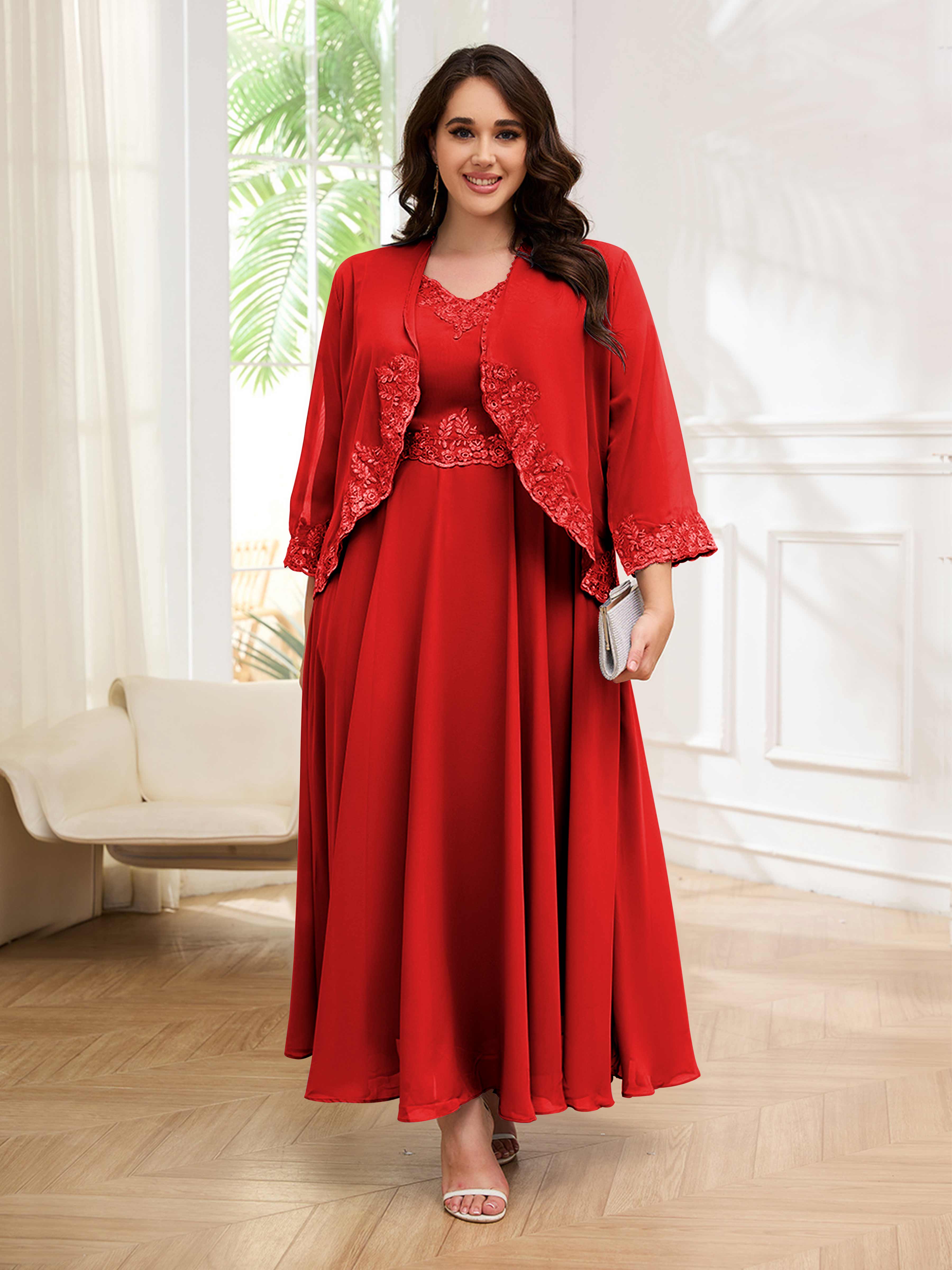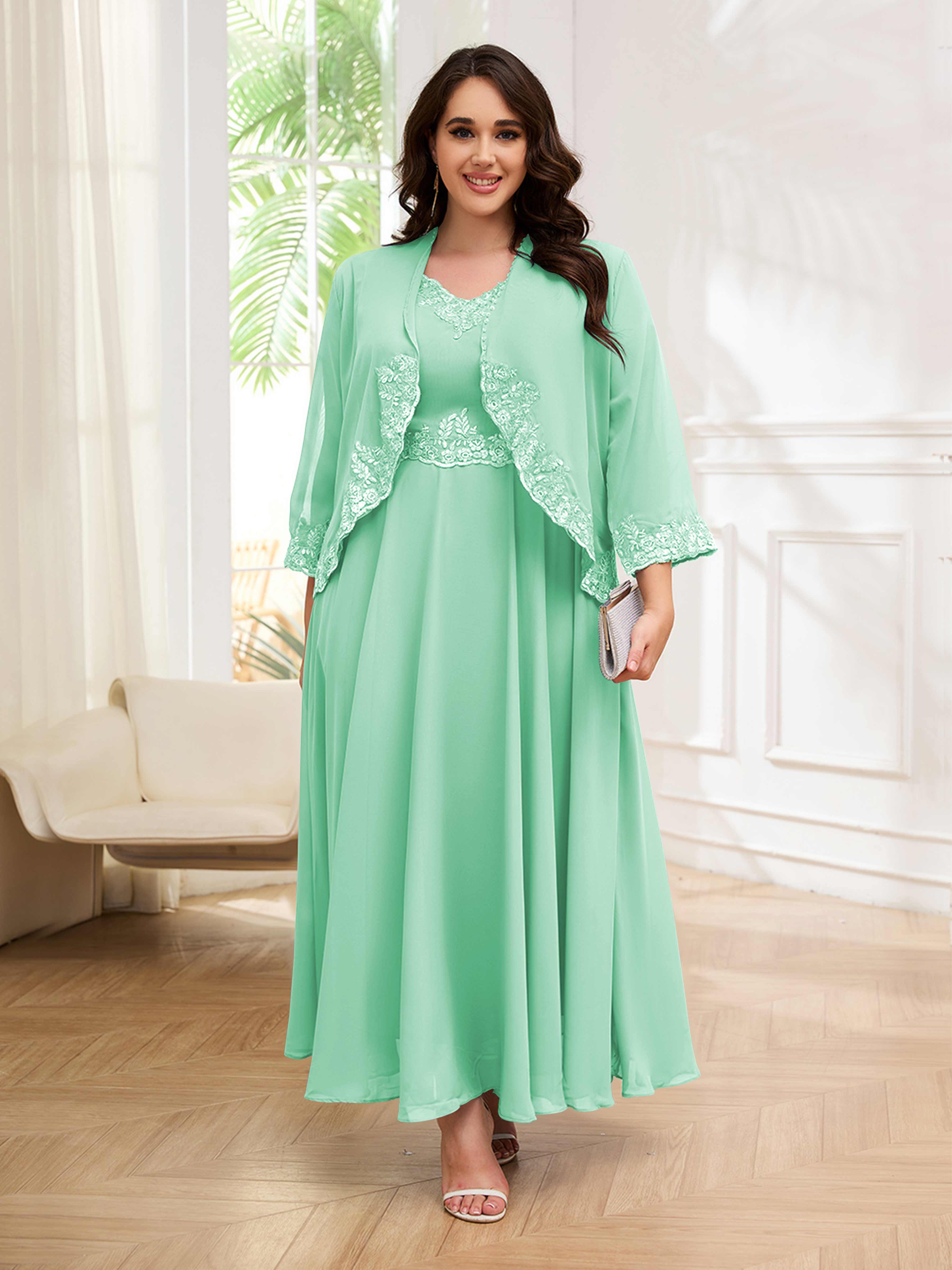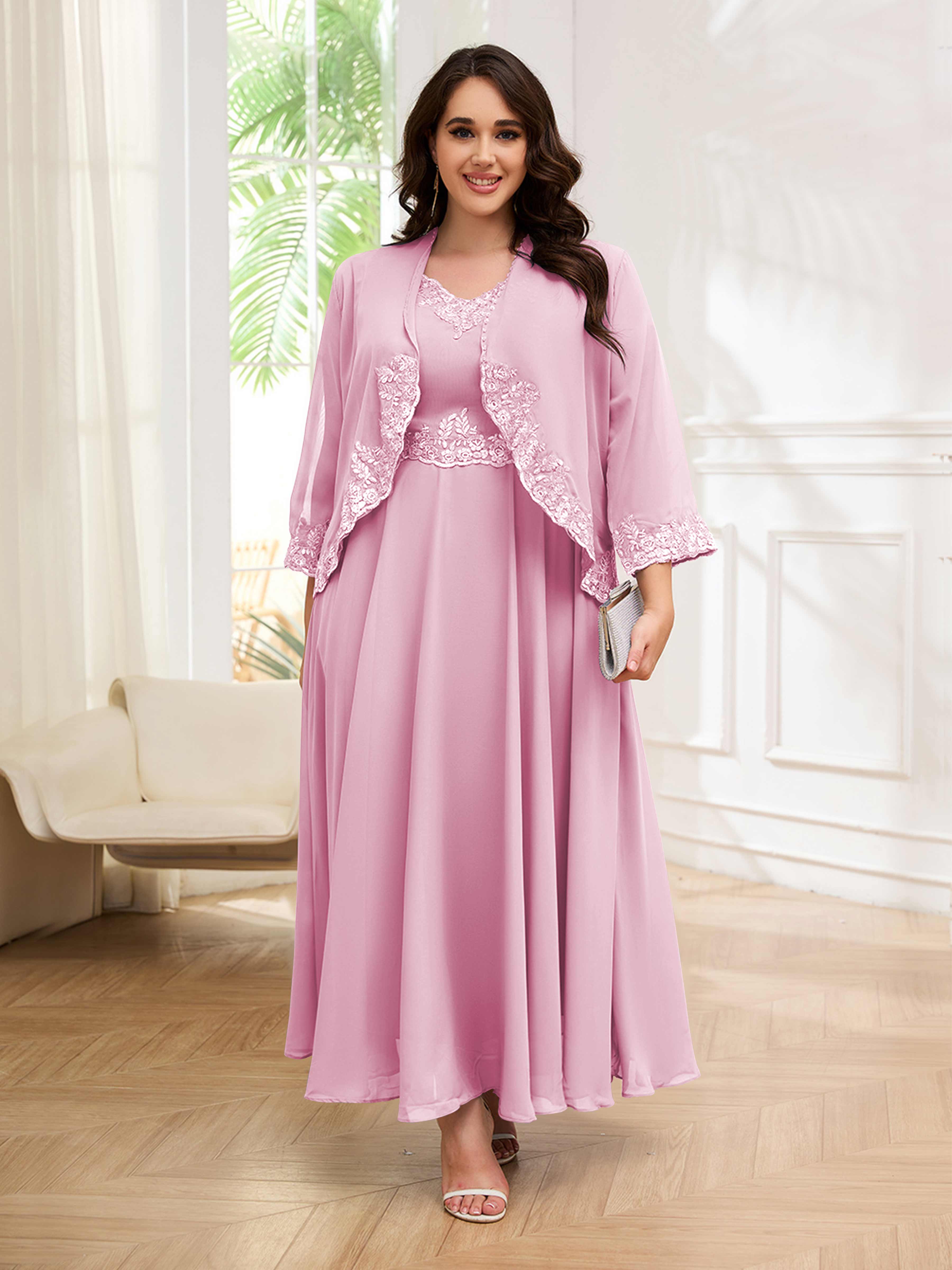Robes Mère De La Mariée Grande Taille En Mousseline Dentelle À Deux-Pièces Mallory