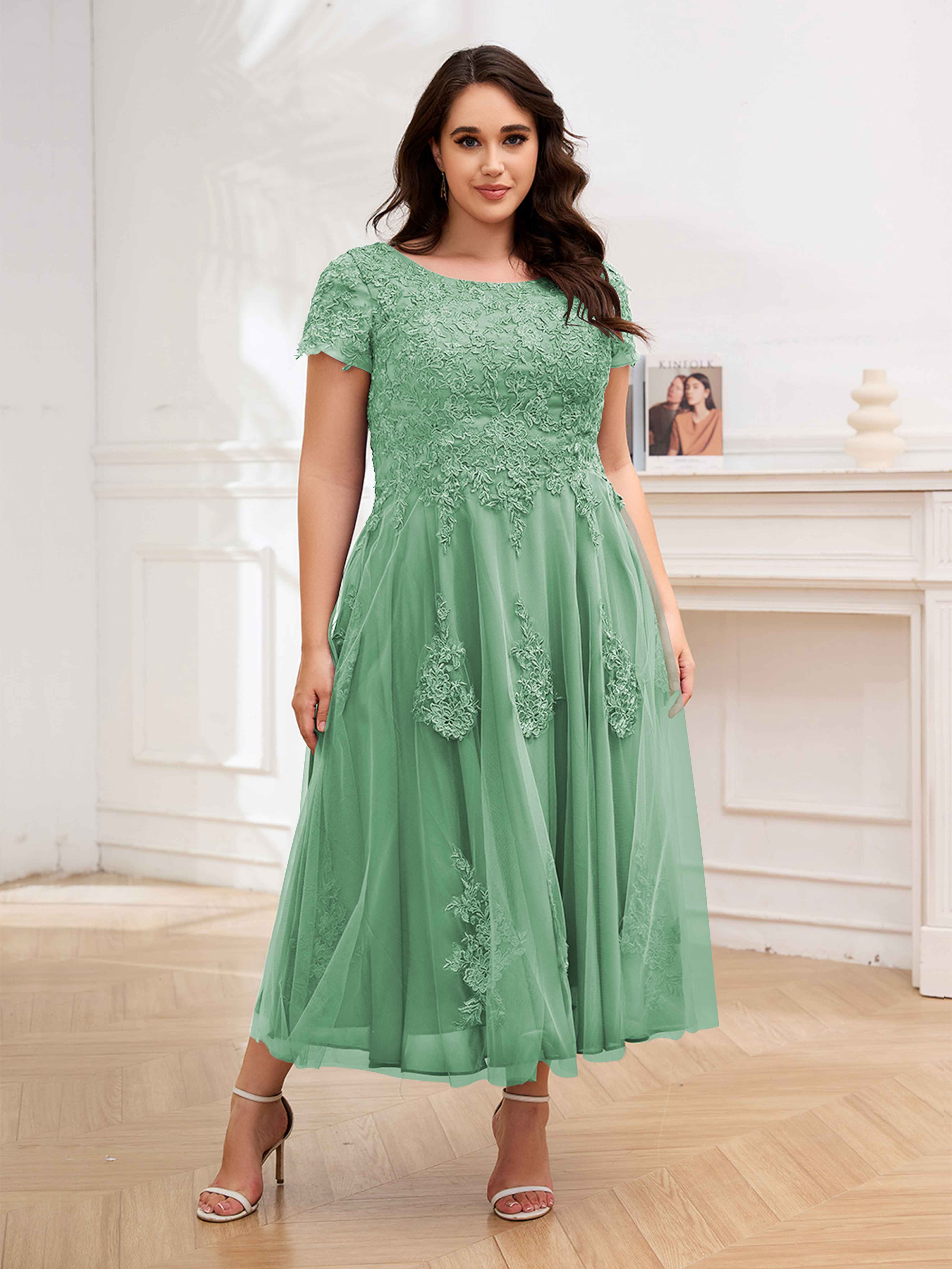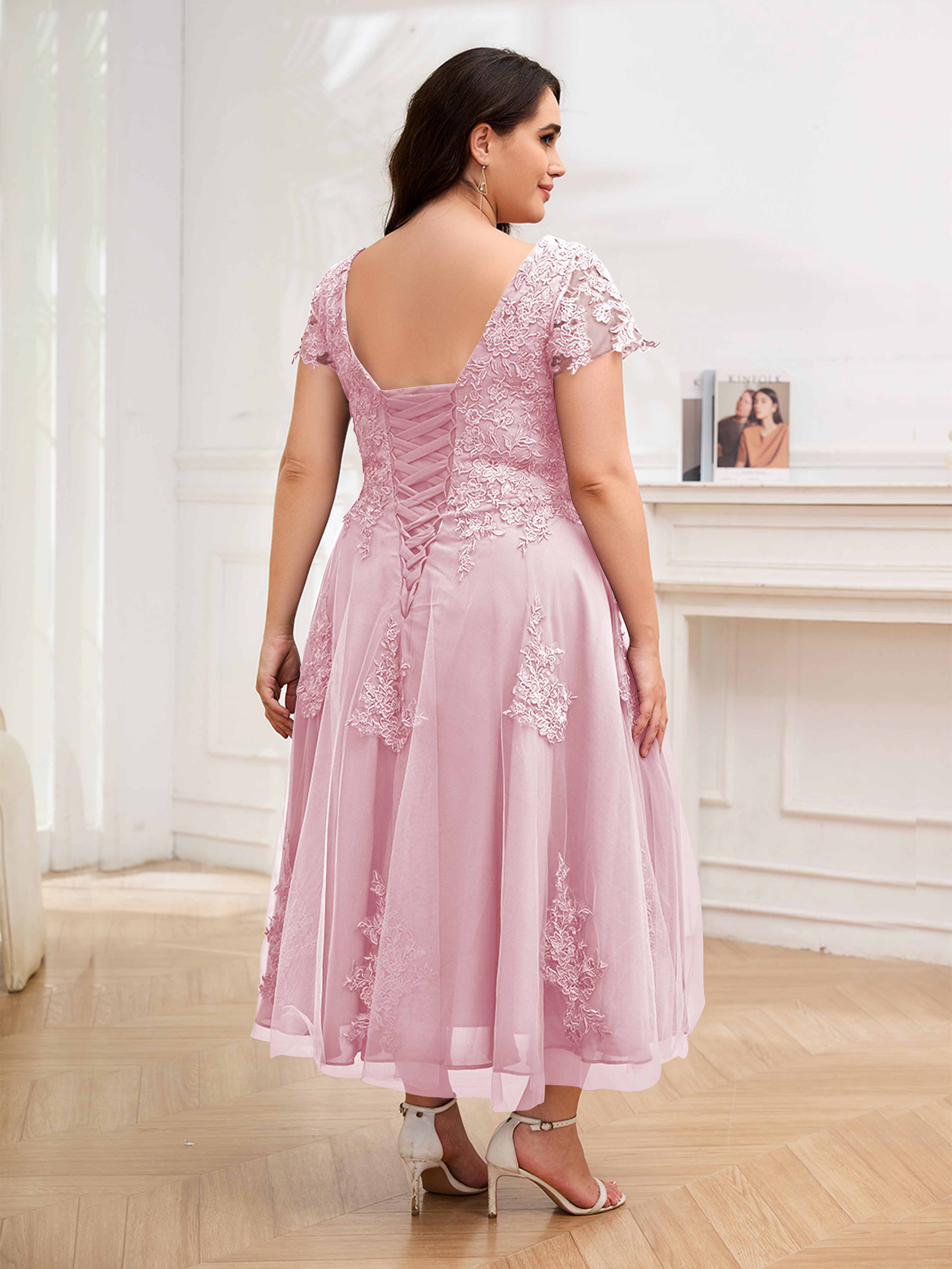 Robes Mère De La Mariée Grande Taille En Tulle Dentelle À Manches Courtes Virginia